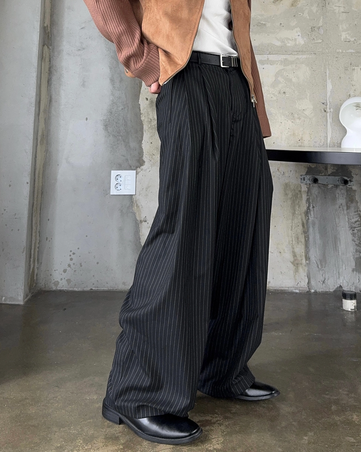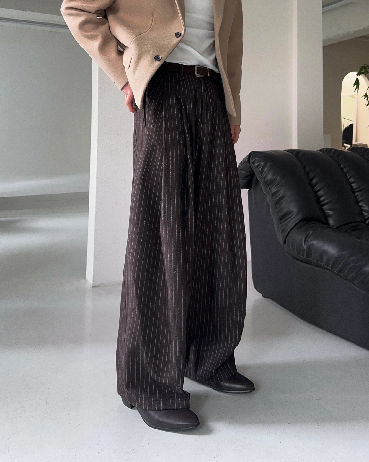 스터드 투턱 스트라이프 와이드 슬랙스 2COL