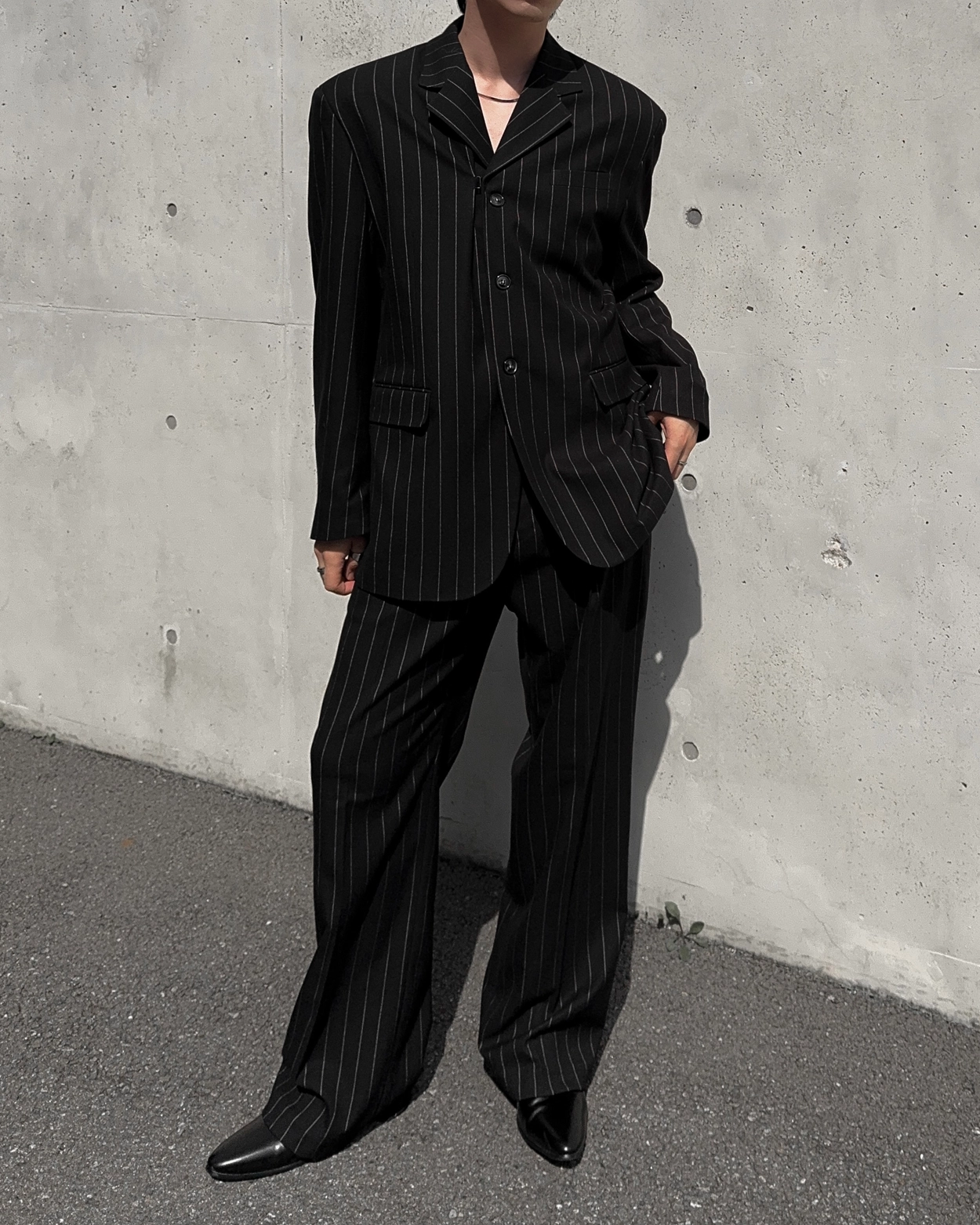 켄도 울 스트라이프 와이드 슬랙스 2COL