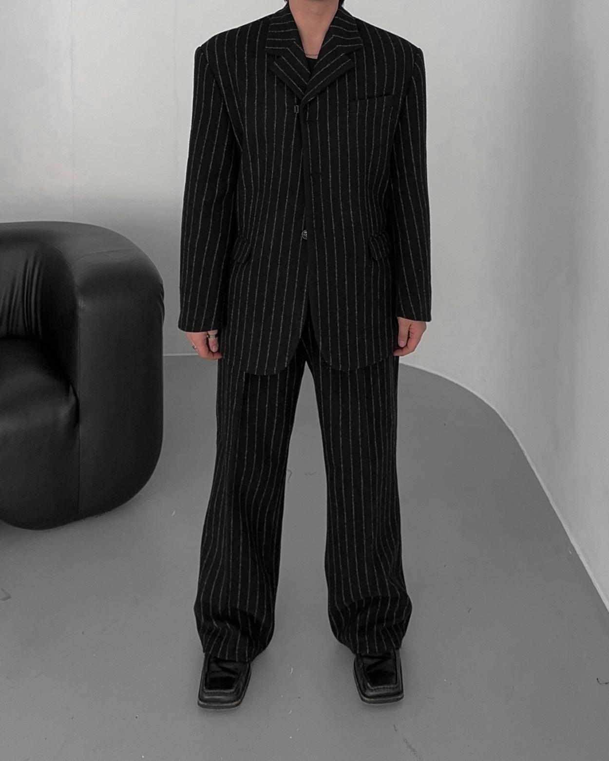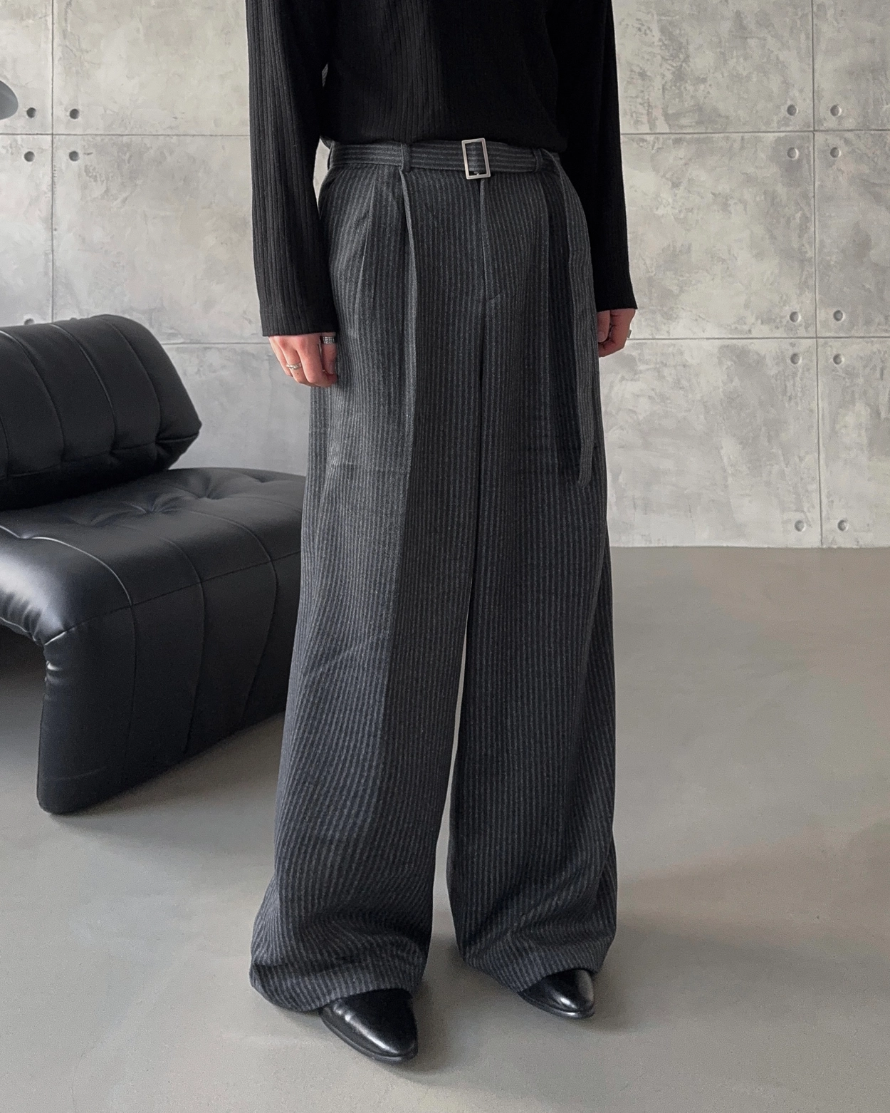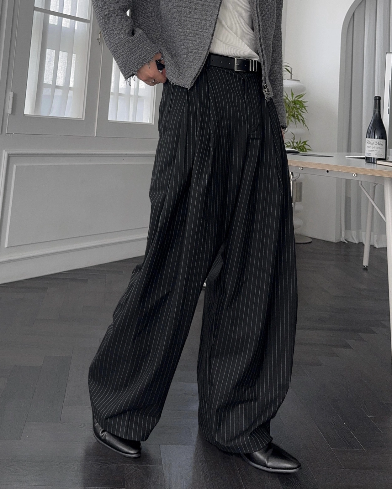 로스터리 울 스트라이프 와이드 슬랙스 3COL