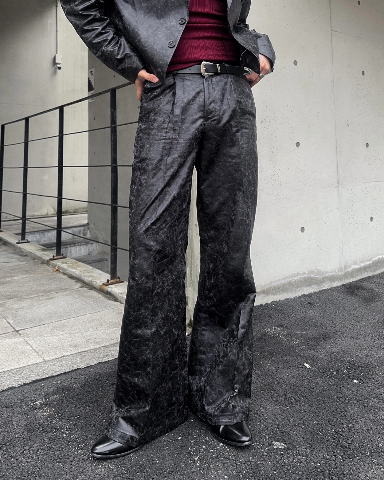 (셋업가능) 야크 크랙 레더 벨버텀 팬츠 2COL