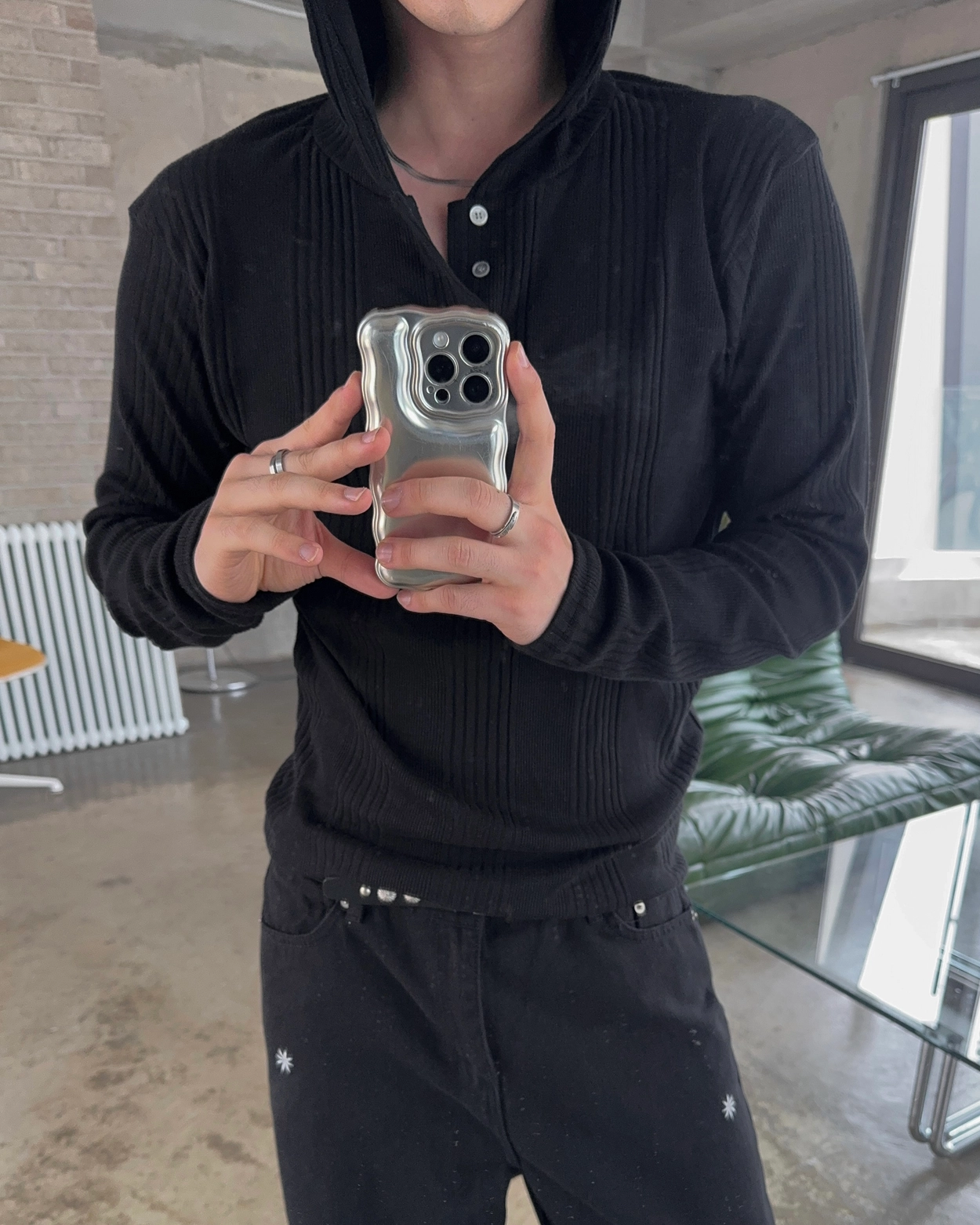 [주문폭주] 테라피 슬림 헨리넥 후드 티셔츠 4COL