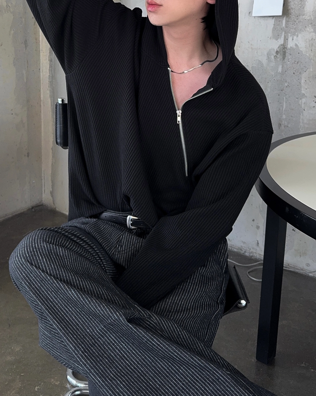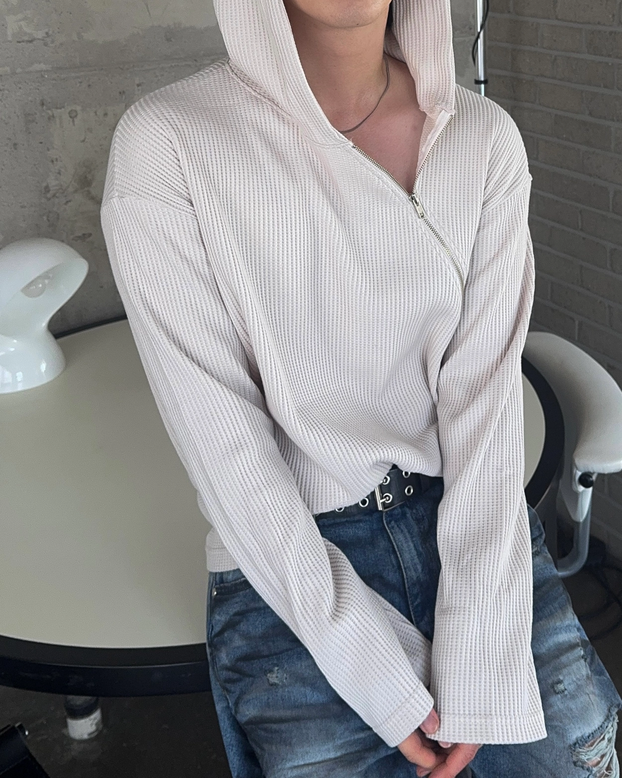 [MD추천] 커넥트 사선 지퍼 와플 후드티 3COL