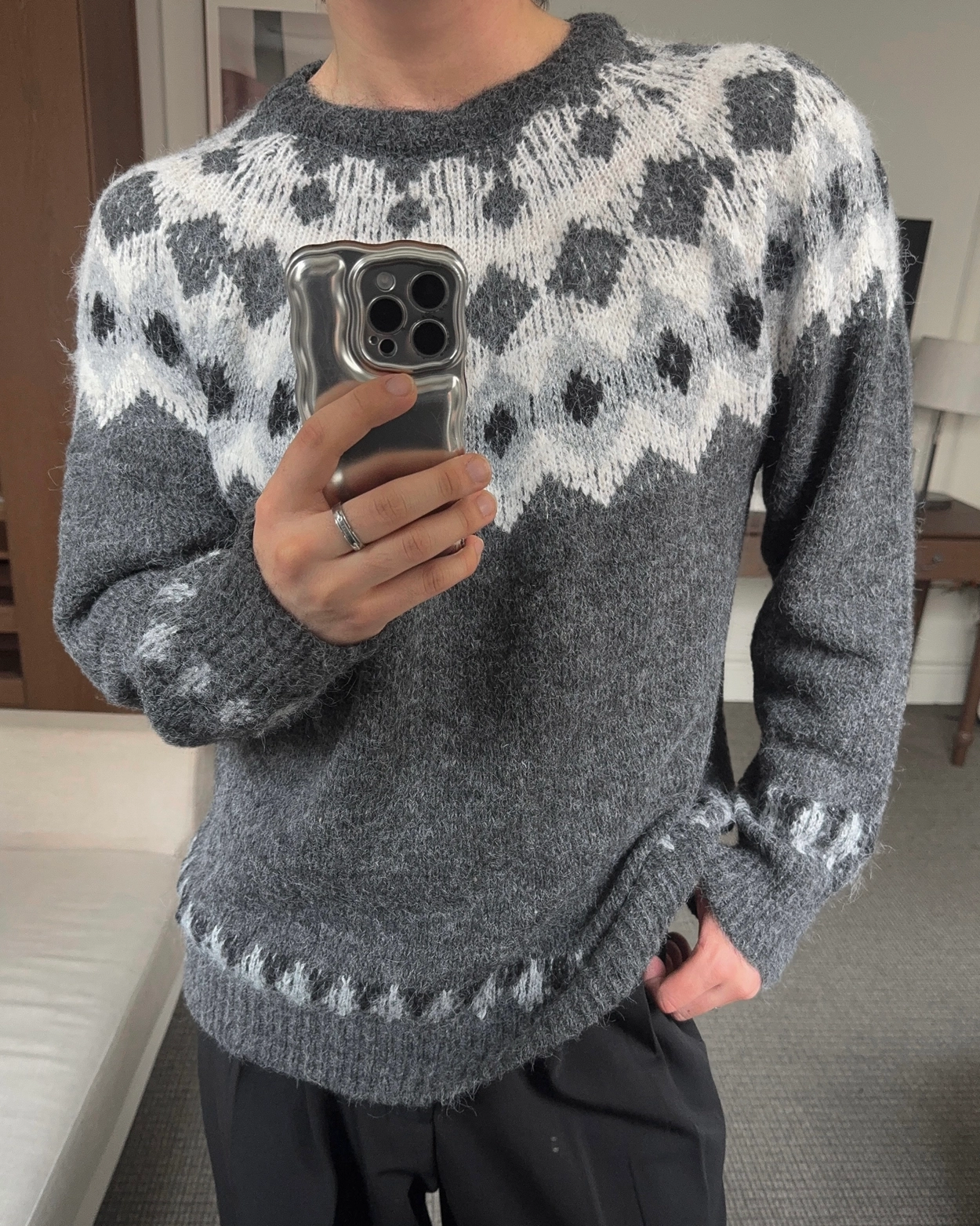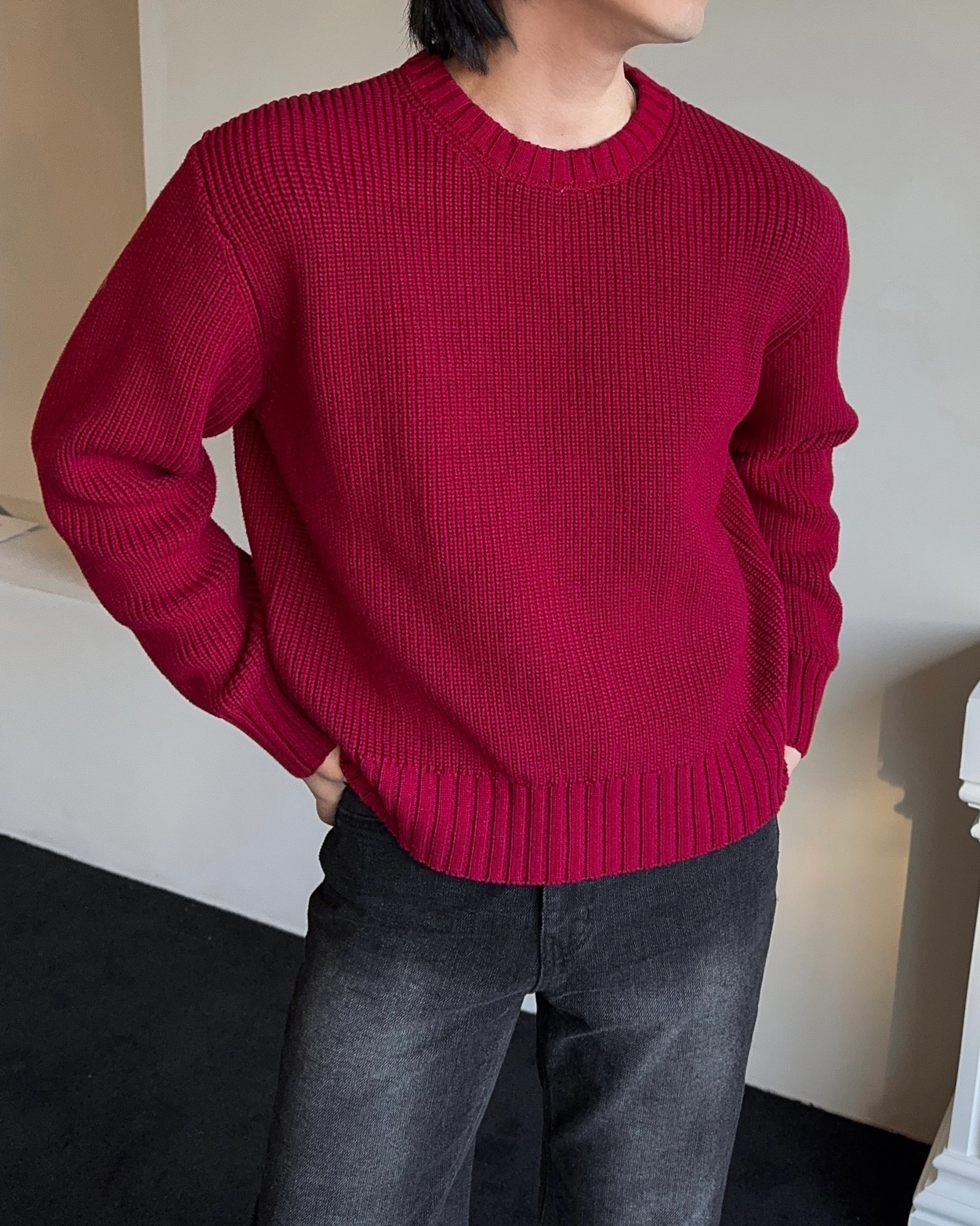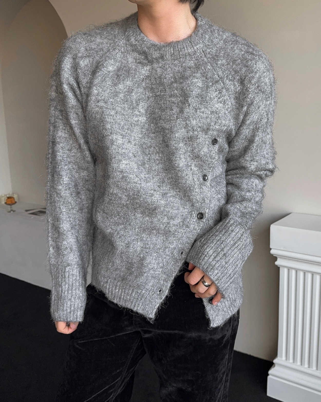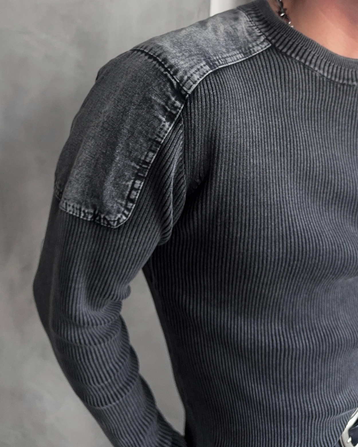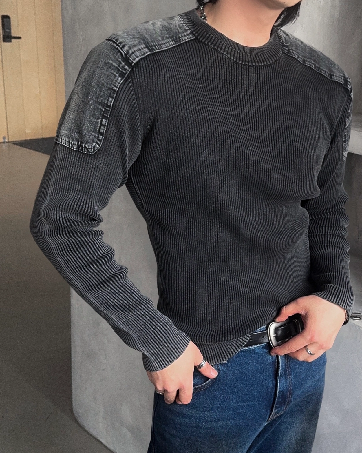 [MUSCLE FIT] 아놀드 숄더 패널 피그먼트 골지 니트