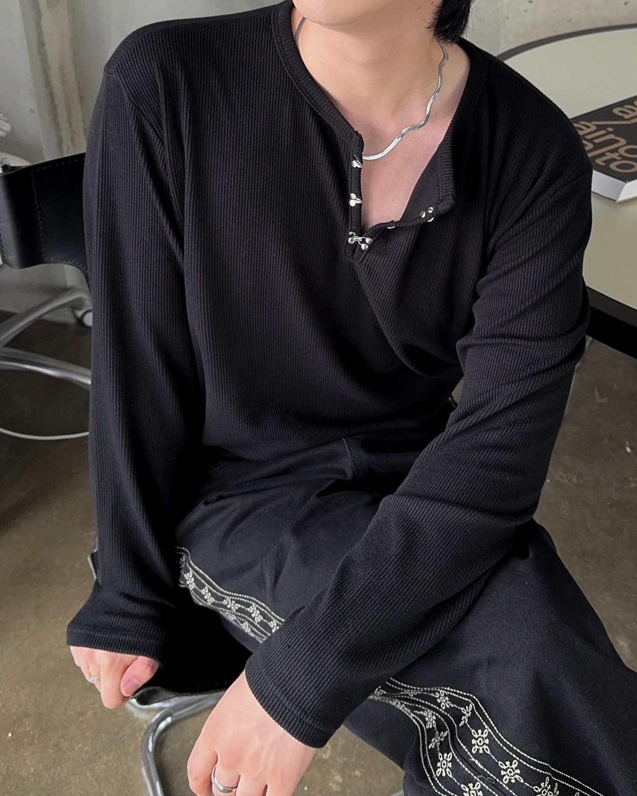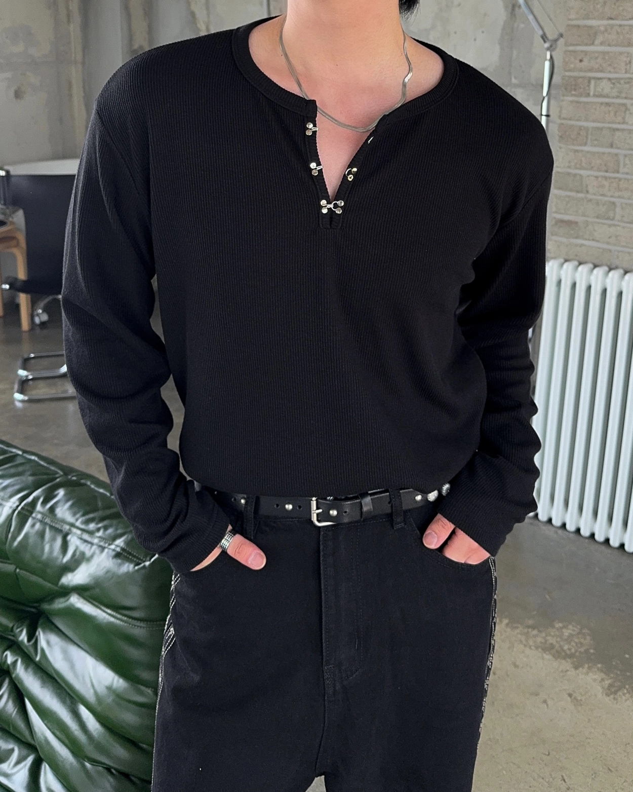 얀 후크 헨리넥 니트 티셔츠 4COL