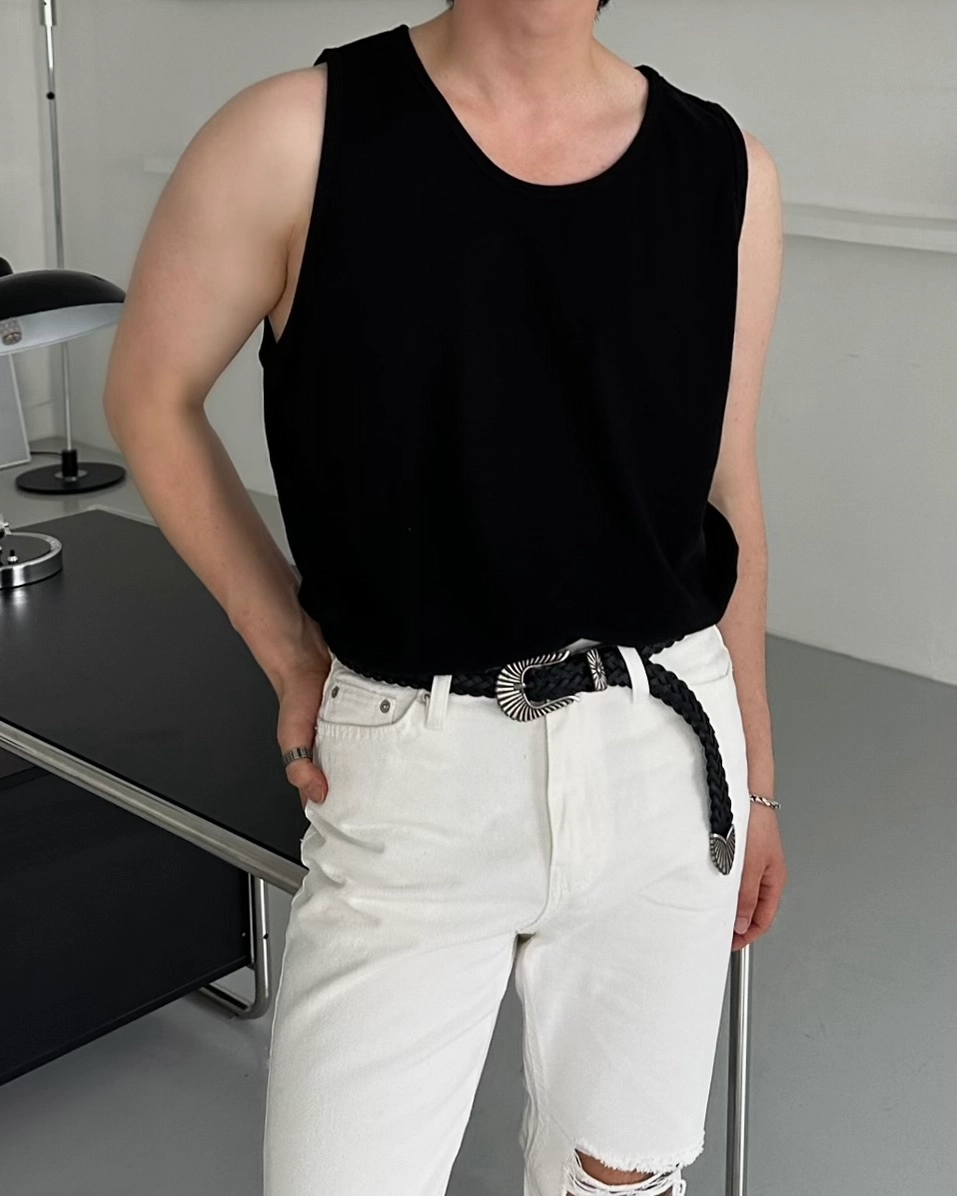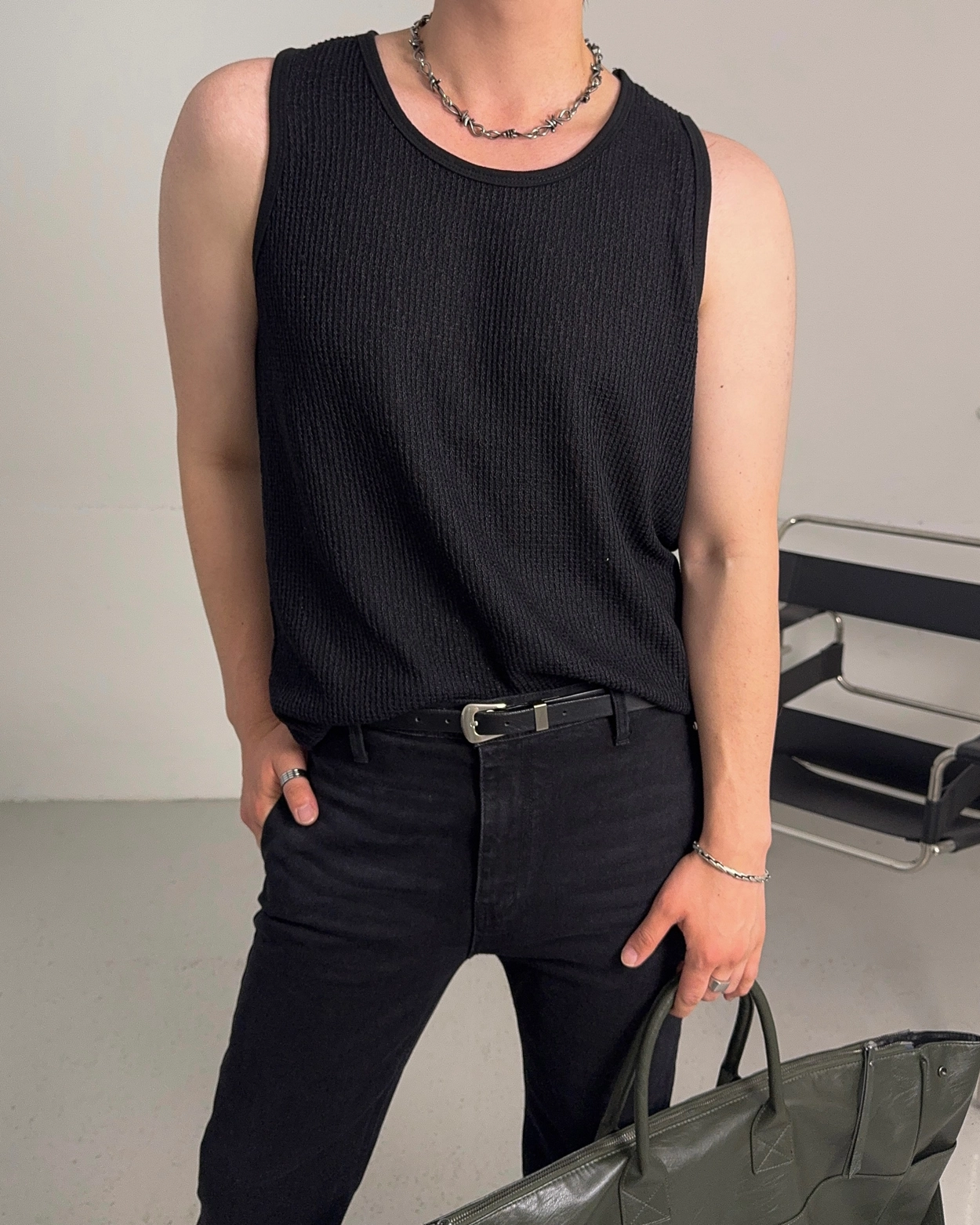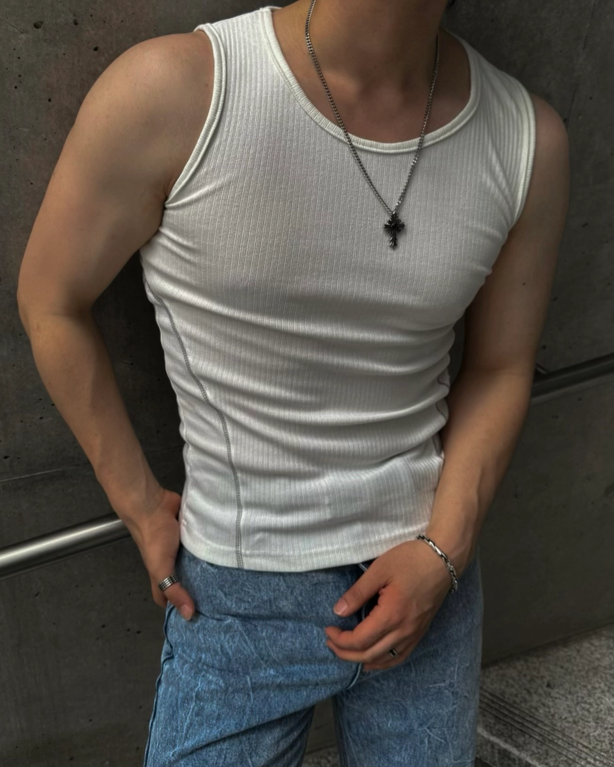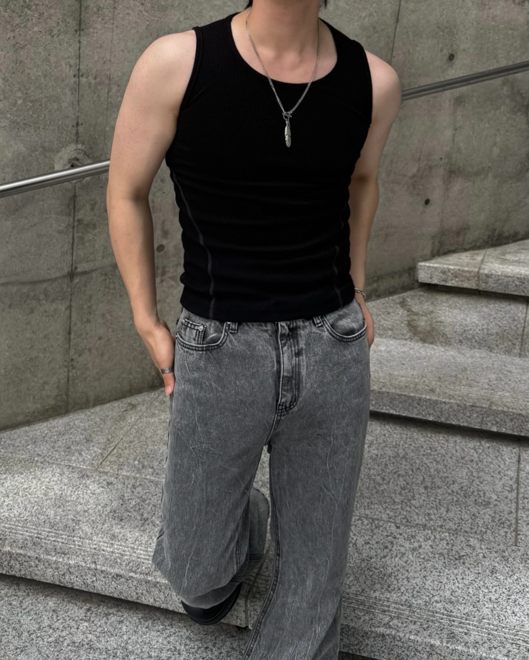 (1+1) [MUSCLE FIT] 지프 사이드 라인 골지 나시 티셔츠 3COL