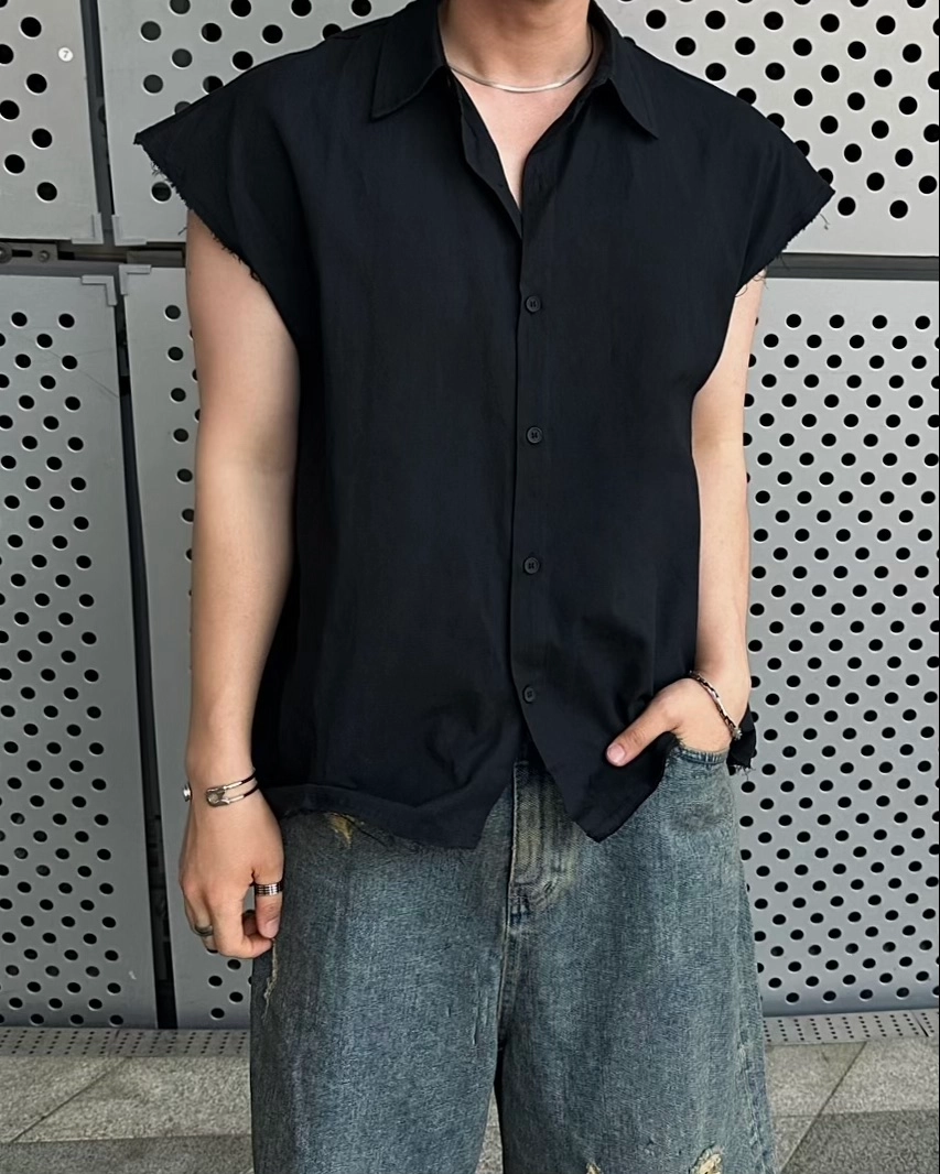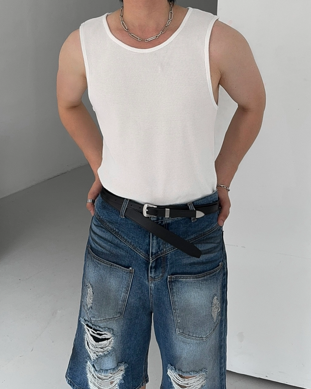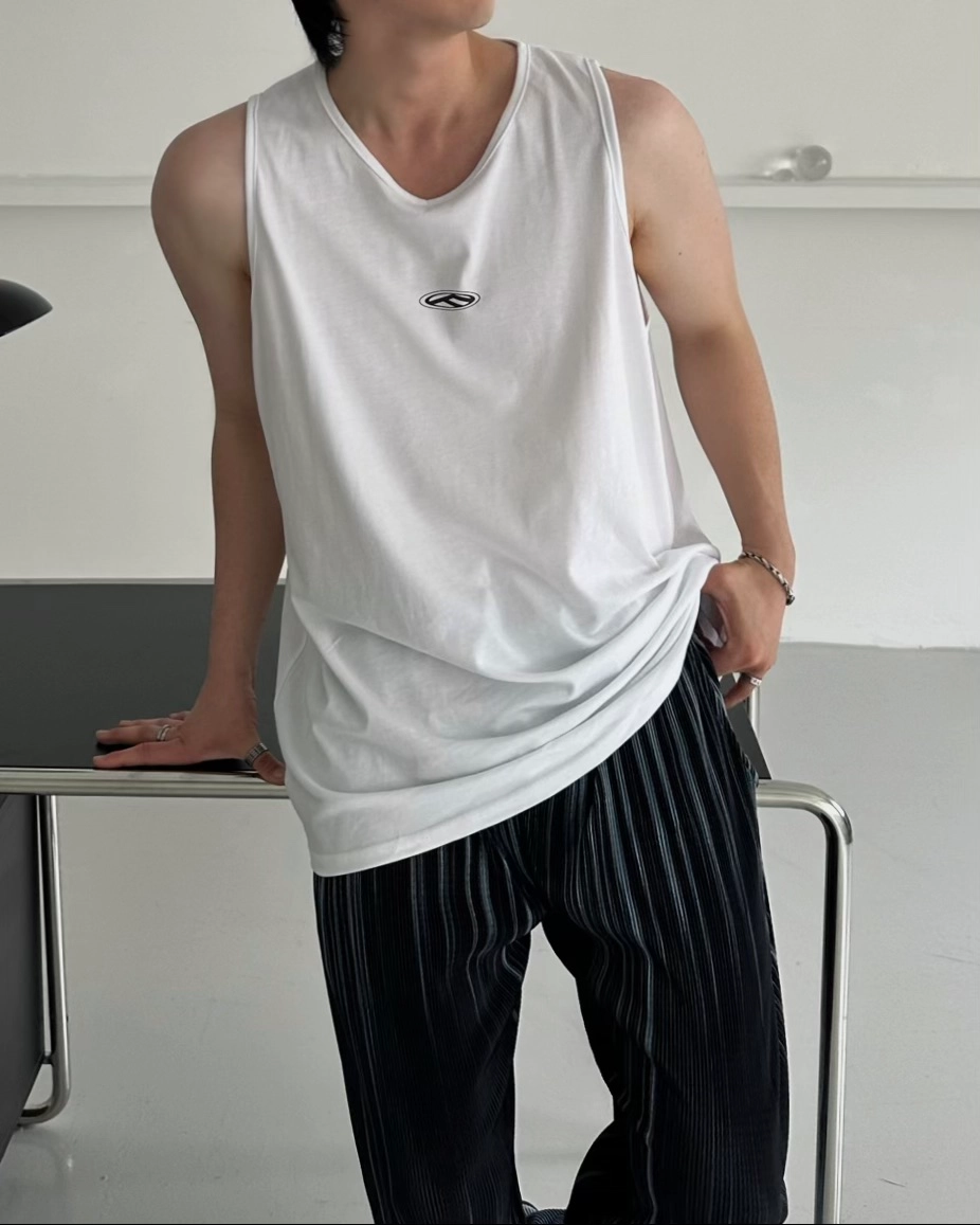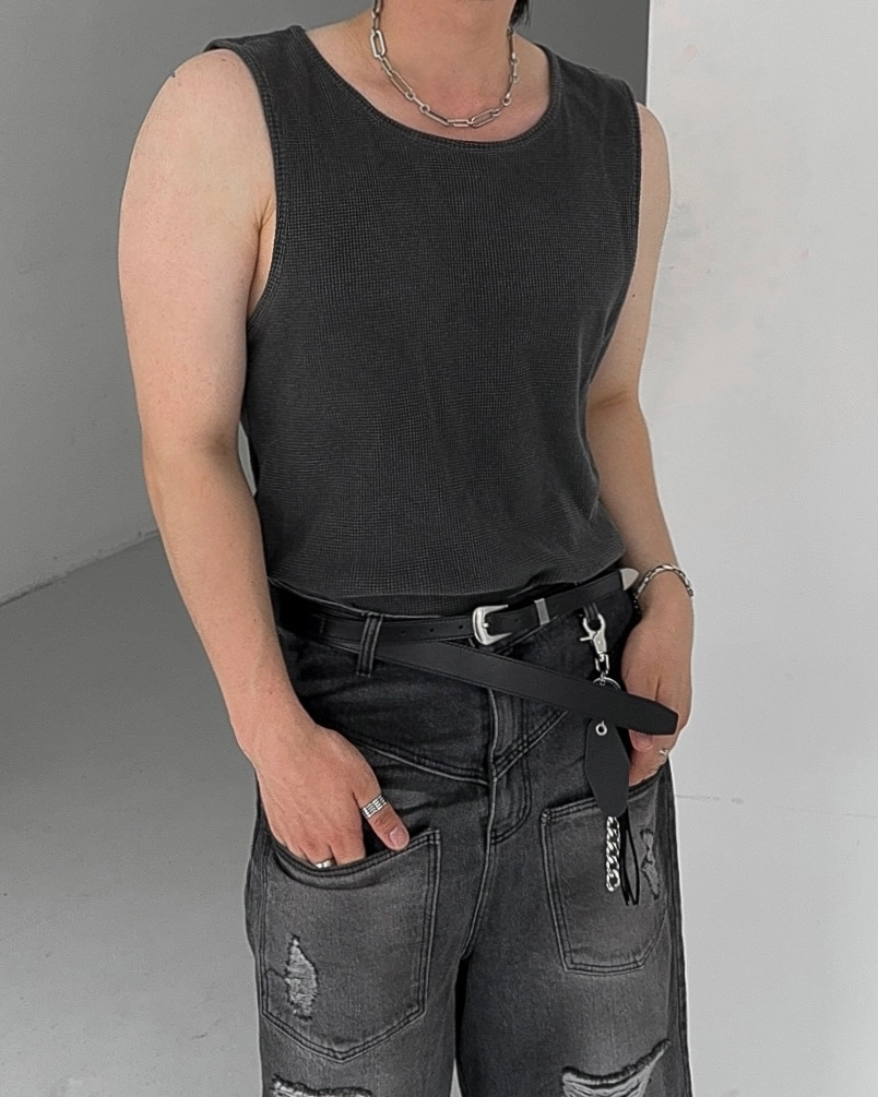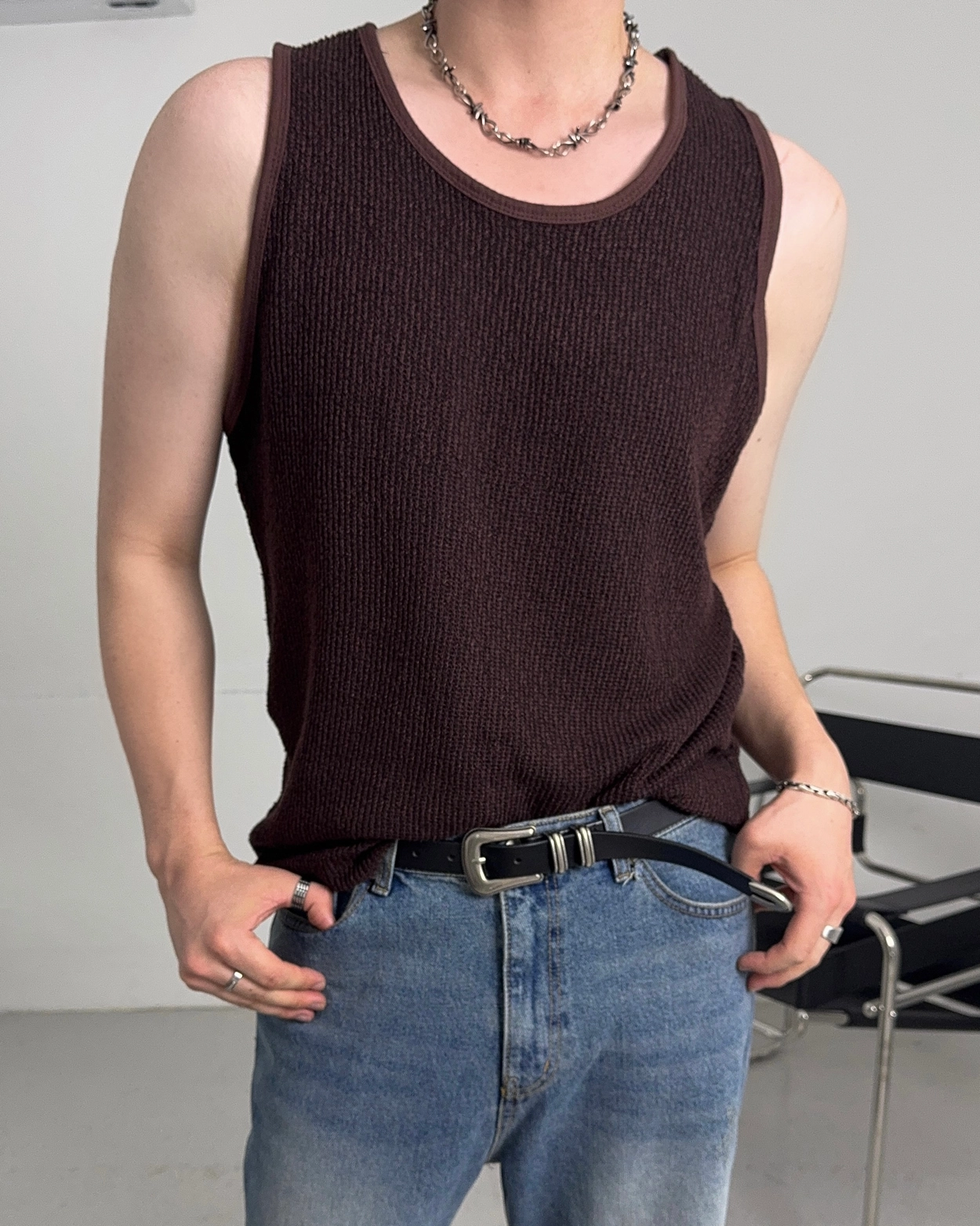(1+1) [MUSCLE FIT] 지프 사이드 라인 골지 나시 티셔츠 3COL