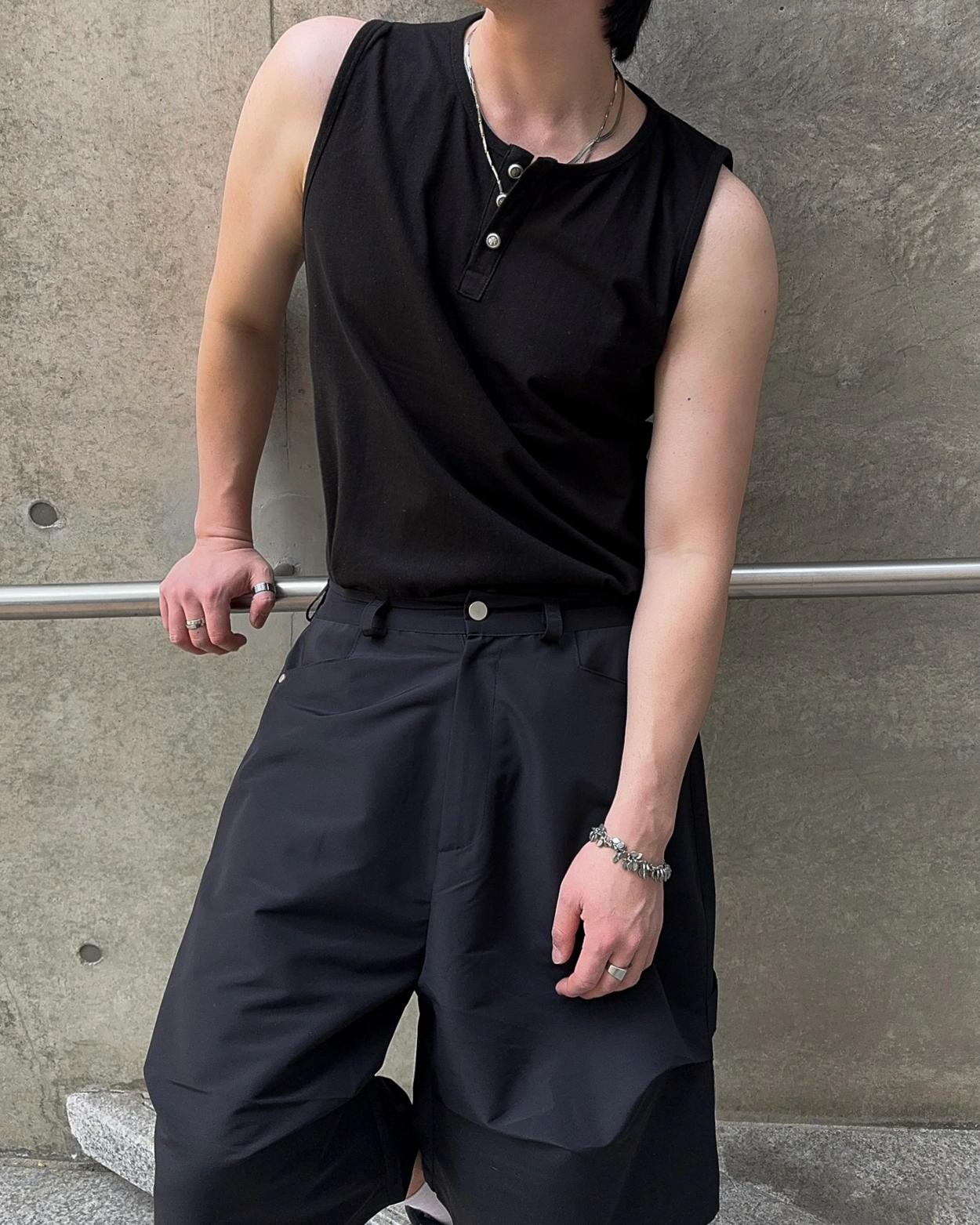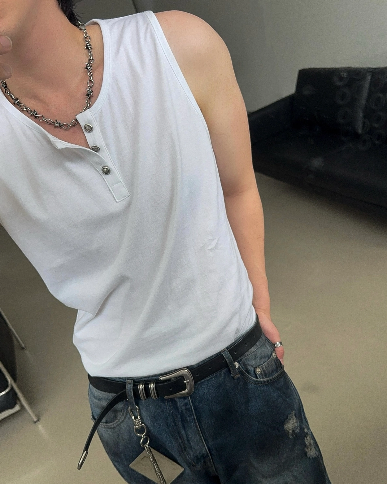 [MUSCLE FIT] 언프 메탈 헨리넥 나시 골지 티셔츠 4COL