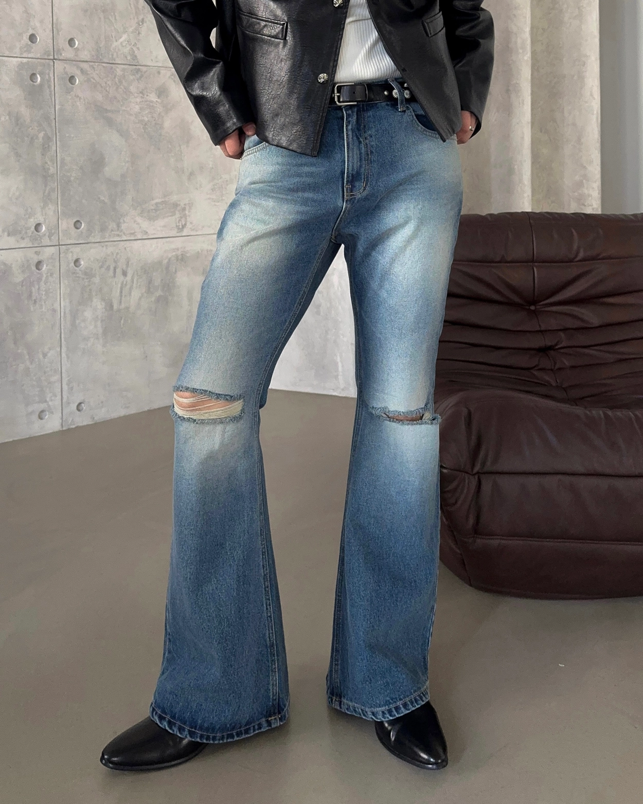 *M 당일출고* [주문폭주] 러시안 데미지 플레어 데님 팬츠