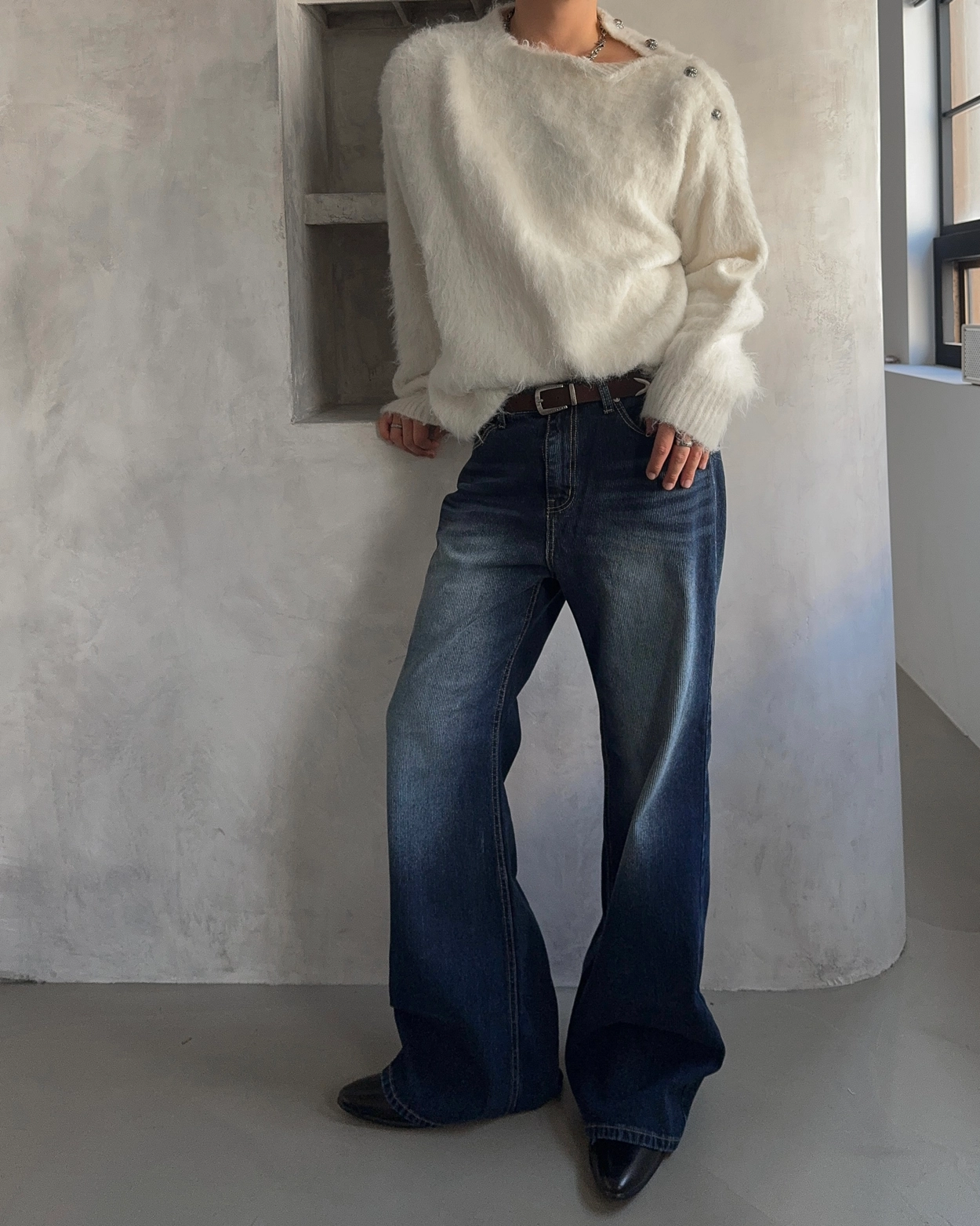 바이어 캣브러쉬 플레어 데님 팬츠 2COL