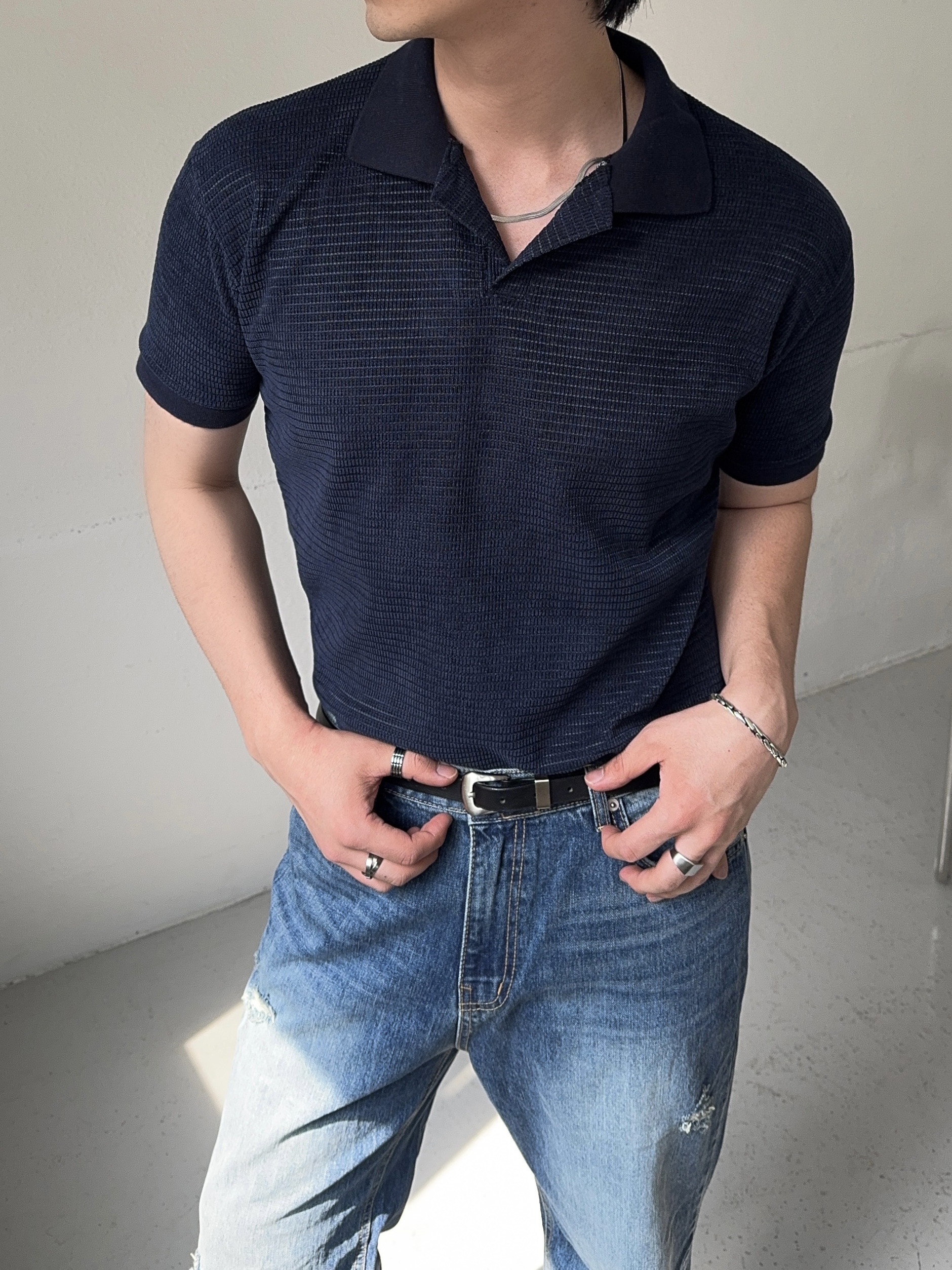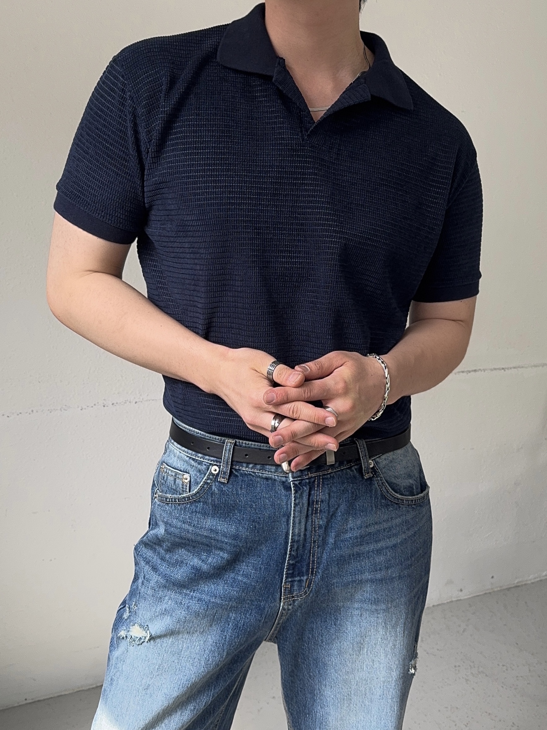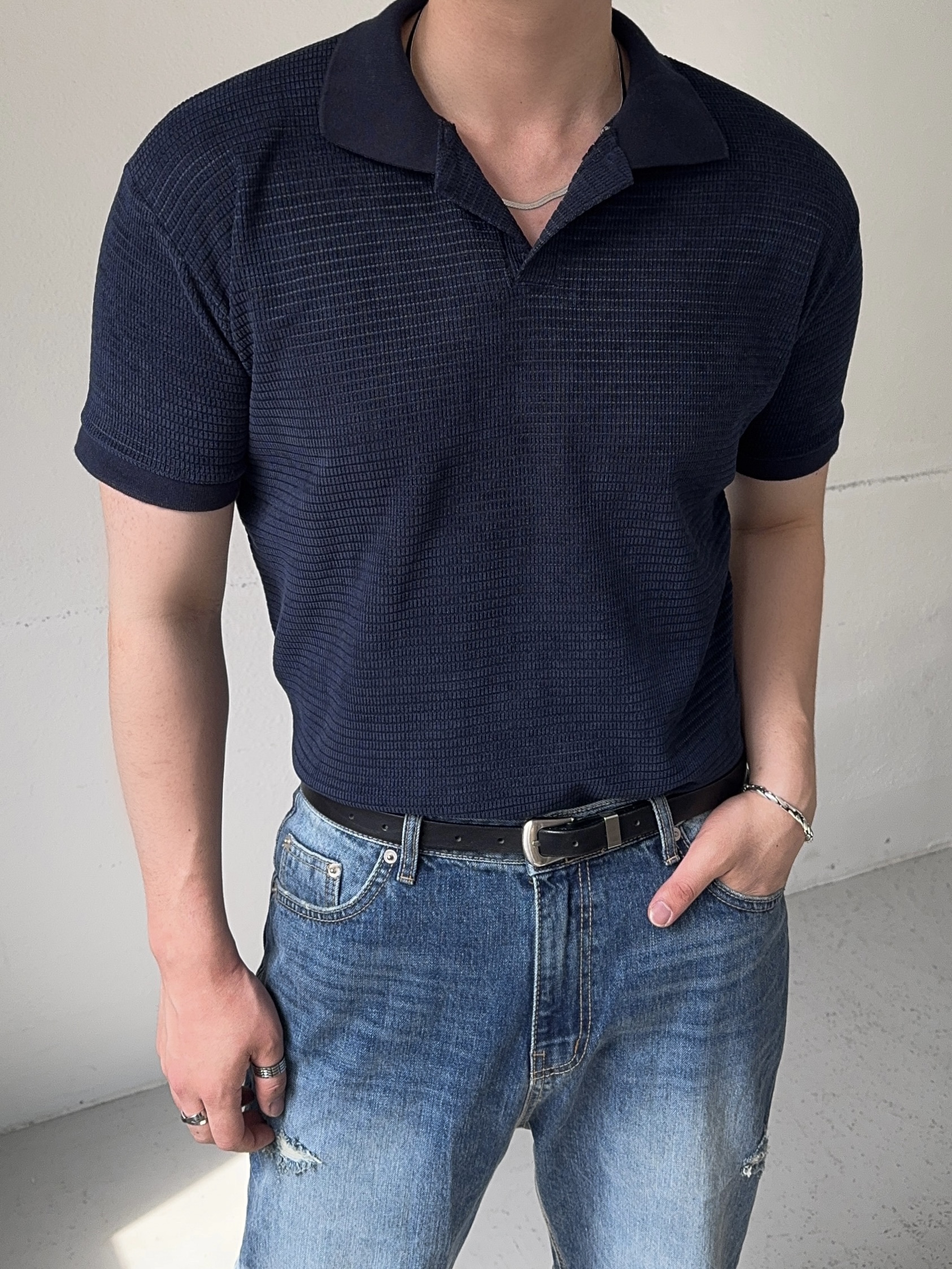 -소재가 돋보이는 벨로아 원단의 반팔 니트