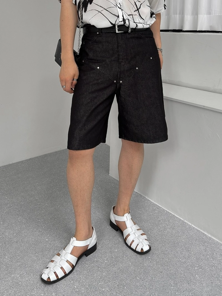 -이염 , 물빠짐 없는 논페이드 데님 원단으로 제작된 버뮤다 팬츠