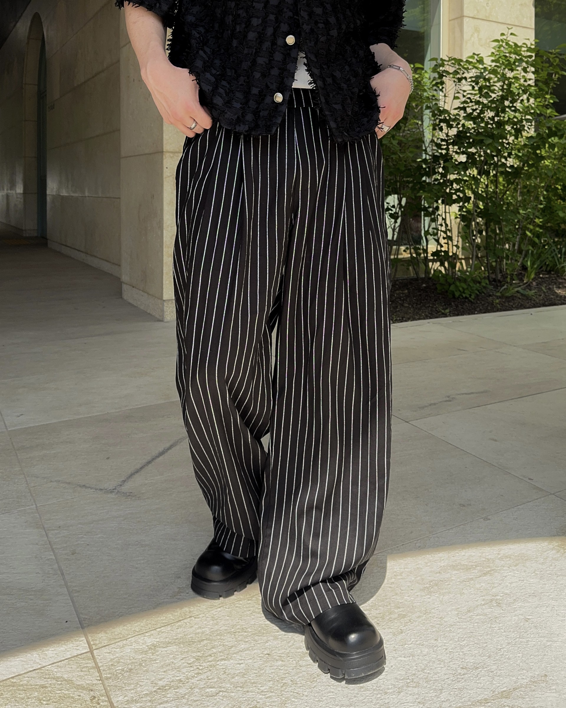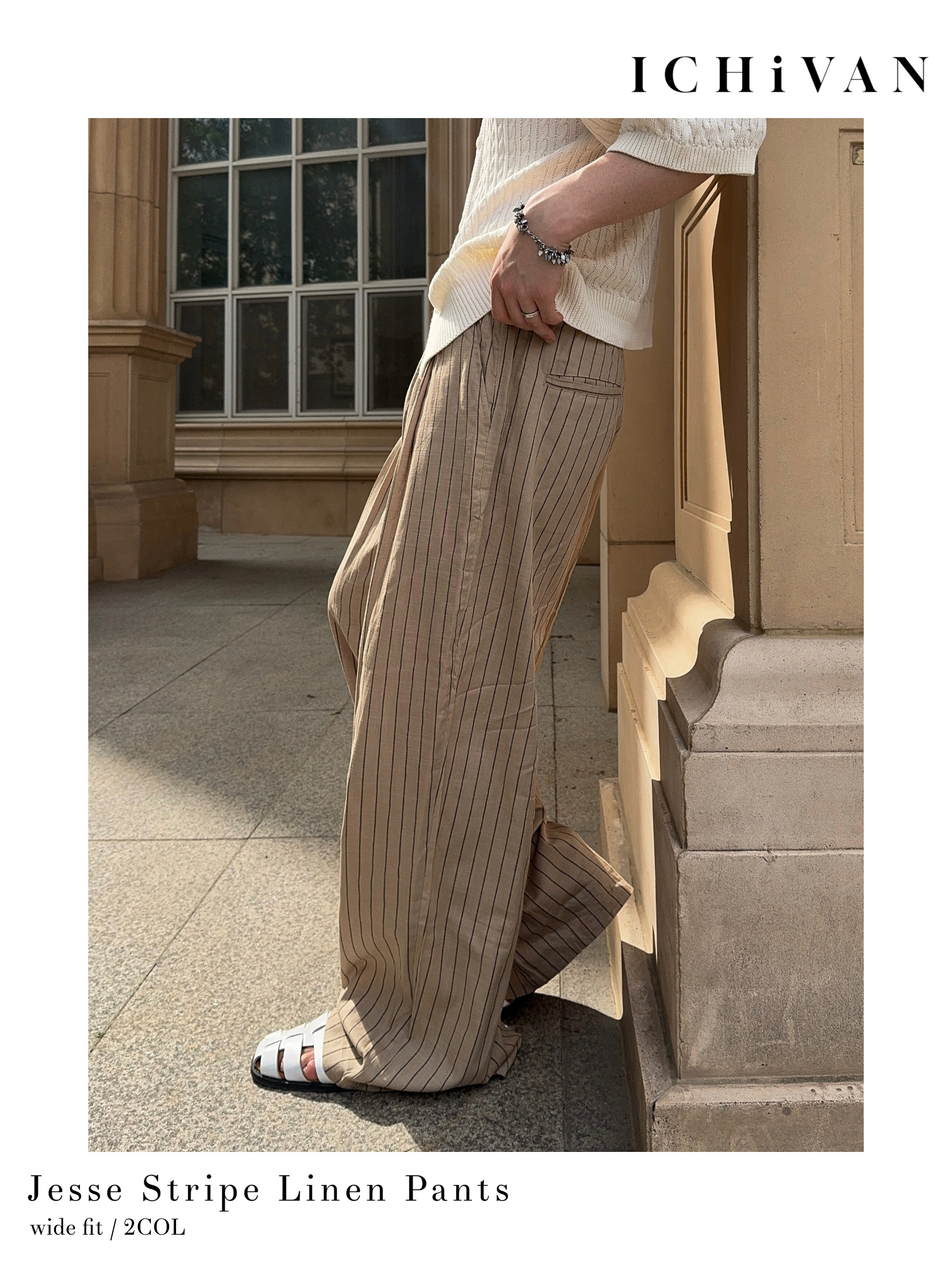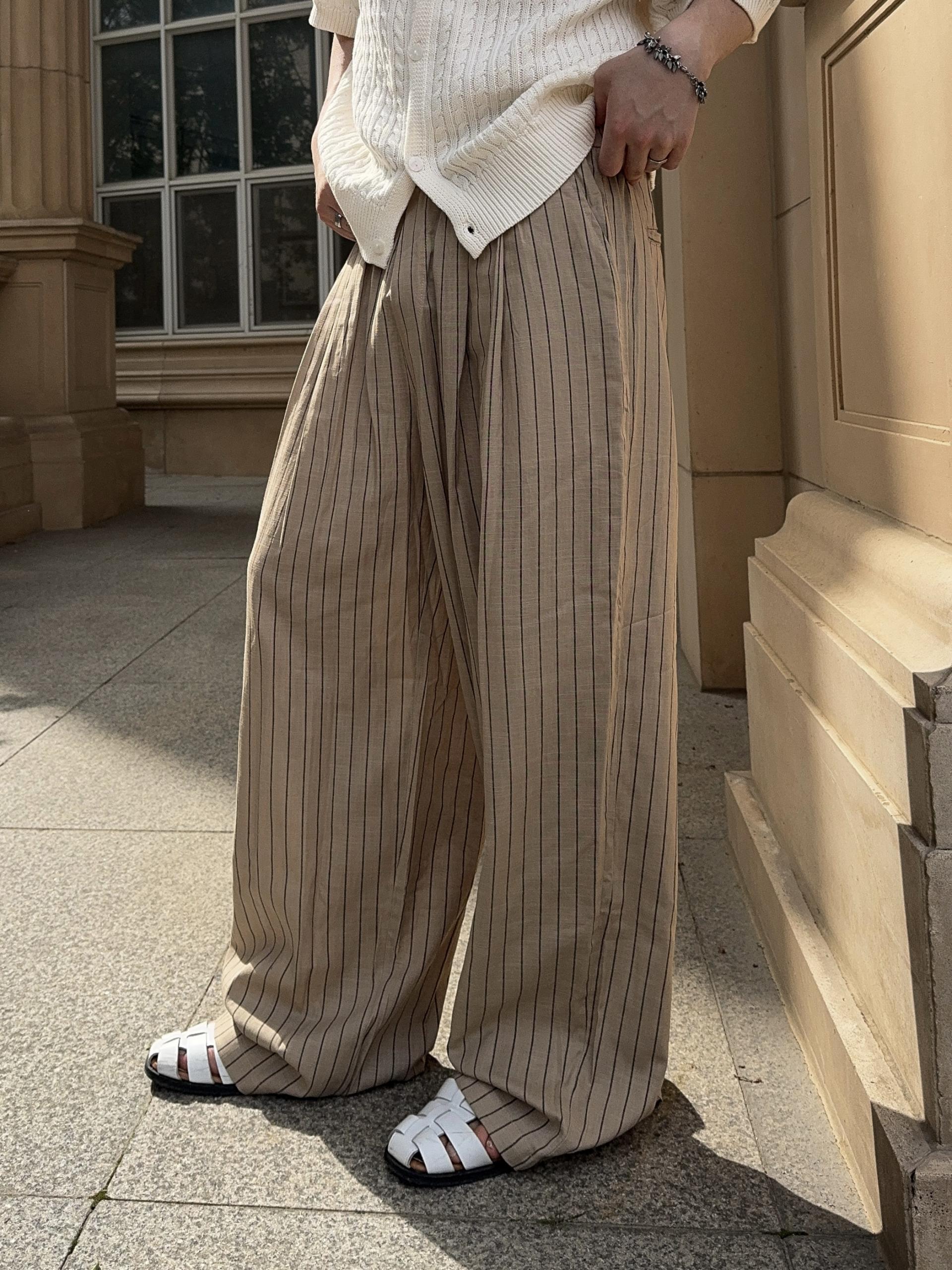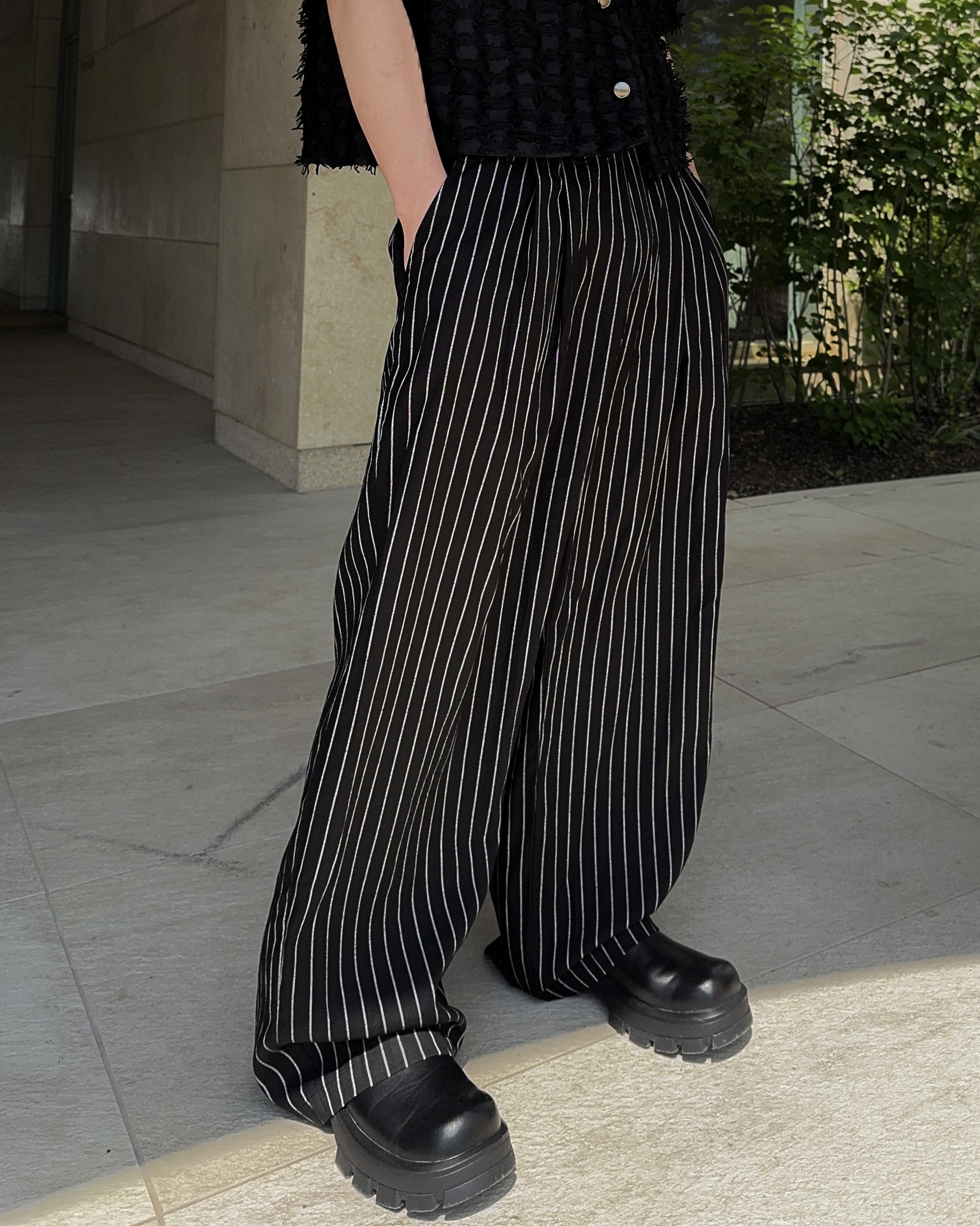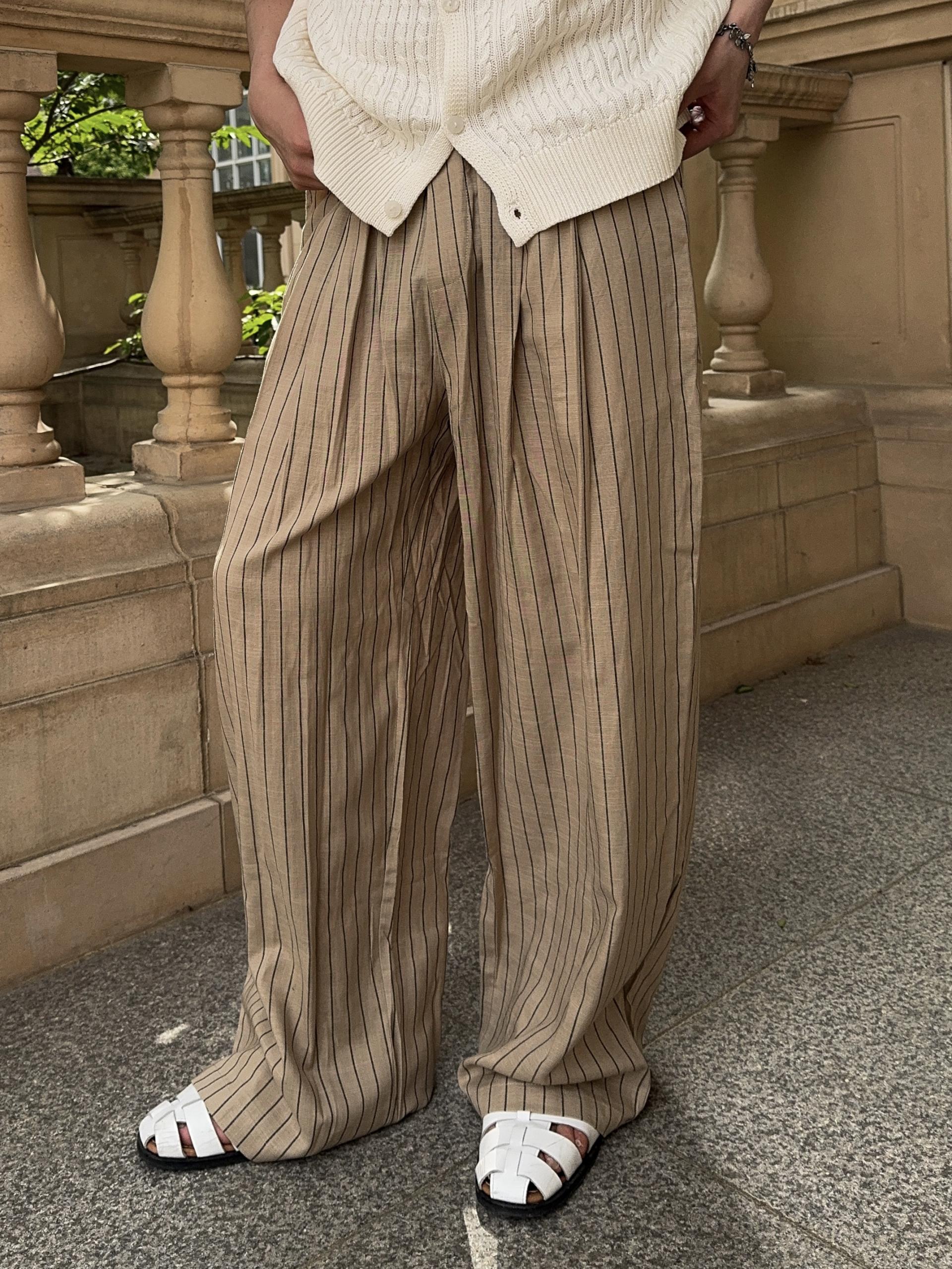 -탄탄한 텐셀,린넨 소재로 제작된 스트라이프 팬츠