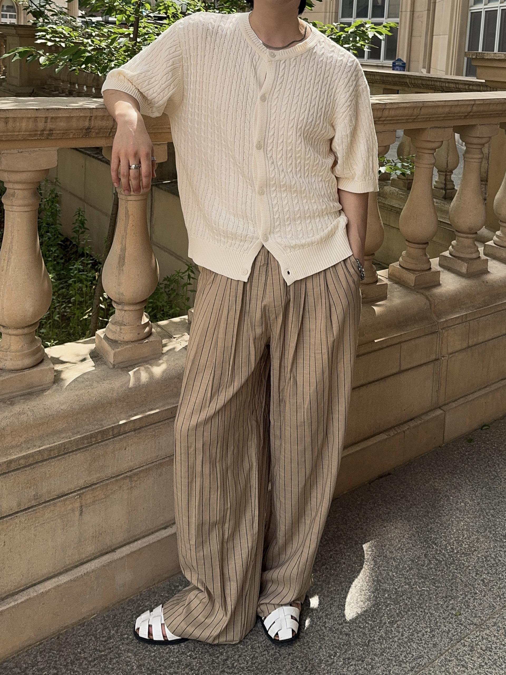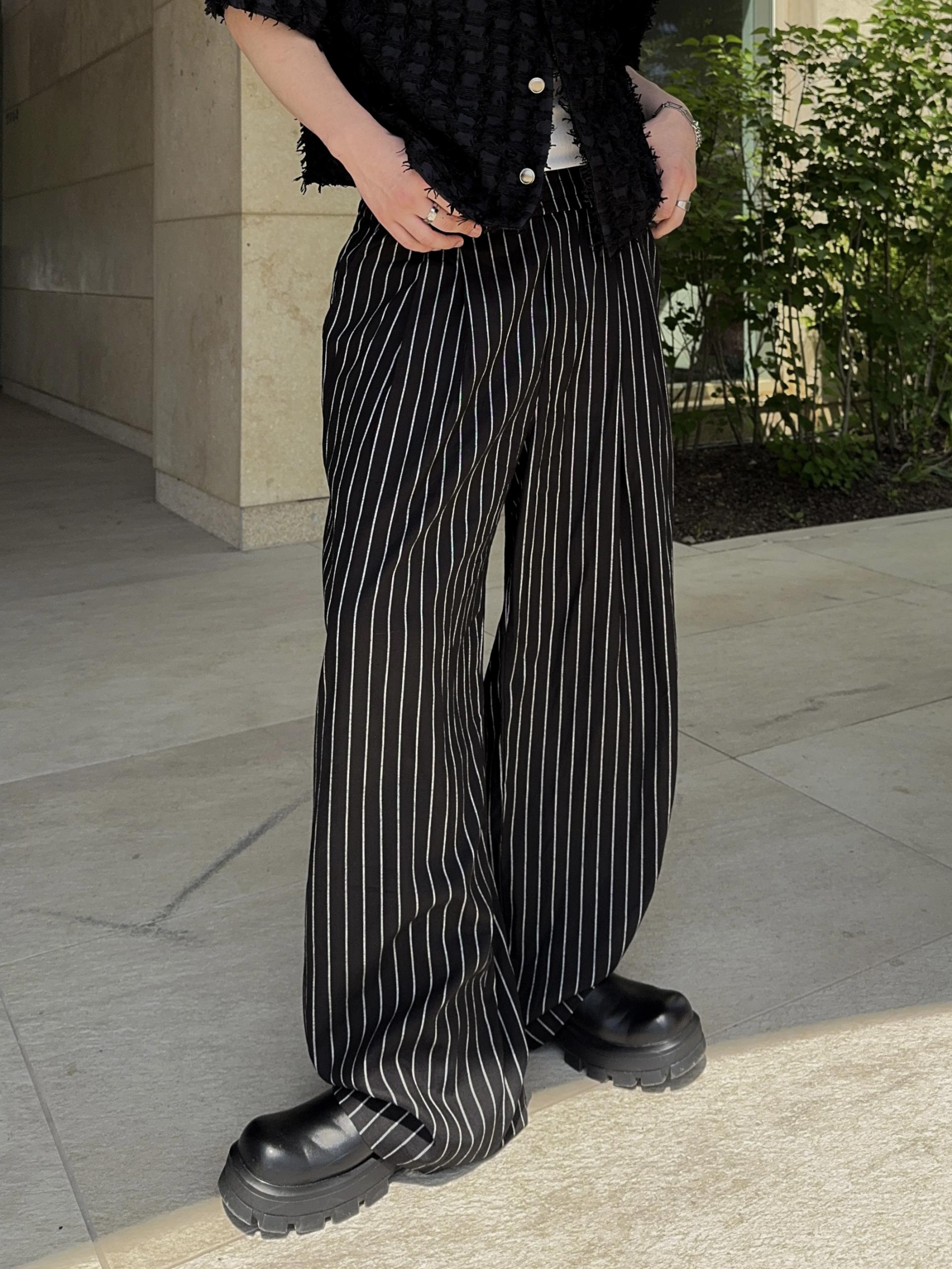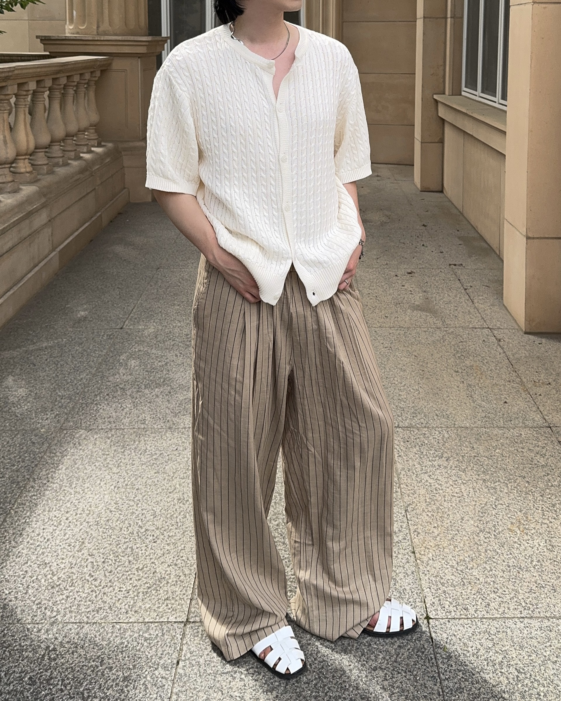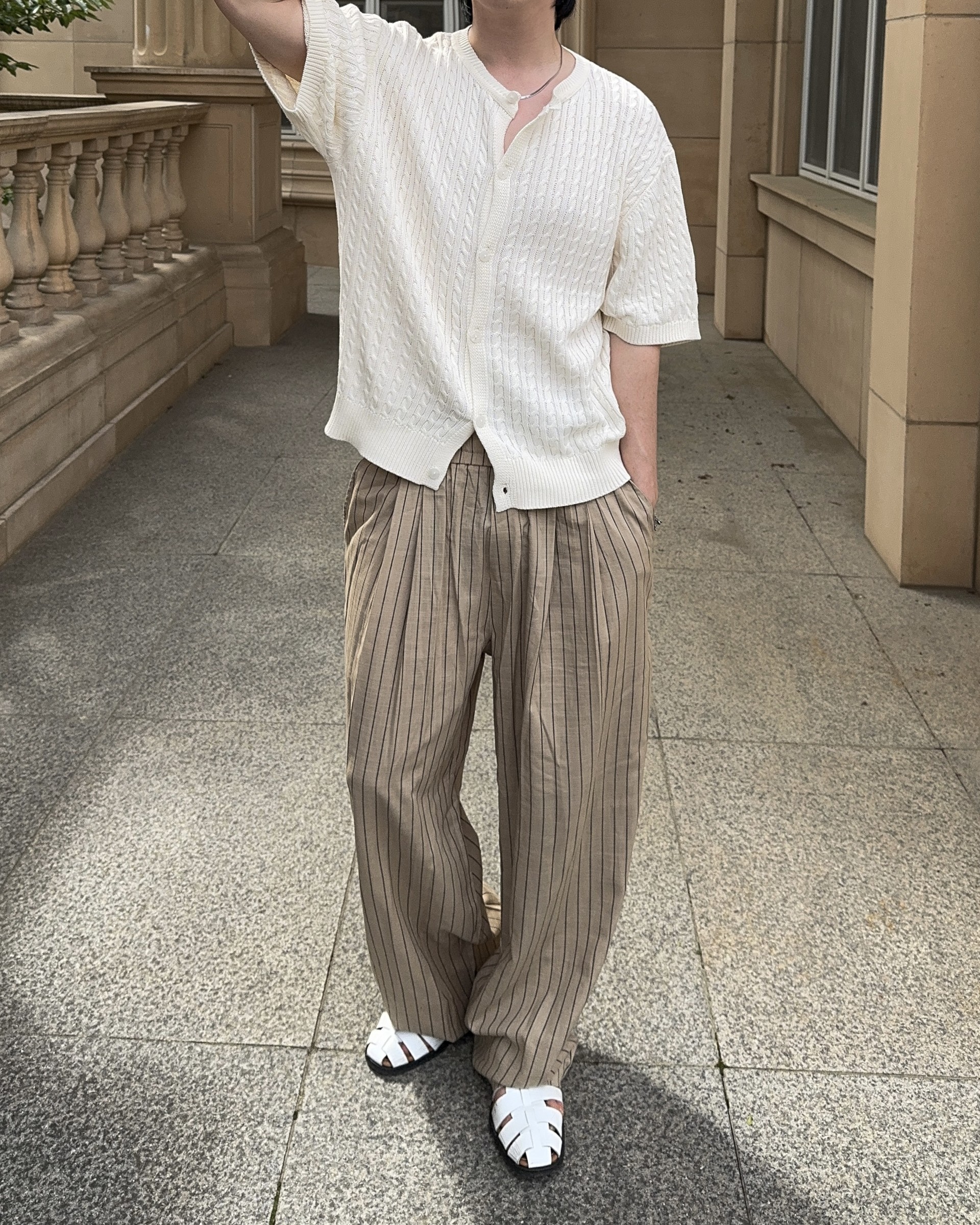 -탄탄한 텐셀,린넨 소재로 제작된 스트라이프 팬츠