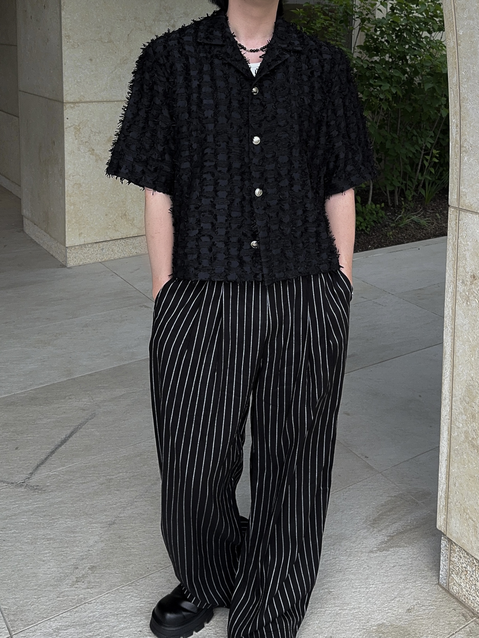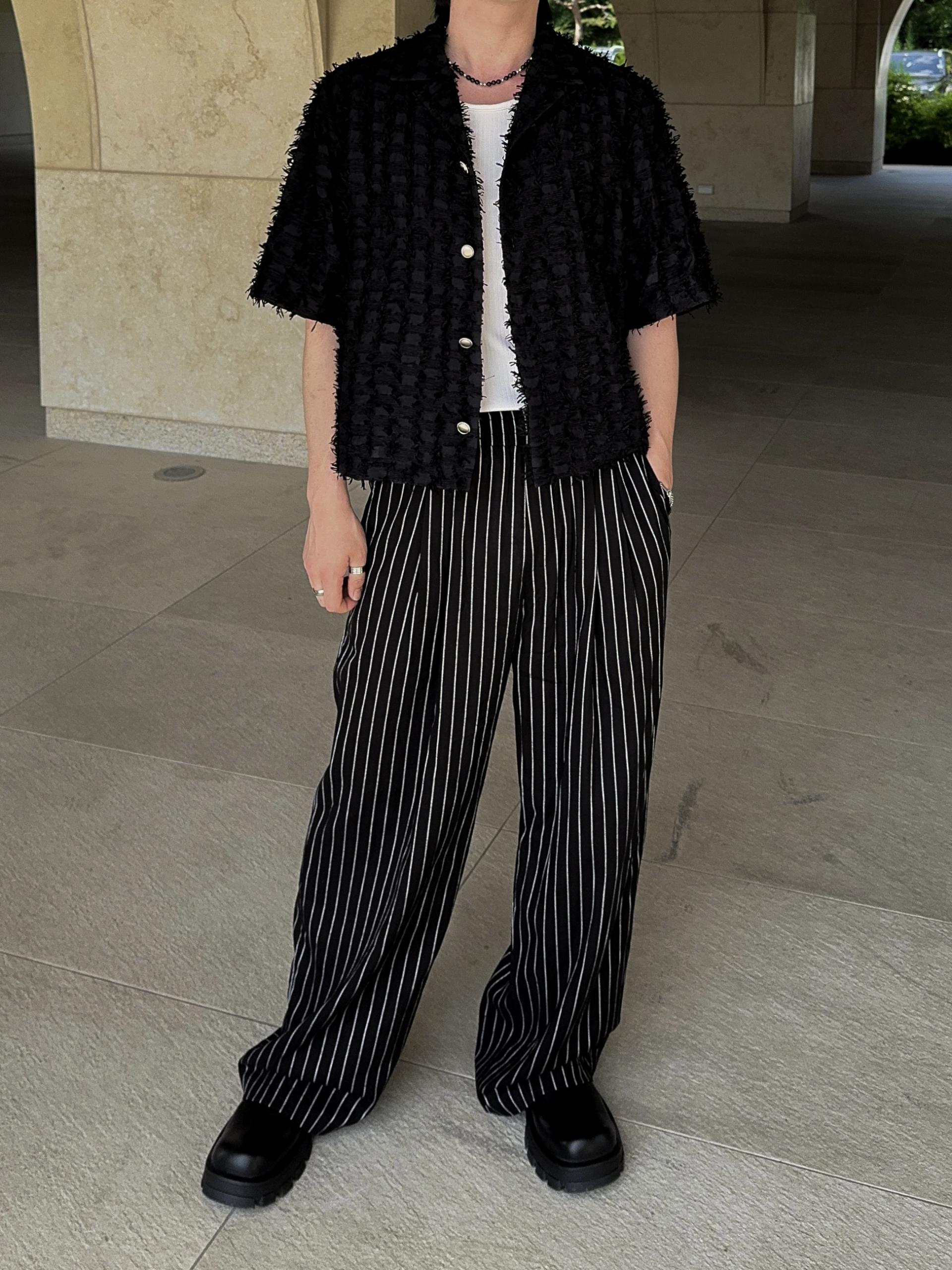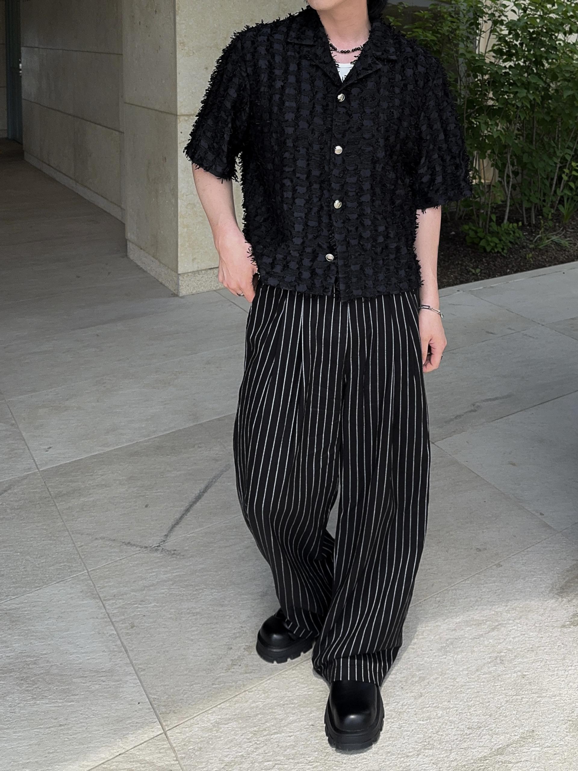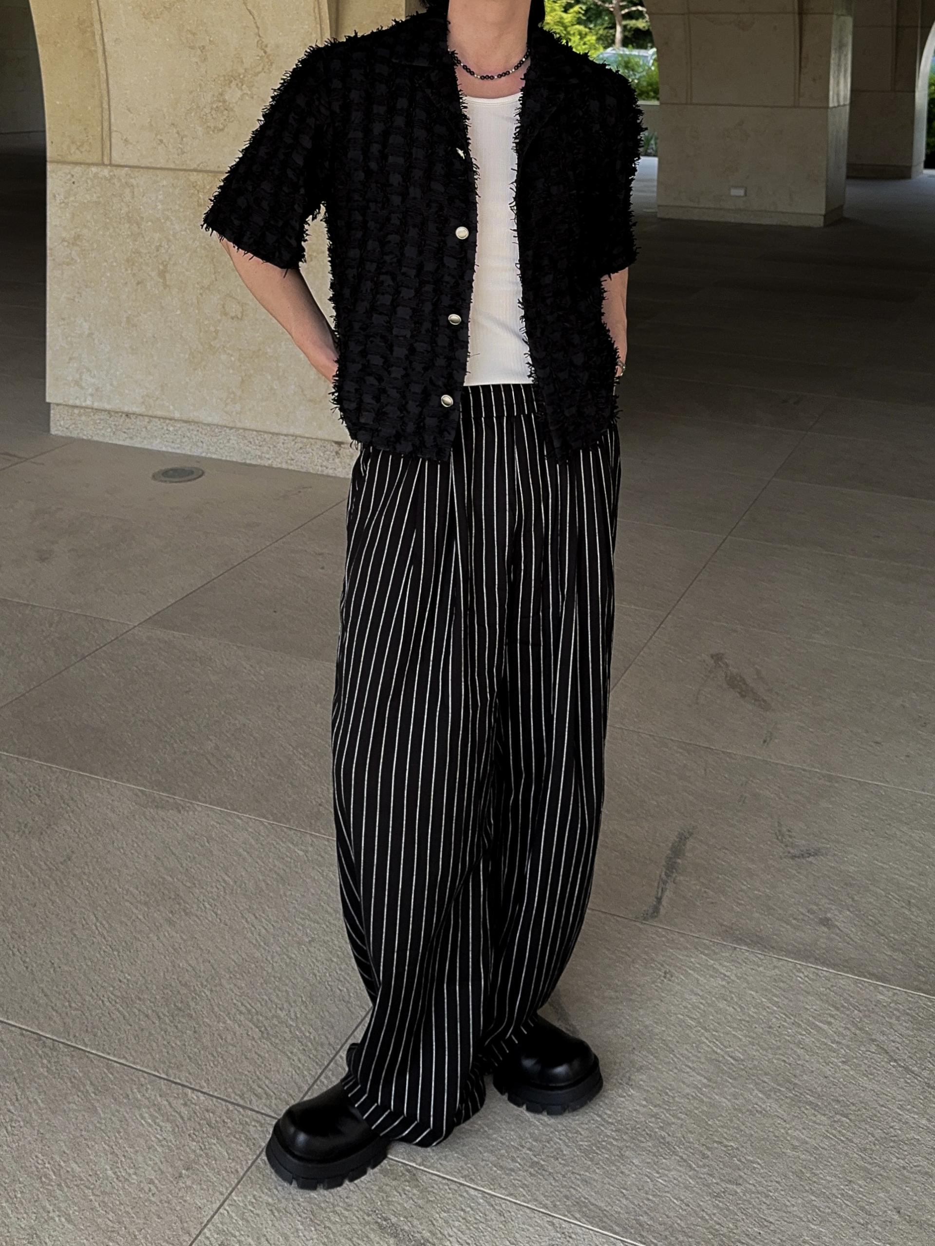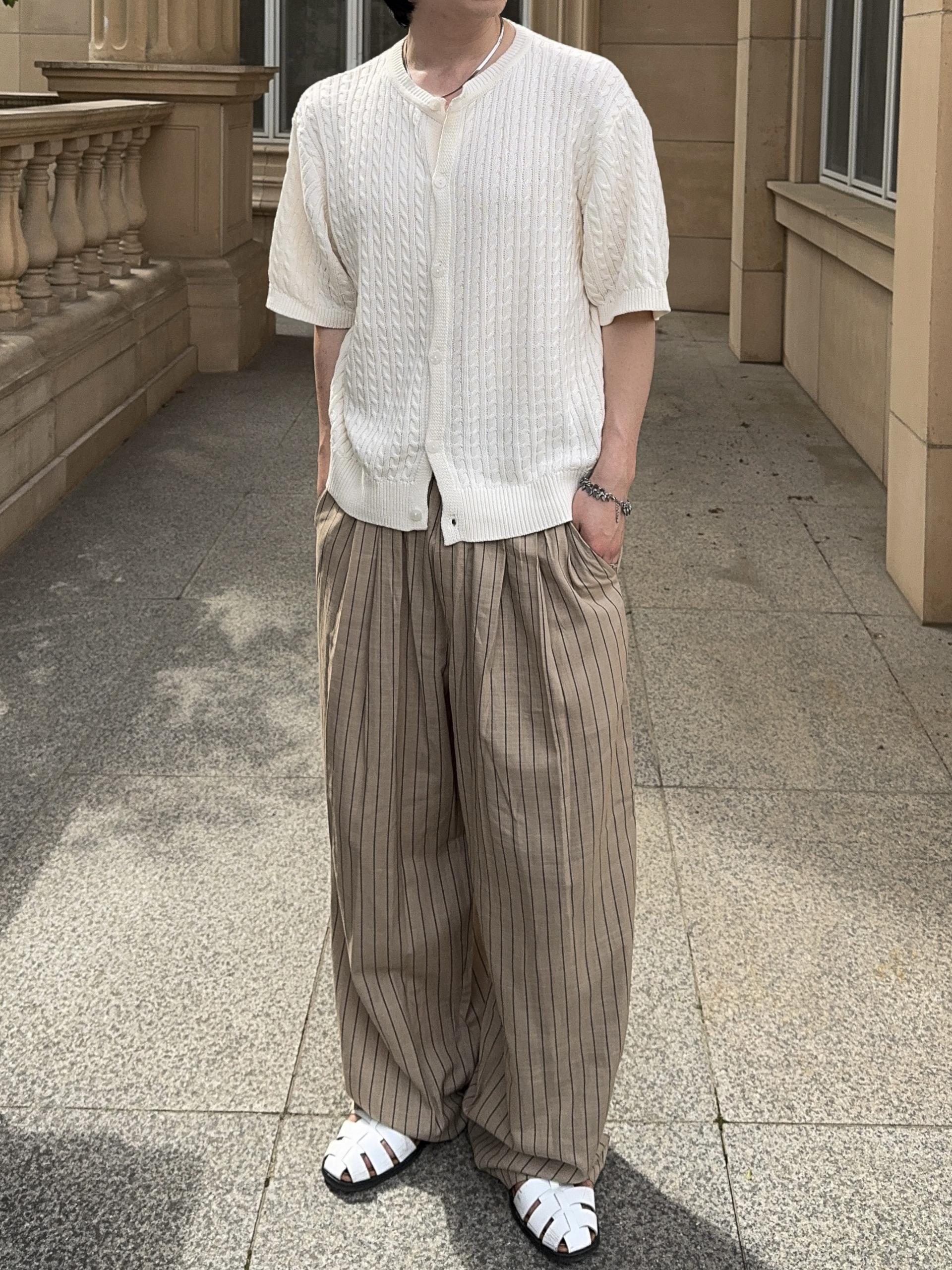 -탄탄한 텐셀,린넨 소재로 제작된 스트라이프 팬츠