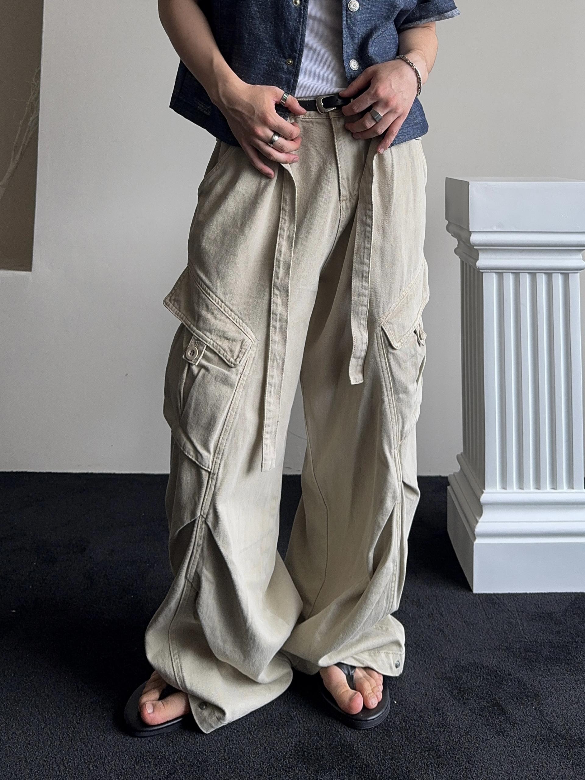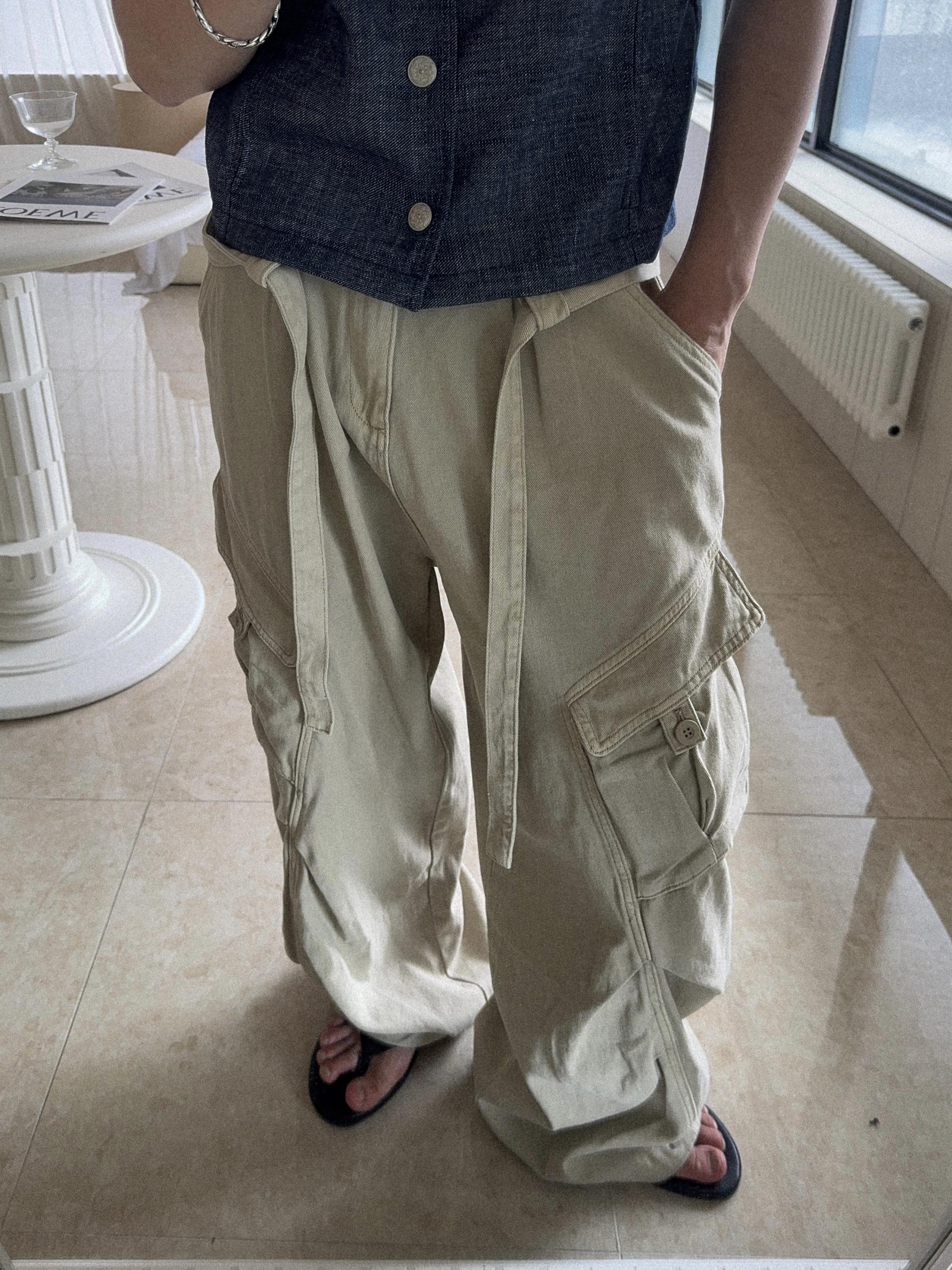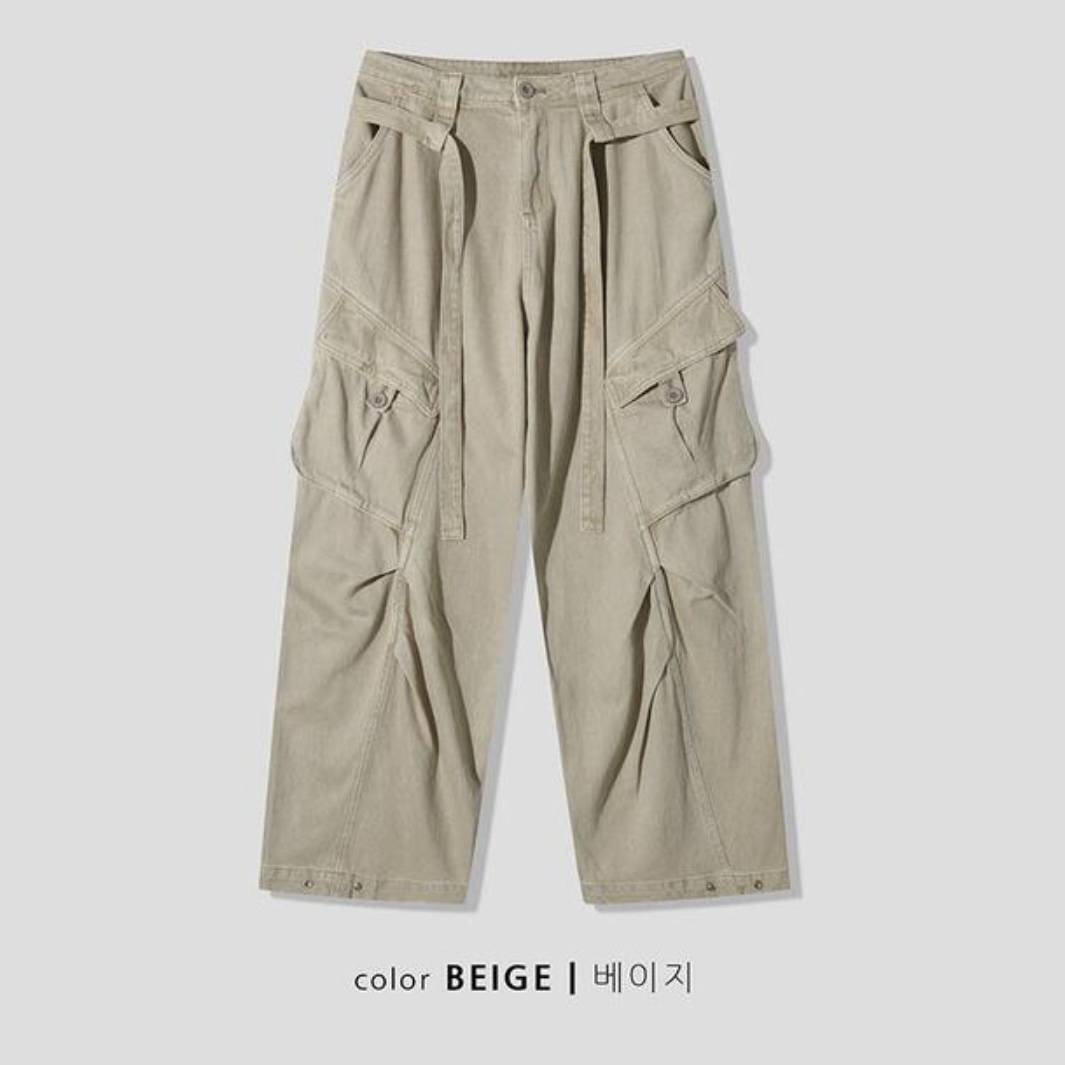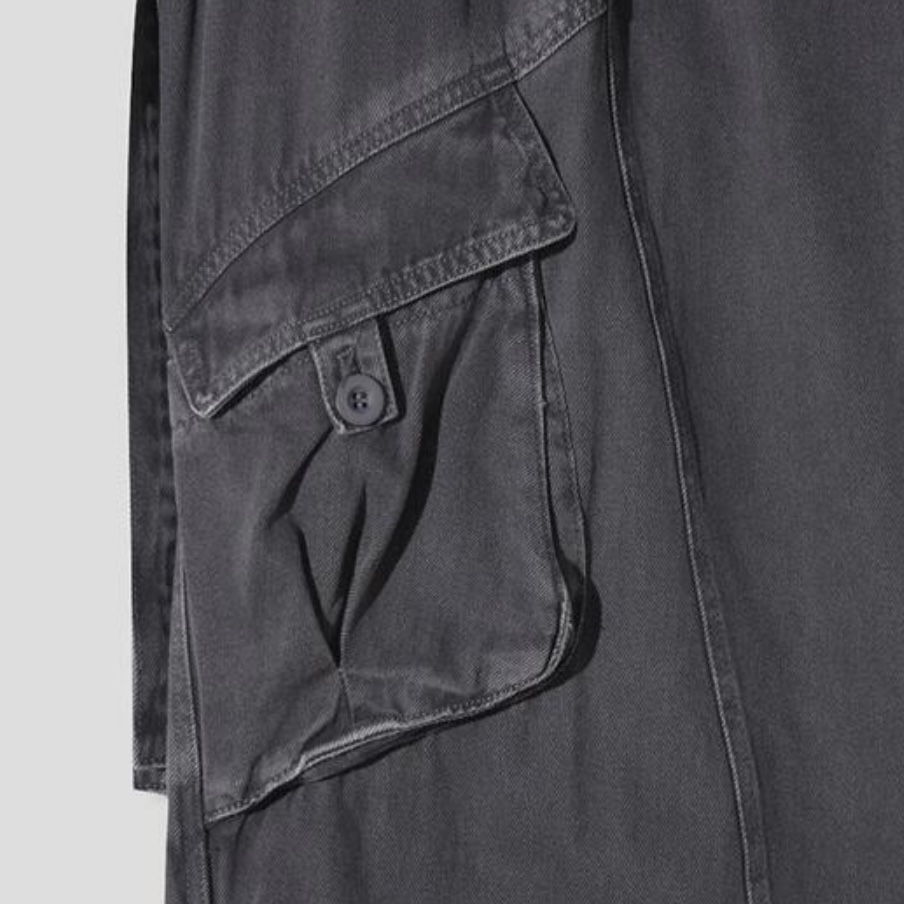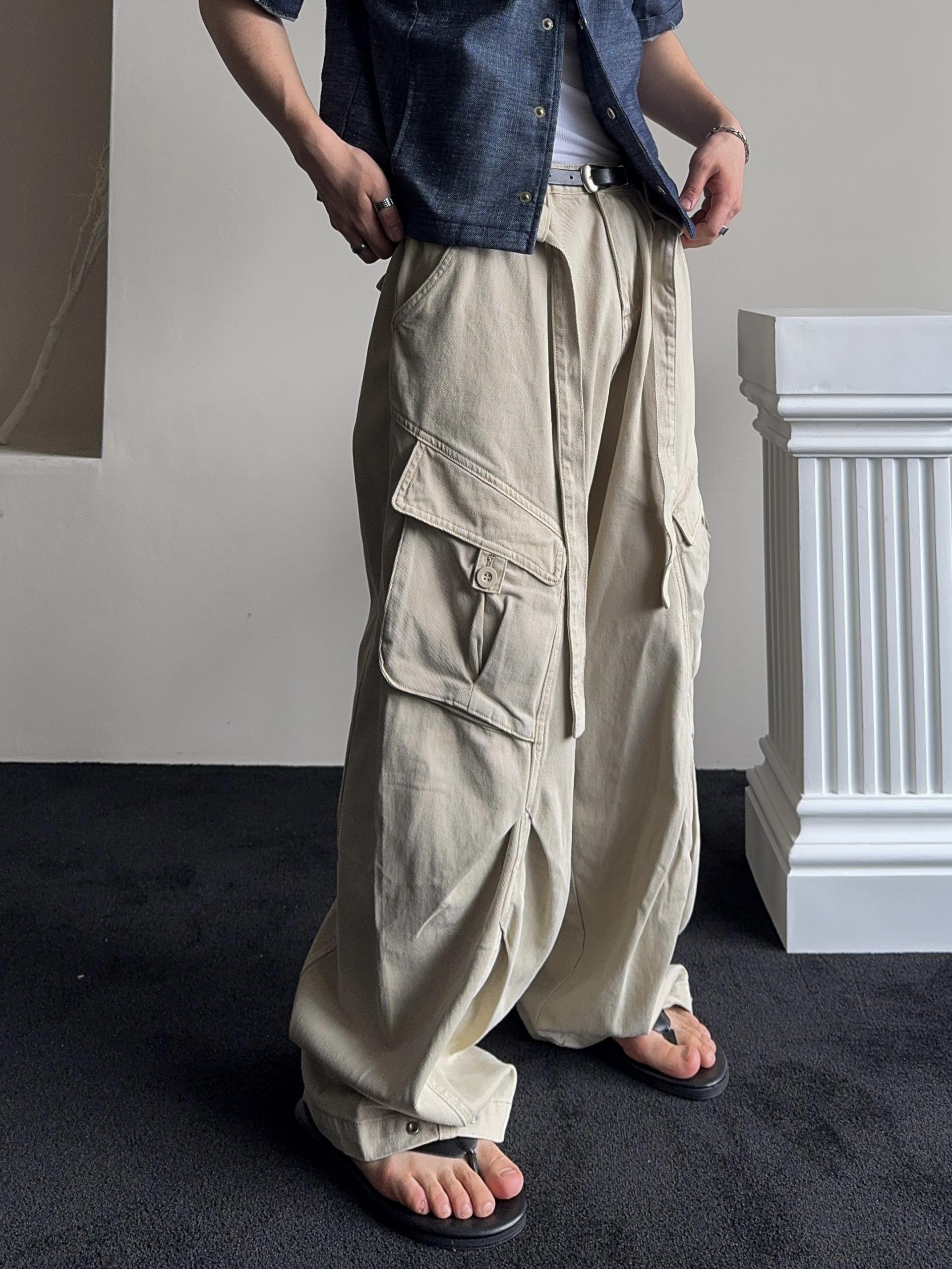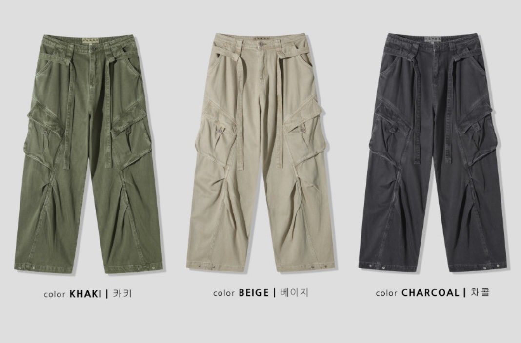 -탄탄한 코튼 원단으로 제작된 와이드 카고 팬츠