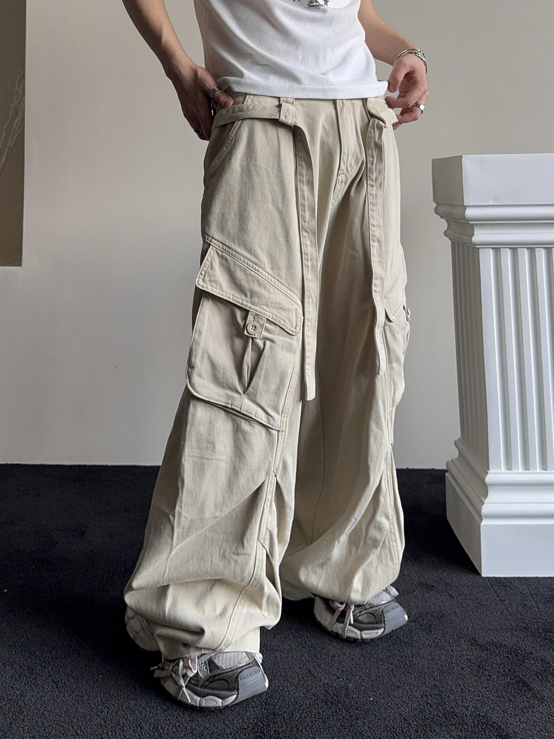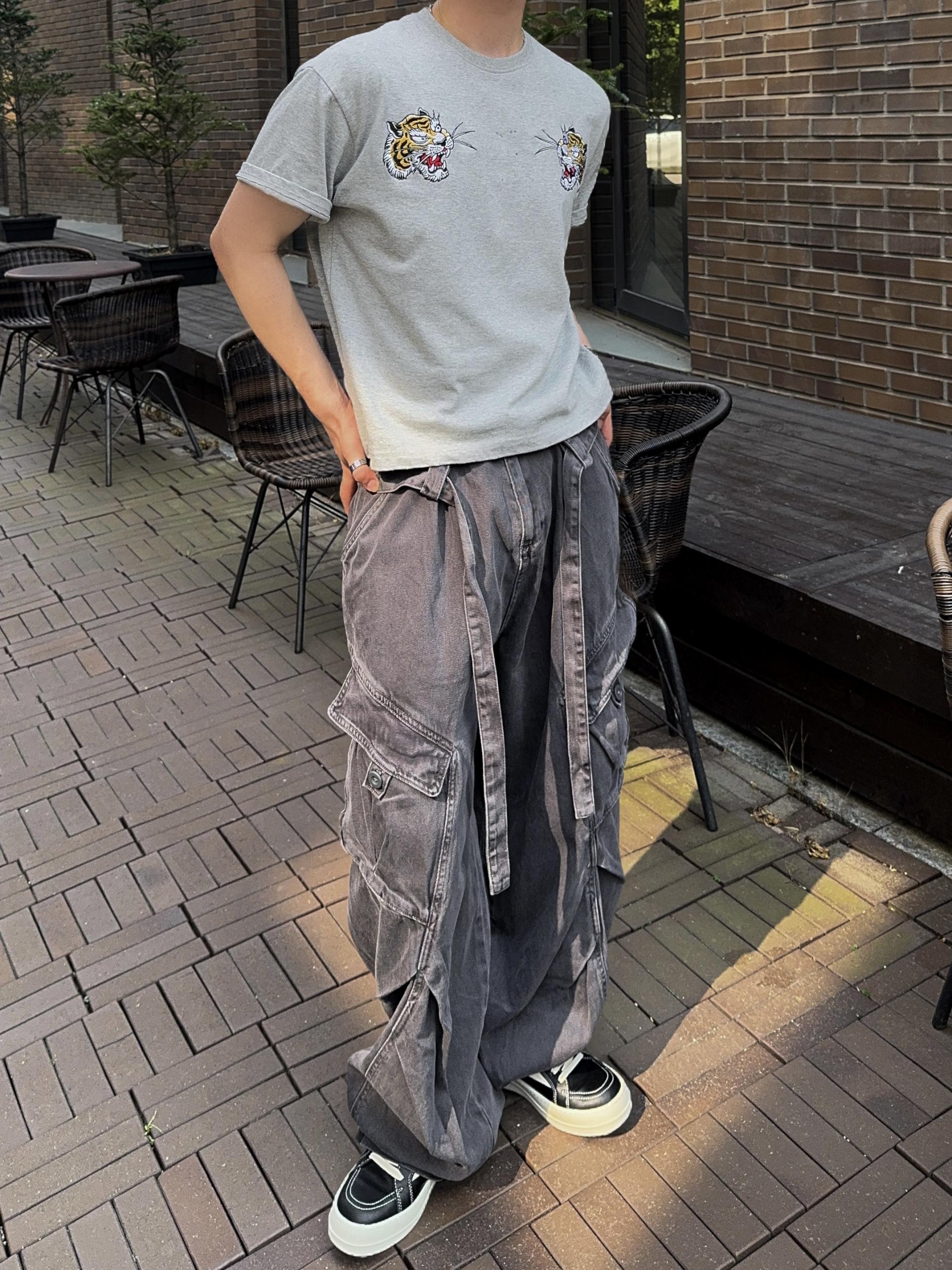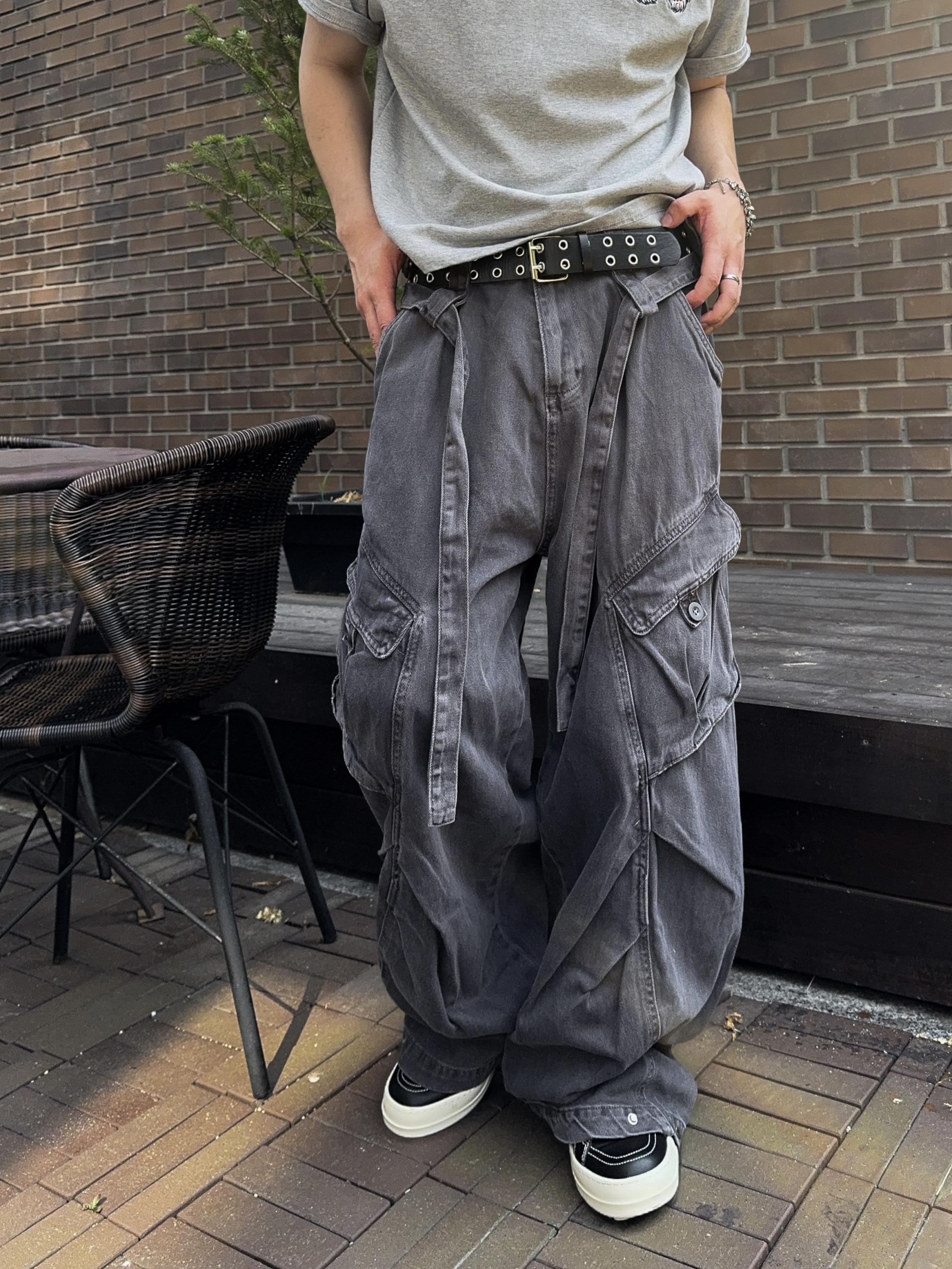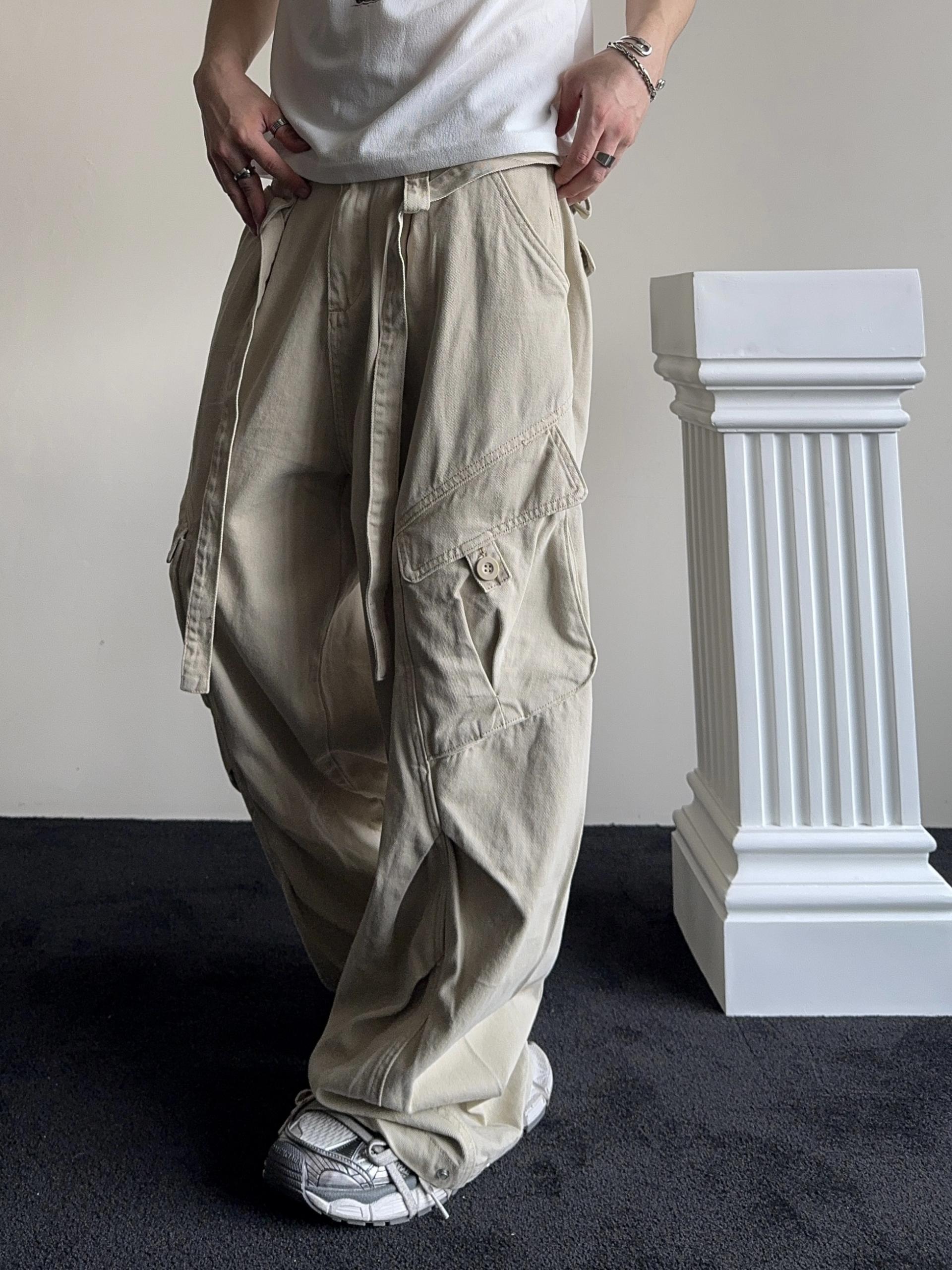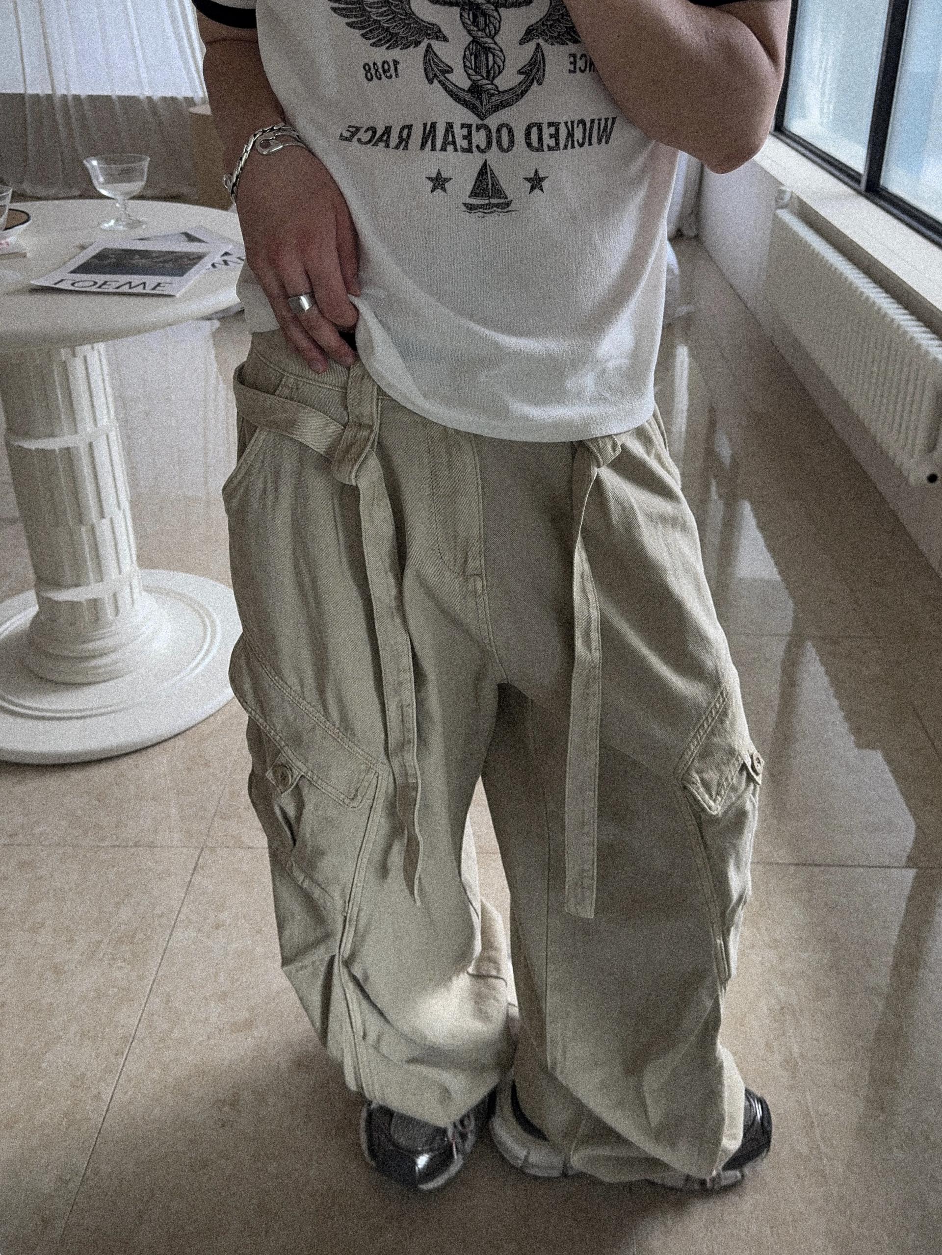 -탄탄한 코튼 원단으로 제작된 와이드 카고 팬츠