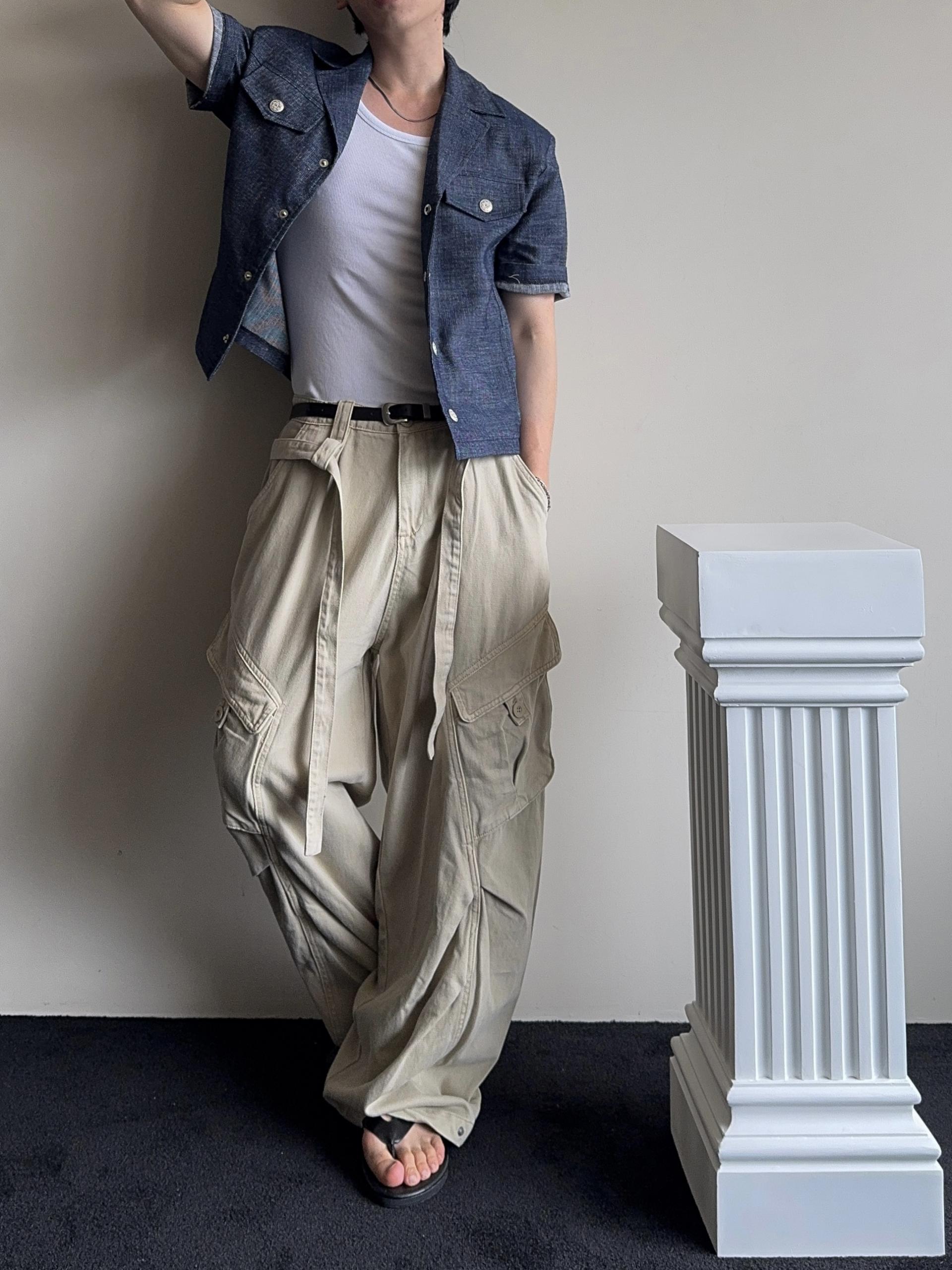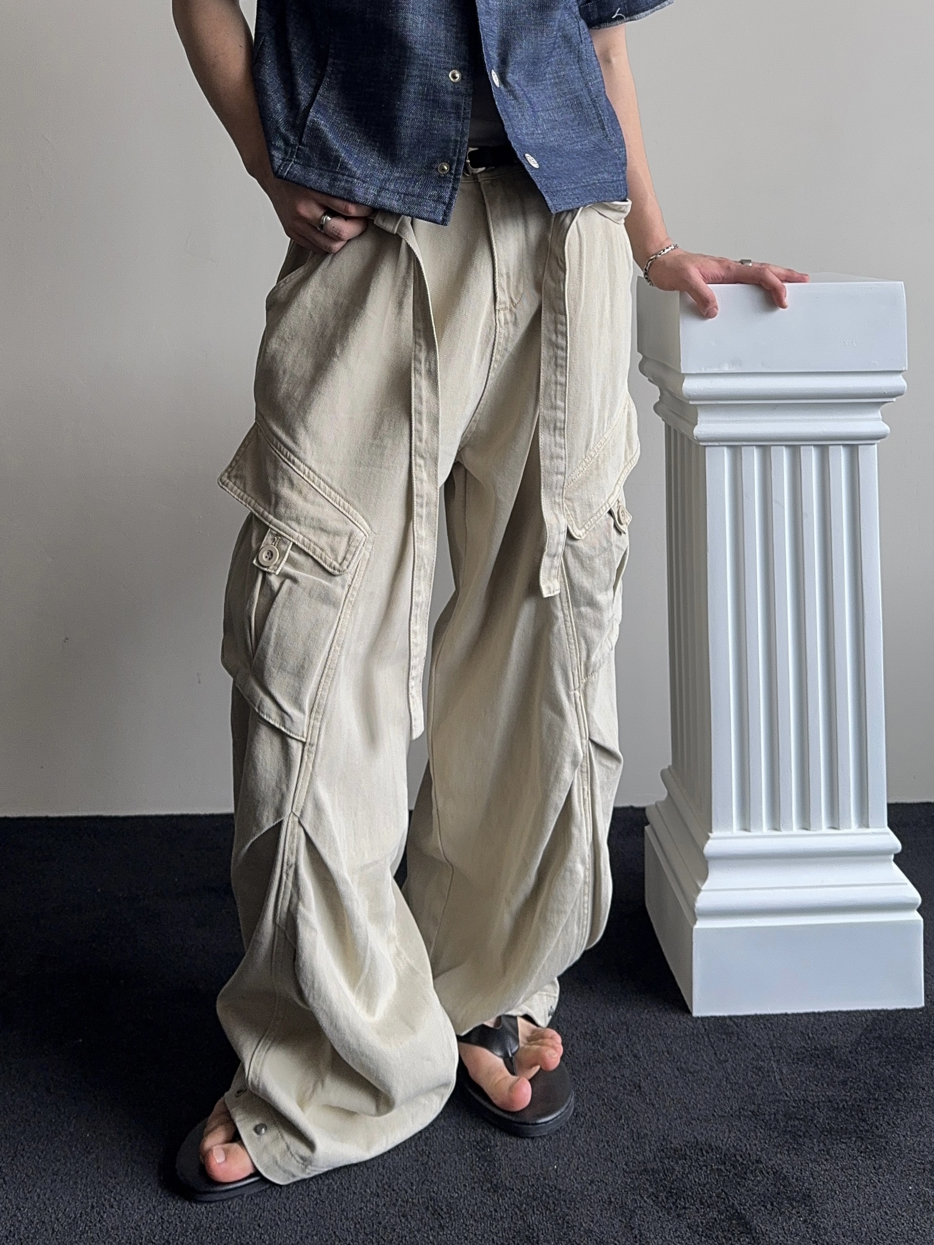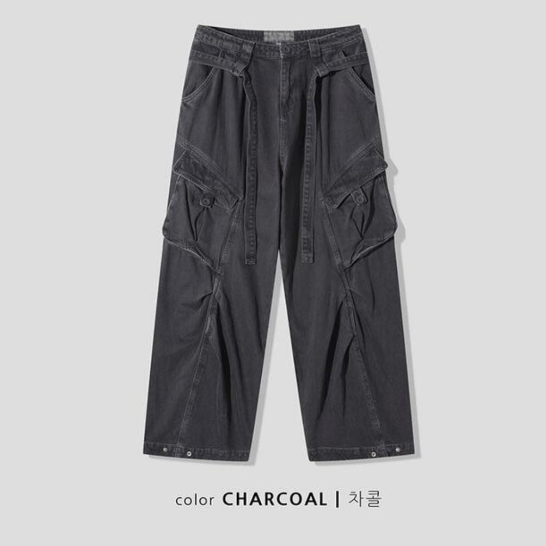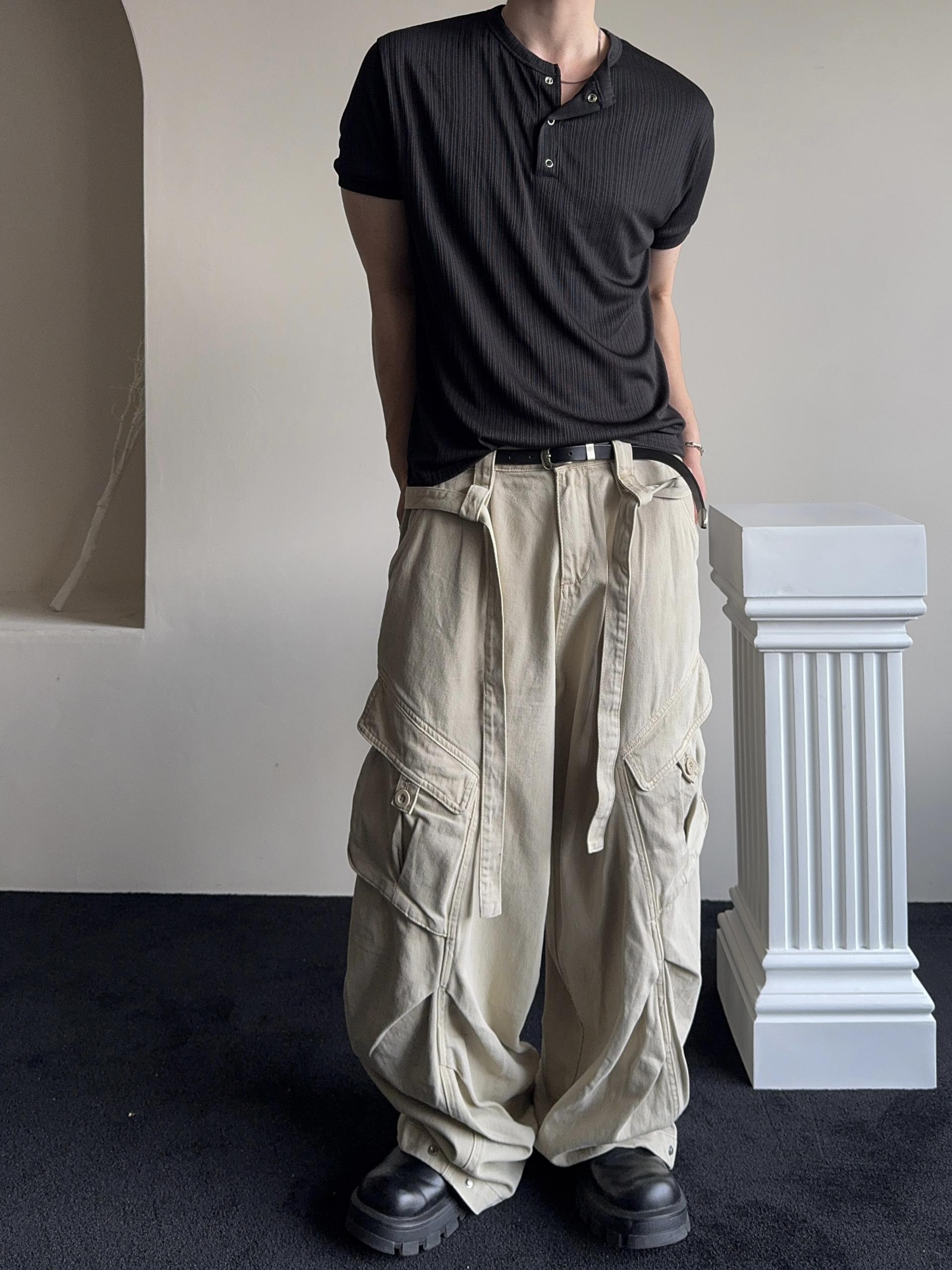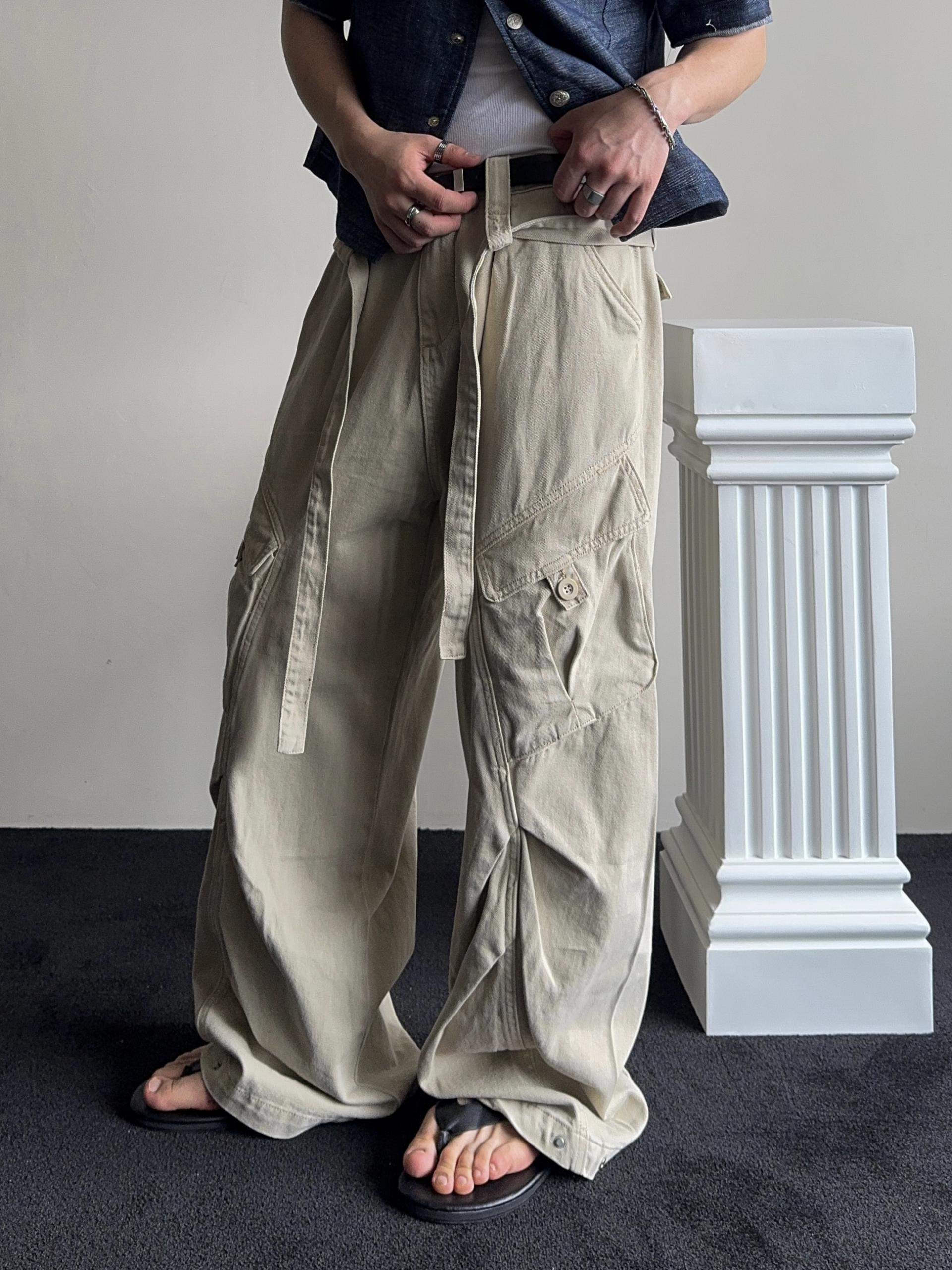 -탄탄한 코튼 원단으로 제작된 와이드 카고 팬츠