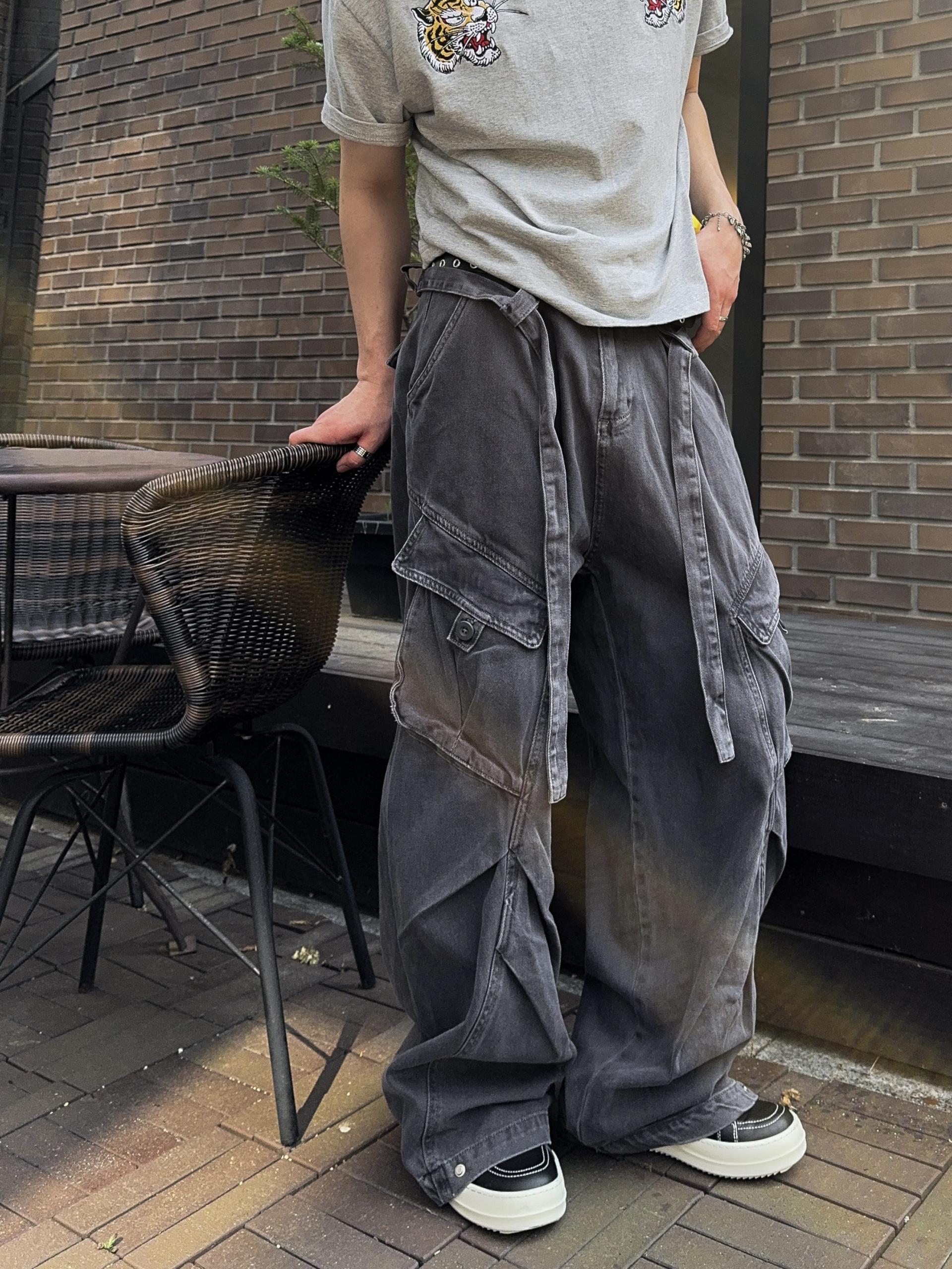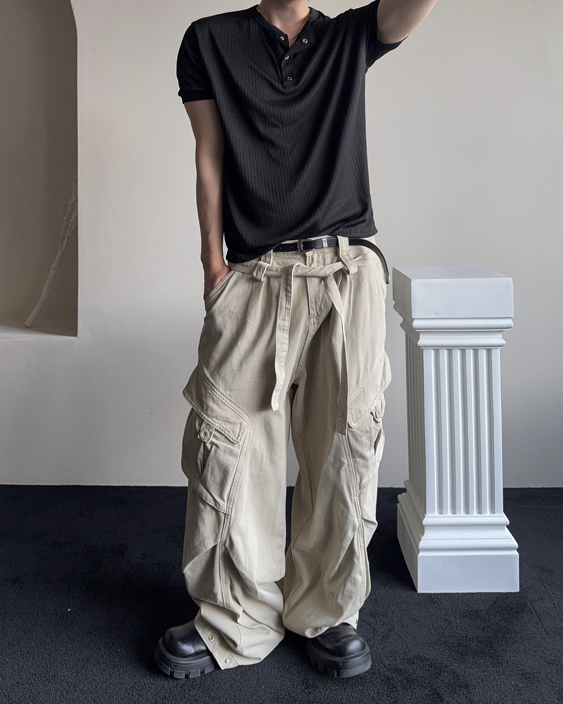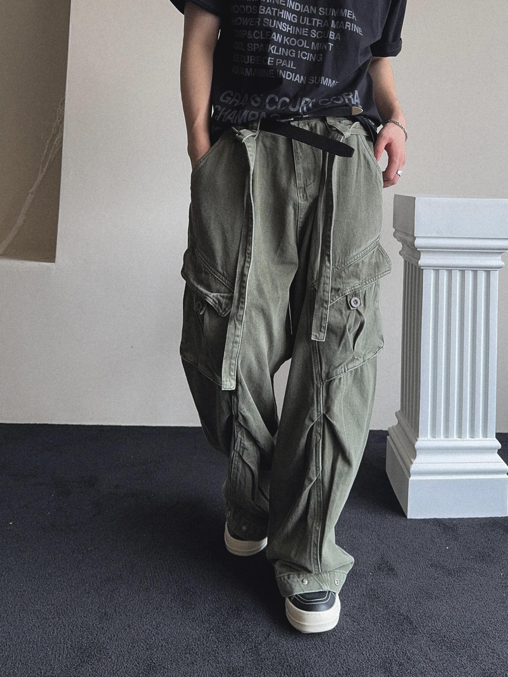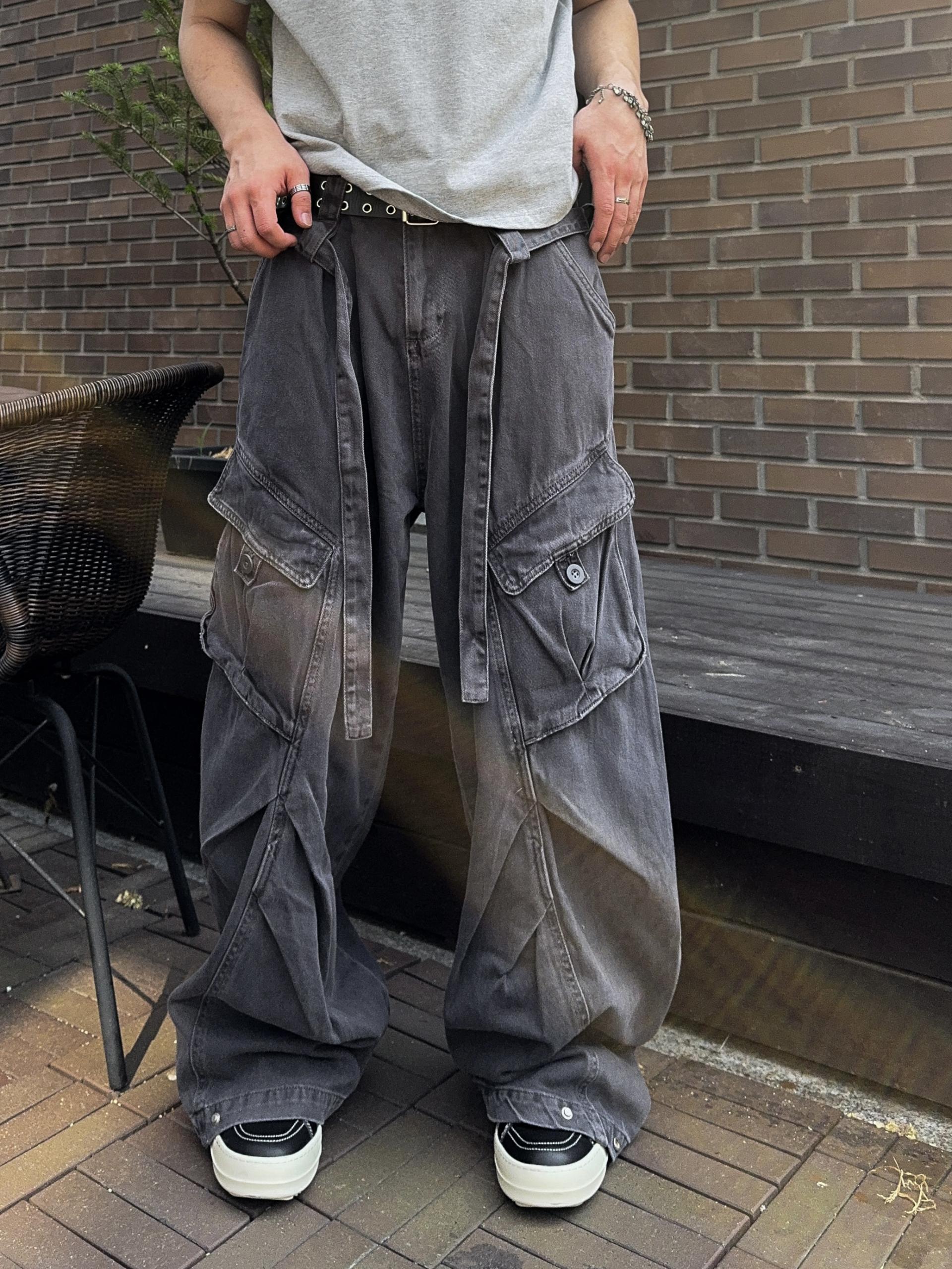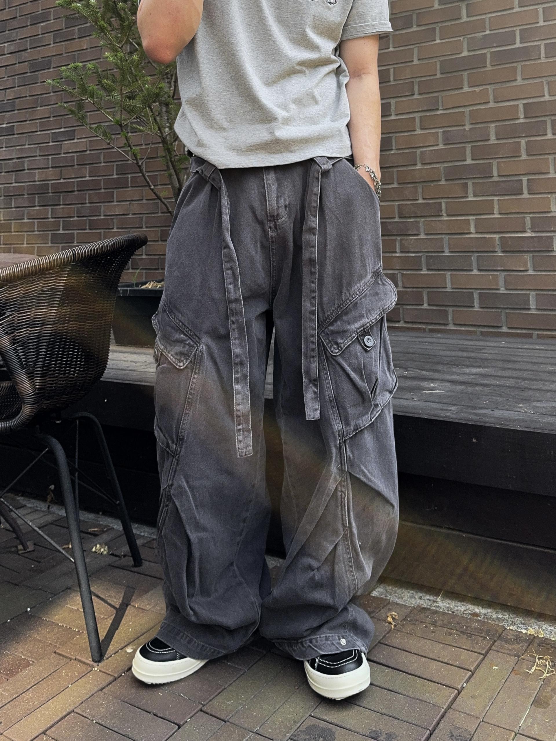 -탄탄한 코튼 원단으로 제작된 와이드 카고 팬츠