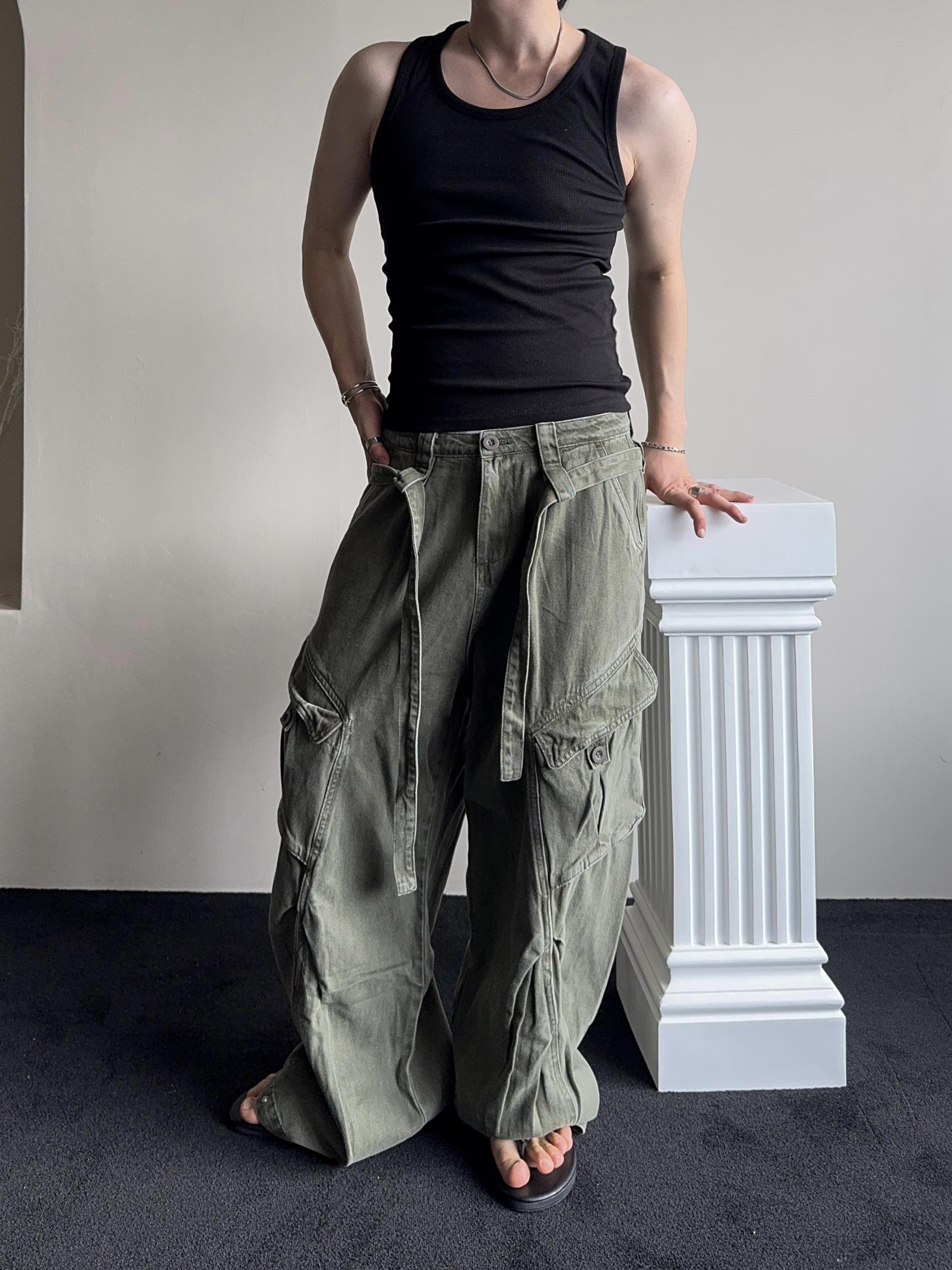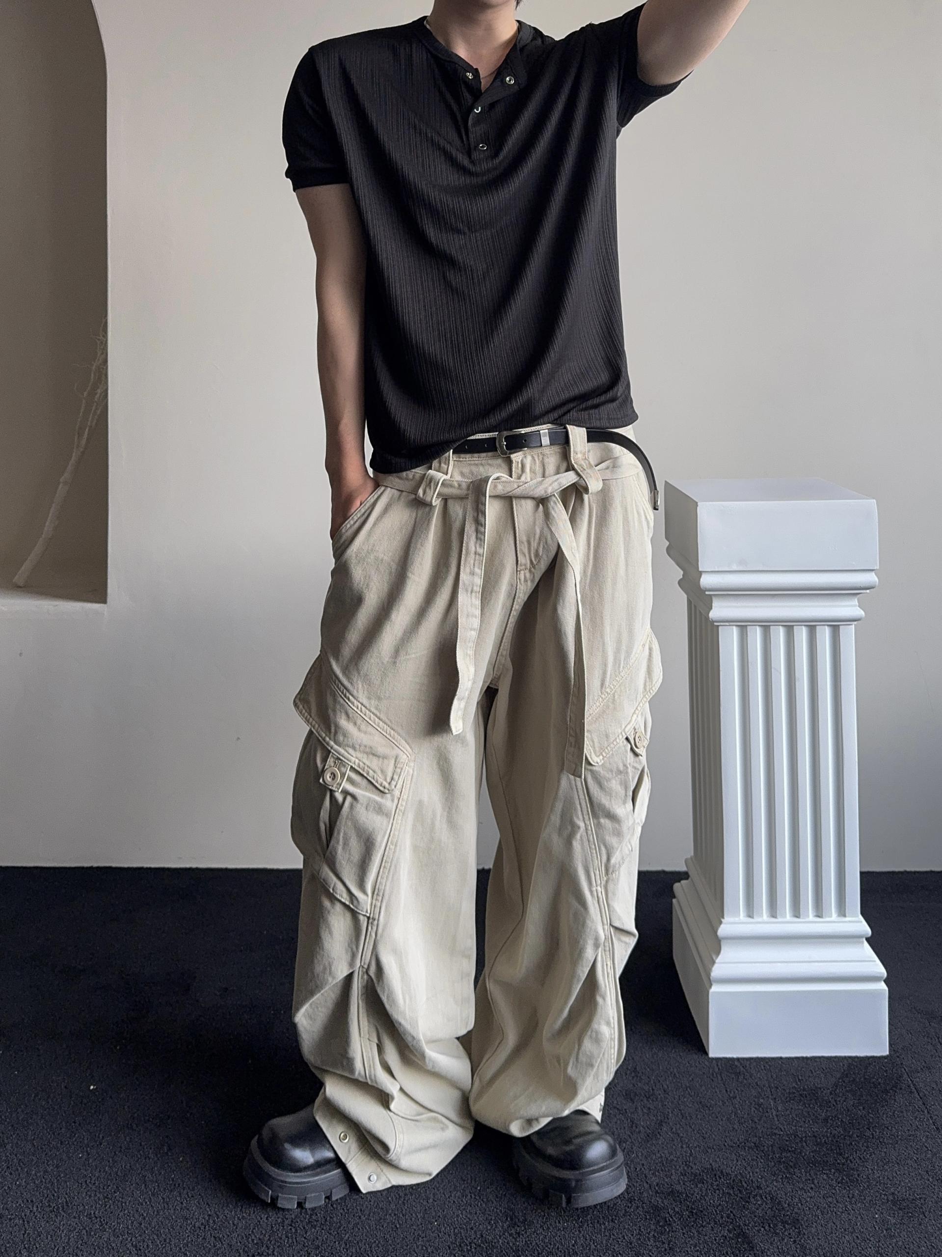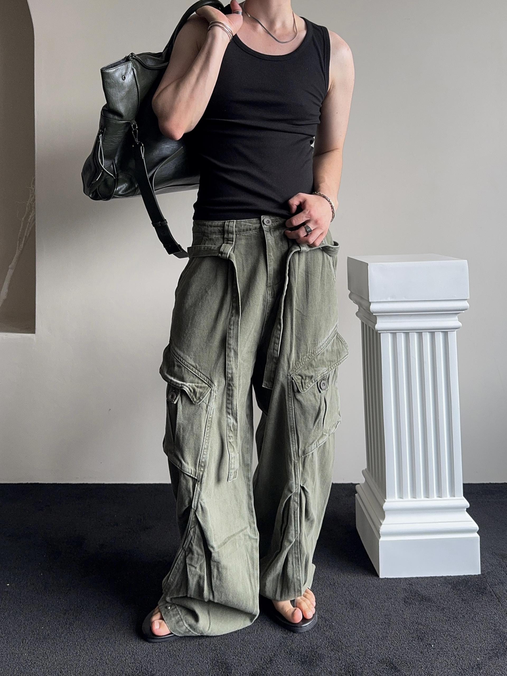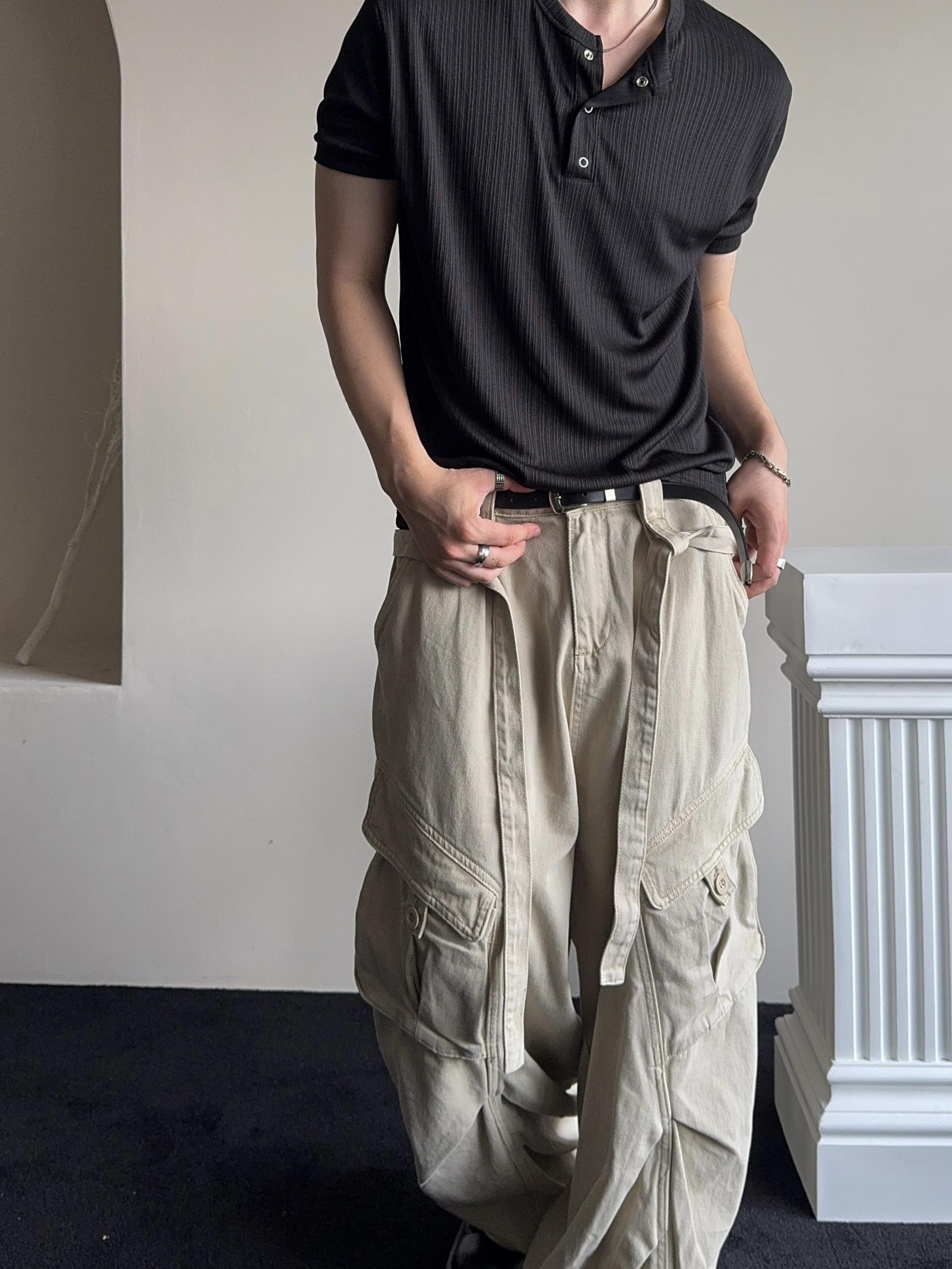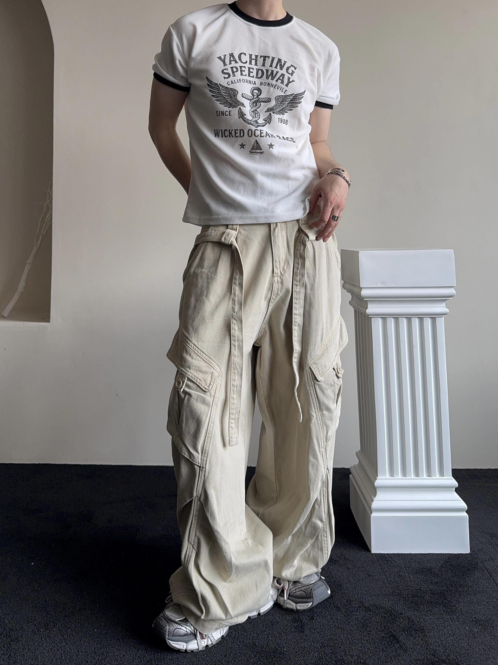 -탄탄한 코튼 원단으로 제작된 와이드 카고 팬츠