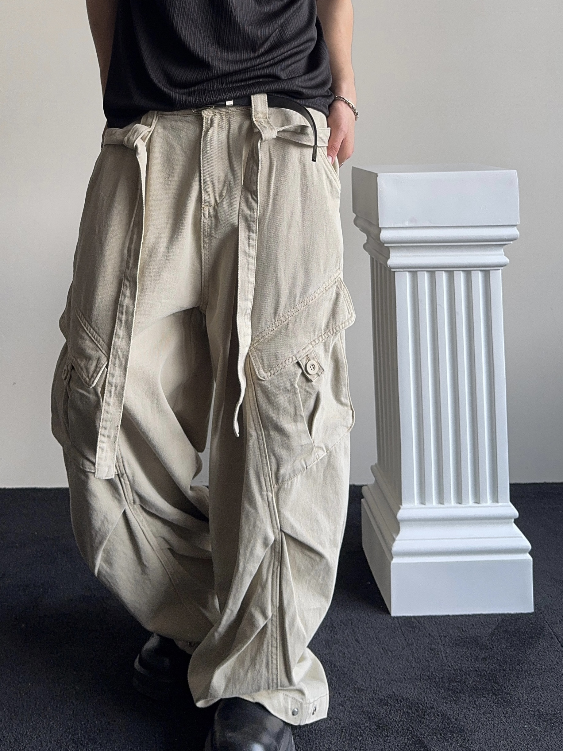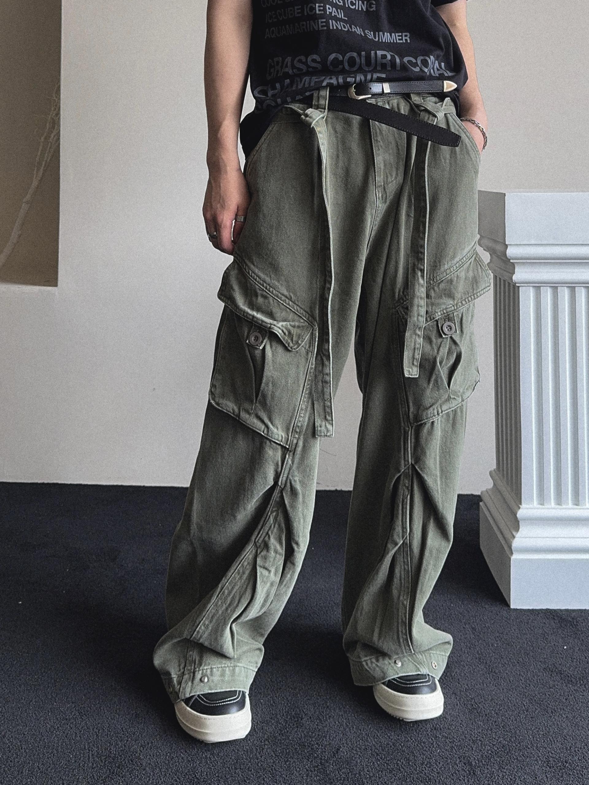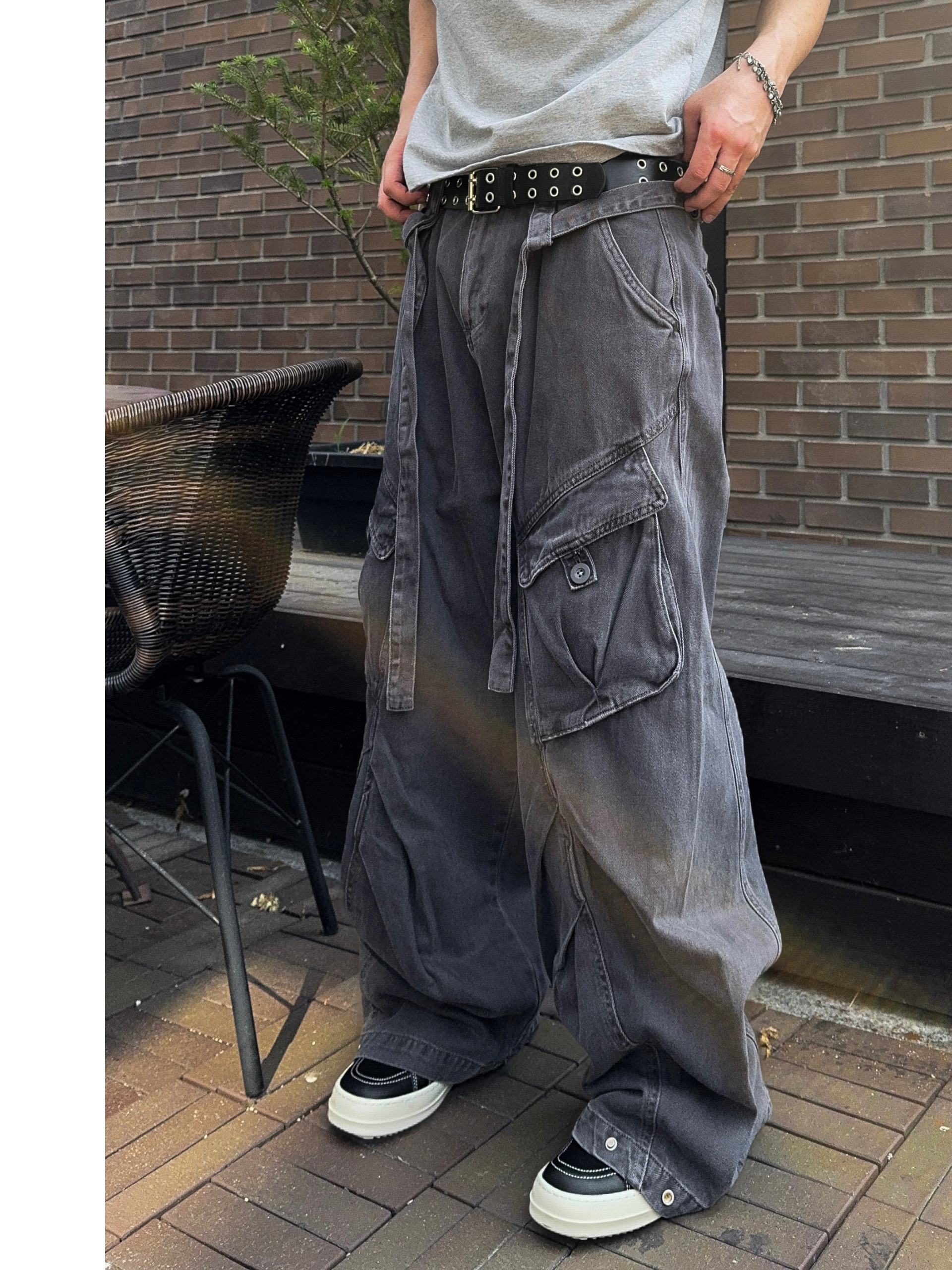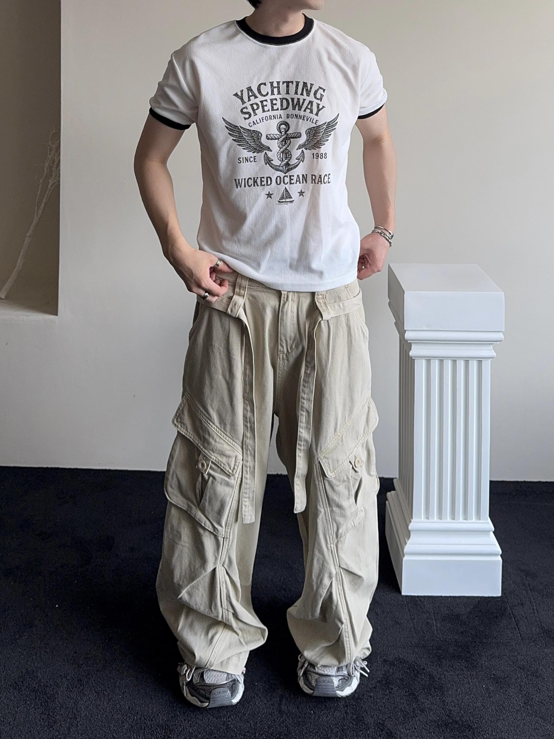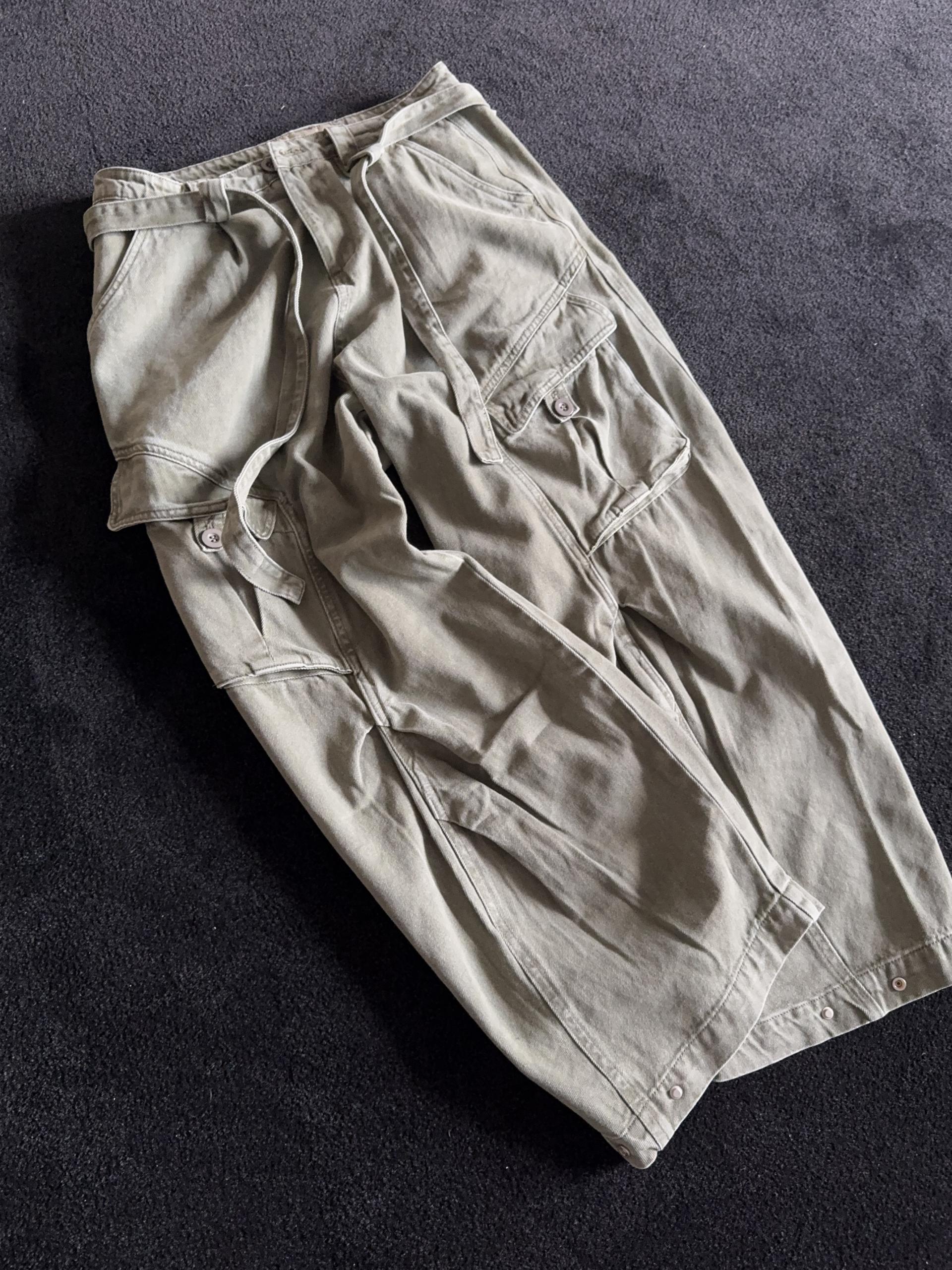 -탄탄한 코튼 원단으로 제작된 와이드 카고 팬츠