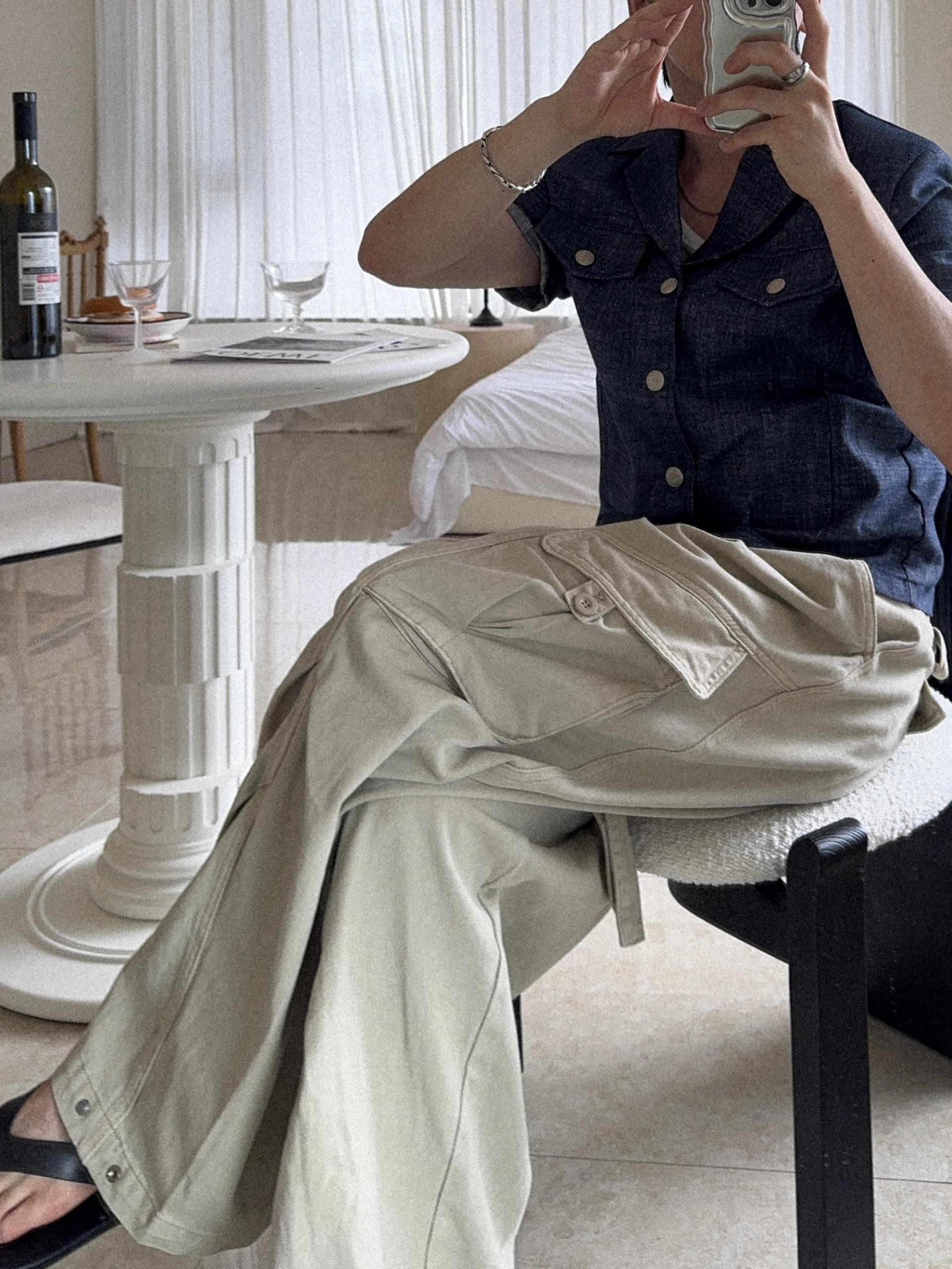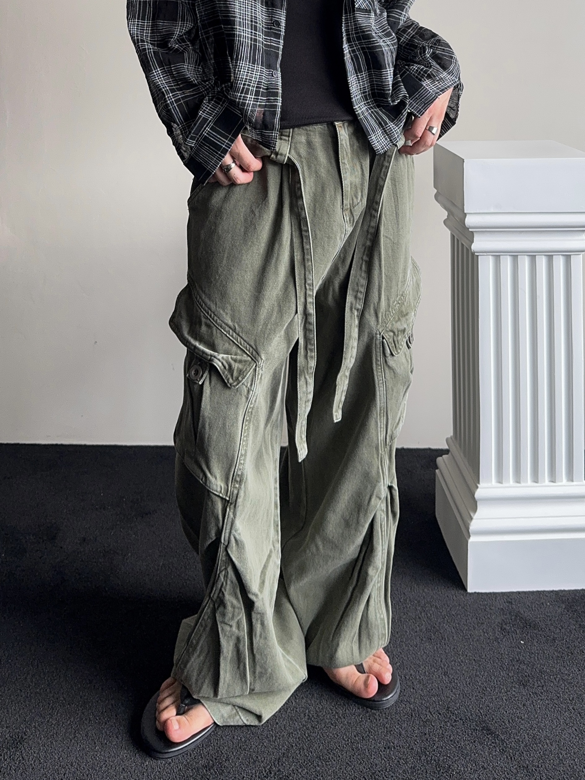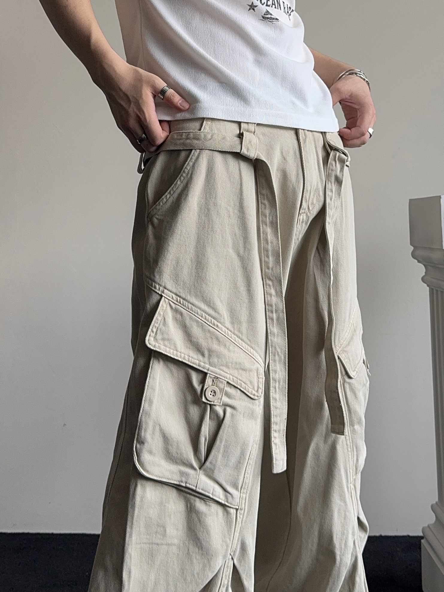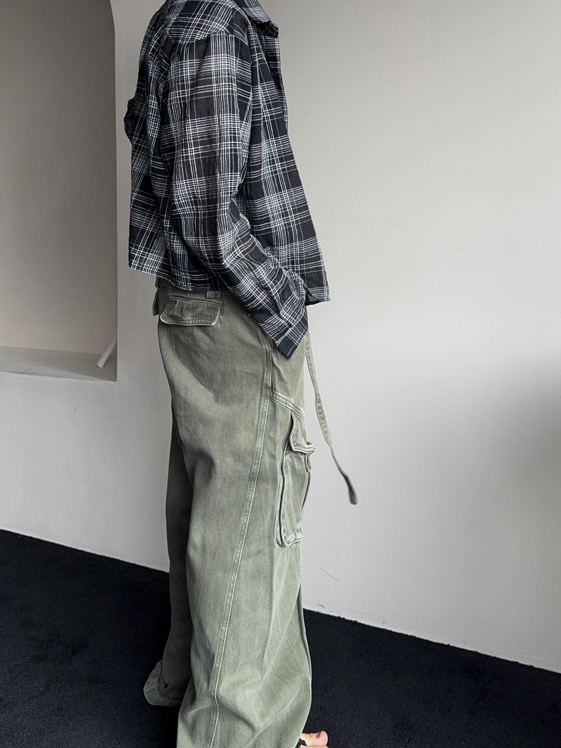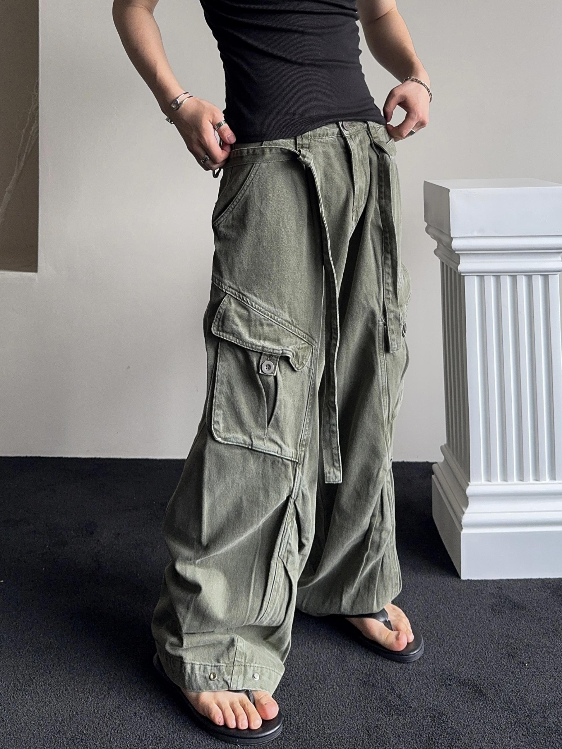 -탄탄한 코튼 원단으로 제작된 와이드 카고 팬츠
