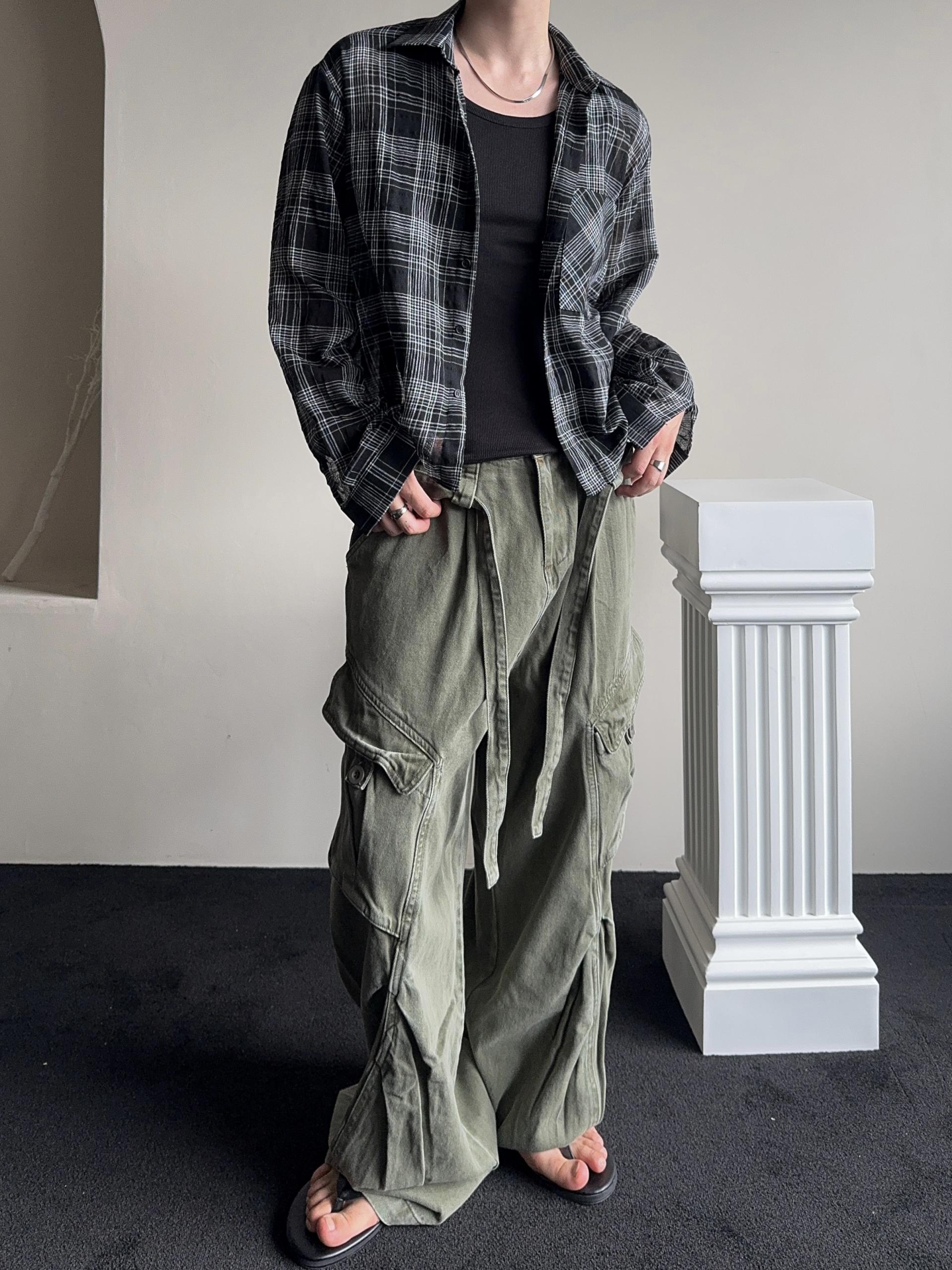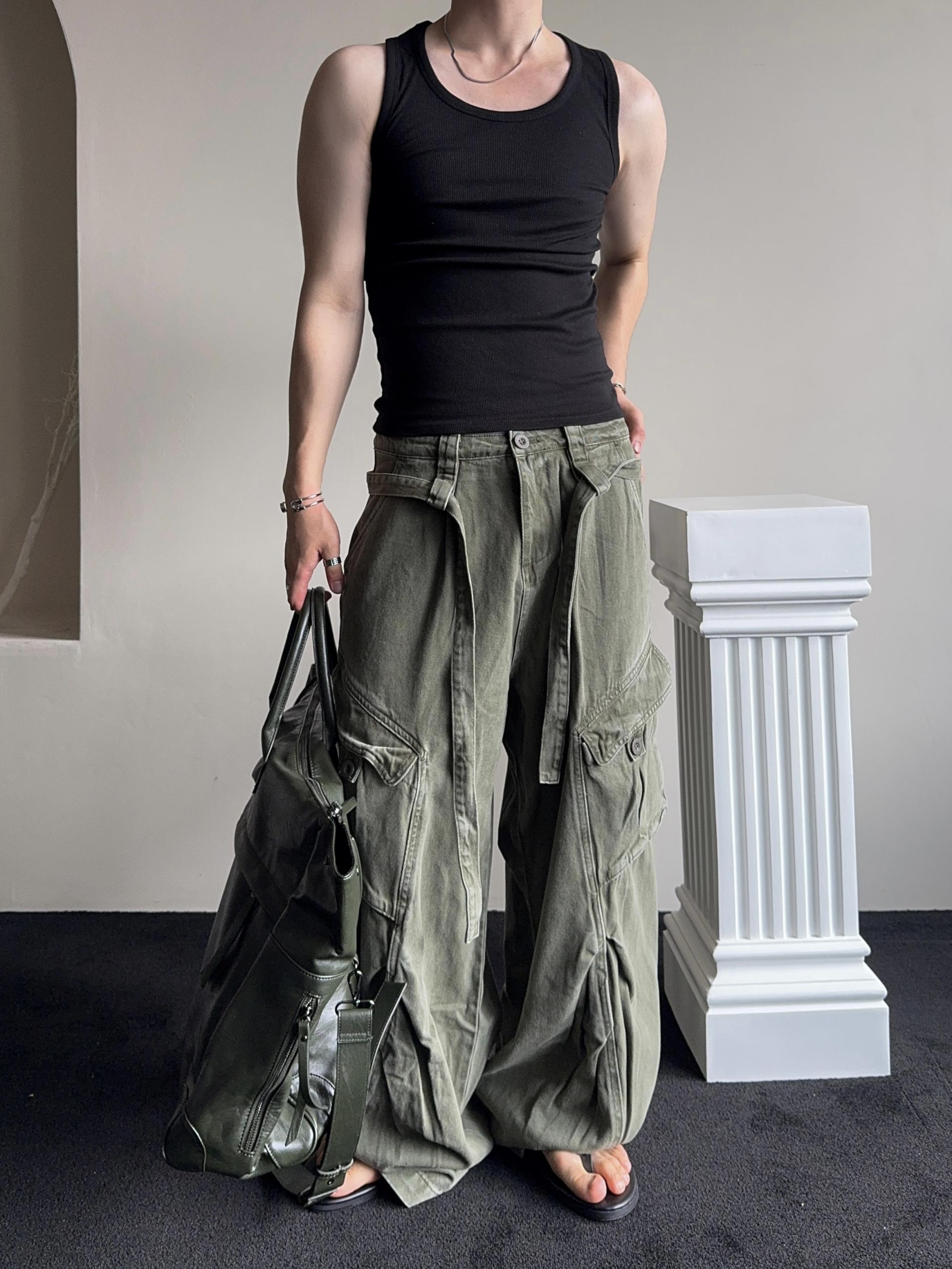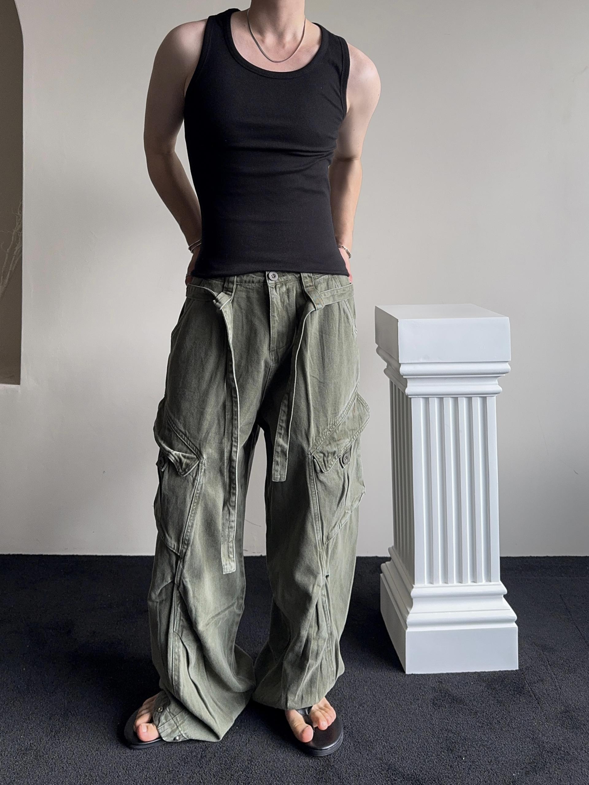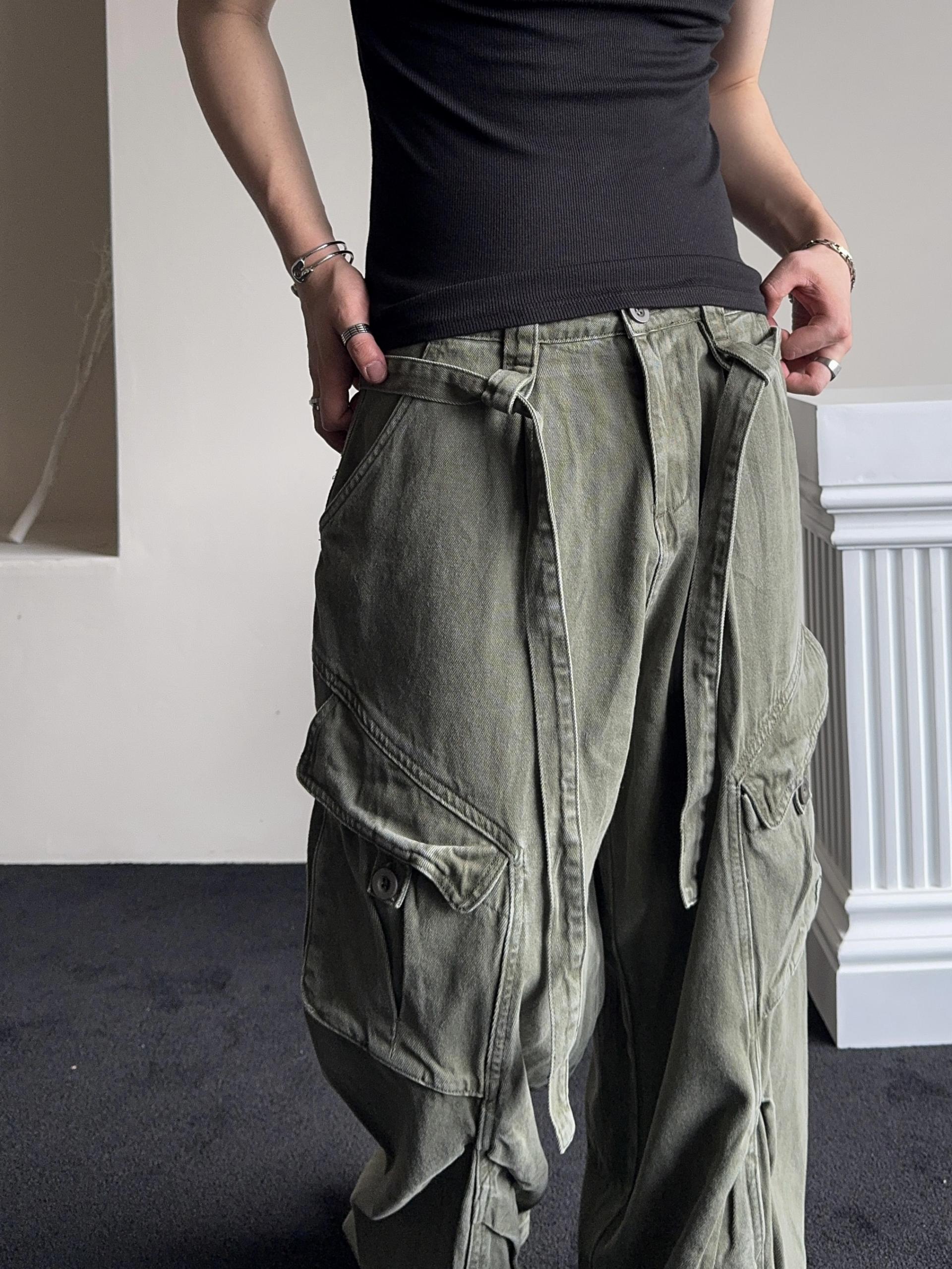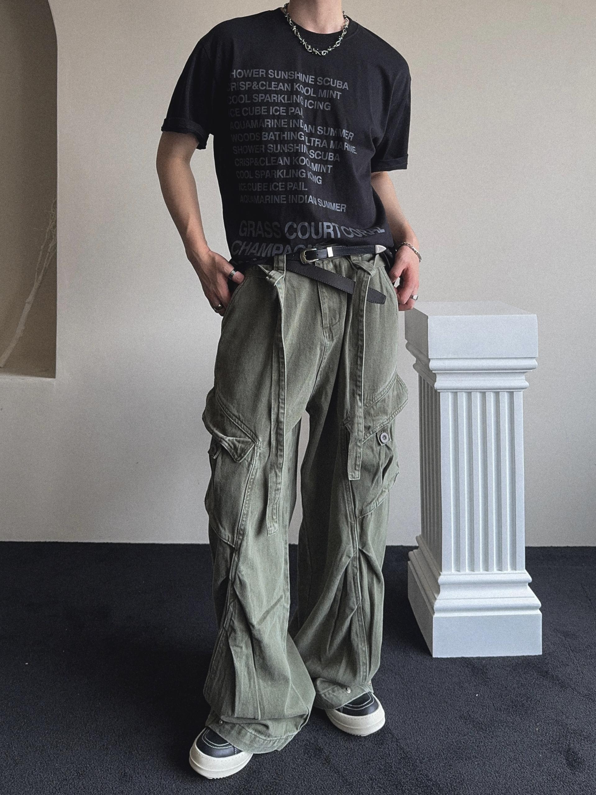 -탄탄한 코튼 원단으로 제작된 와이드 카고 팬츠