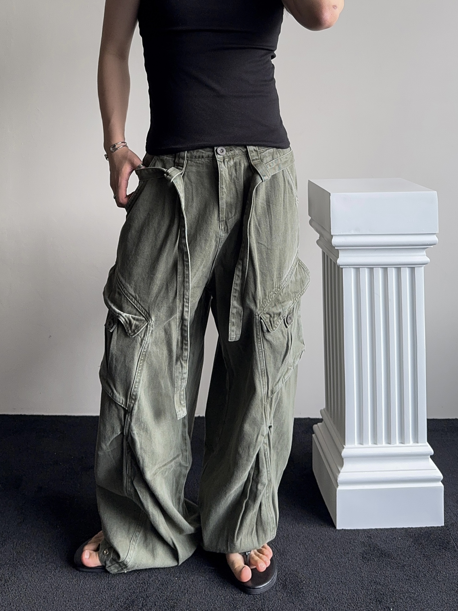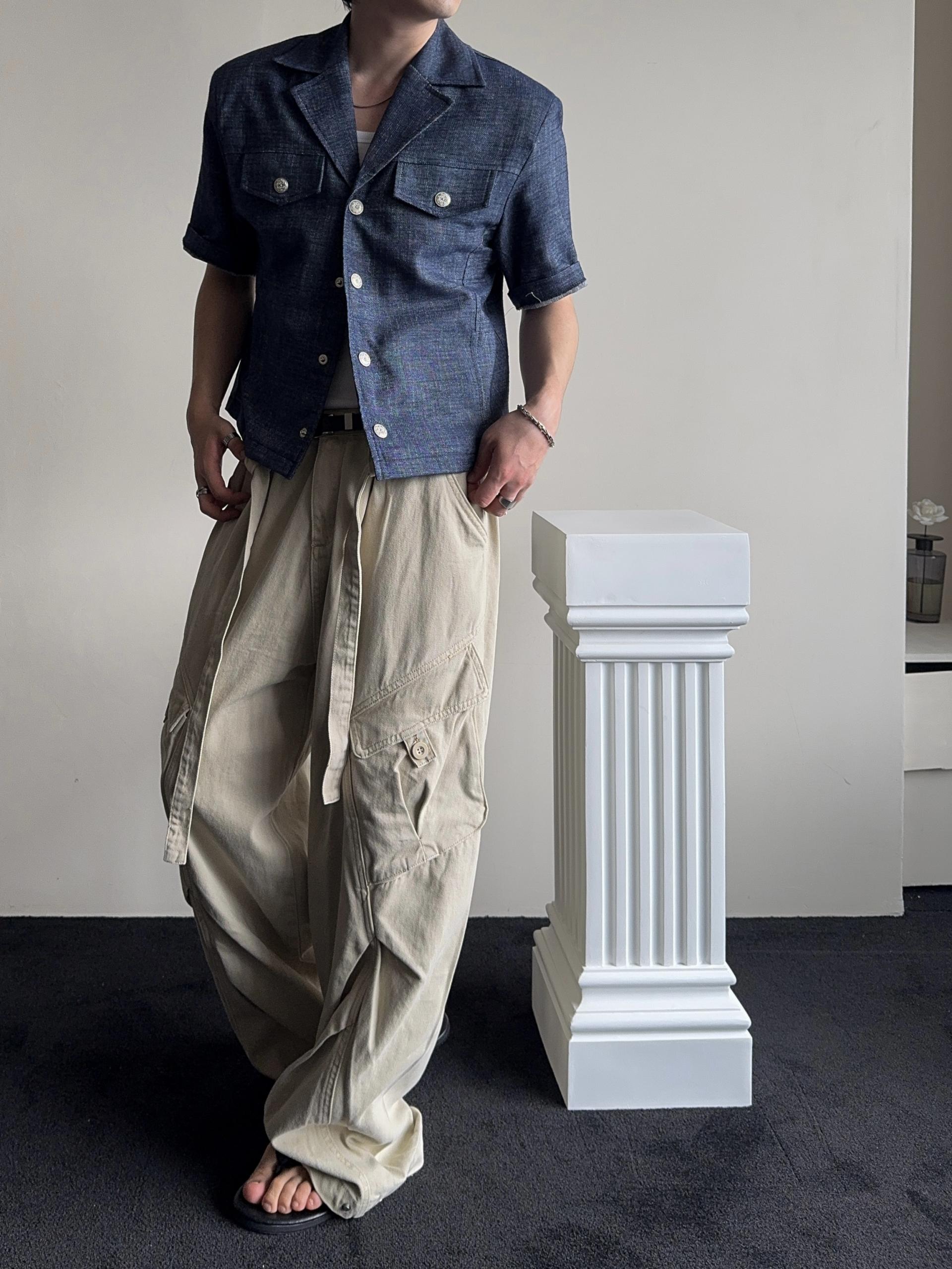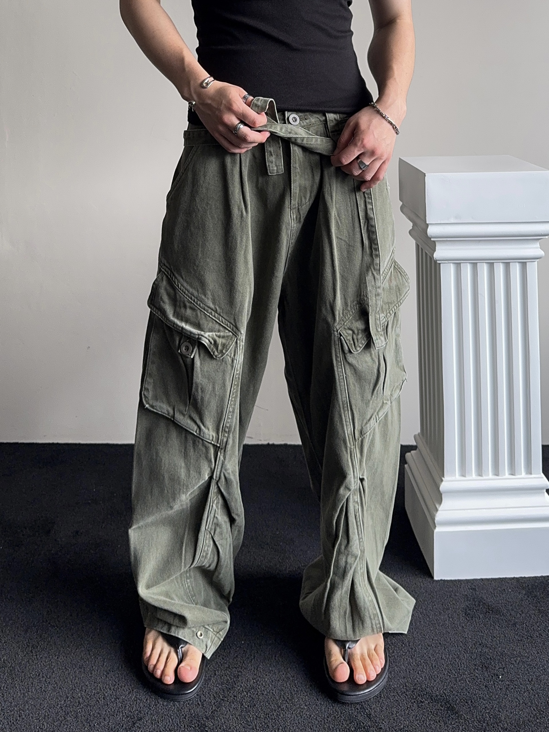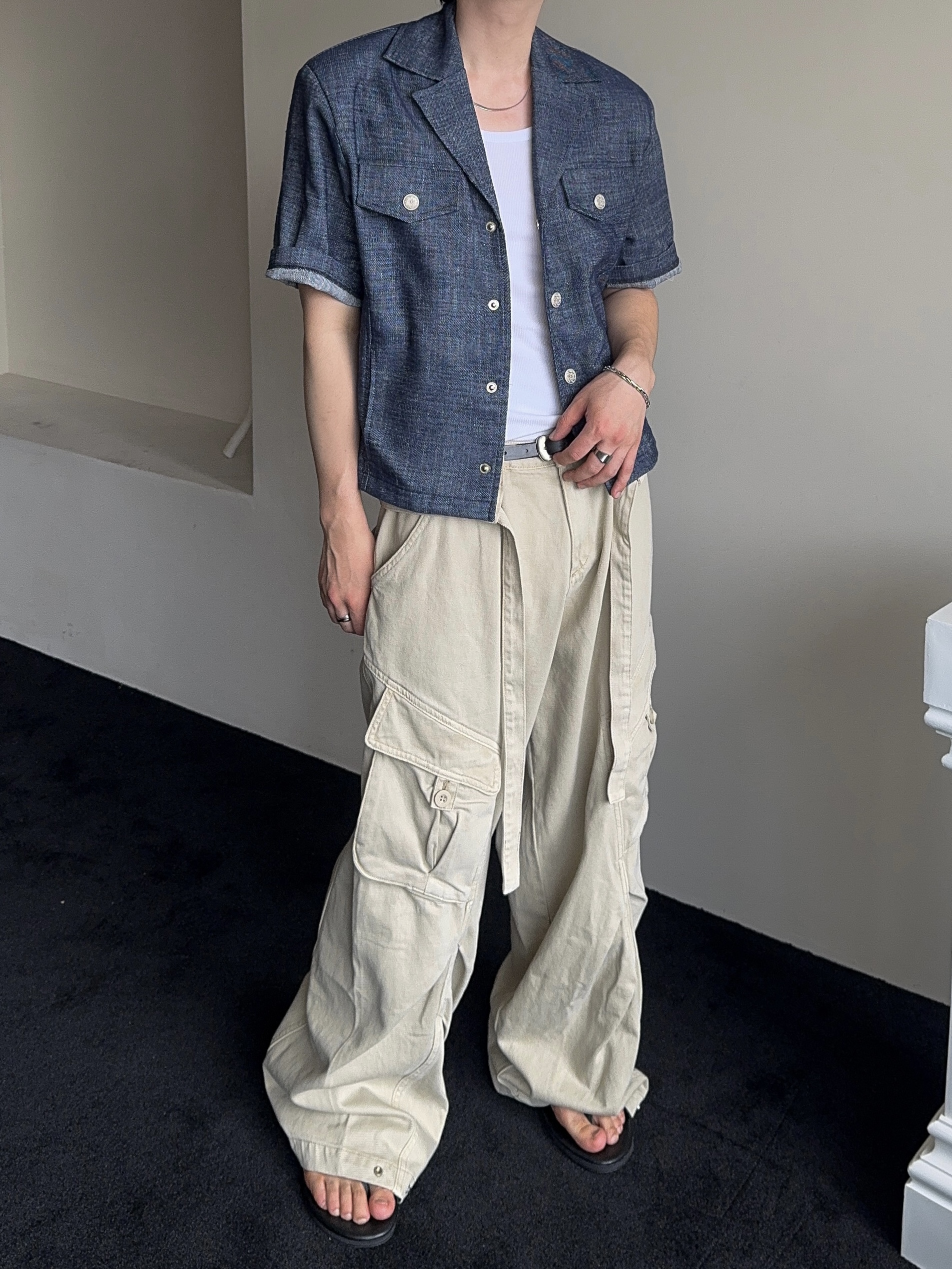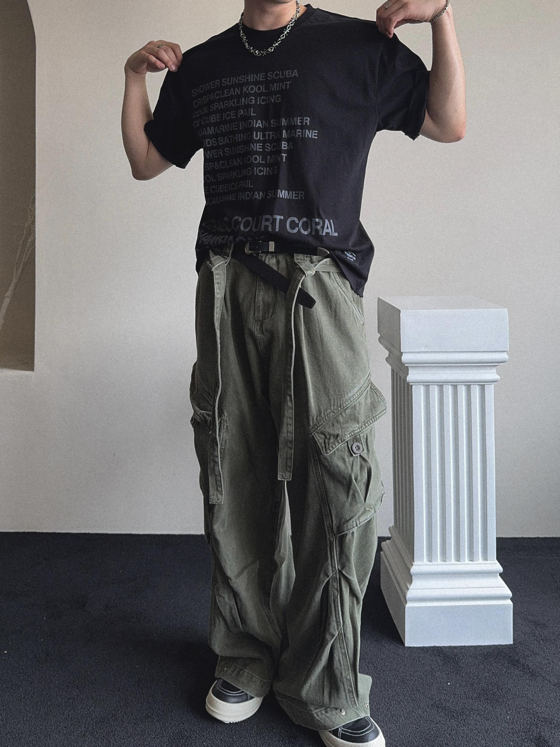 -탄탄한 코튼 원단으로 제작된 와이드 카고 팬츠