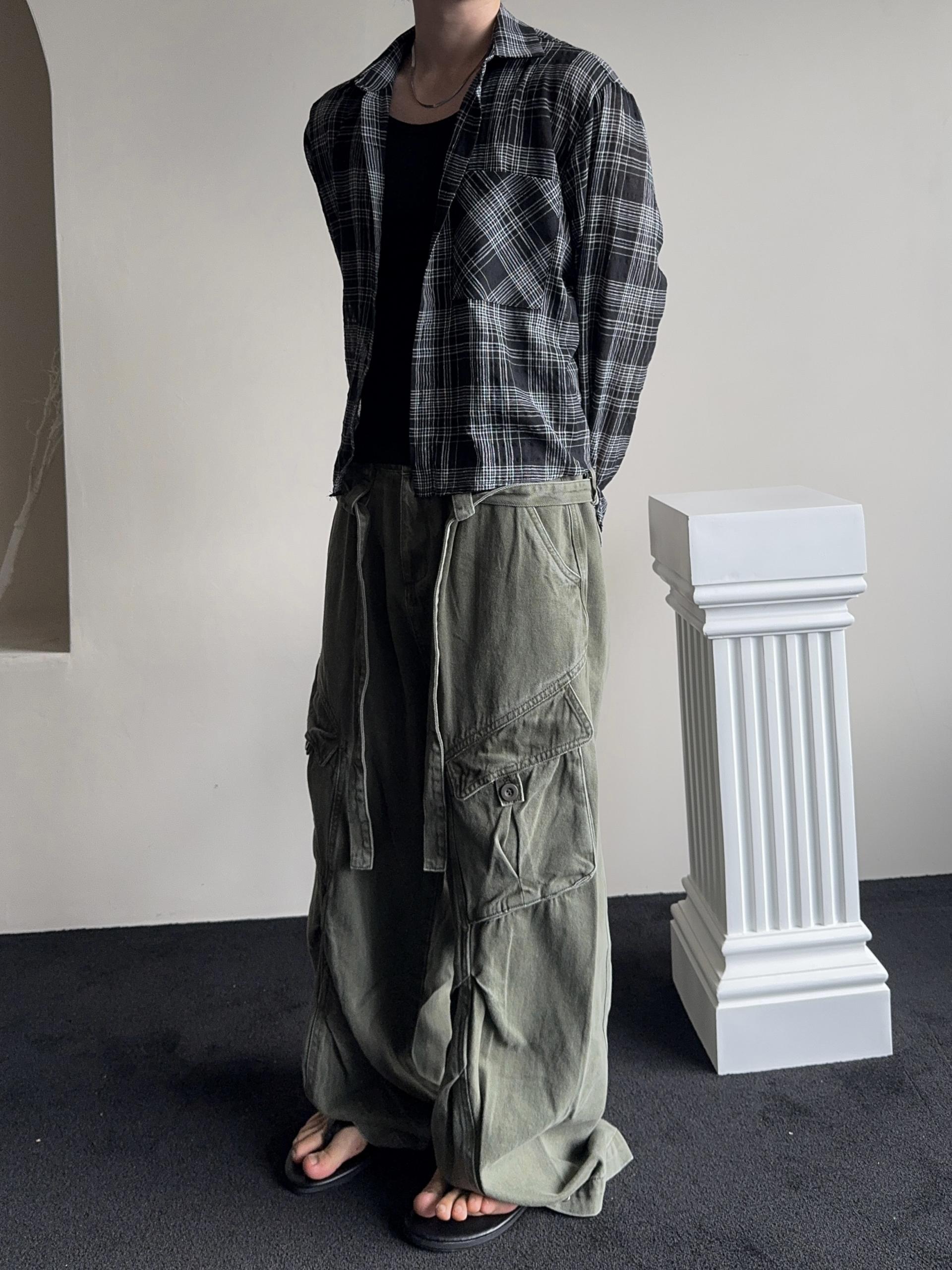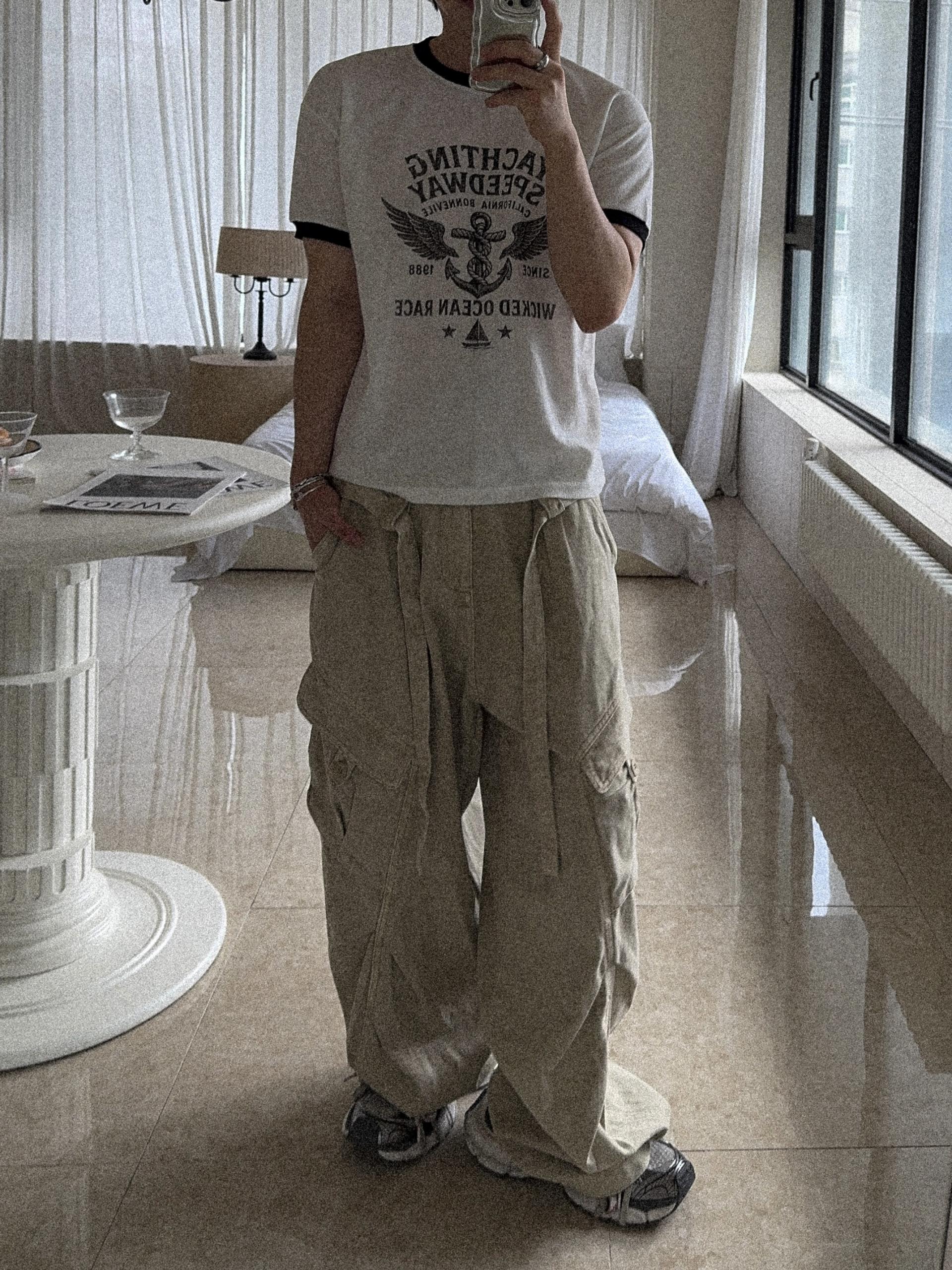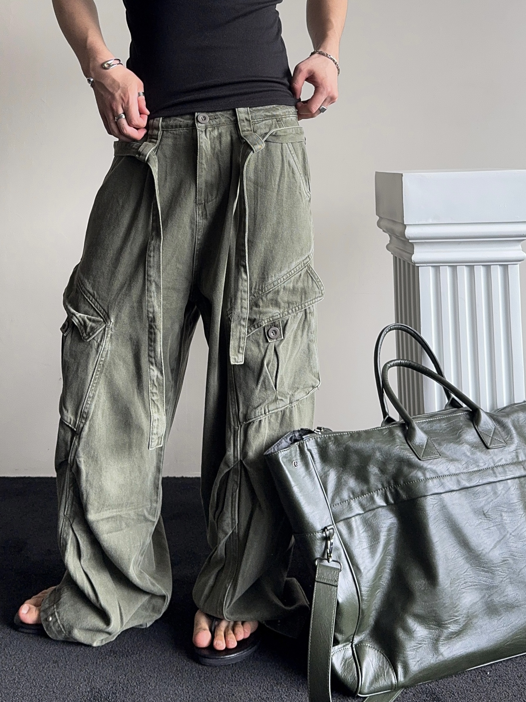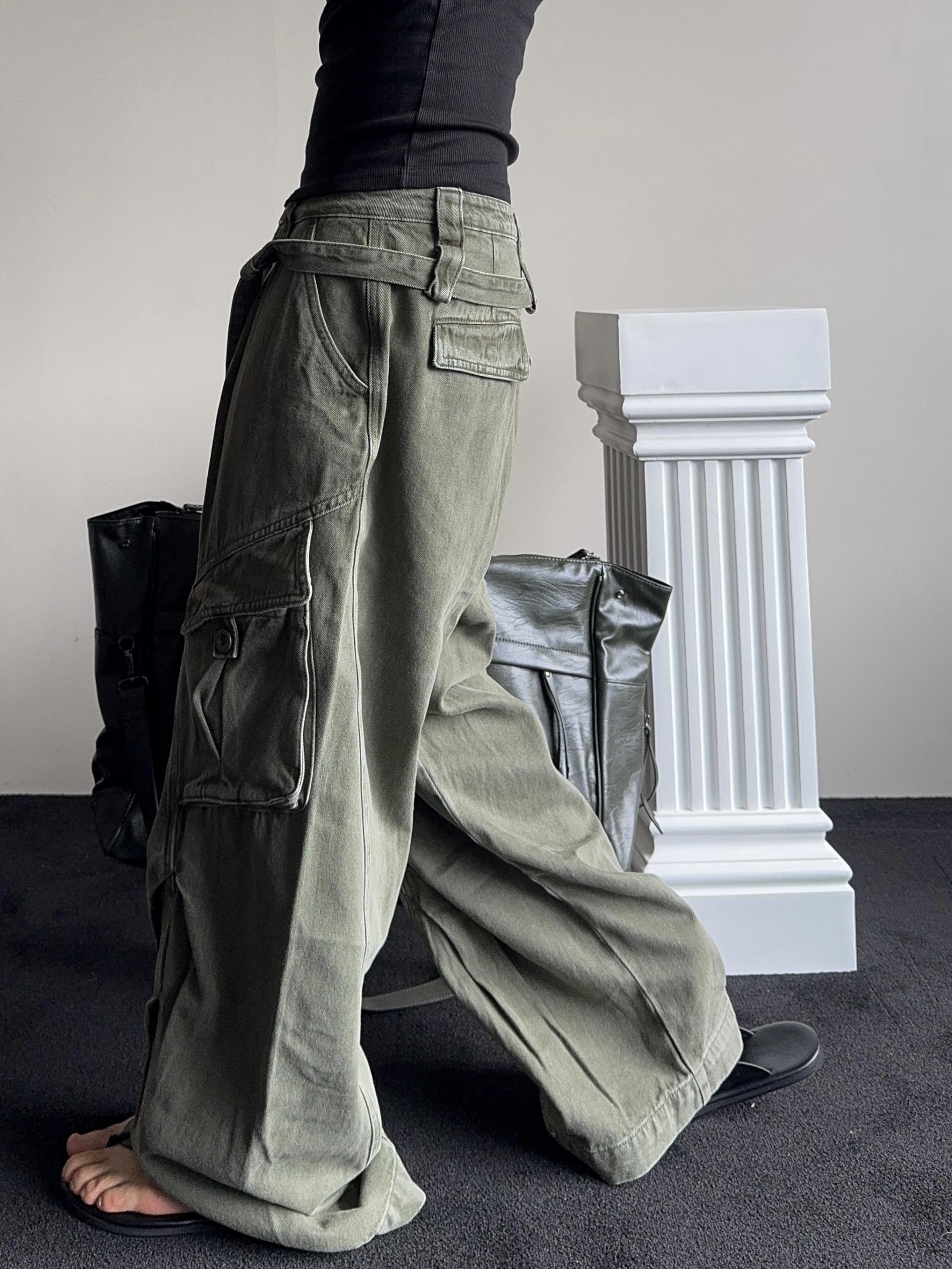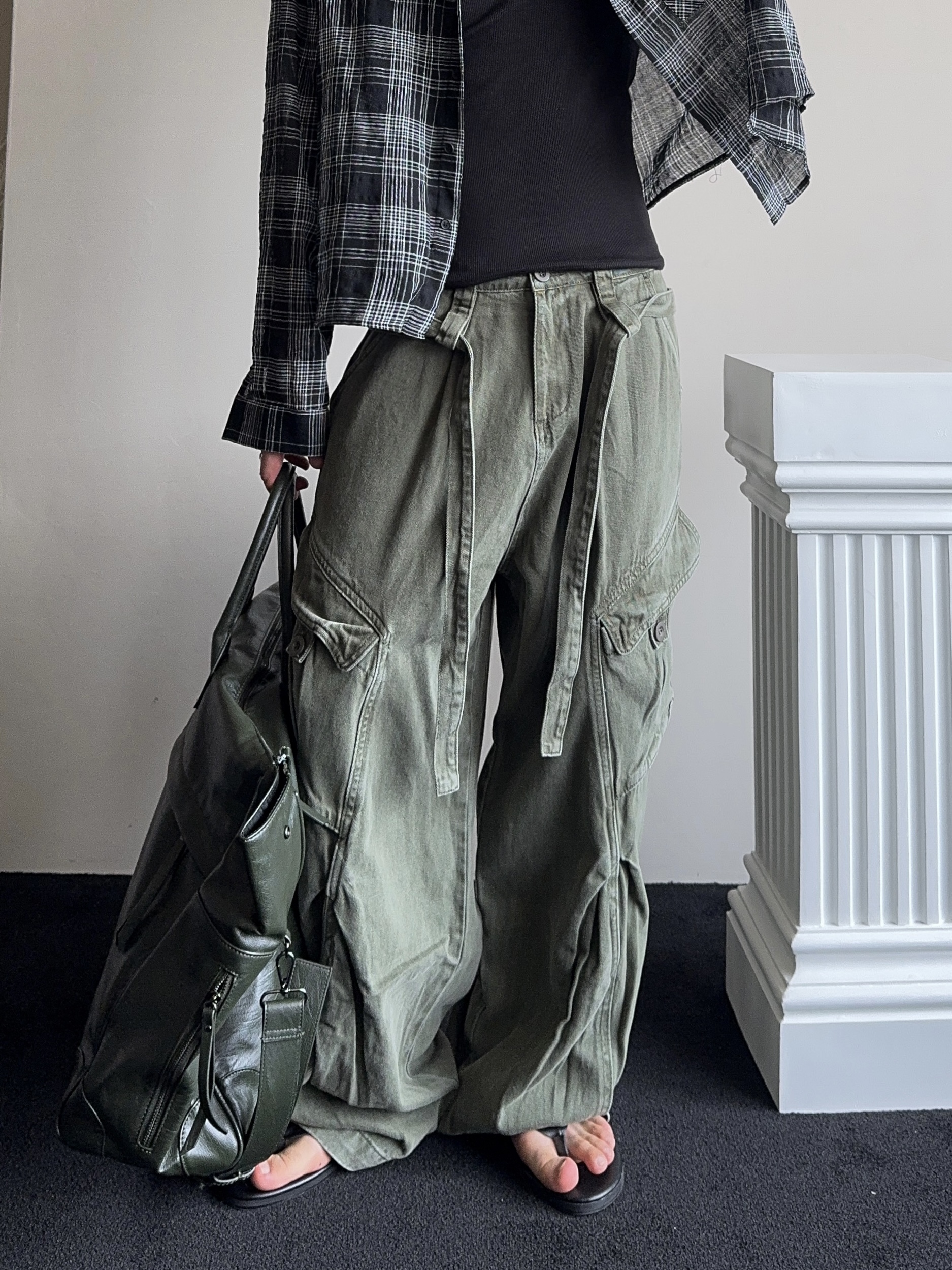 -탄탄한 코튼 원단으로 제작된 와이드 카고 팬츠