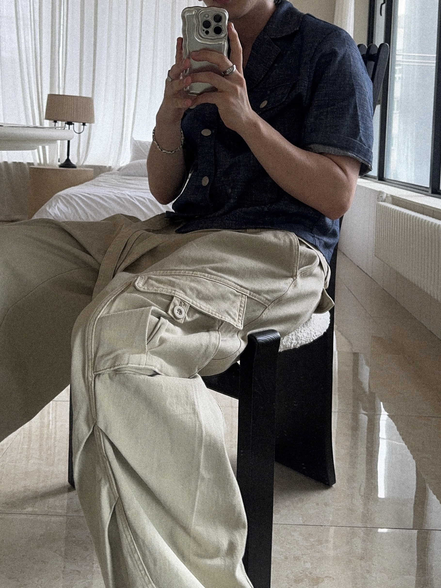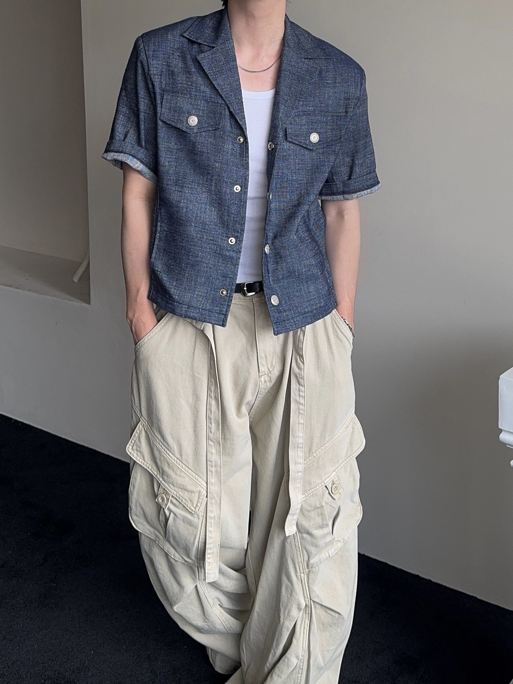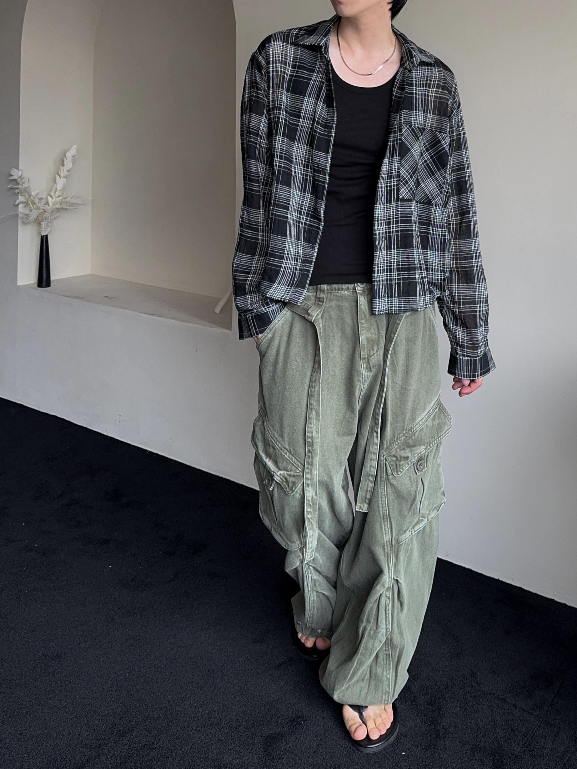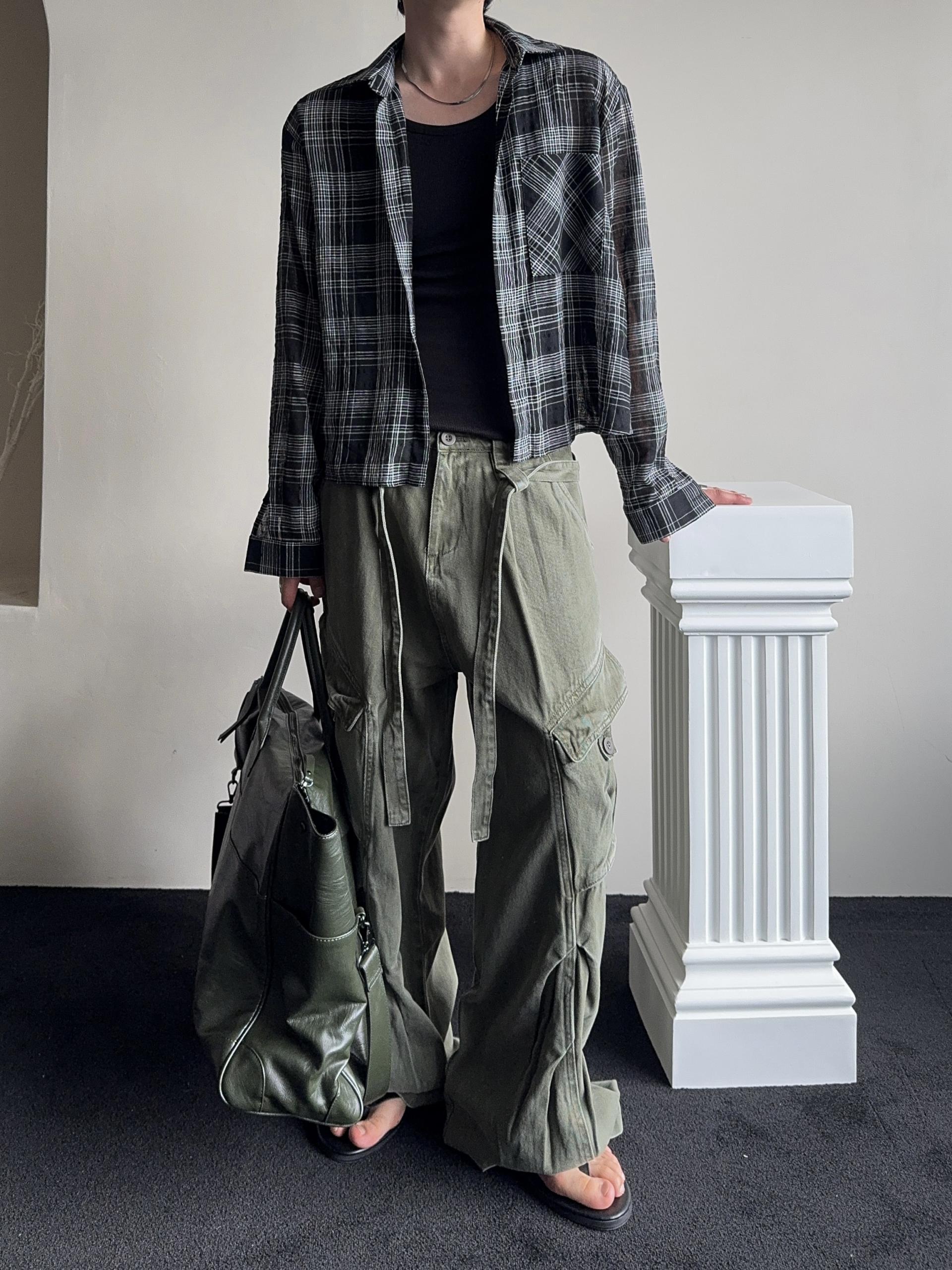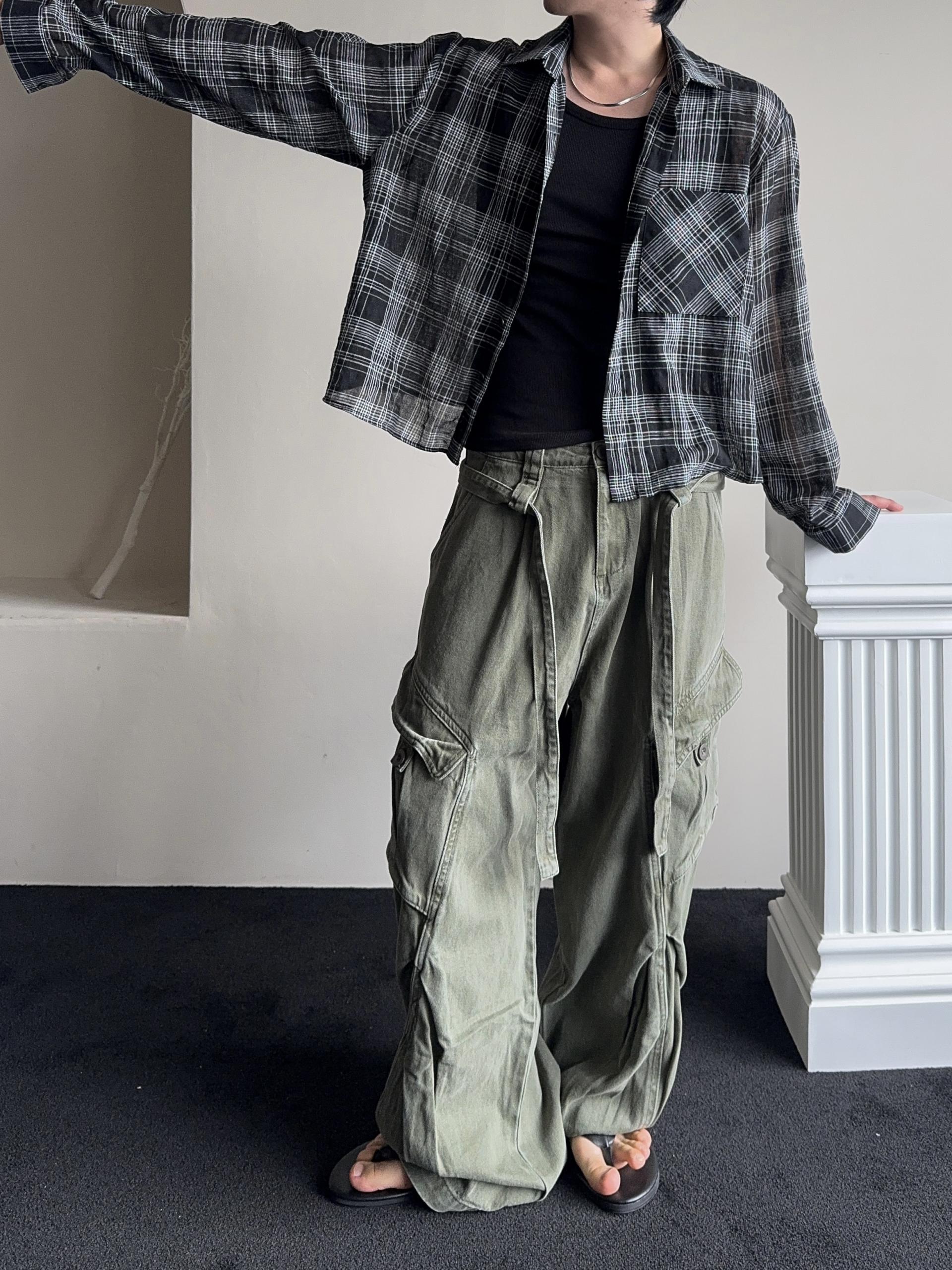 -탄탄한 코튼 원단으로 제작된 와이드 카고 팬츠