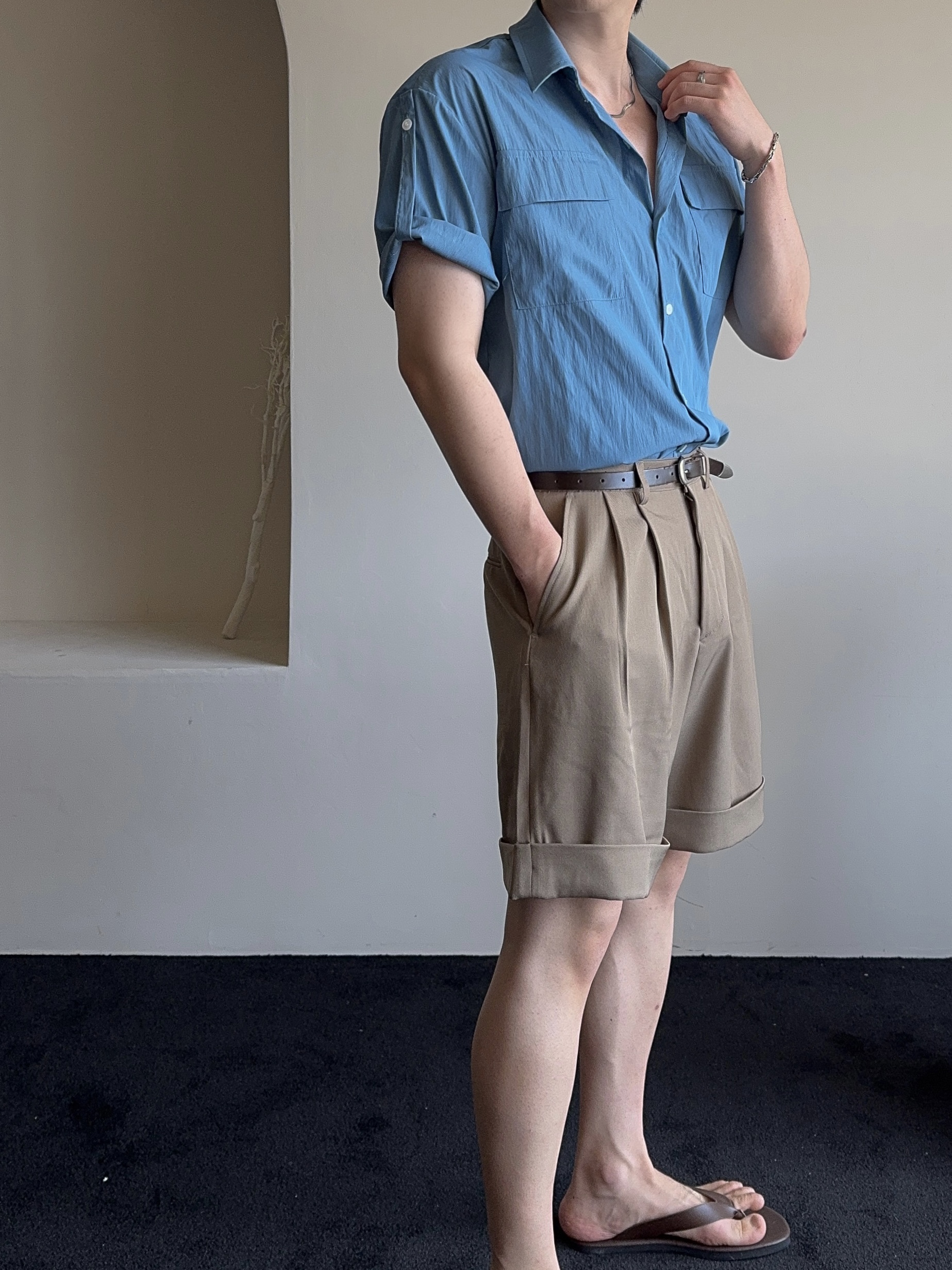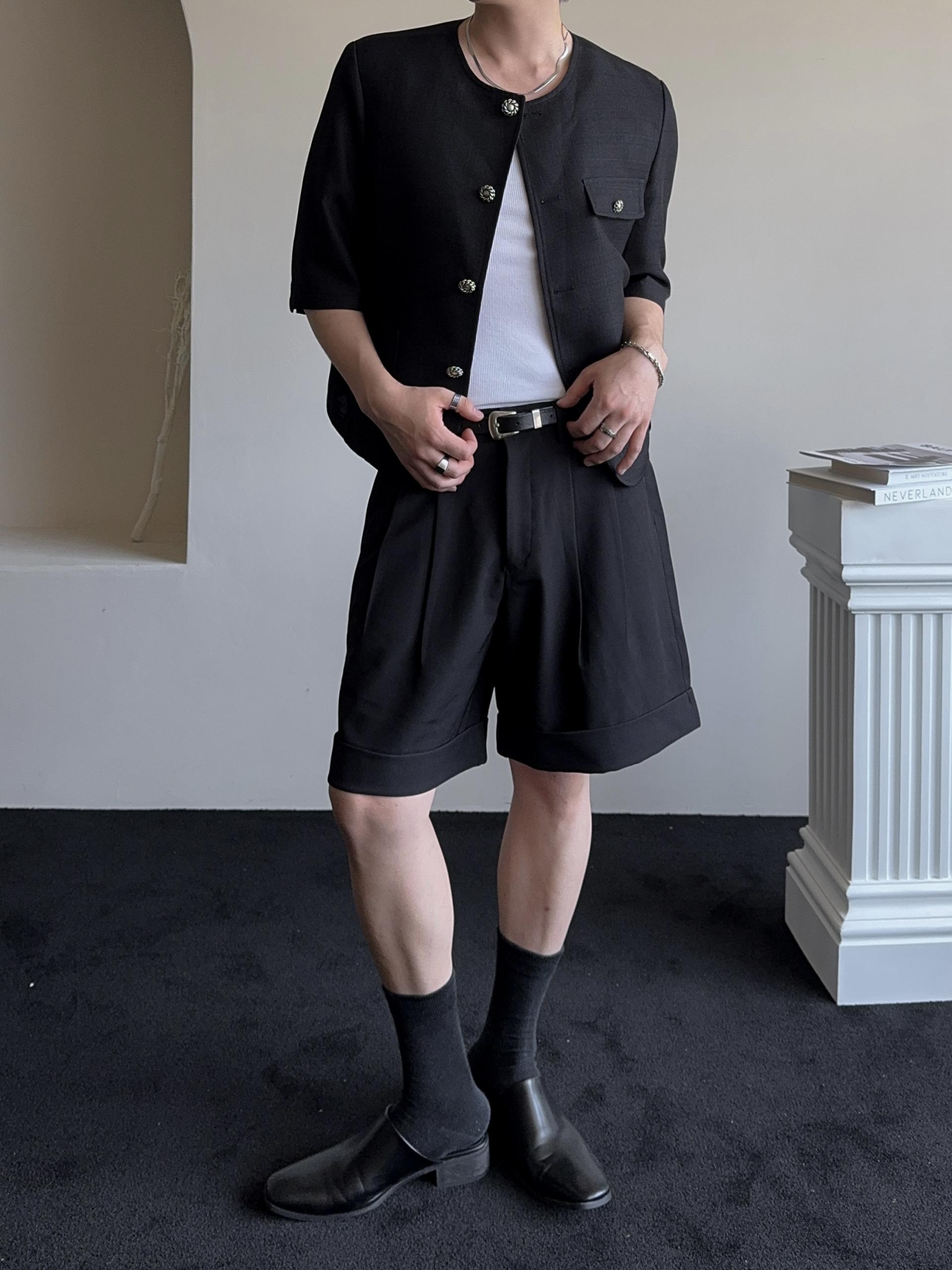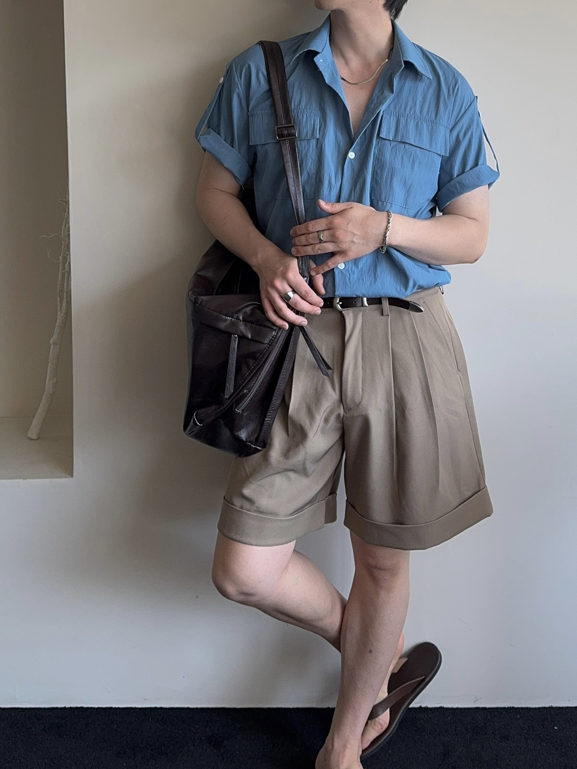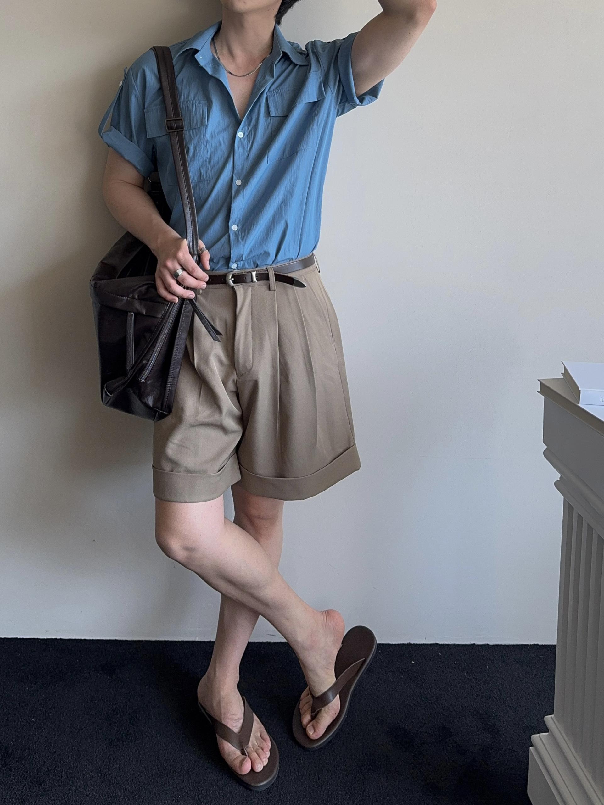 -심플한 포인트로 깔끔한 스타일 내기 좋은 하프 슬랙스