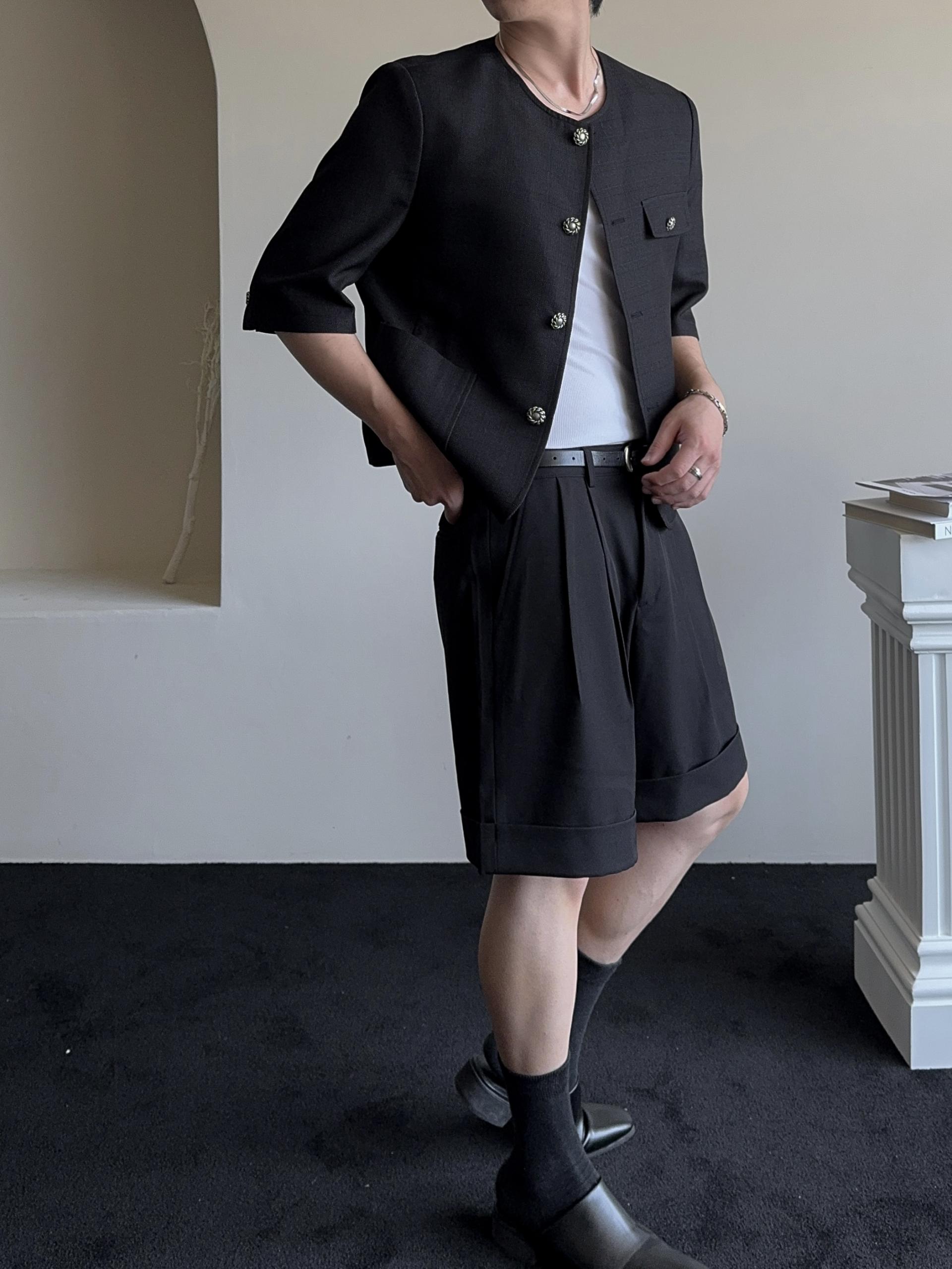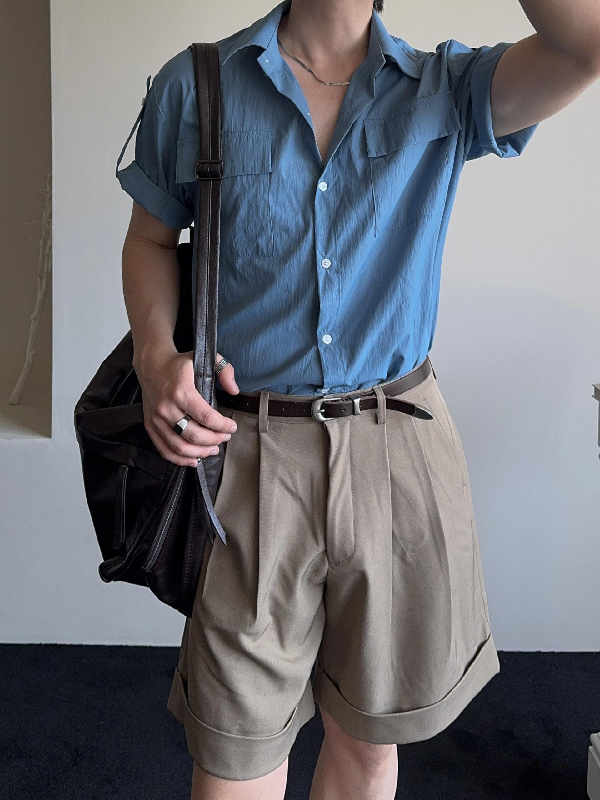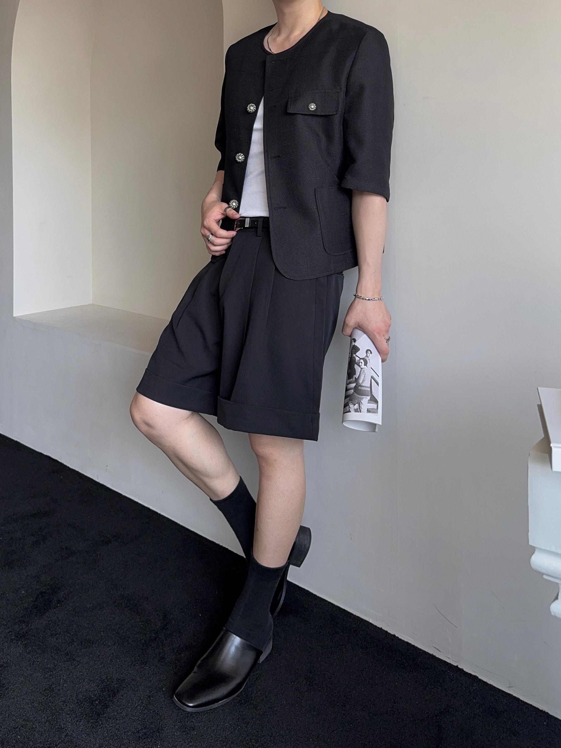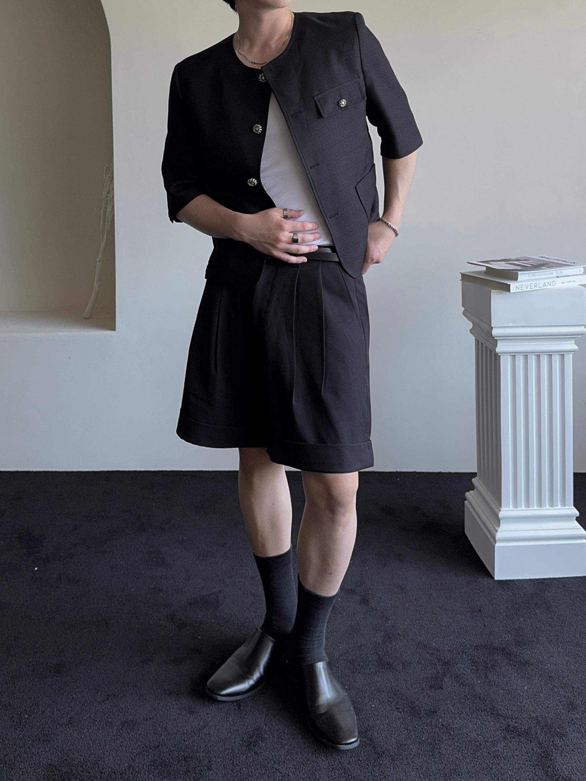 -심플한 포인트로 깔끔한 스타일 내기 좋은 하프 슬랙스