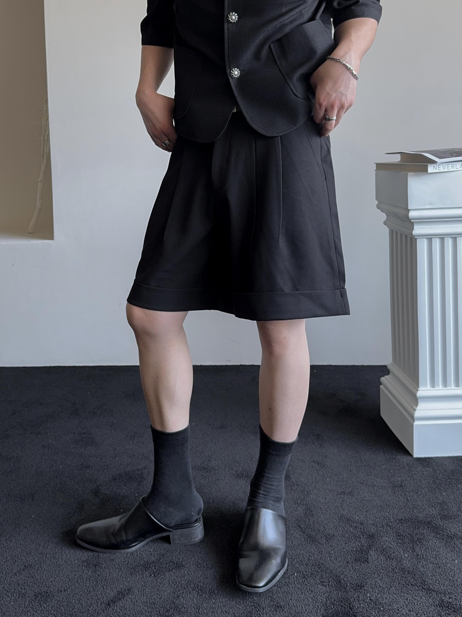 -우아한 소재감이 돋보이는 하프 슬랙스