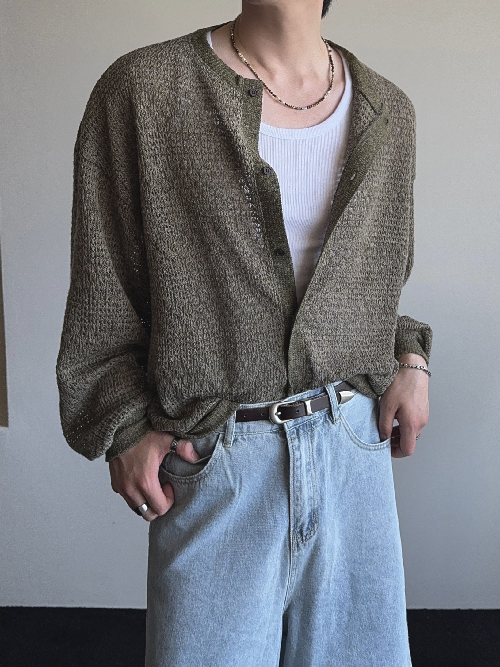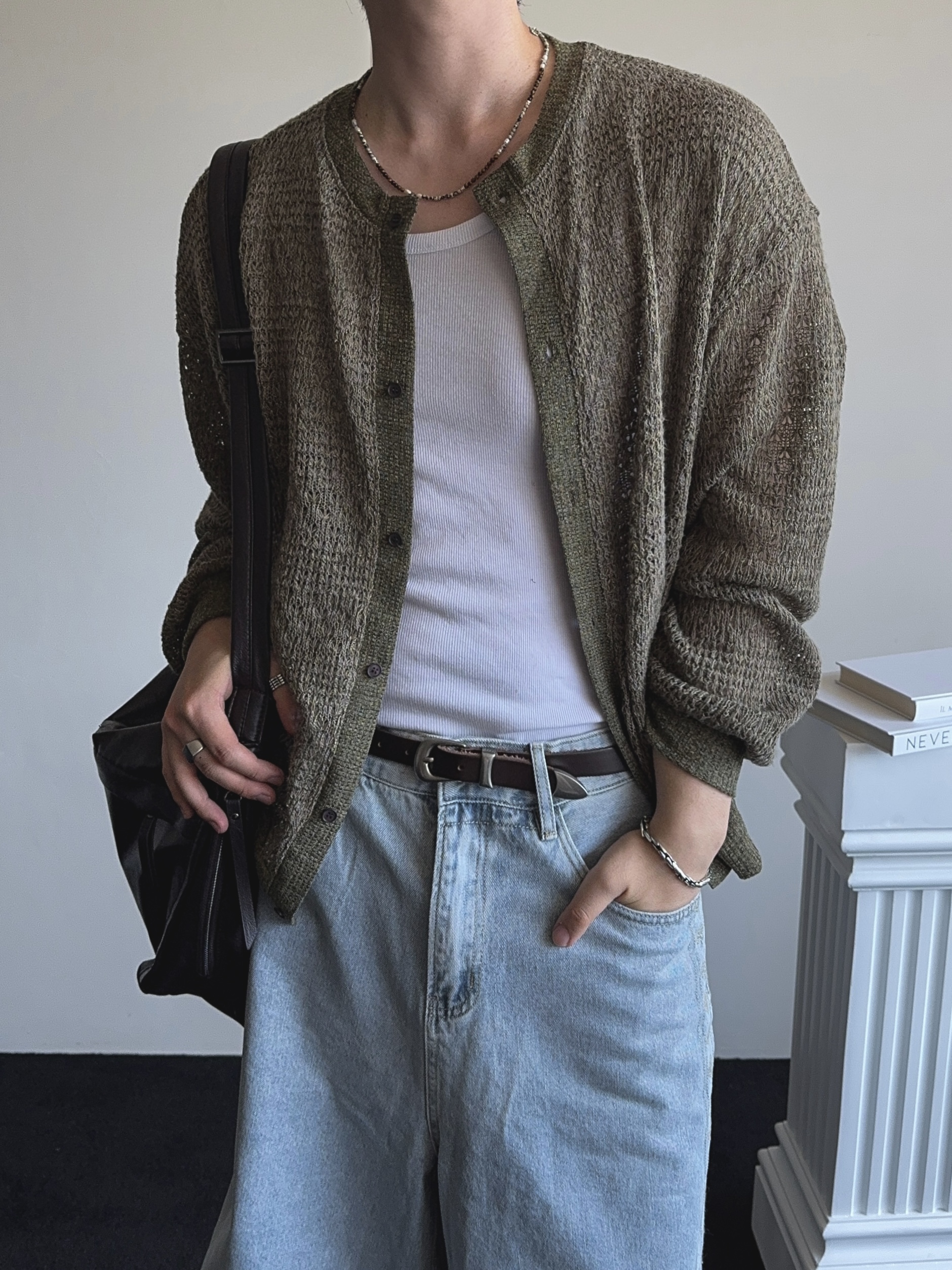 -네추럴한 아웃핏으로 가볍게 스타일내기 좋은 시스루 가디건