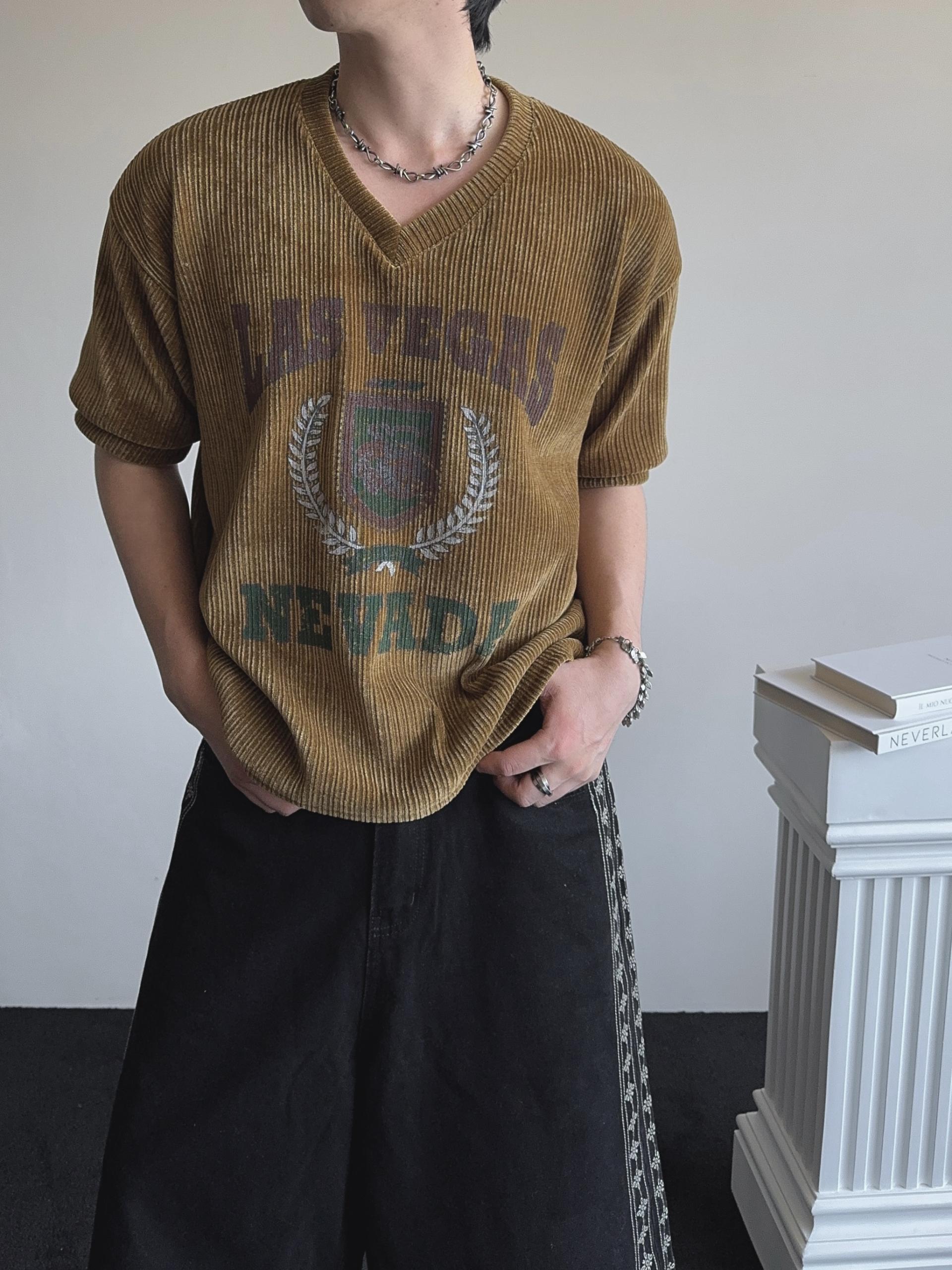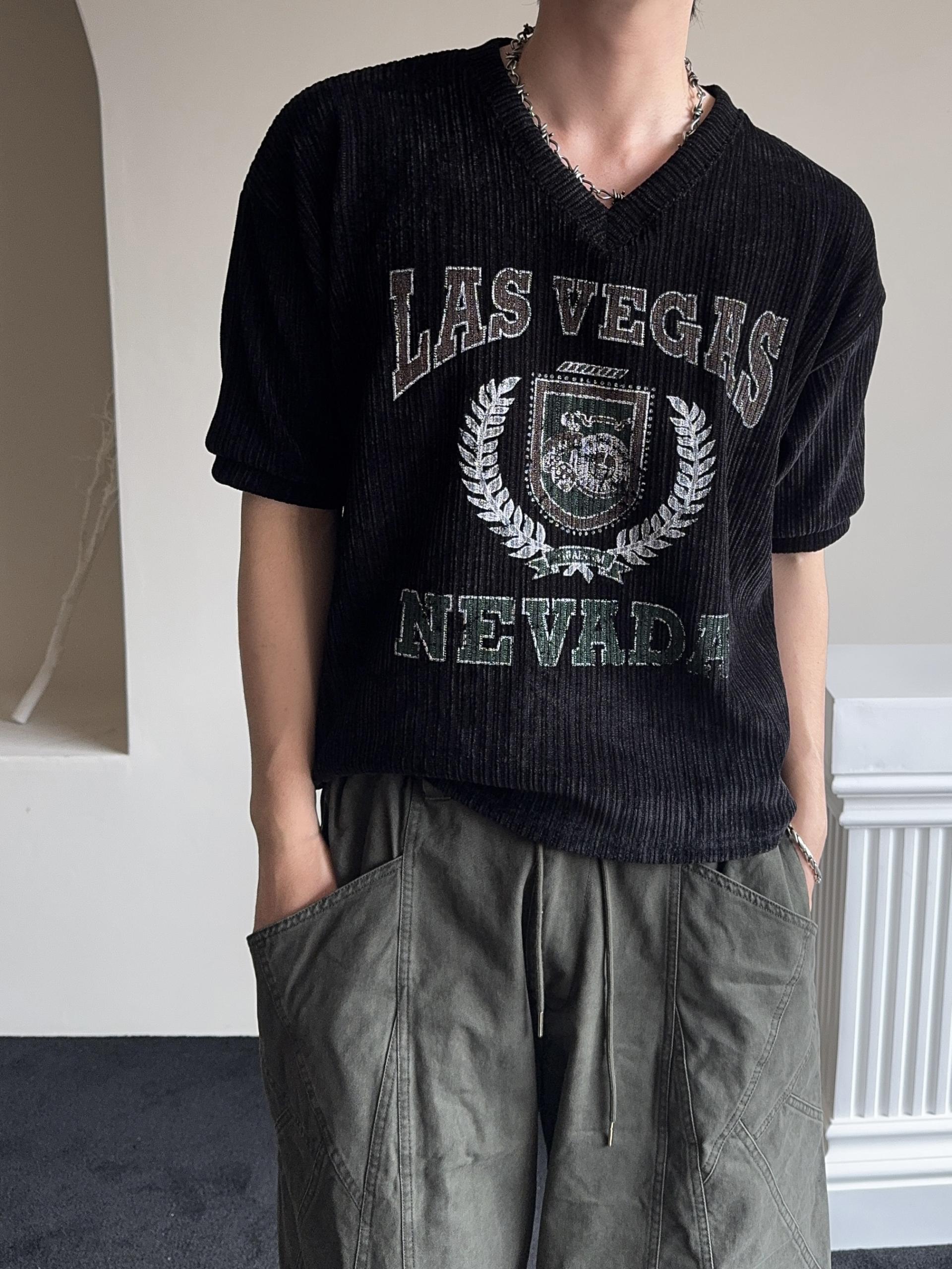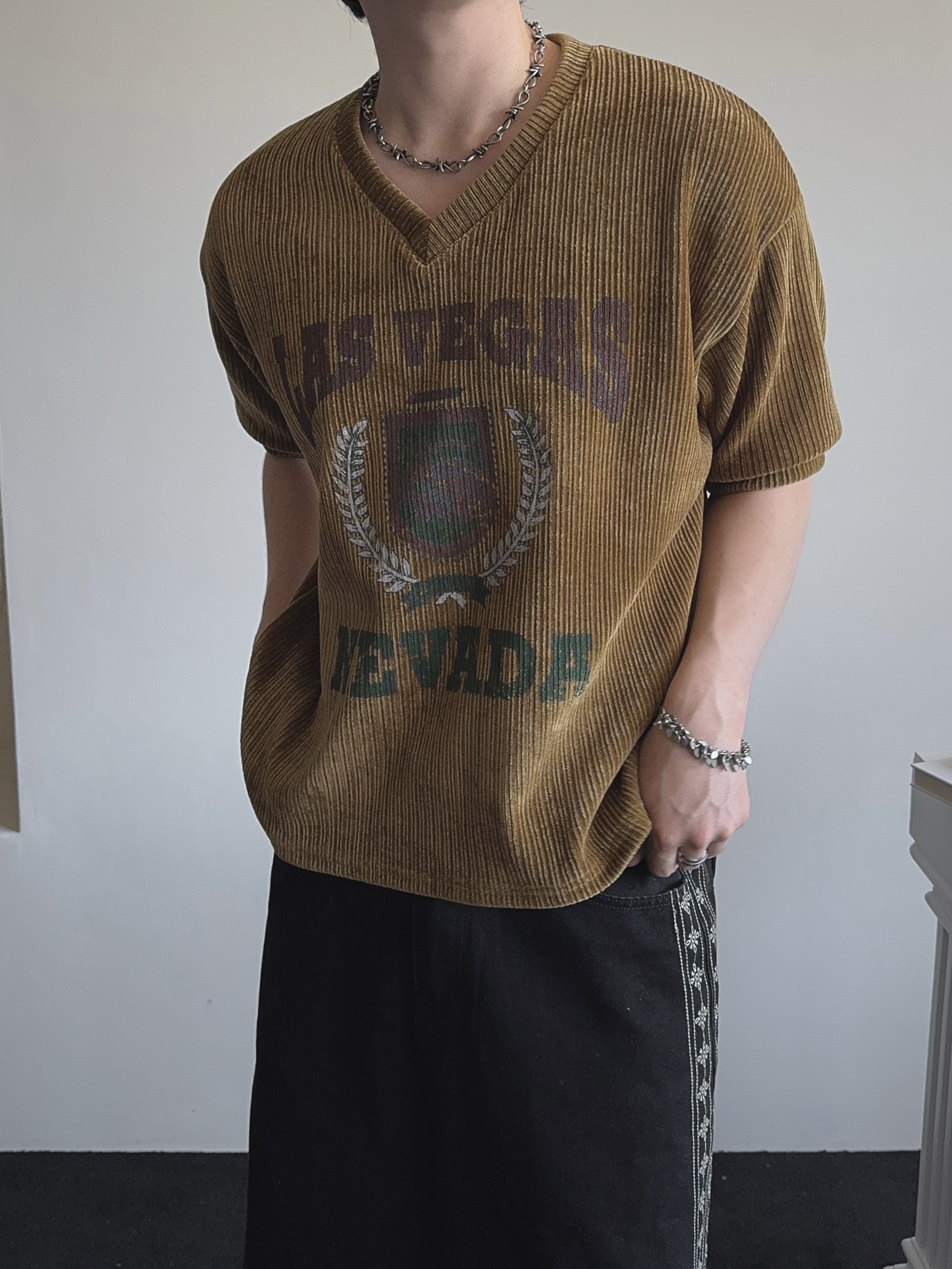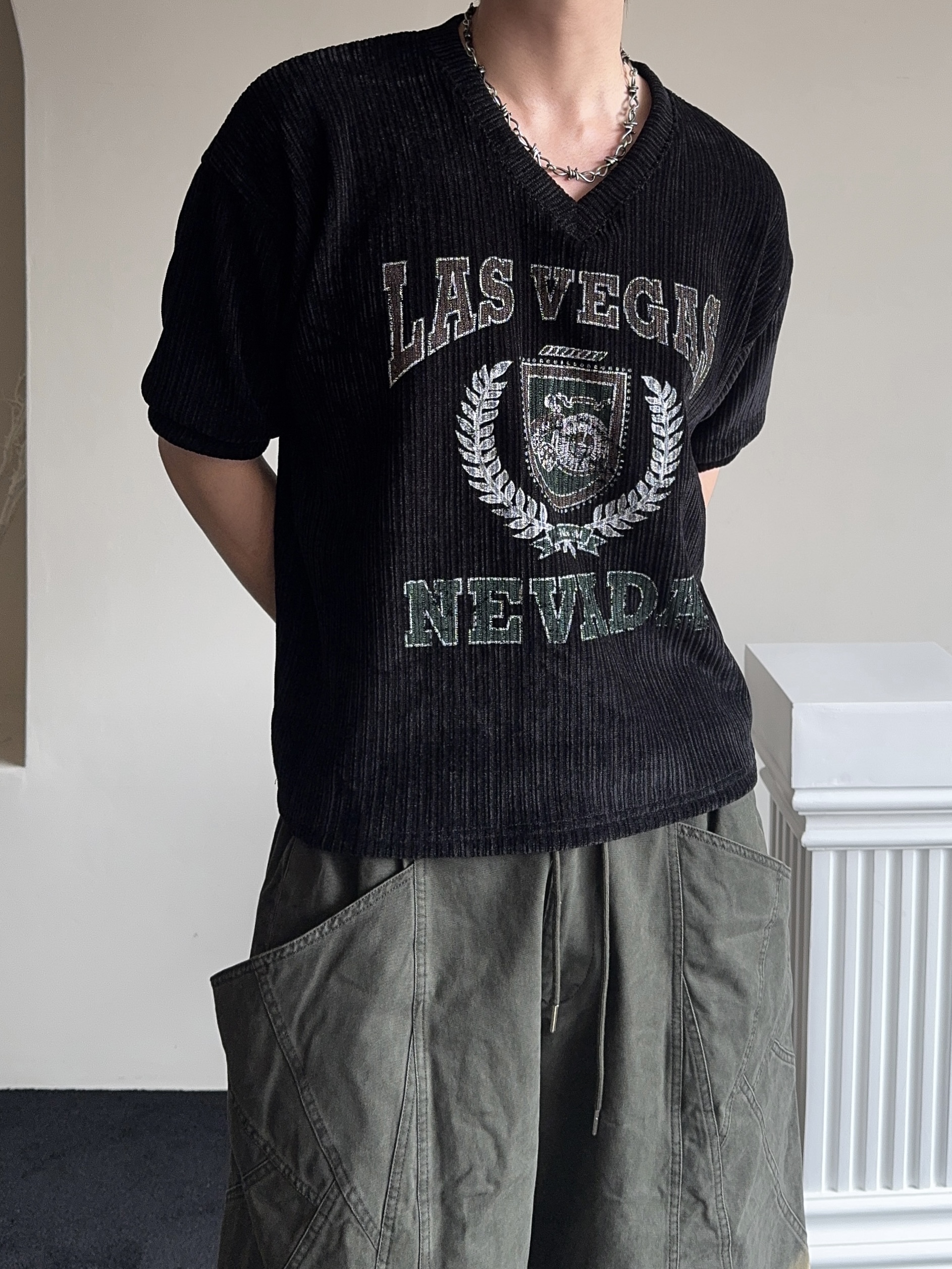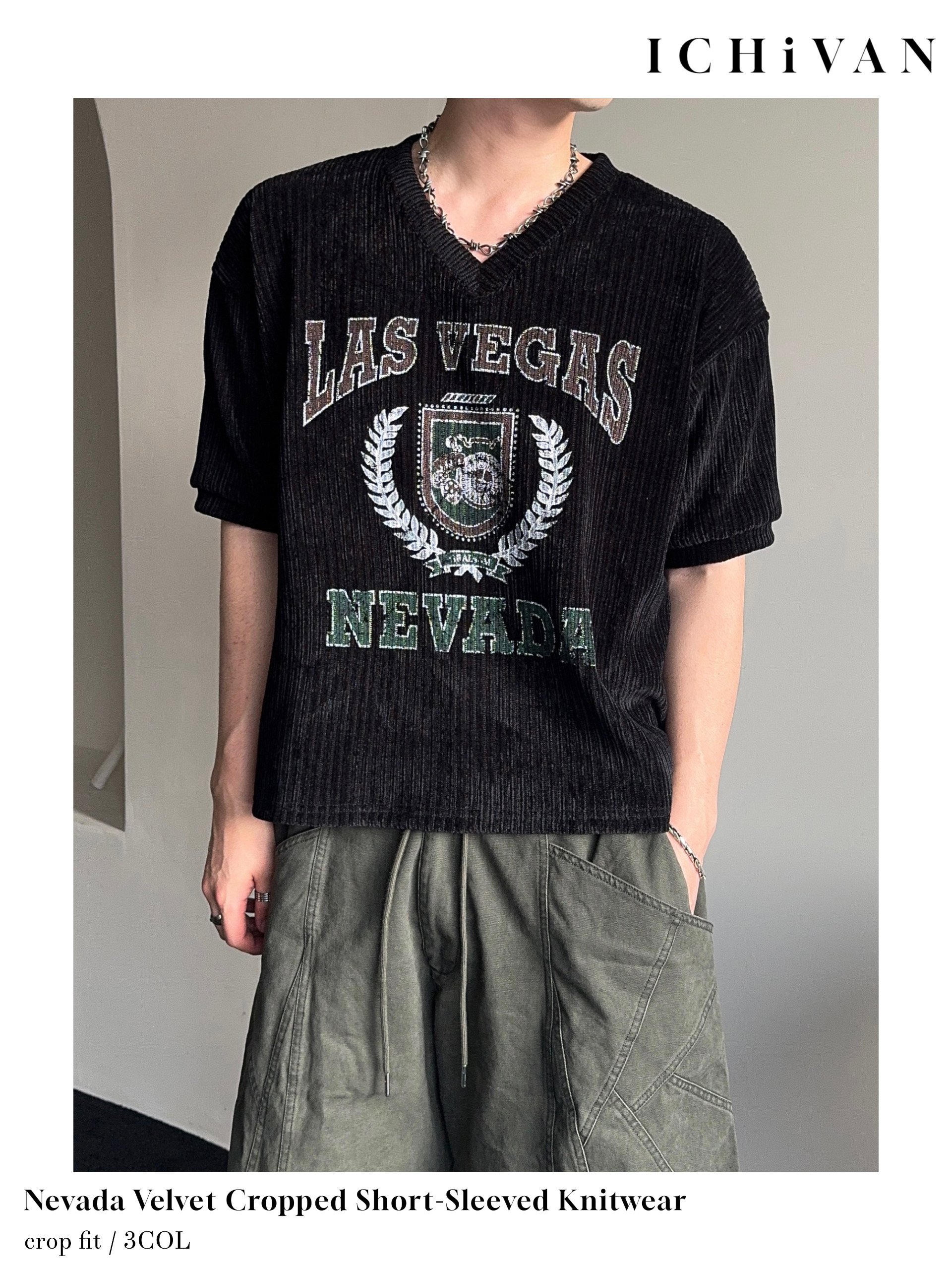 -소재감이 돋보이는 벨벳 원단으로 제작된 반팔 니트