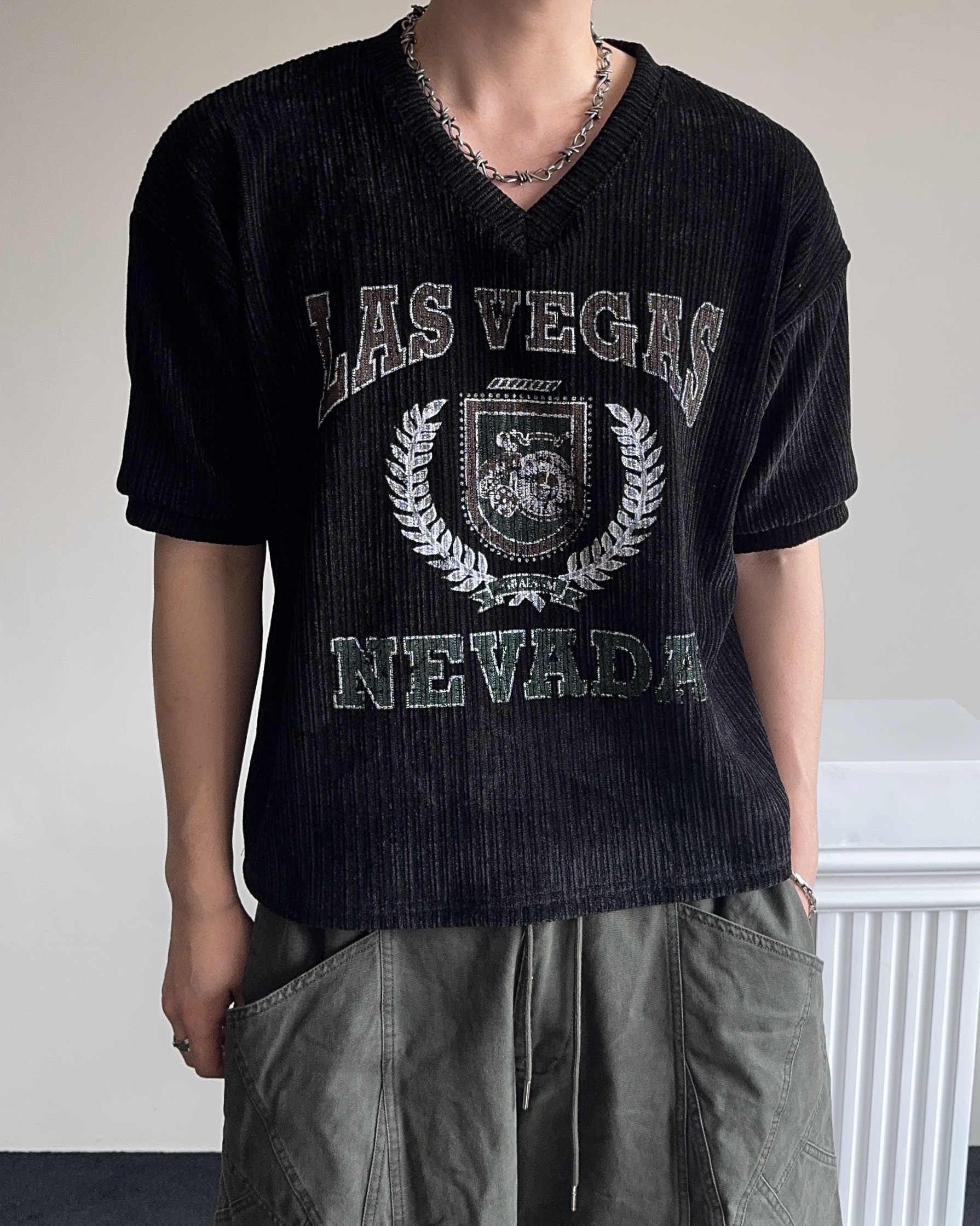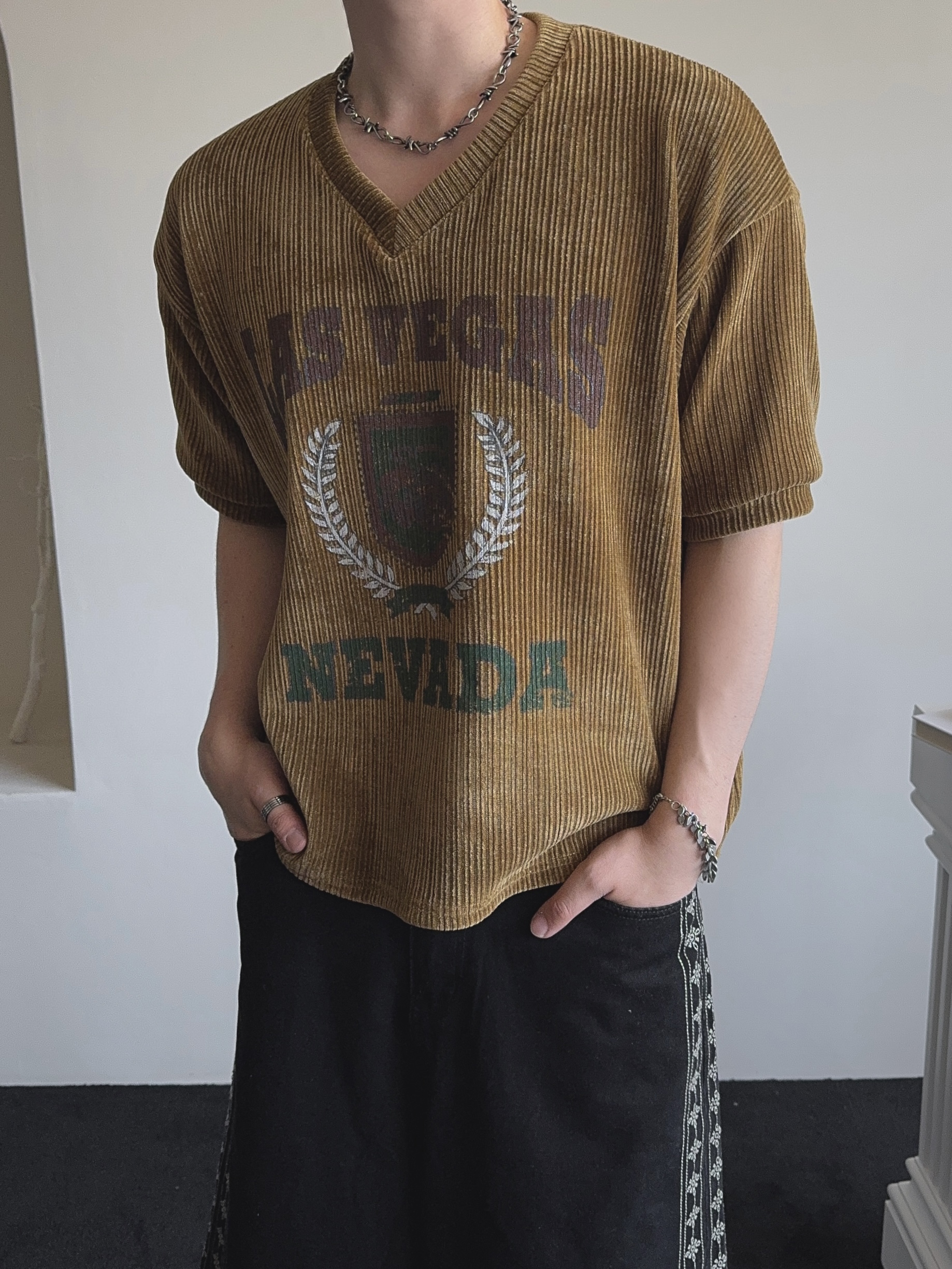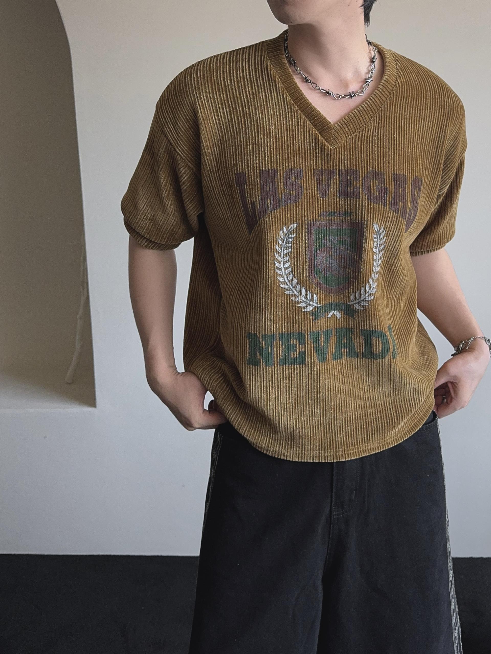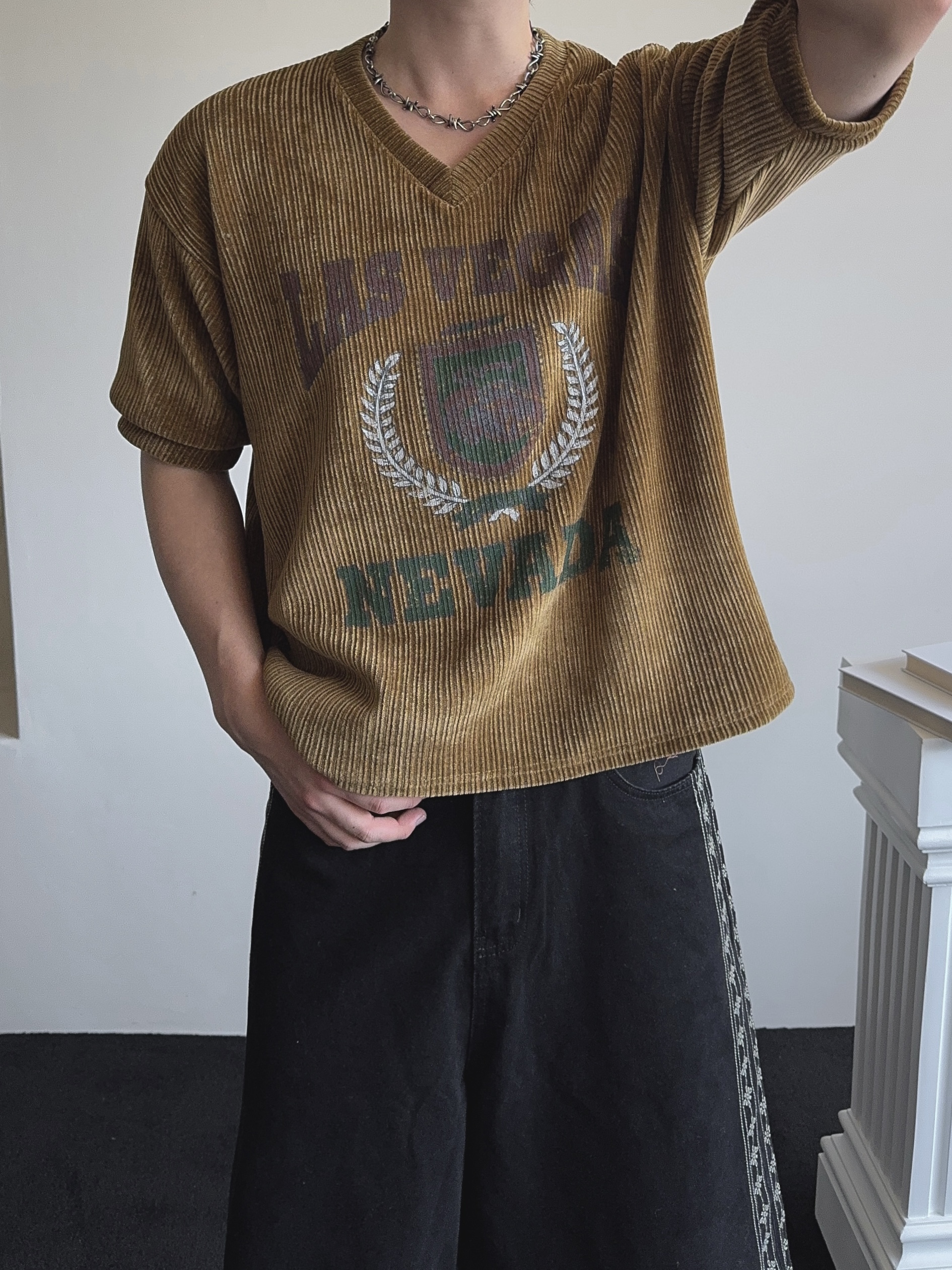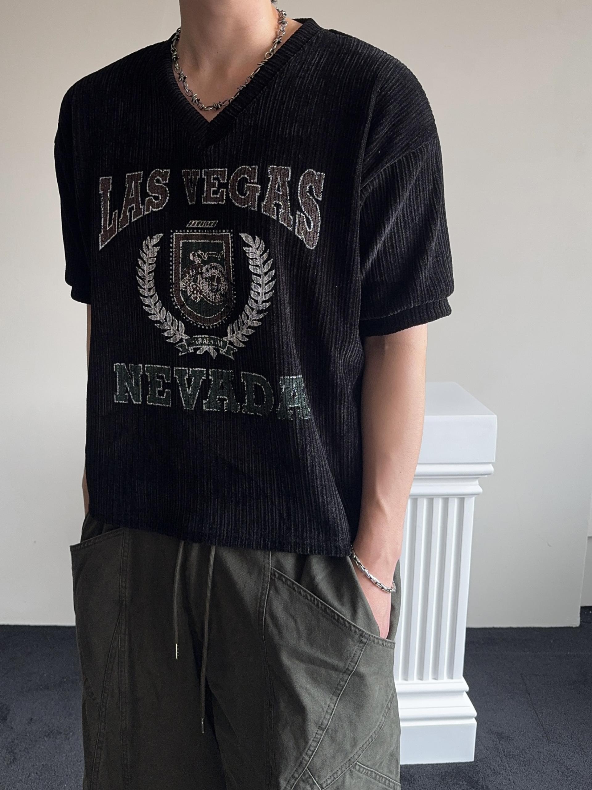 -소재감이 돋보이는 벨벳 원단으로 제작된 반팔 니트