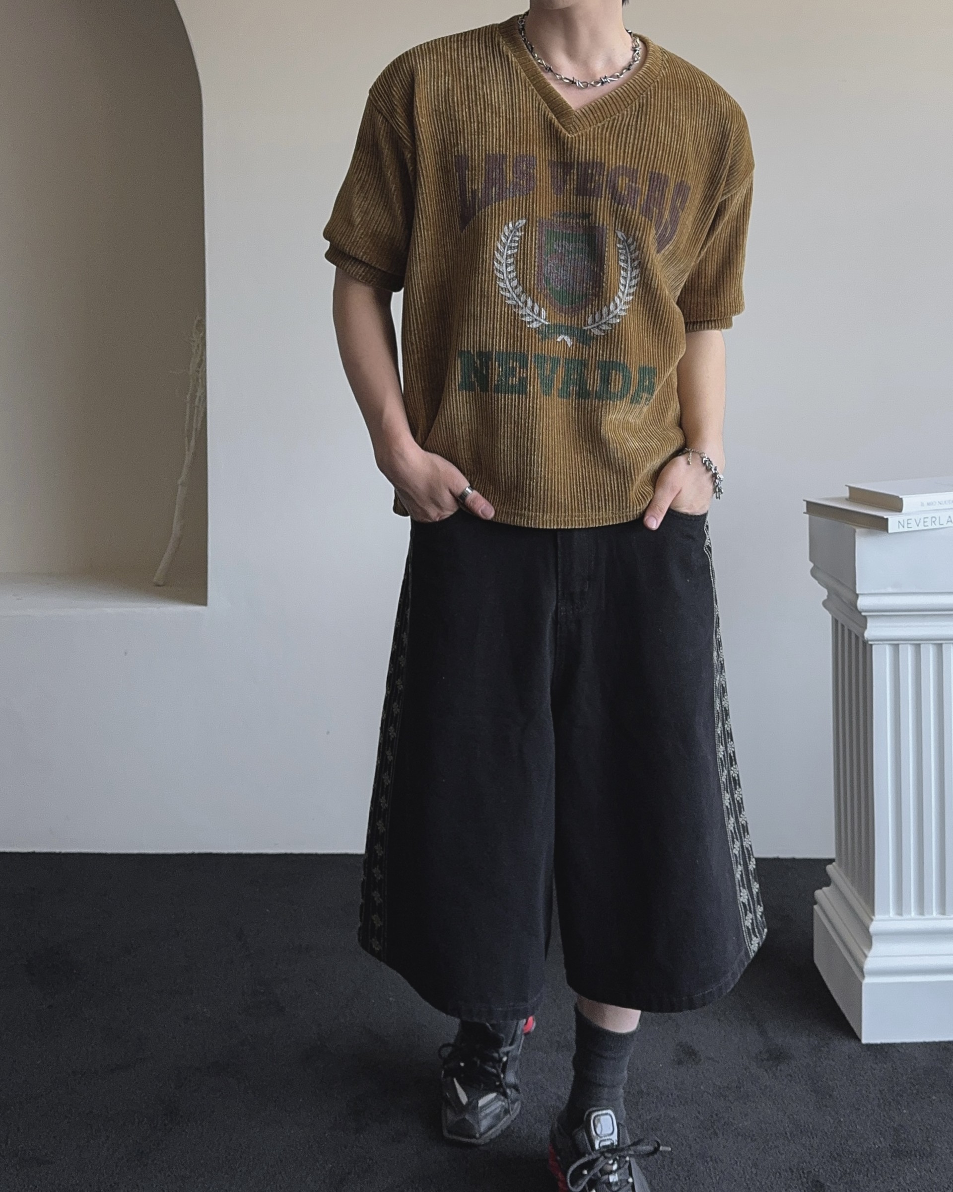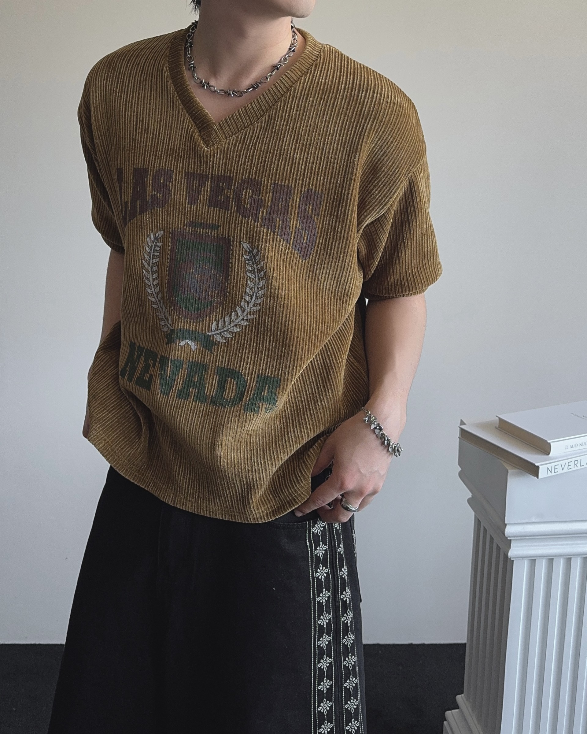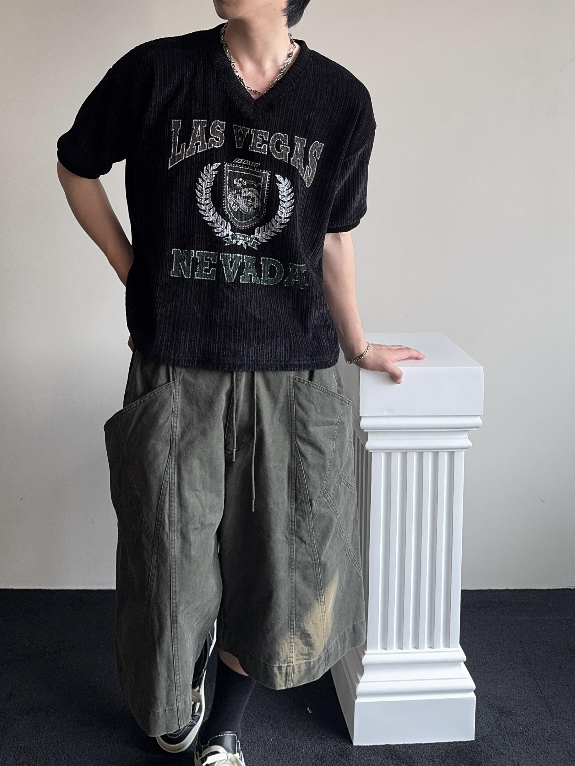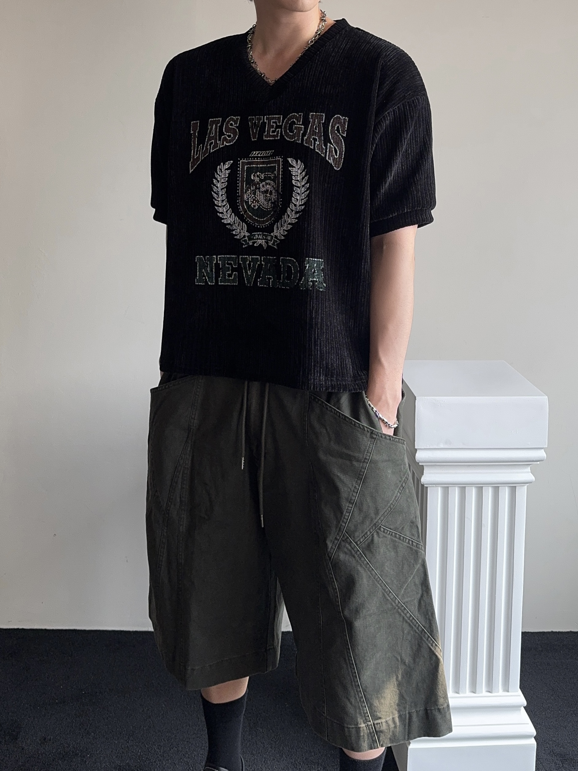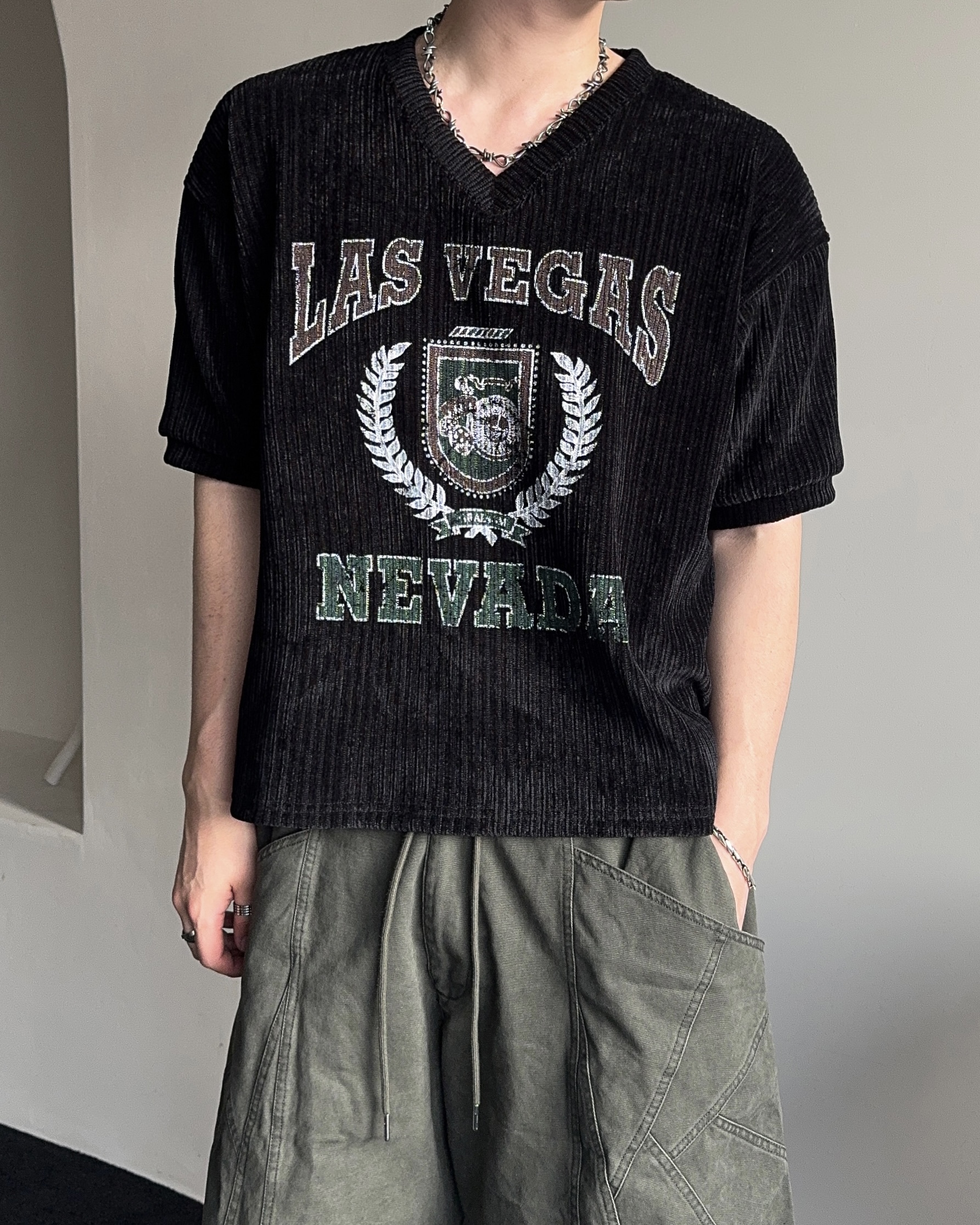 -소재감이 돋보이는 벨벳 원단으로 제작된 반팔 니트