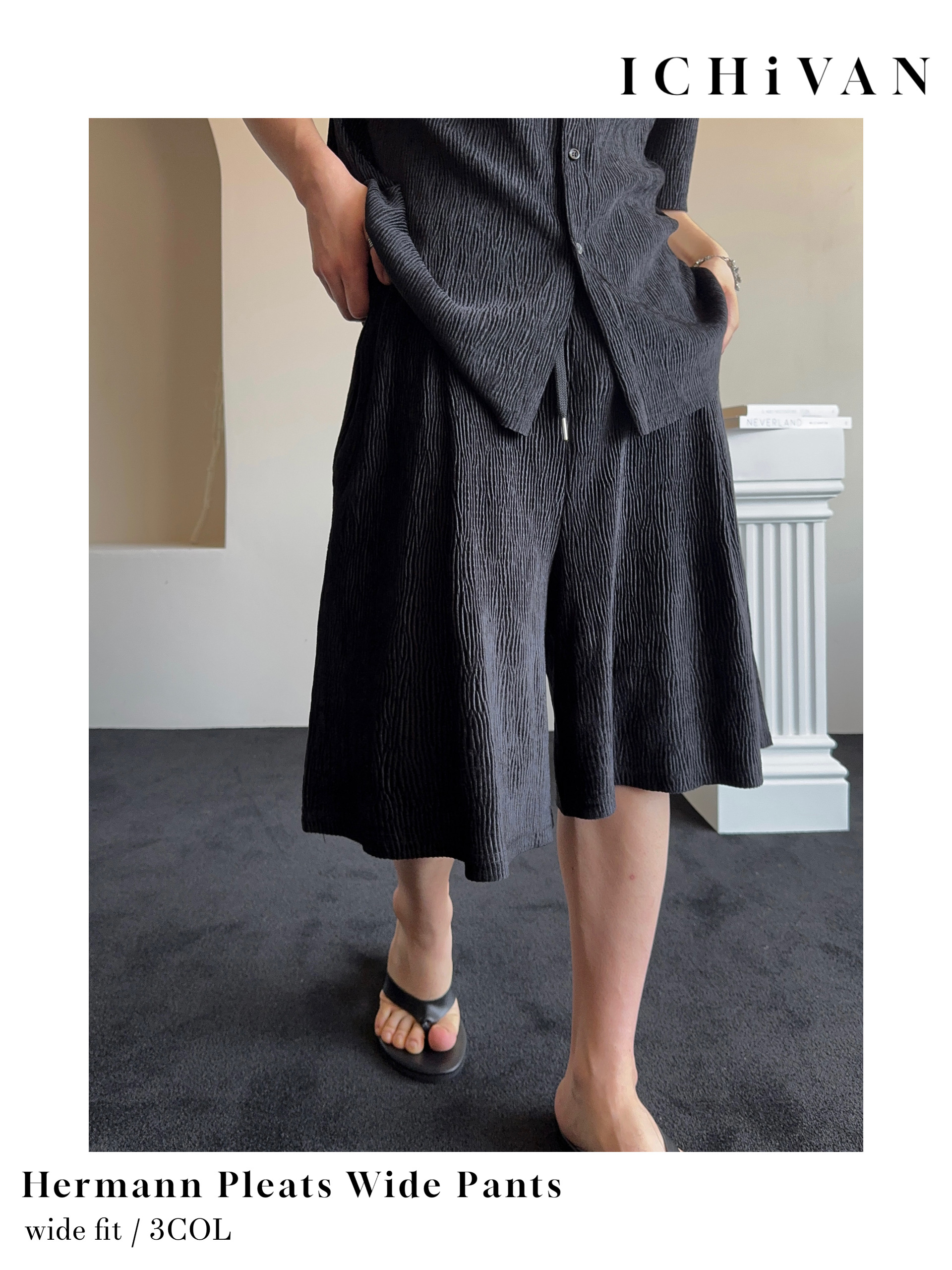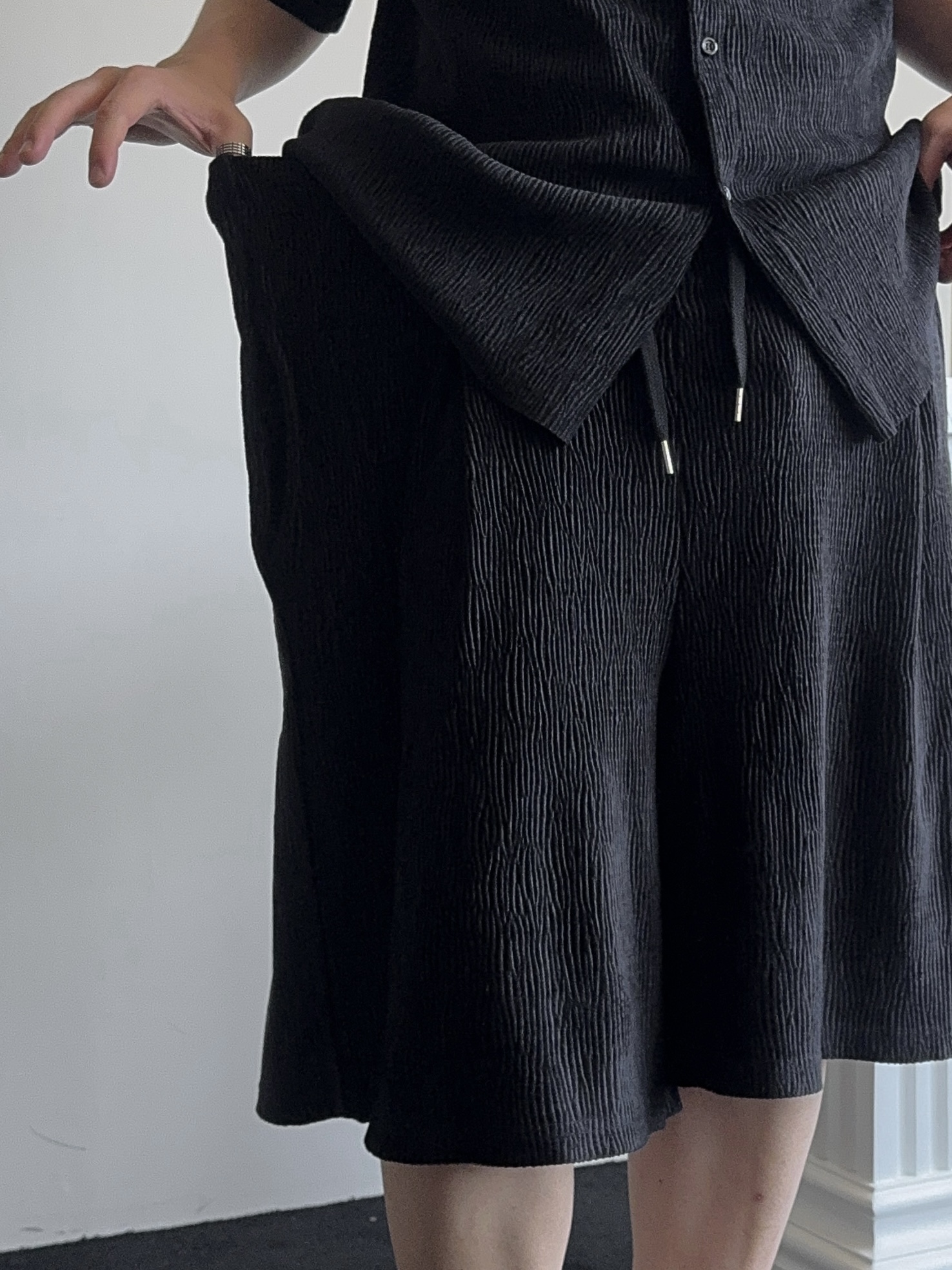 -우아한 소재감이 돋보이는 플리츠 하프 팬츠