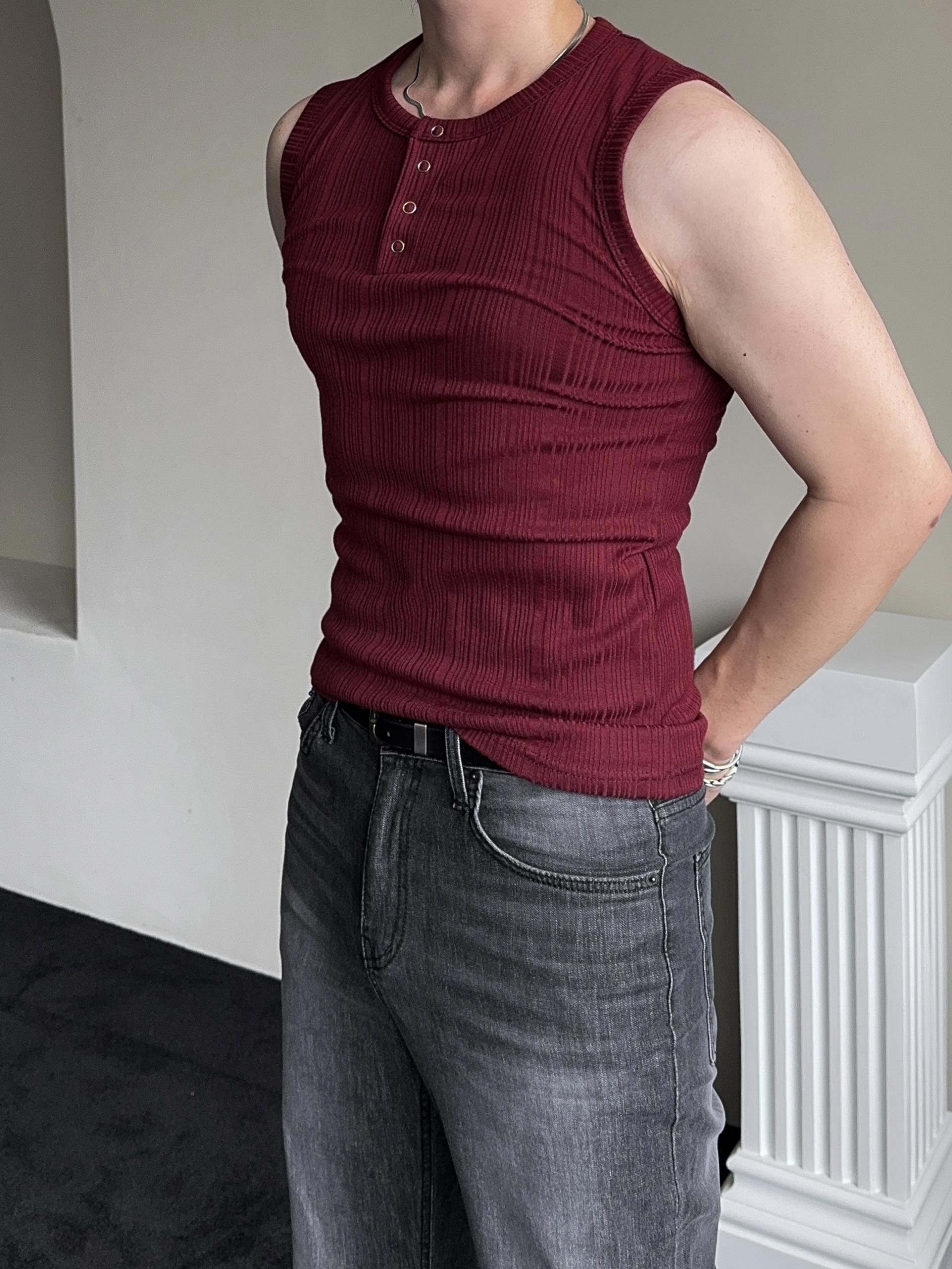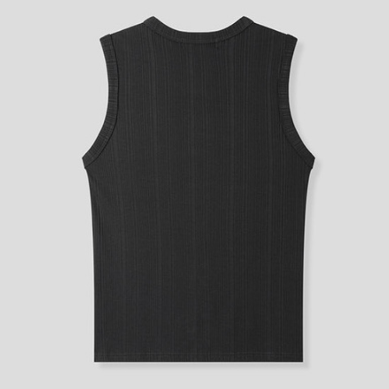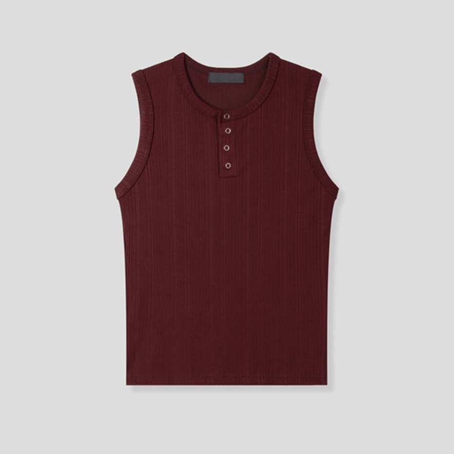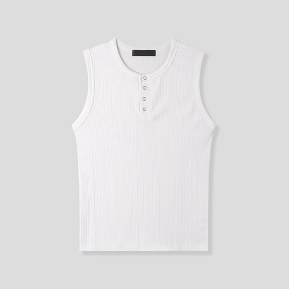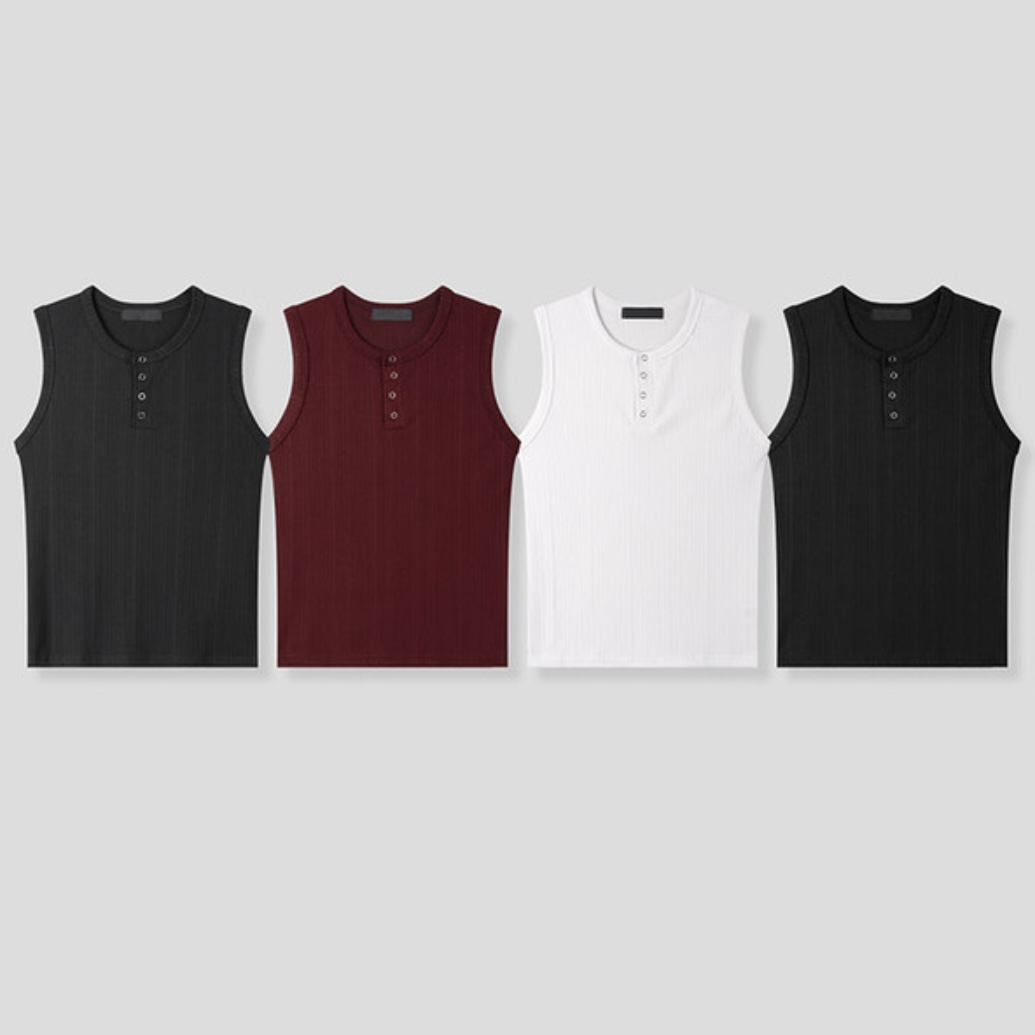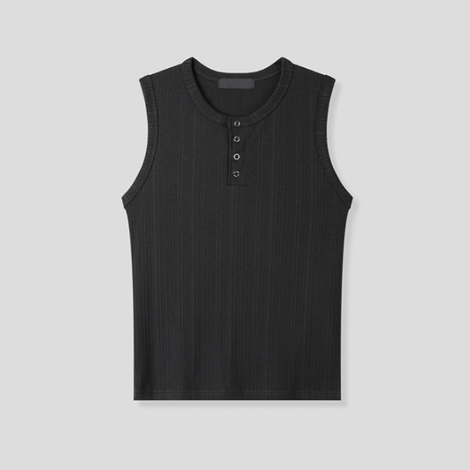 -얇은 골지 소재로 제작된 헨리넥 나시 티셔츠