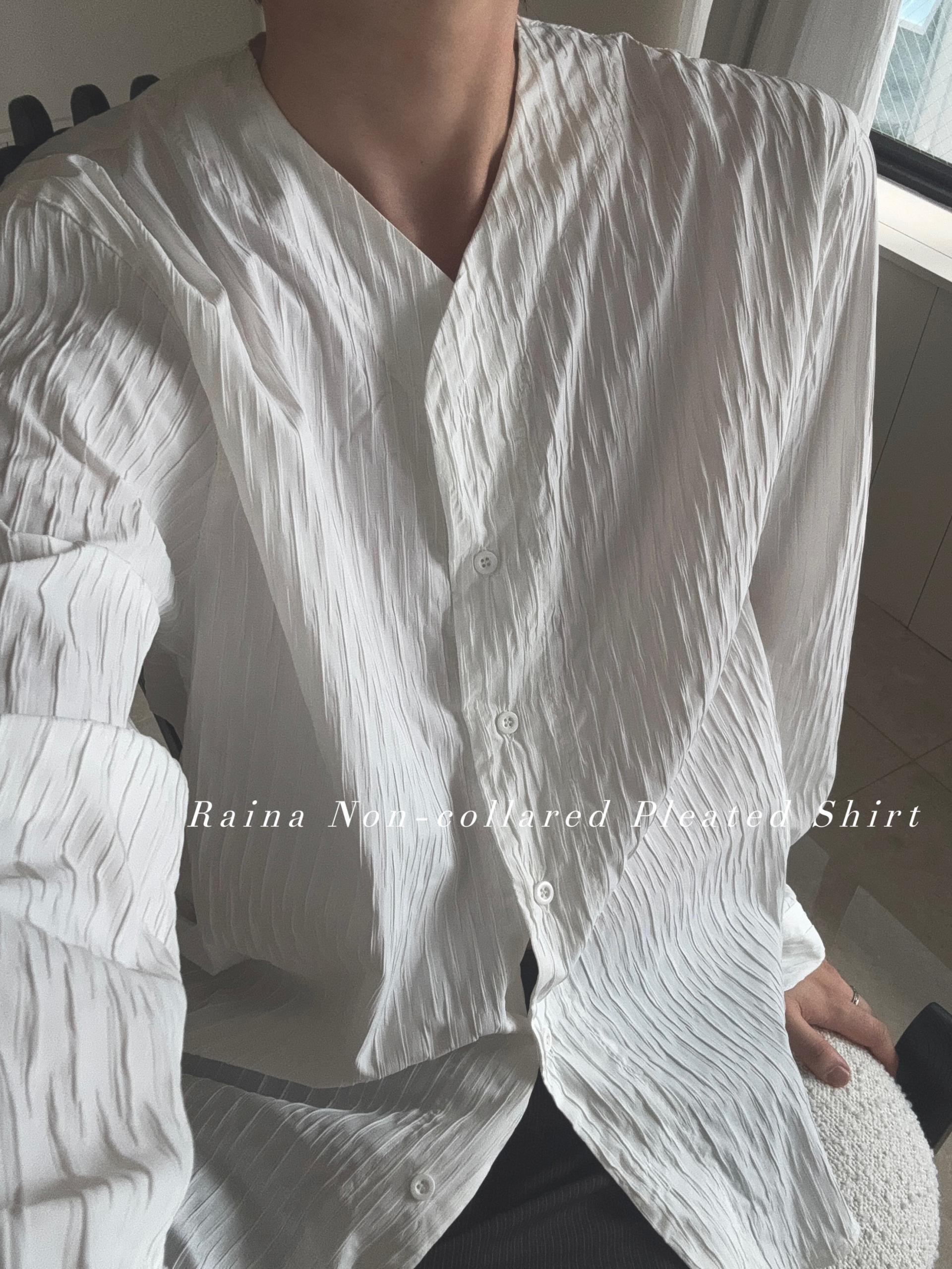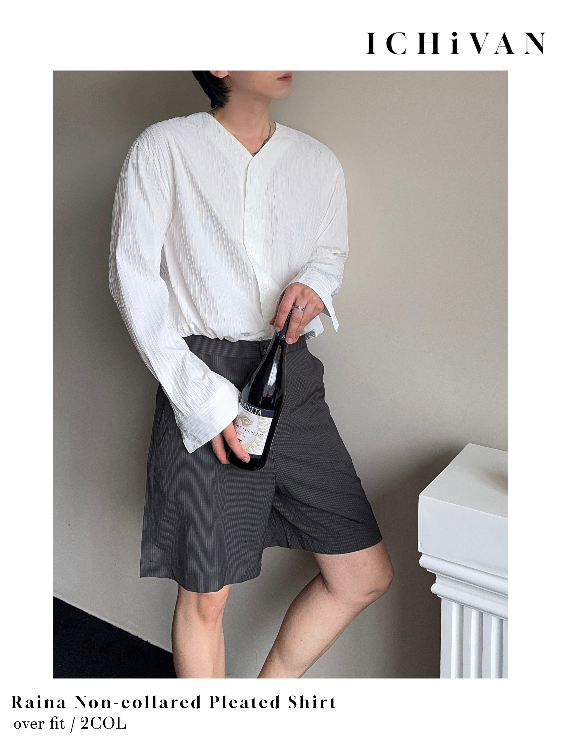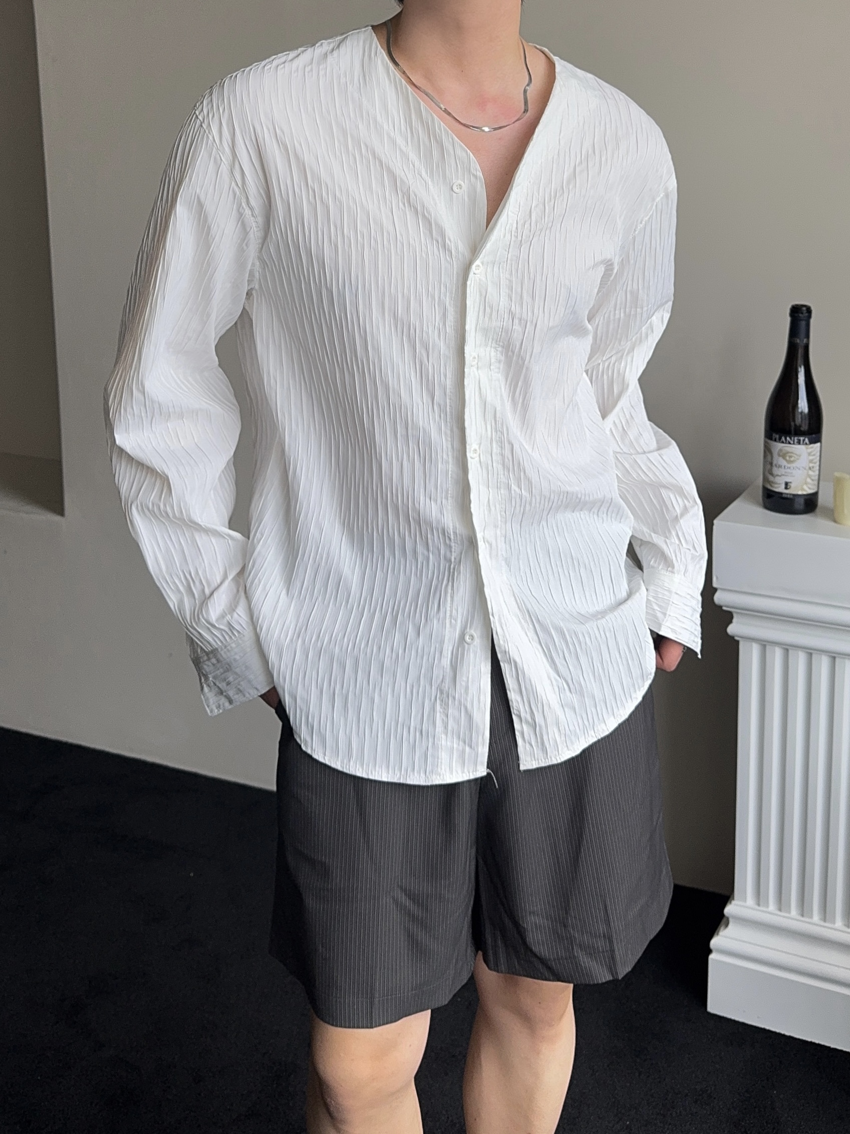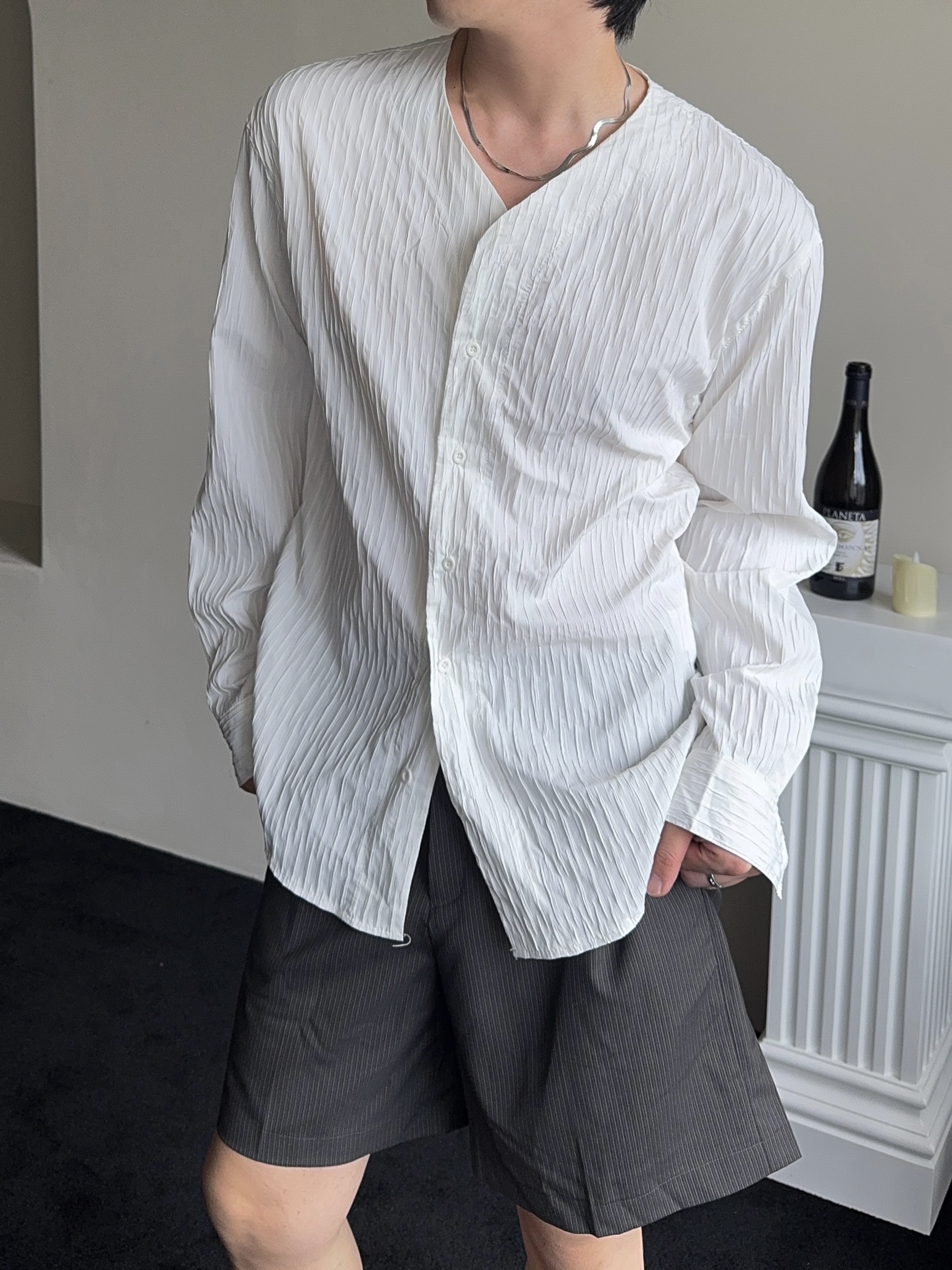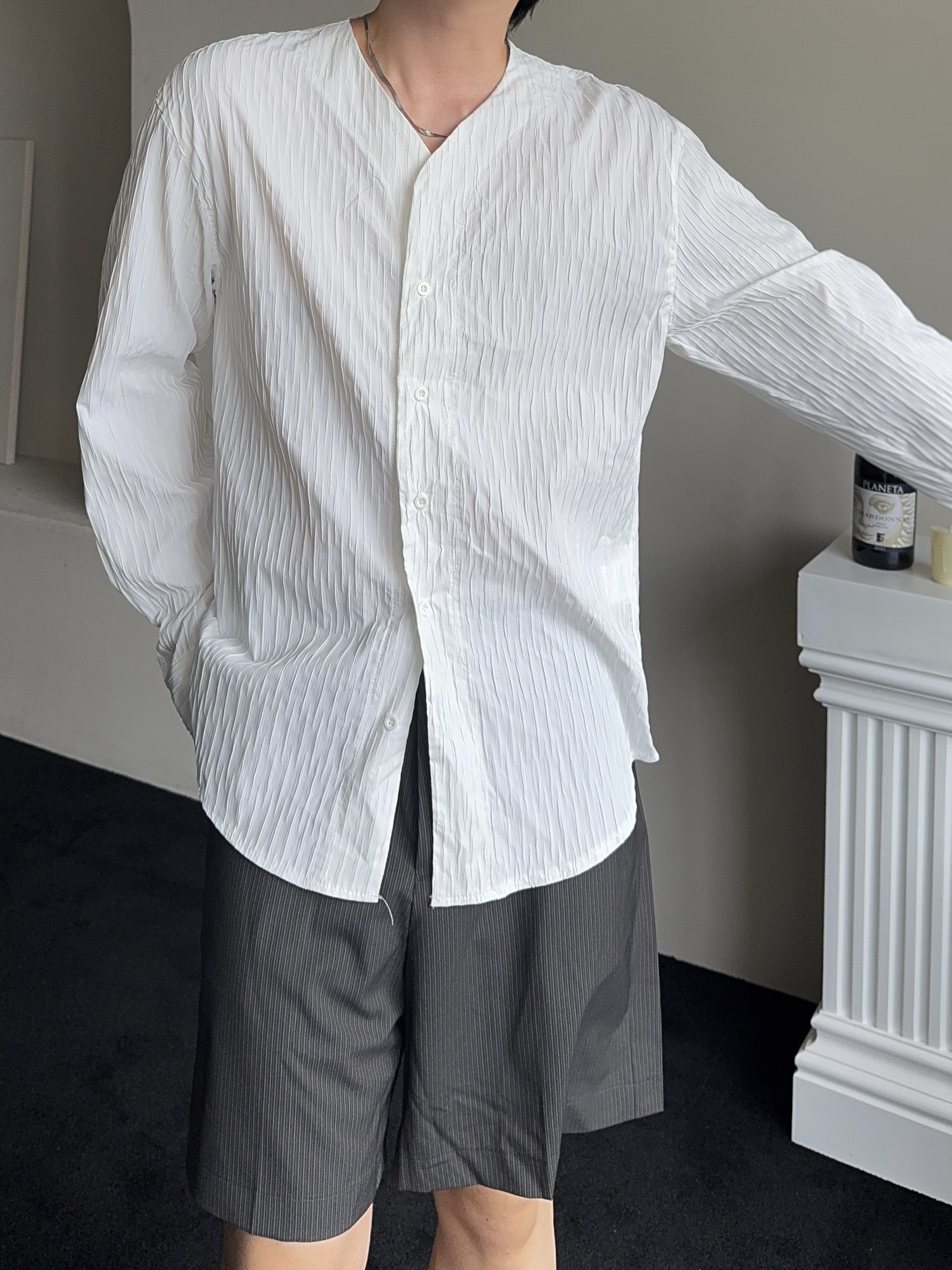 -깔끔한 논카라 디자인의 플리츠 셔츠
