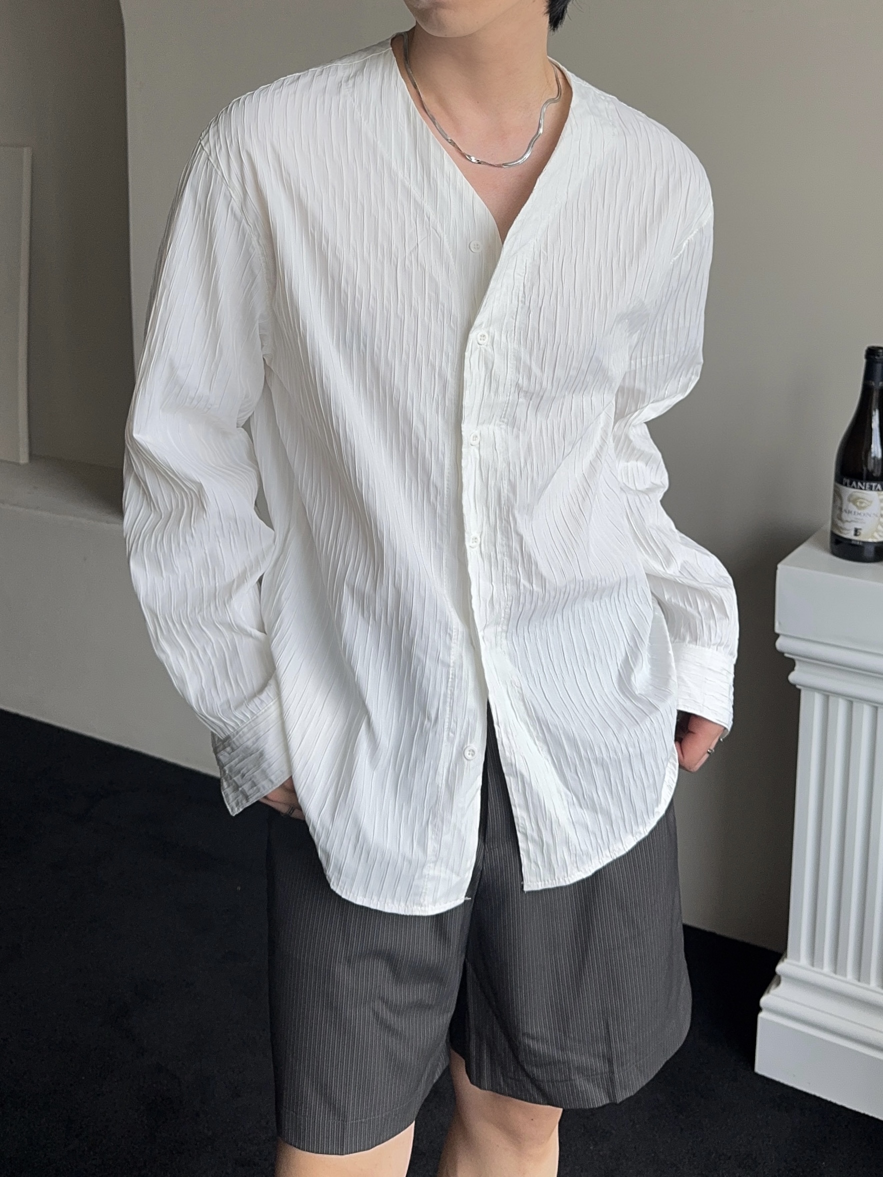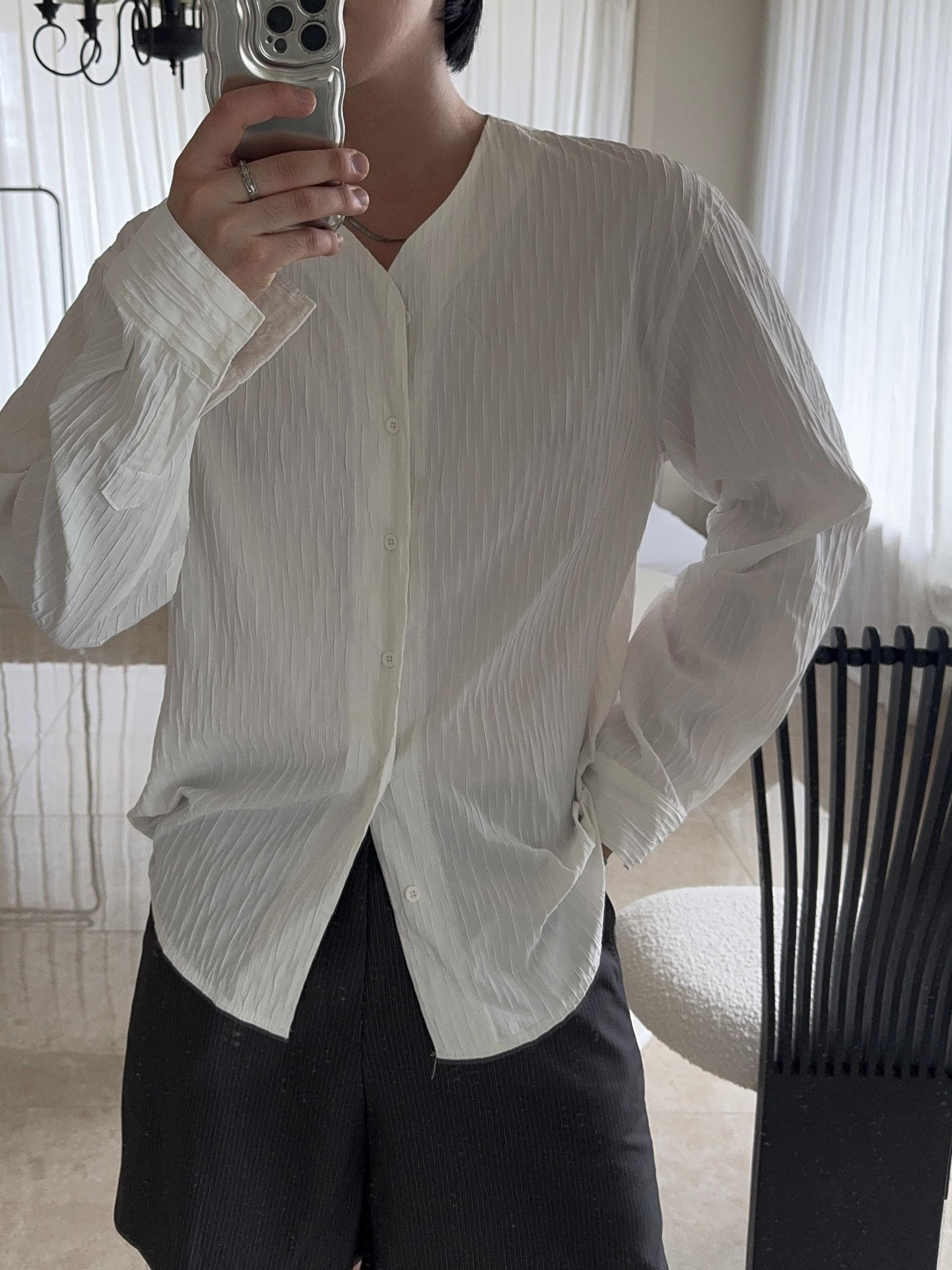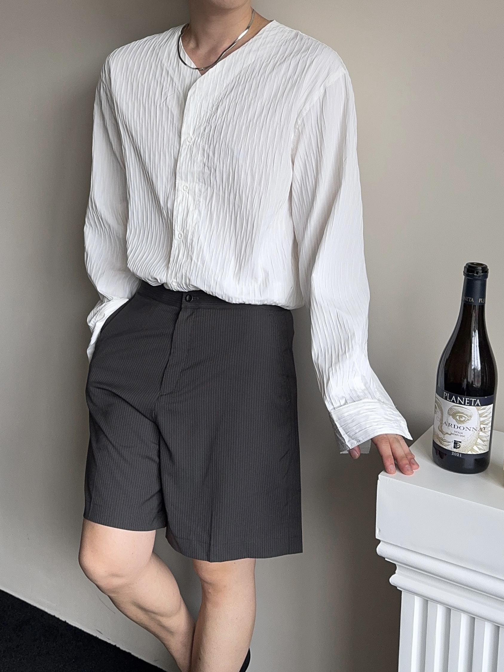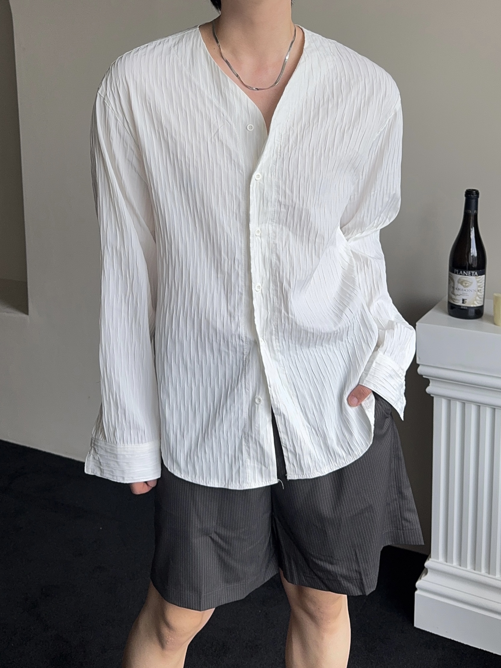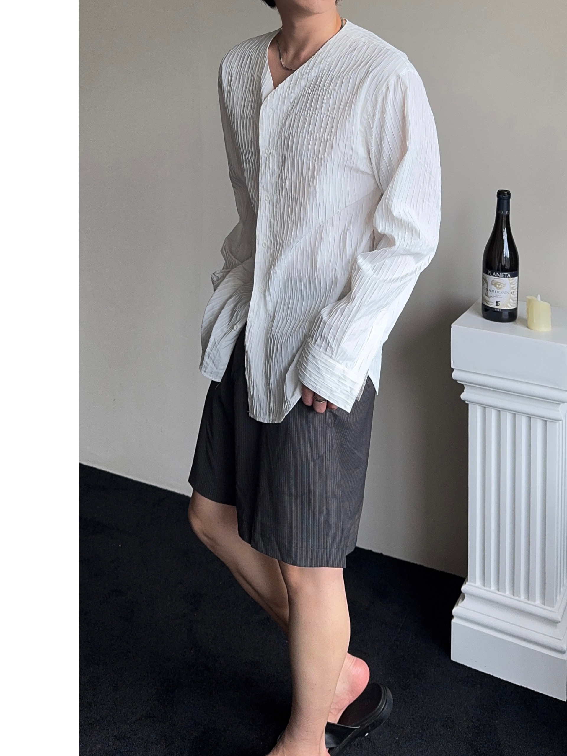 -깔끔한 논카라 디자인의 플리츠 셔츠