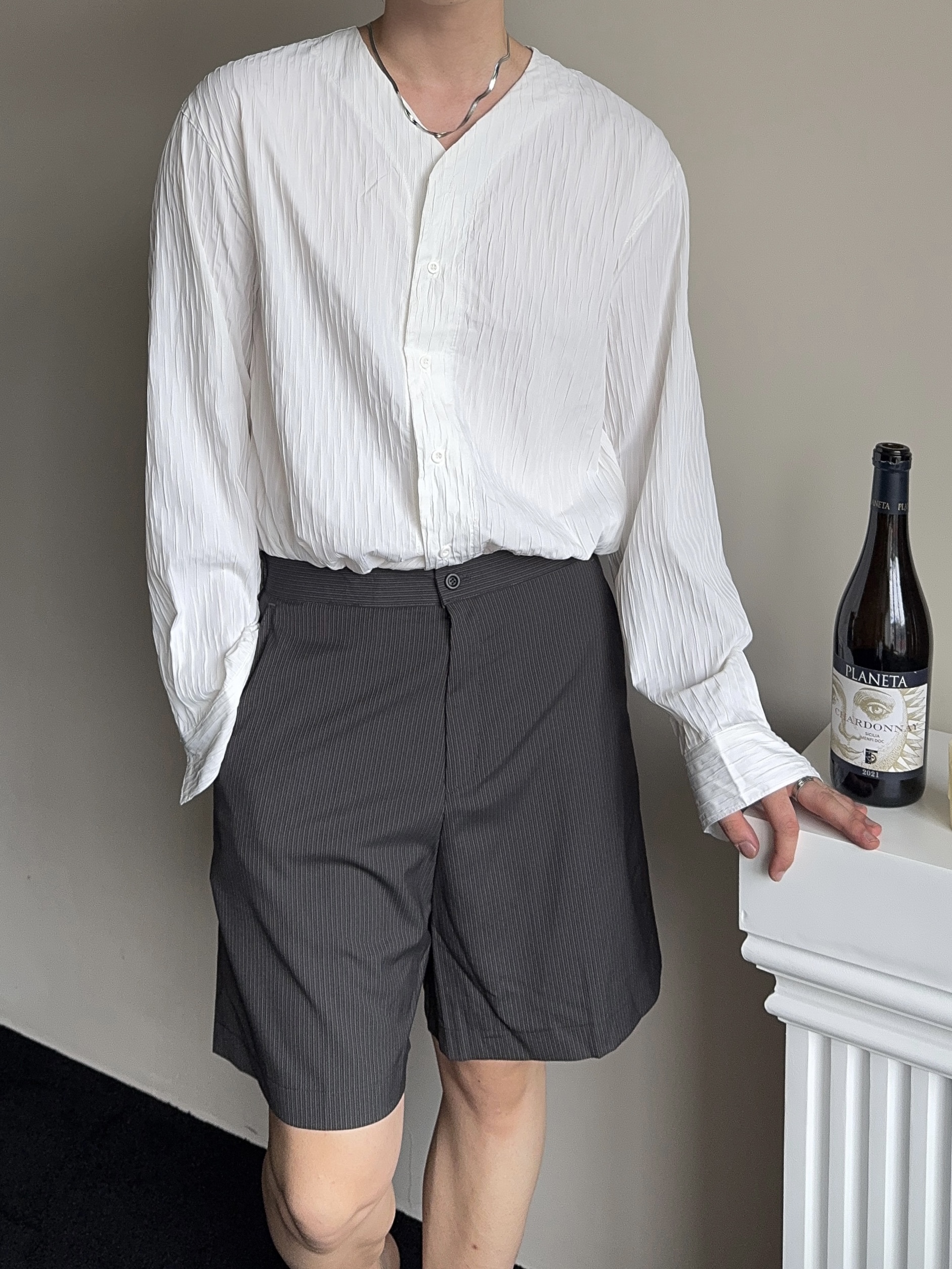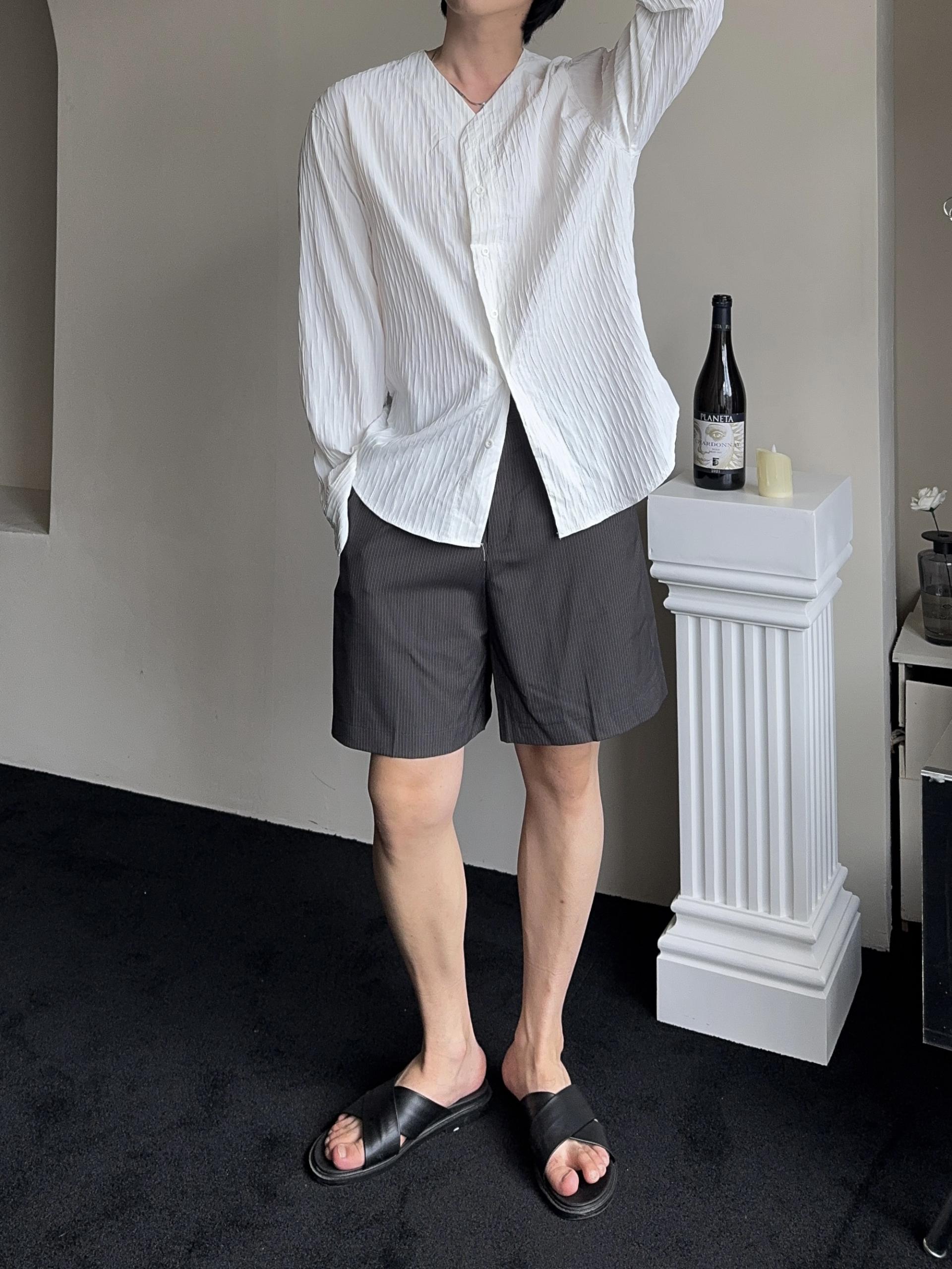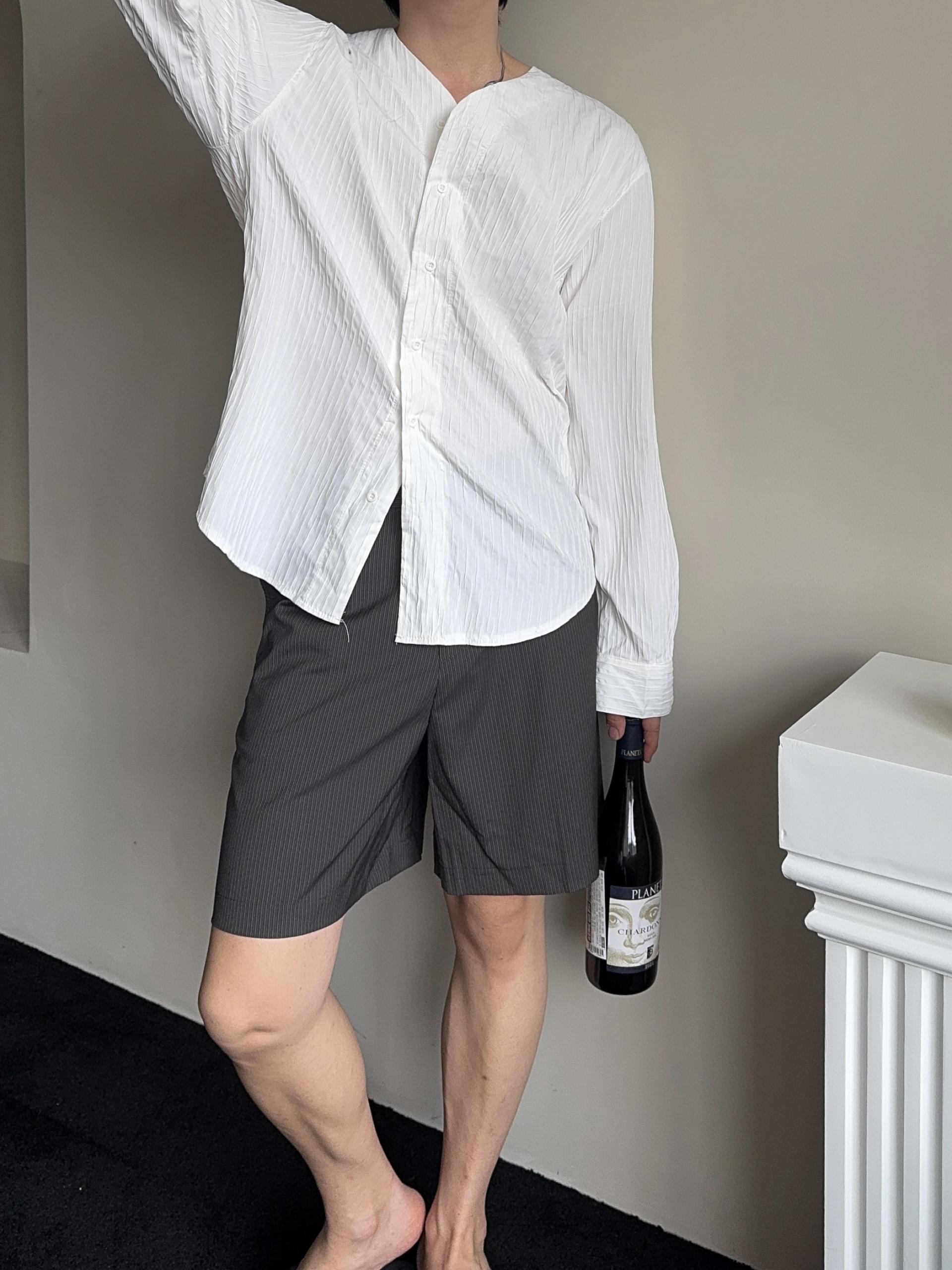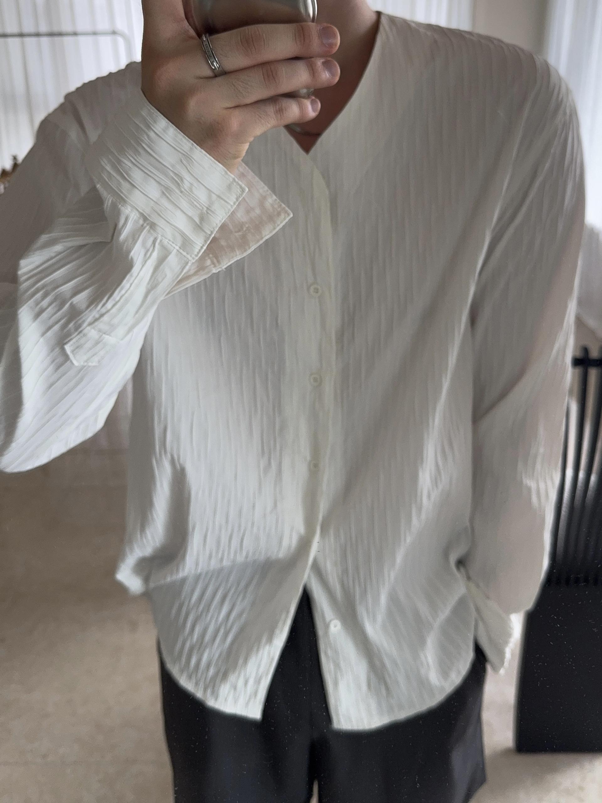 -깔끔한 논카라 디자인의 플리츠 셔츠