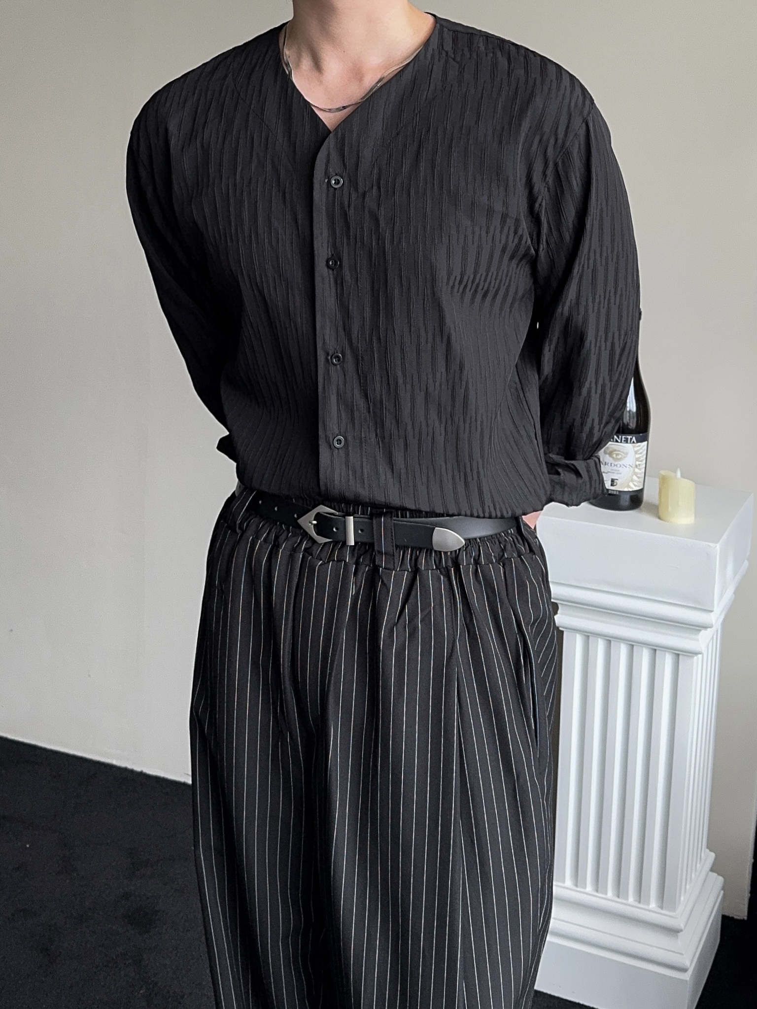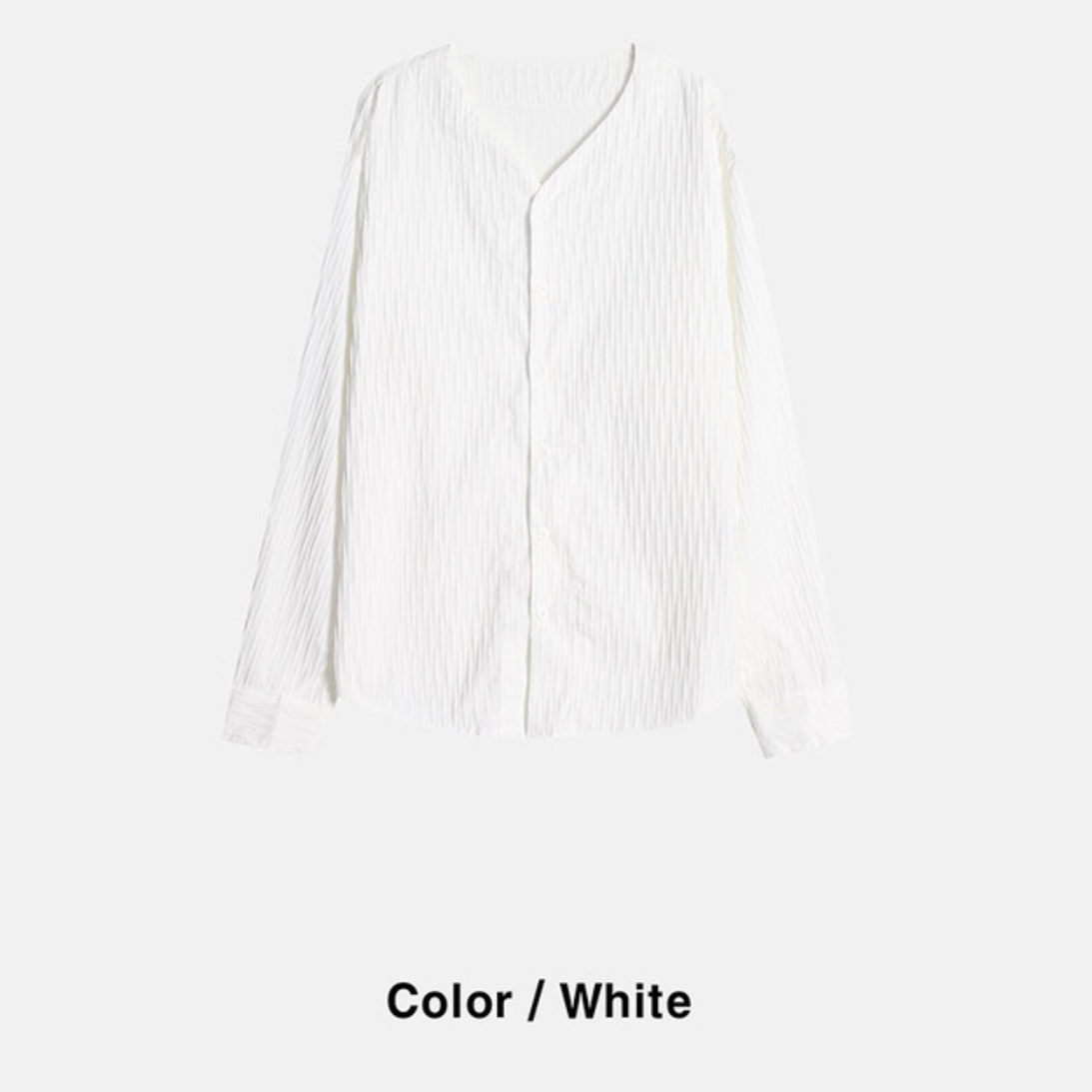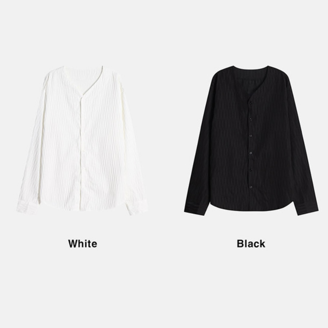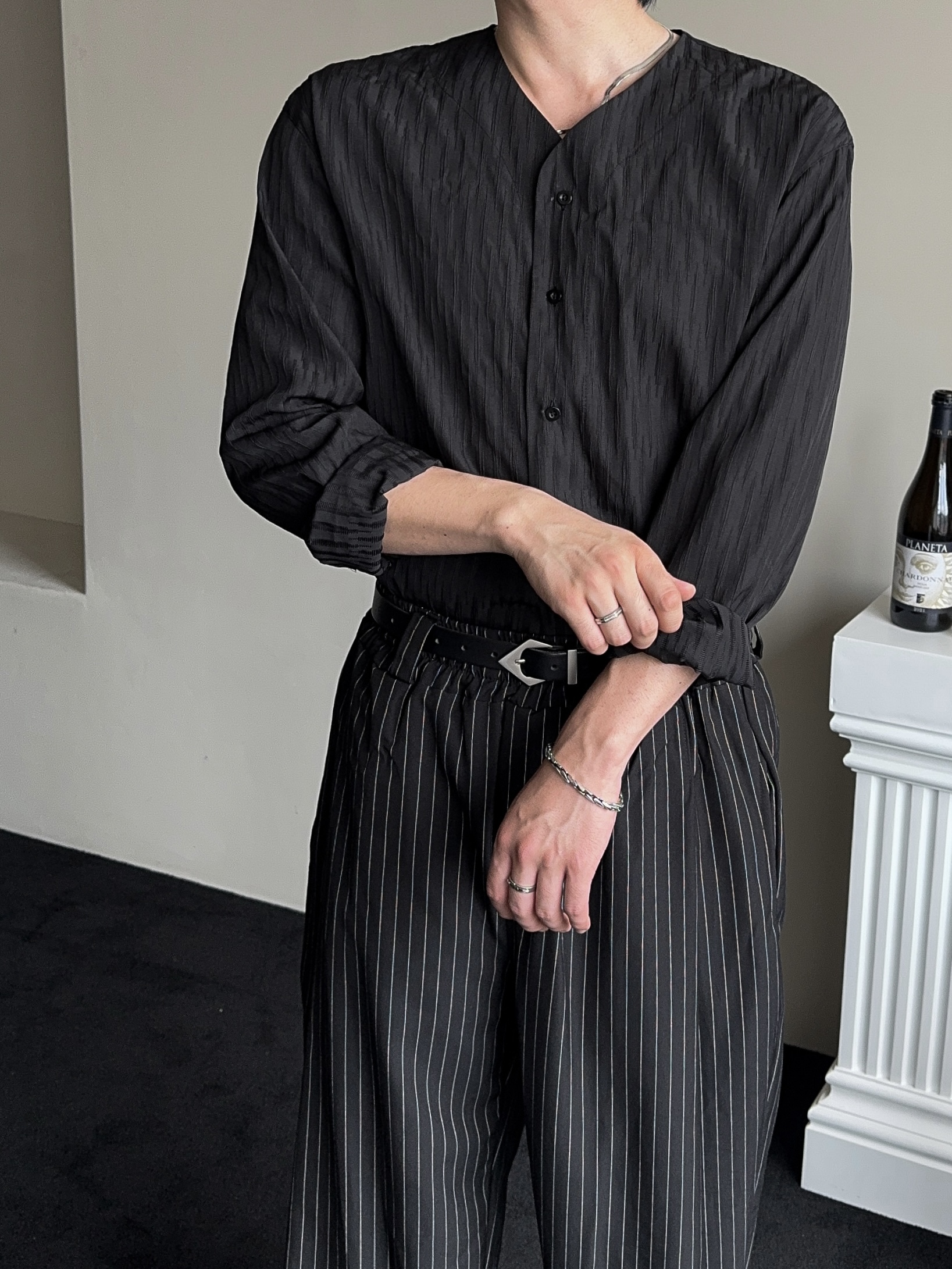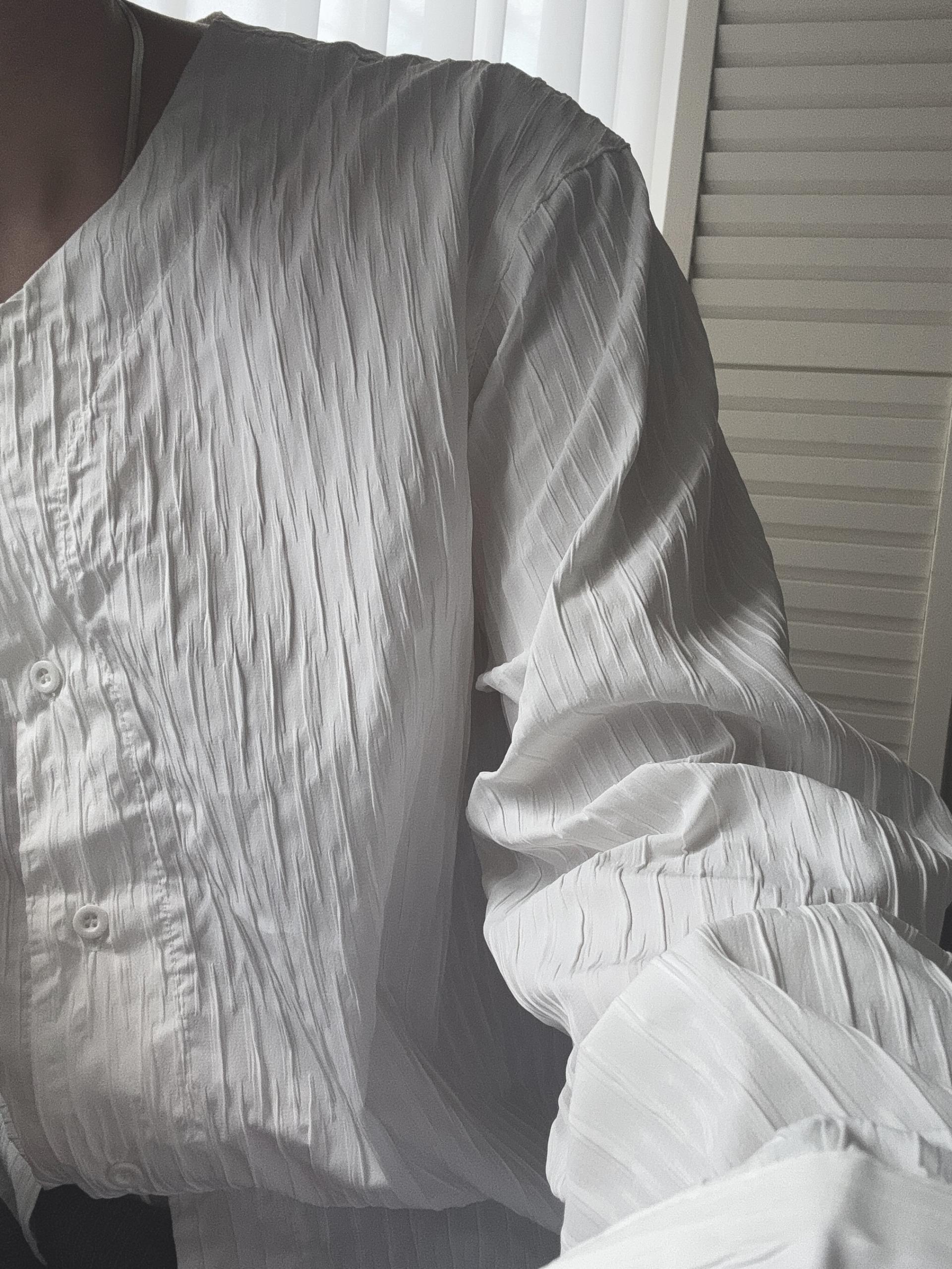 -깔끔한 논카라 디자인의 플리츠 셔츠