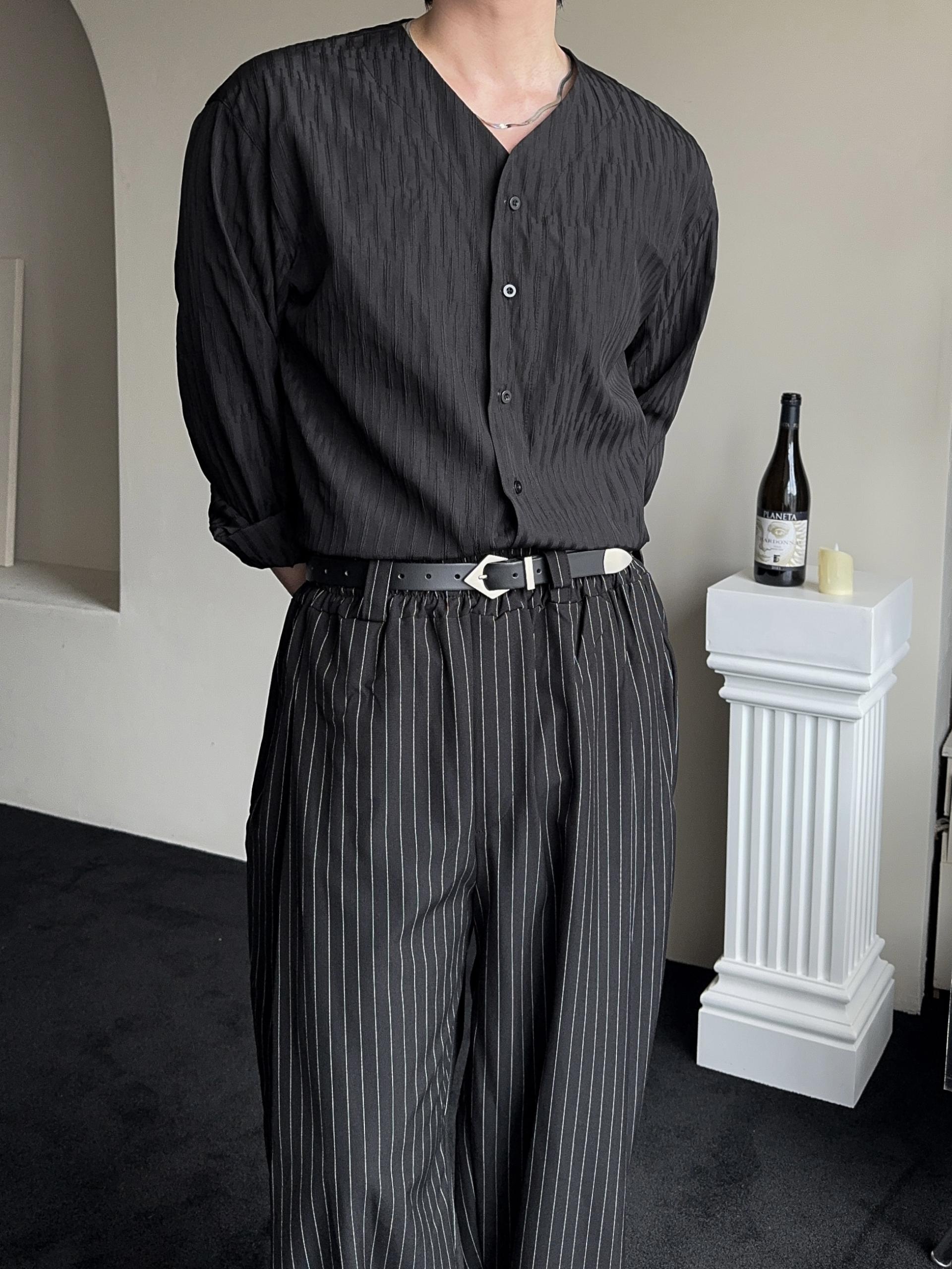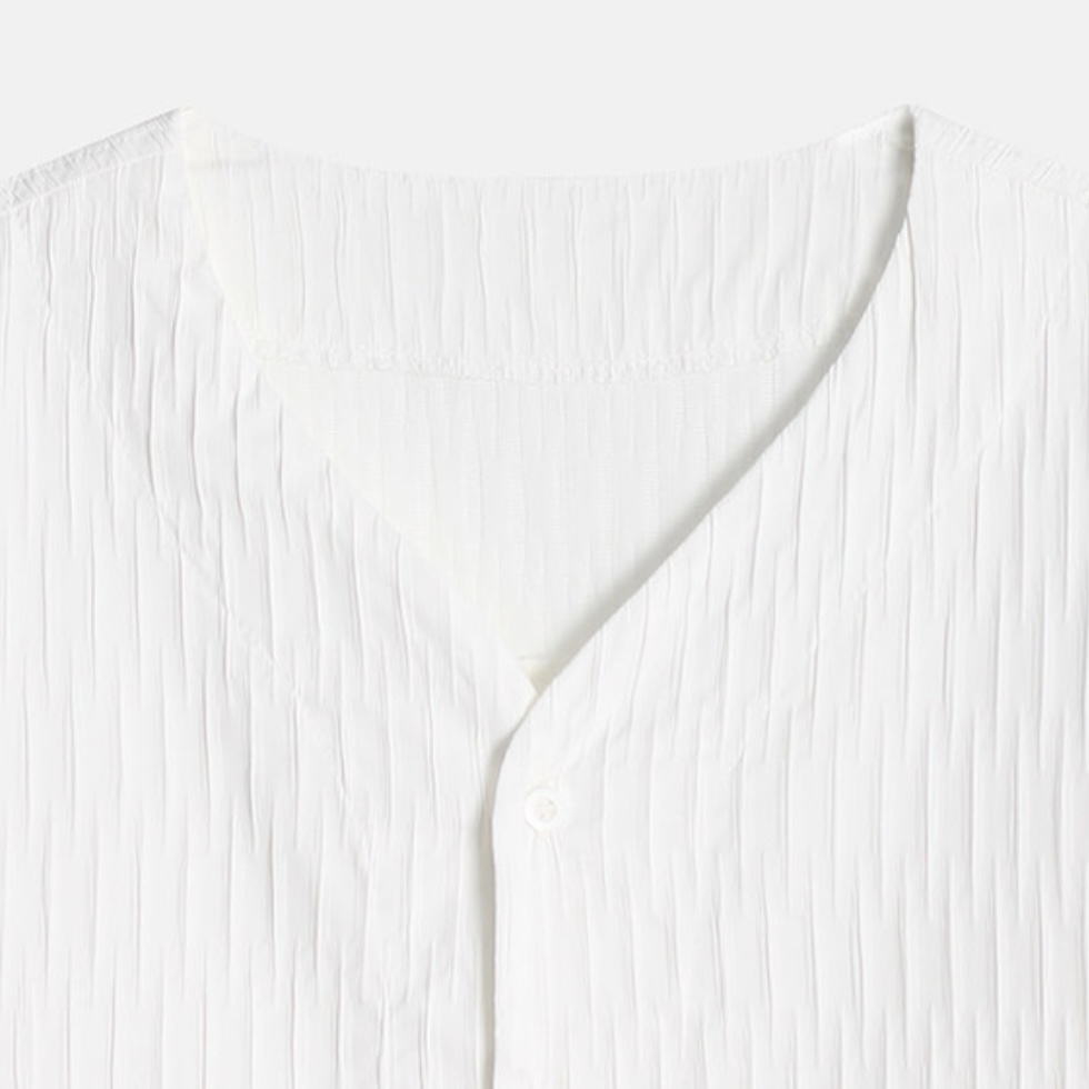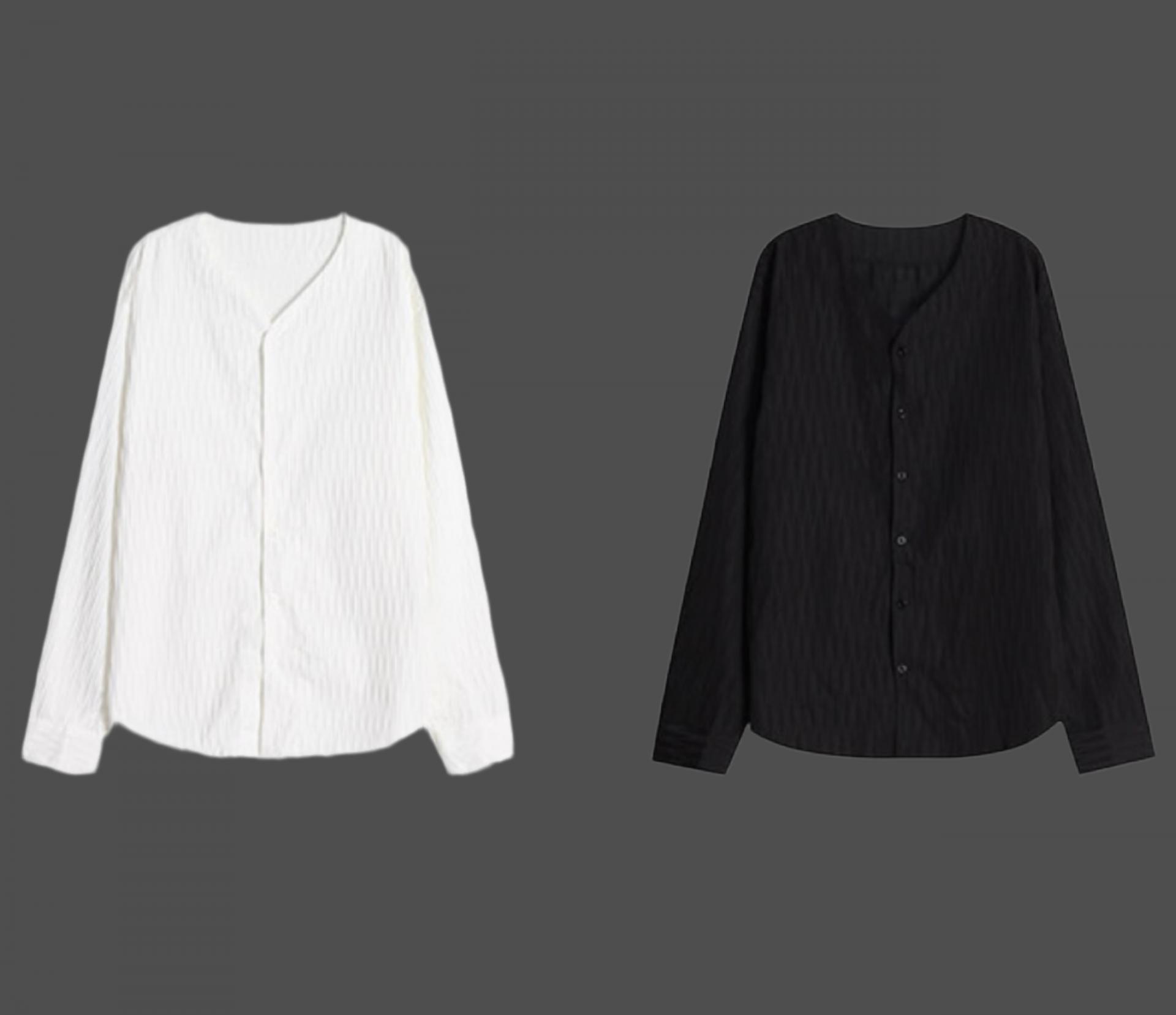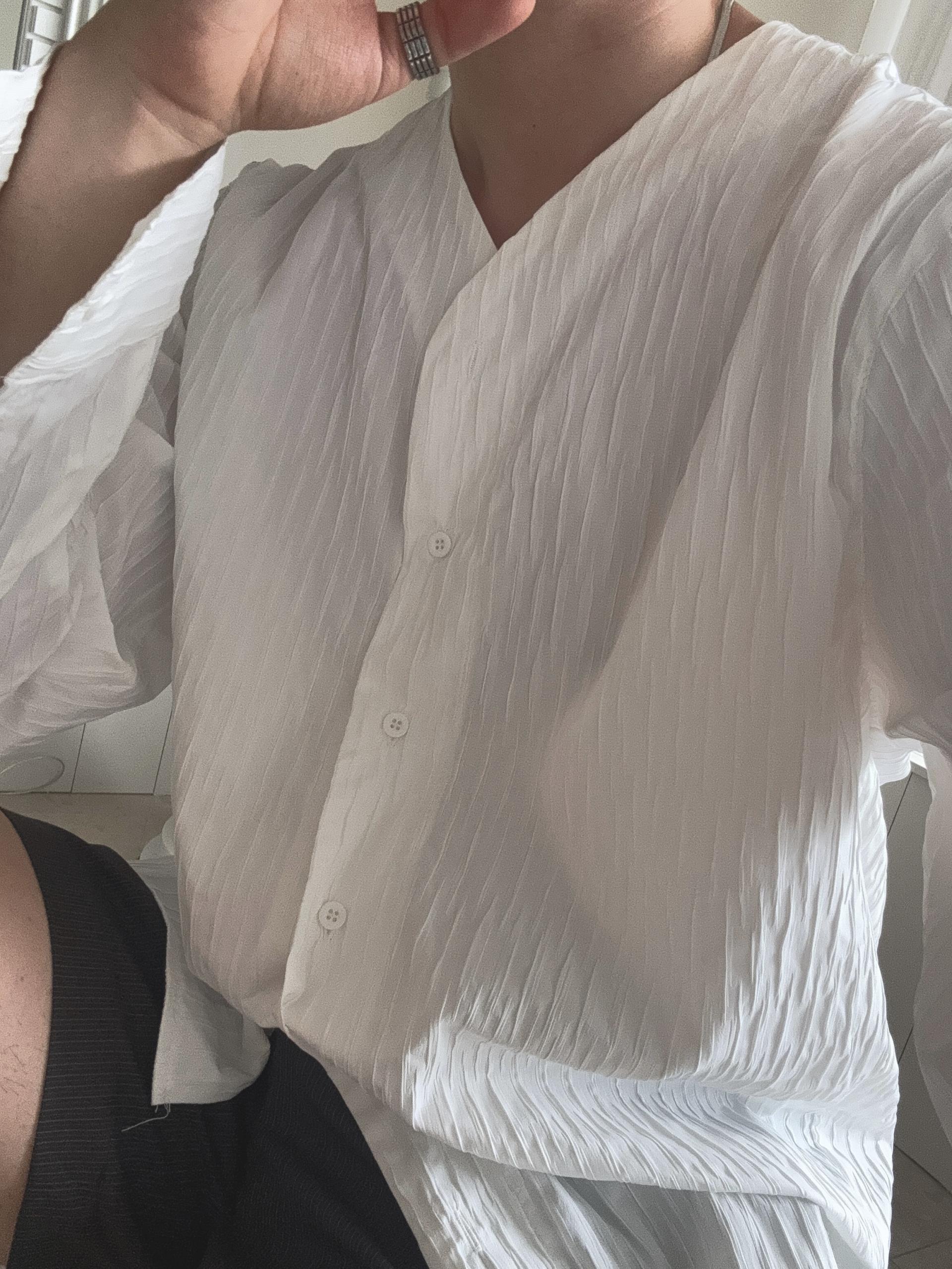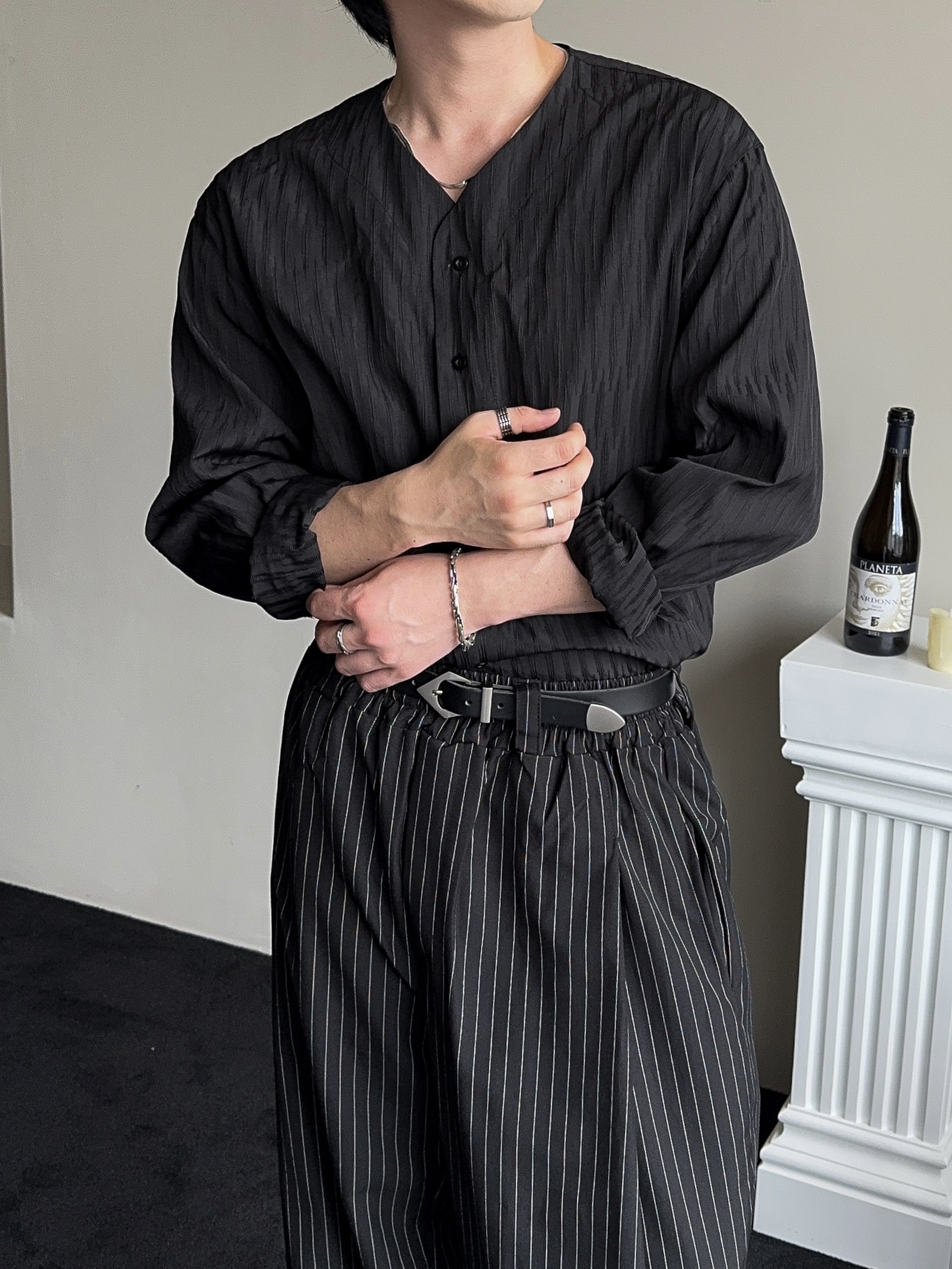 -깔끔한 논카라 디자인의 플리츠 셔츠