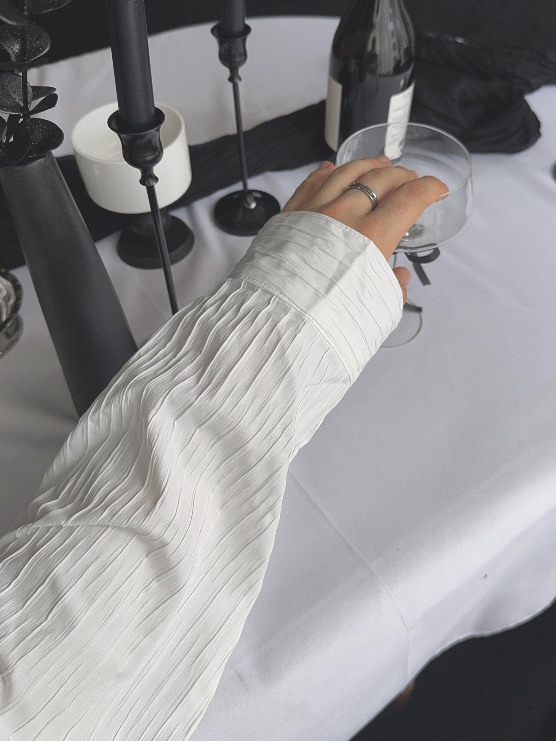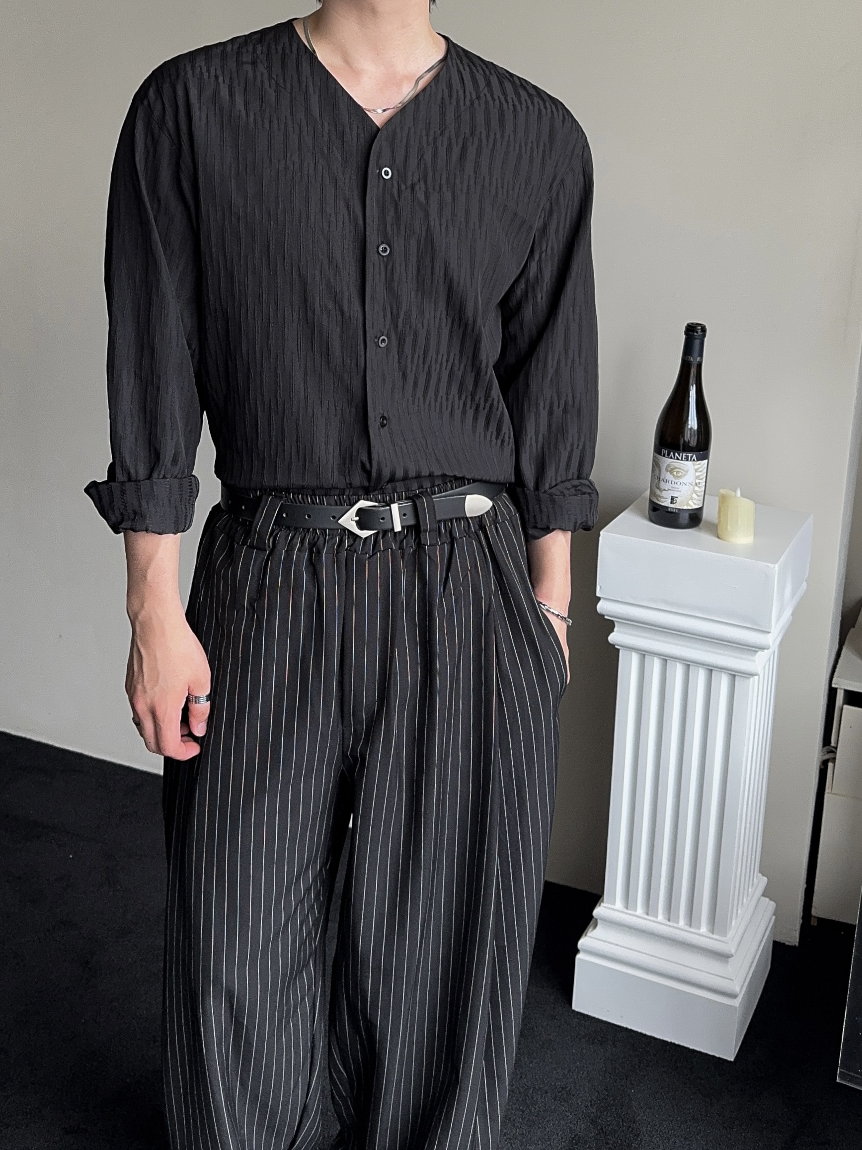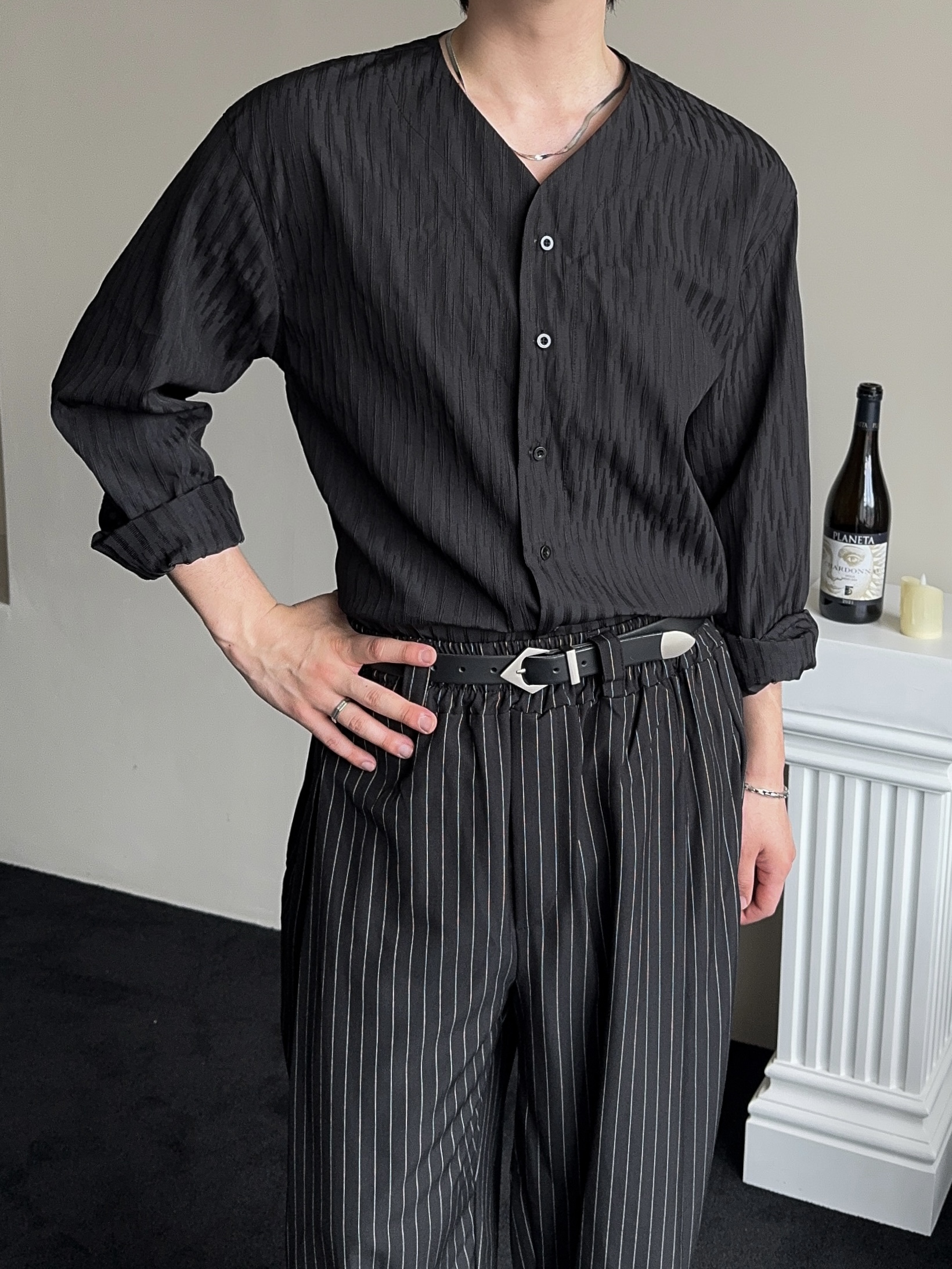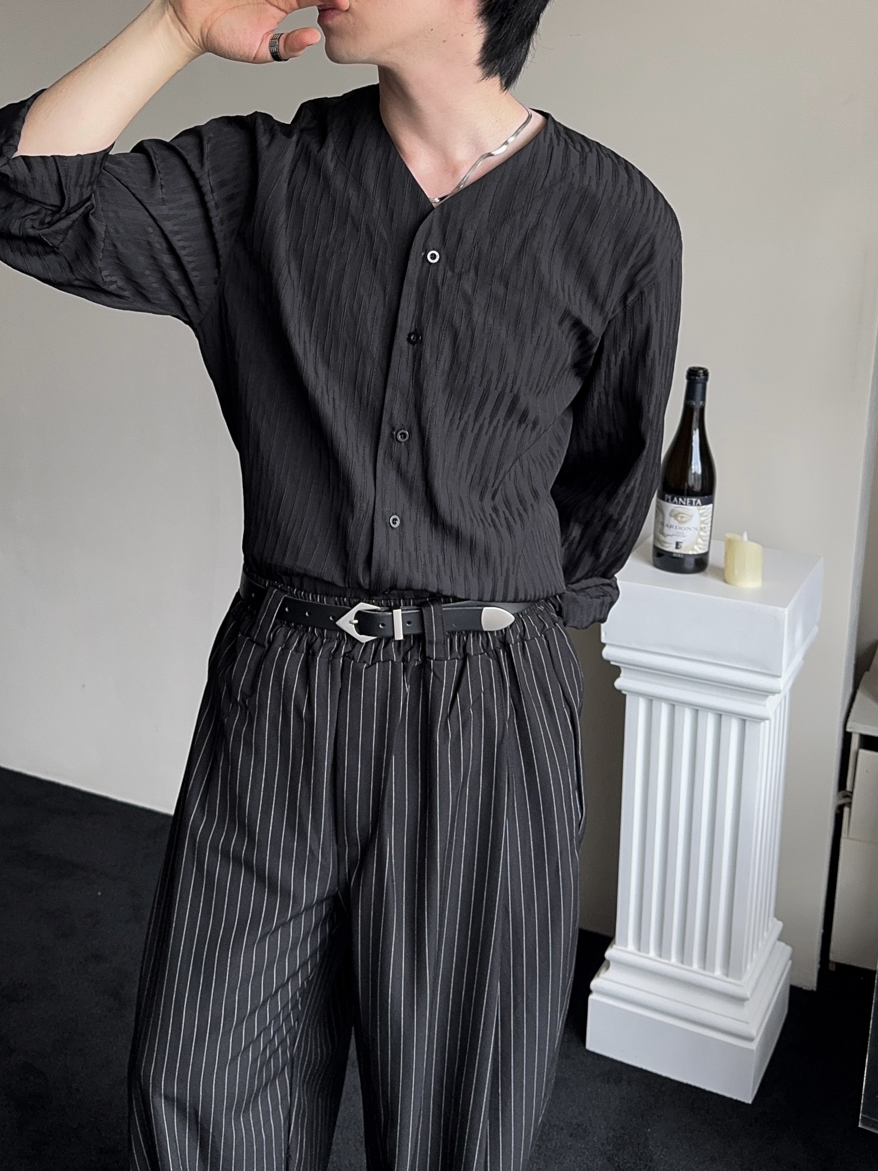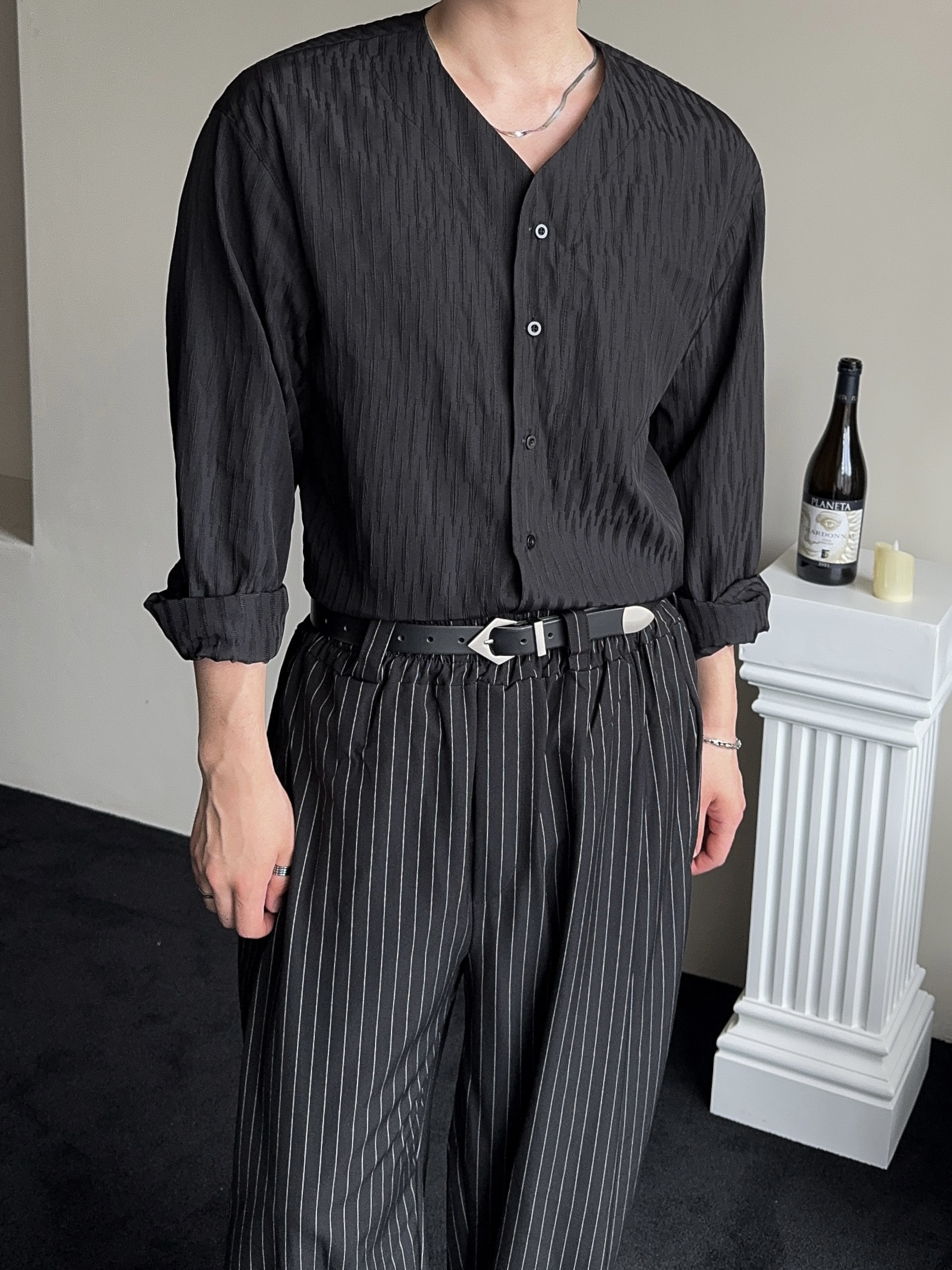 -깔끔한 논카라 디자인의 플리츠 셔츠