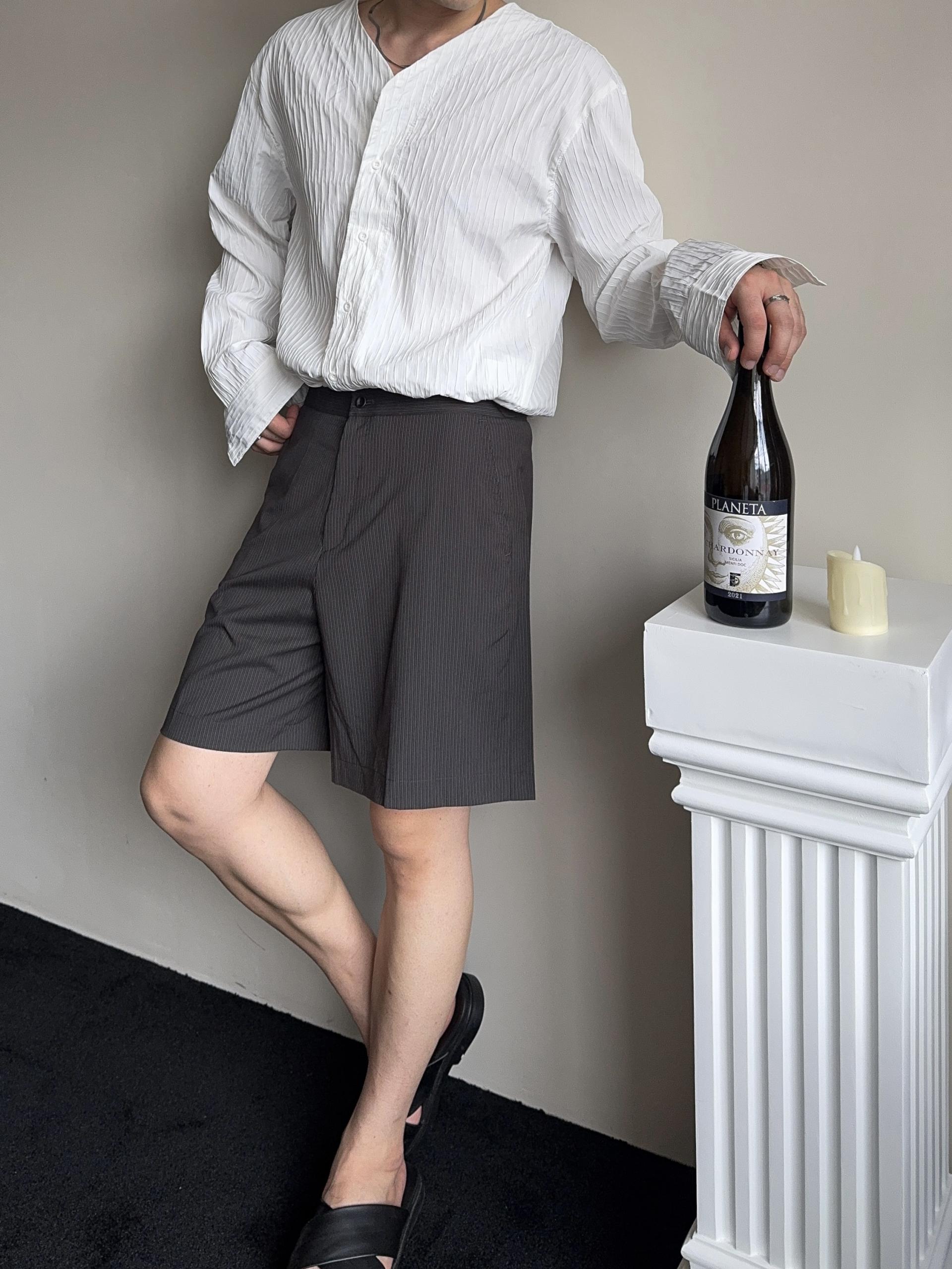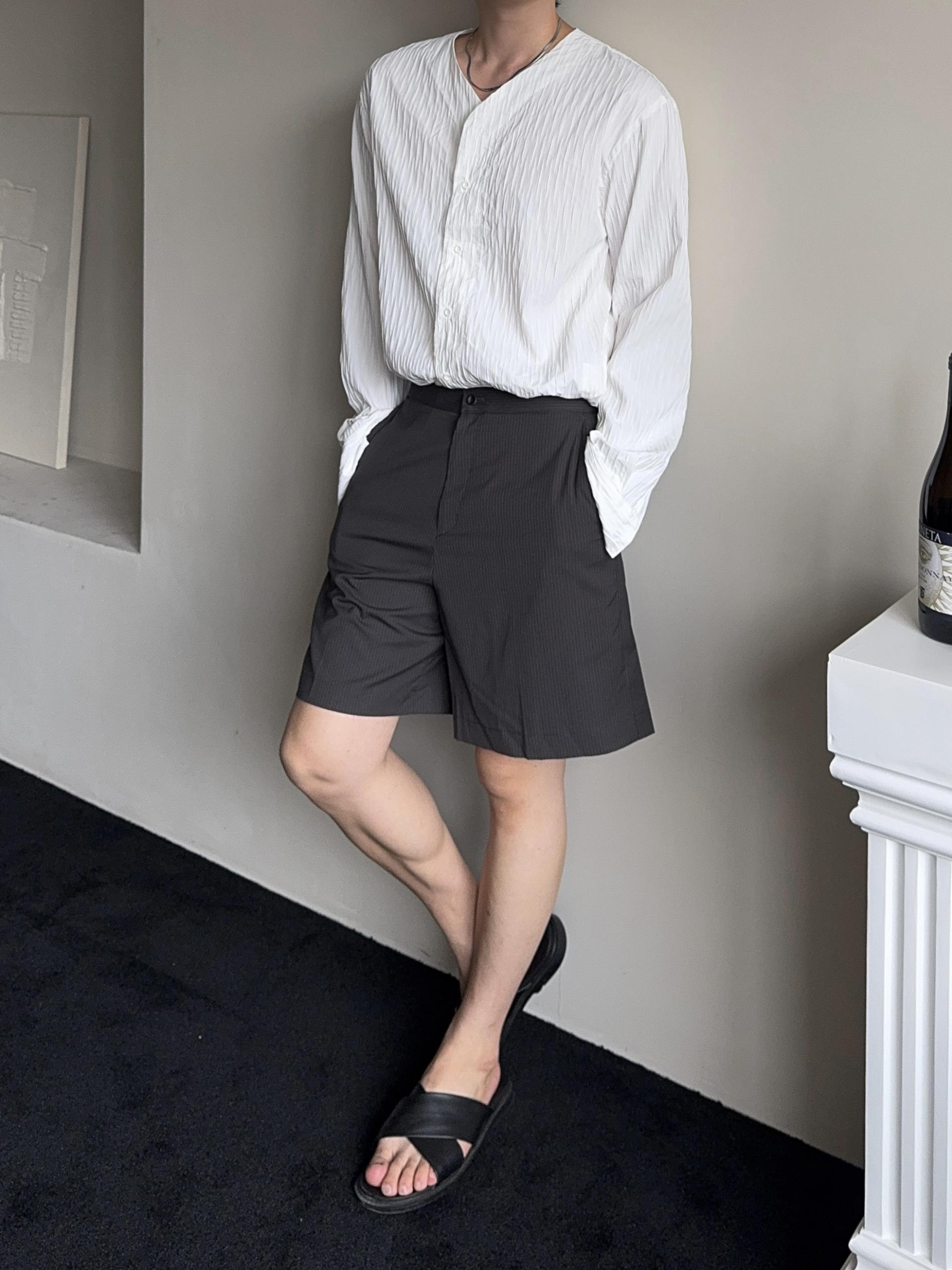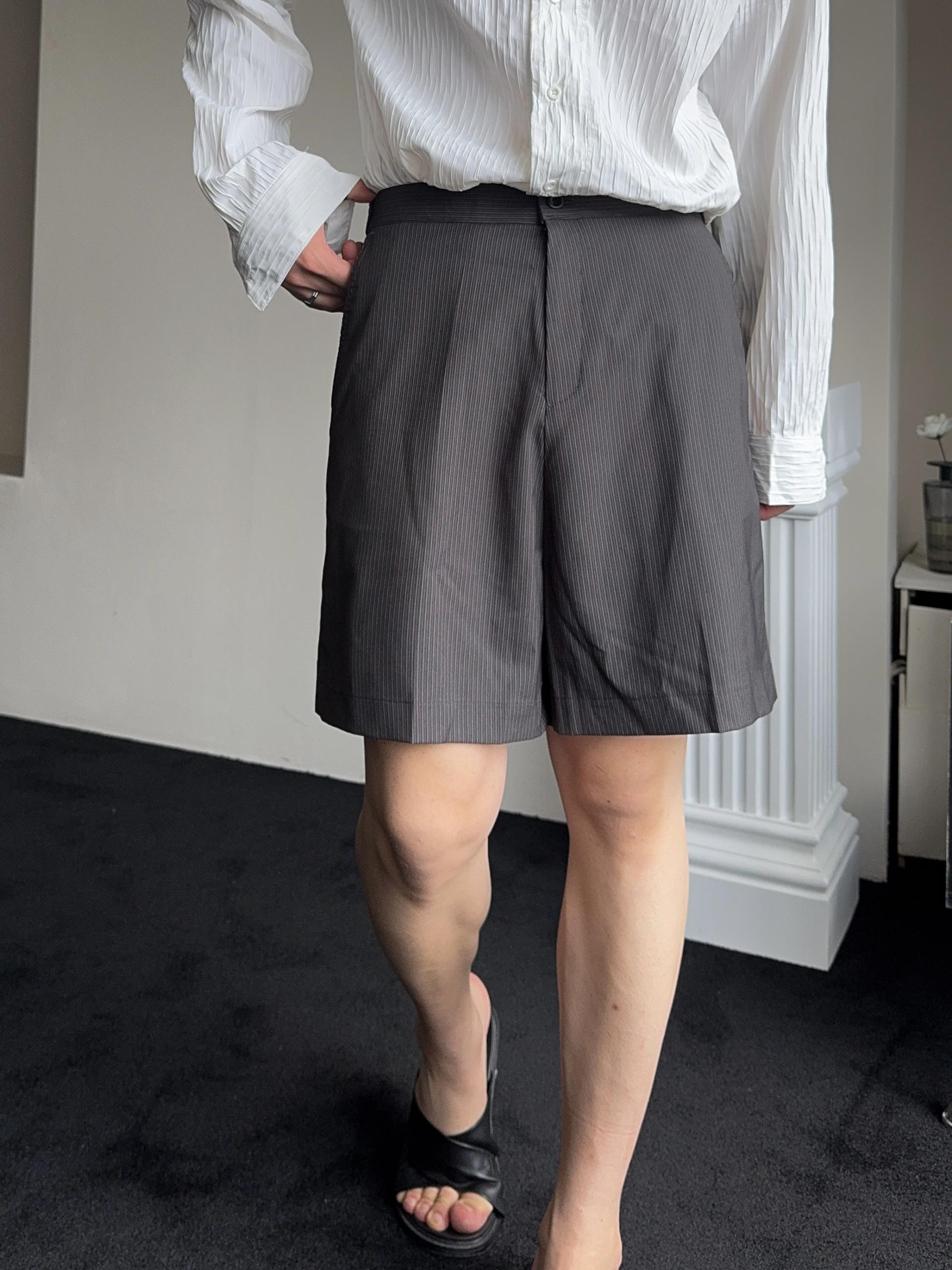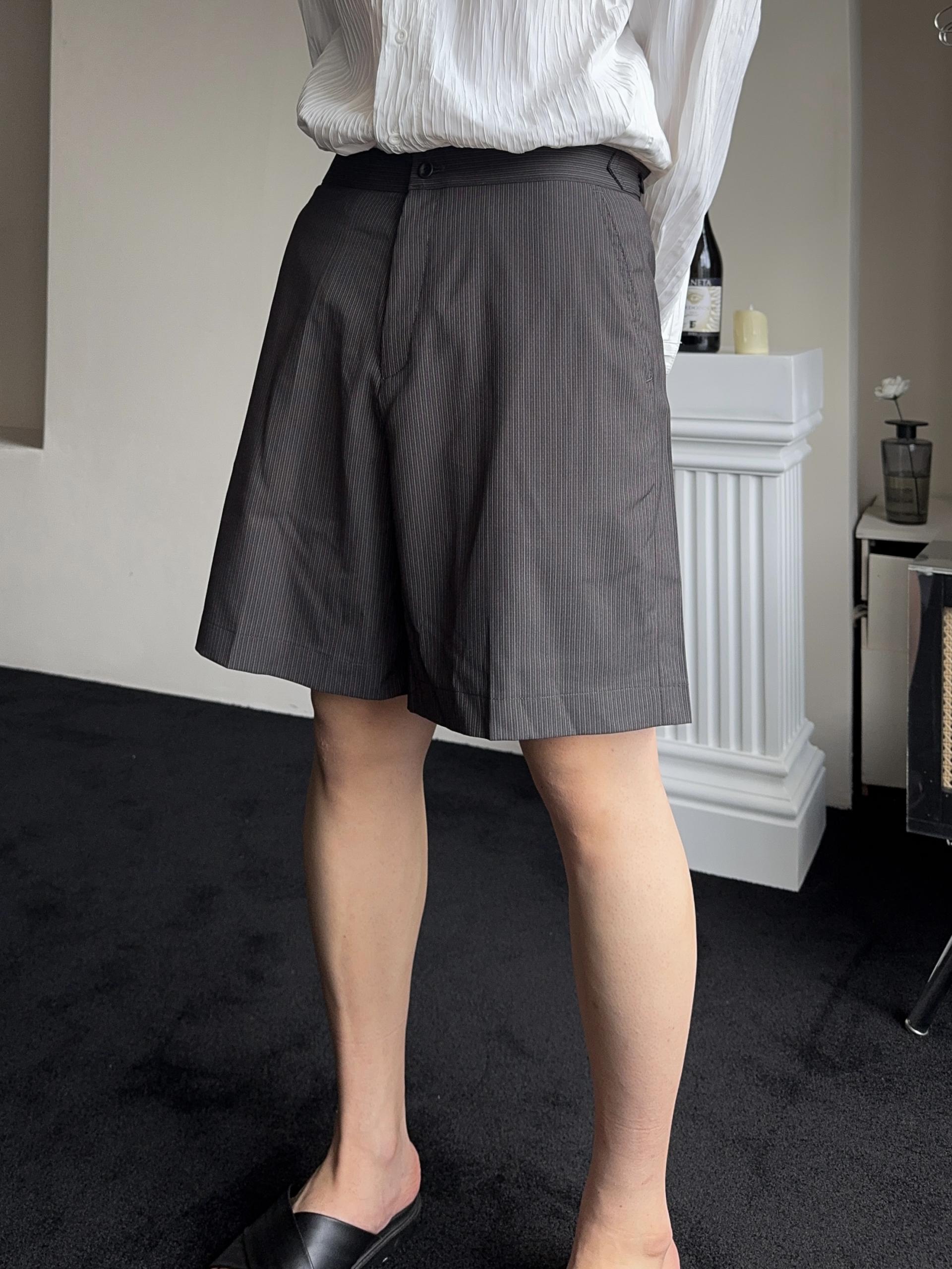 -올시즌 트렌디 숏 기장감의 스트라이프 패턴의 쇼츠 슬랙스