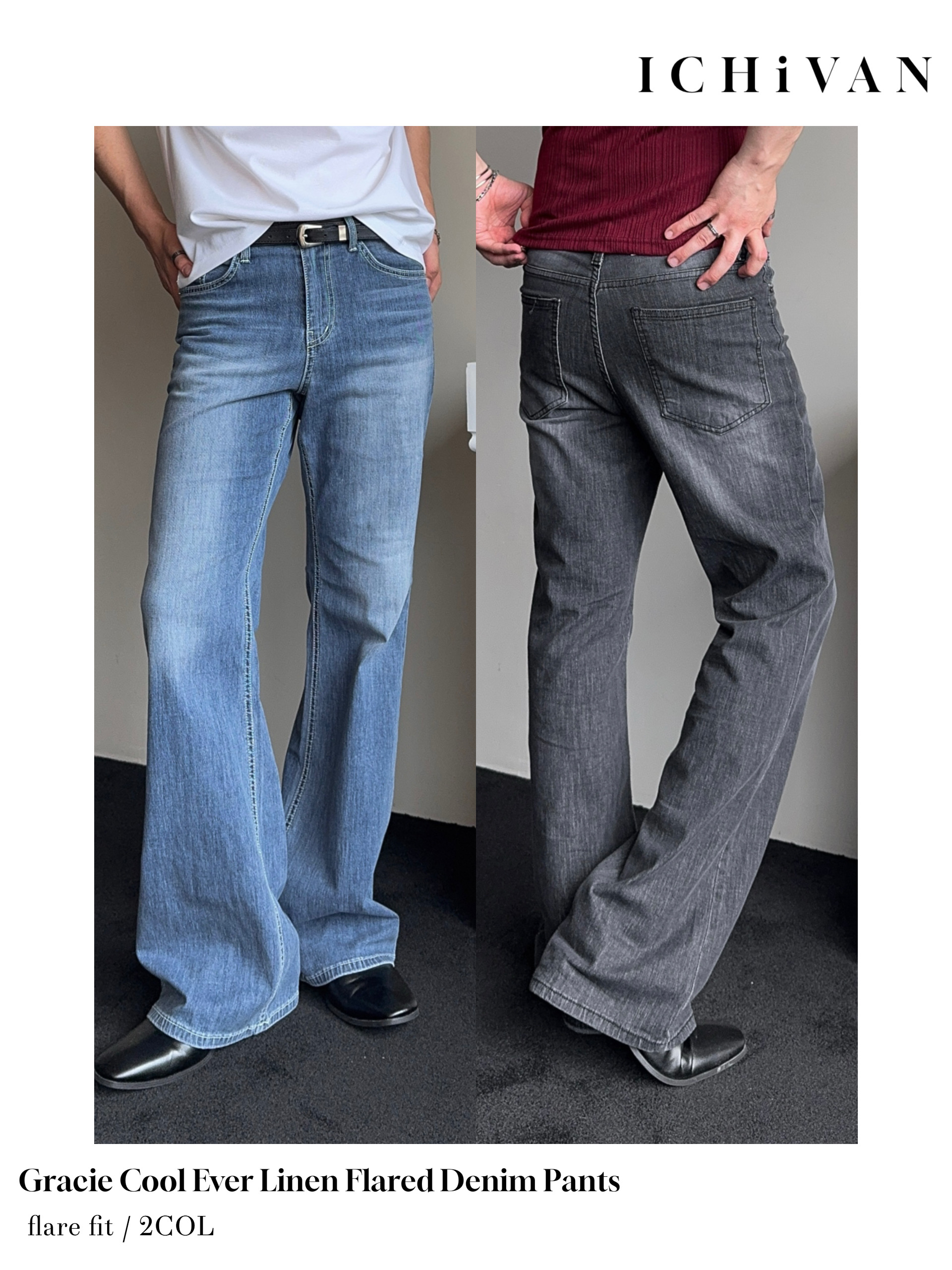 -한여름에도 쾌적하게 착용하기 좋은 플레어 데님 팬츠