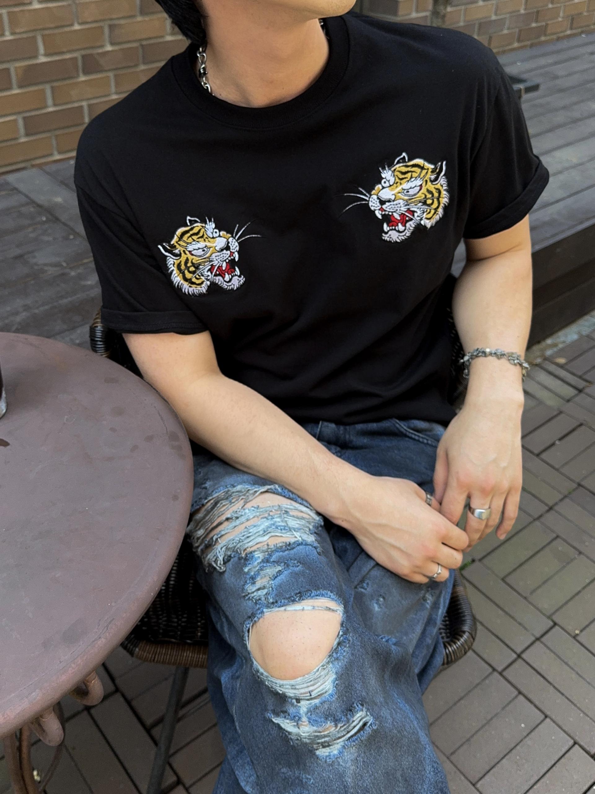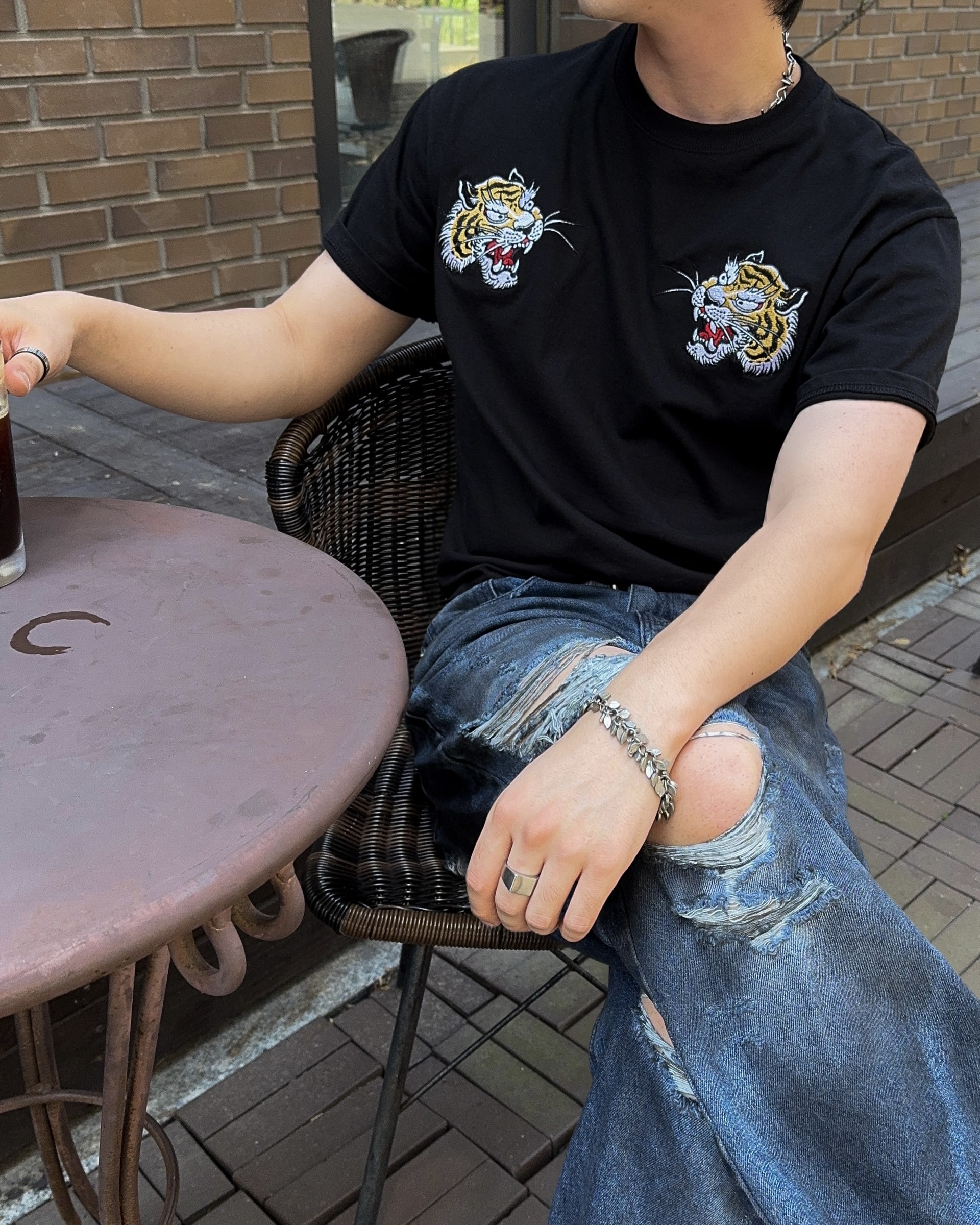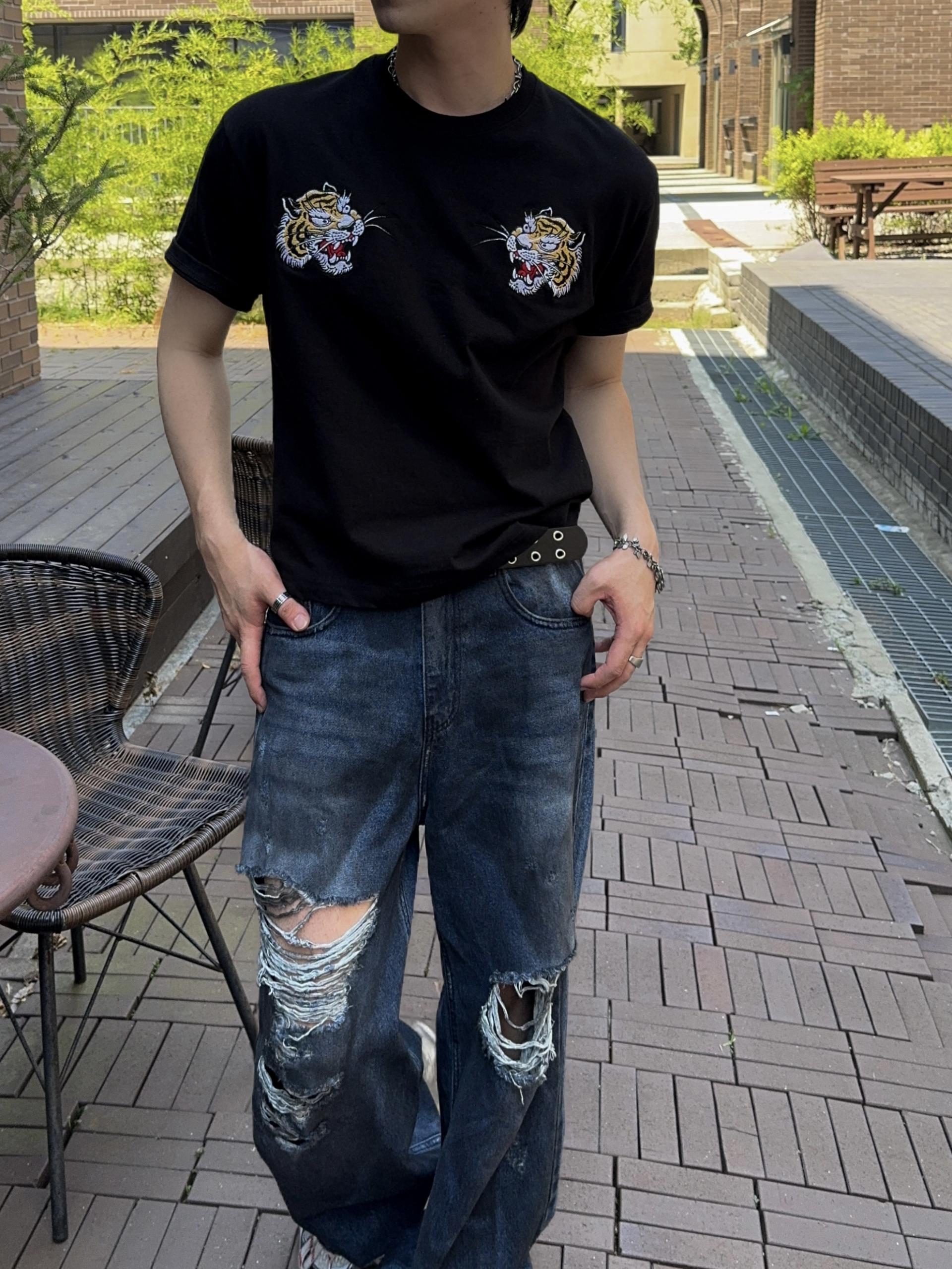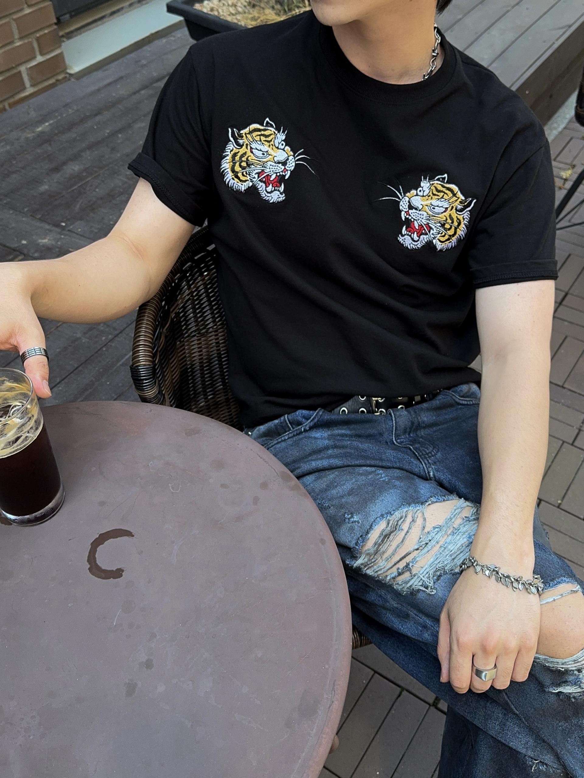 -다양한 팬츠에 포인트 주기 좋은 워크웨어 자수 티셔츠