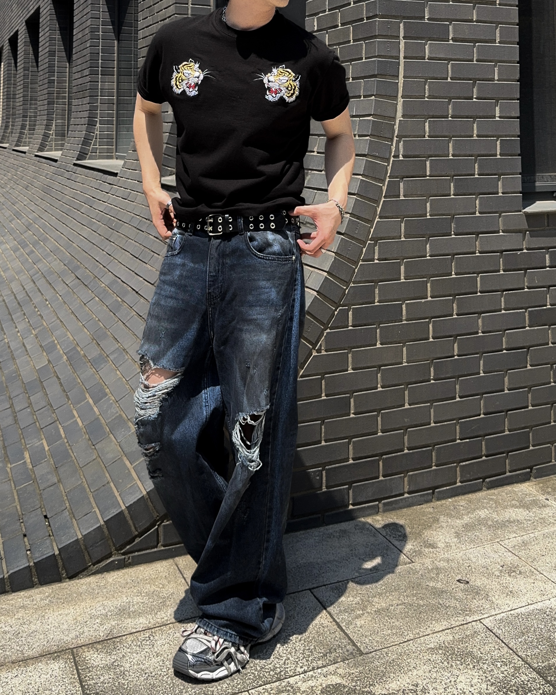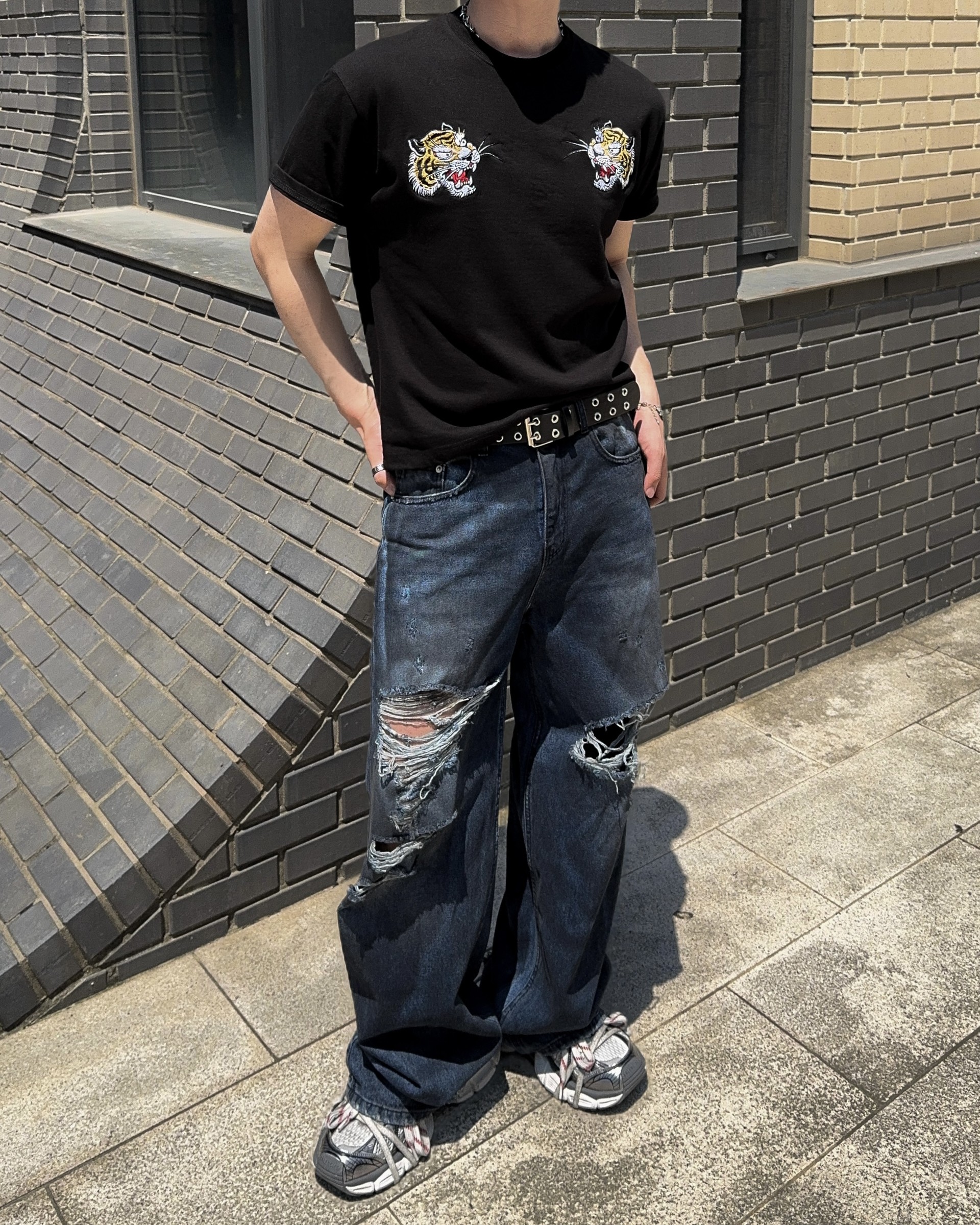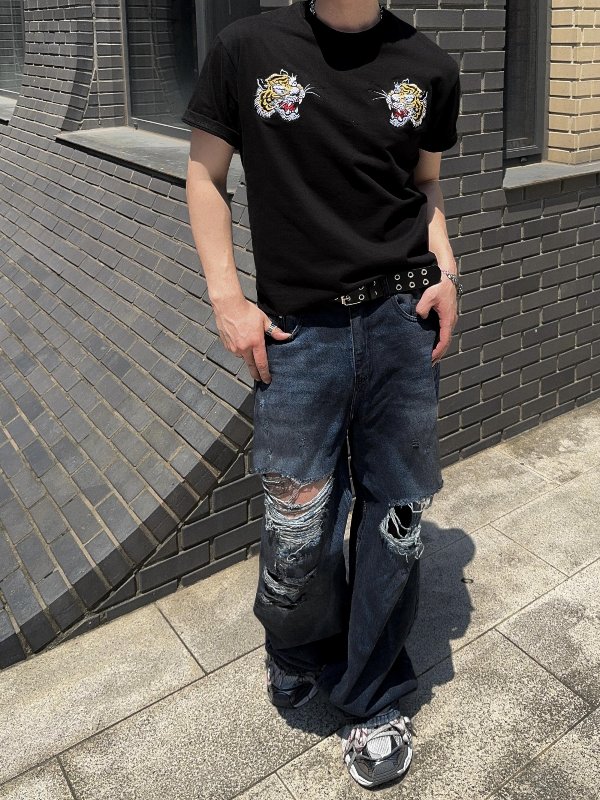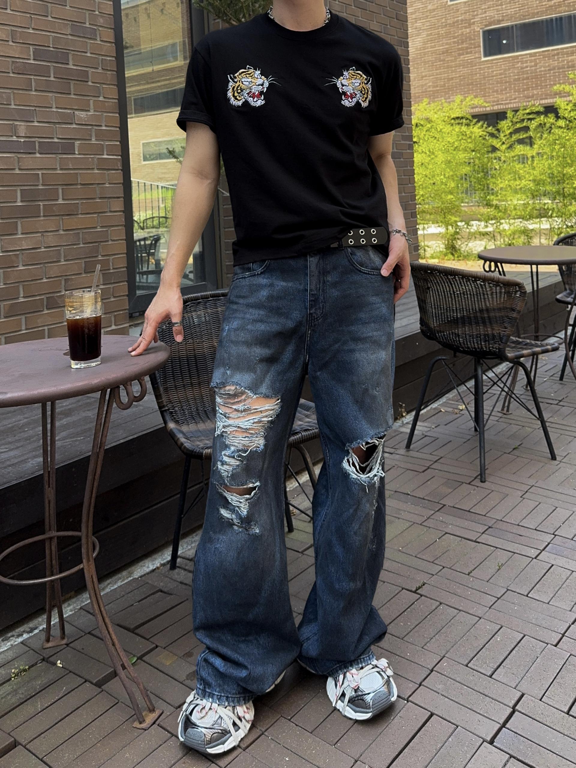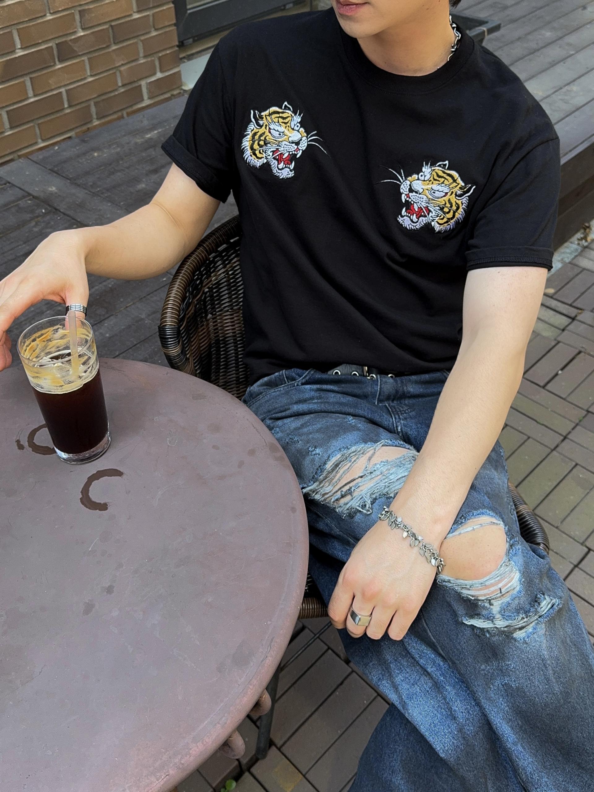 -다양한 팬츠에 포인트 주기 좋은 워크웨어 자수 티셔츠