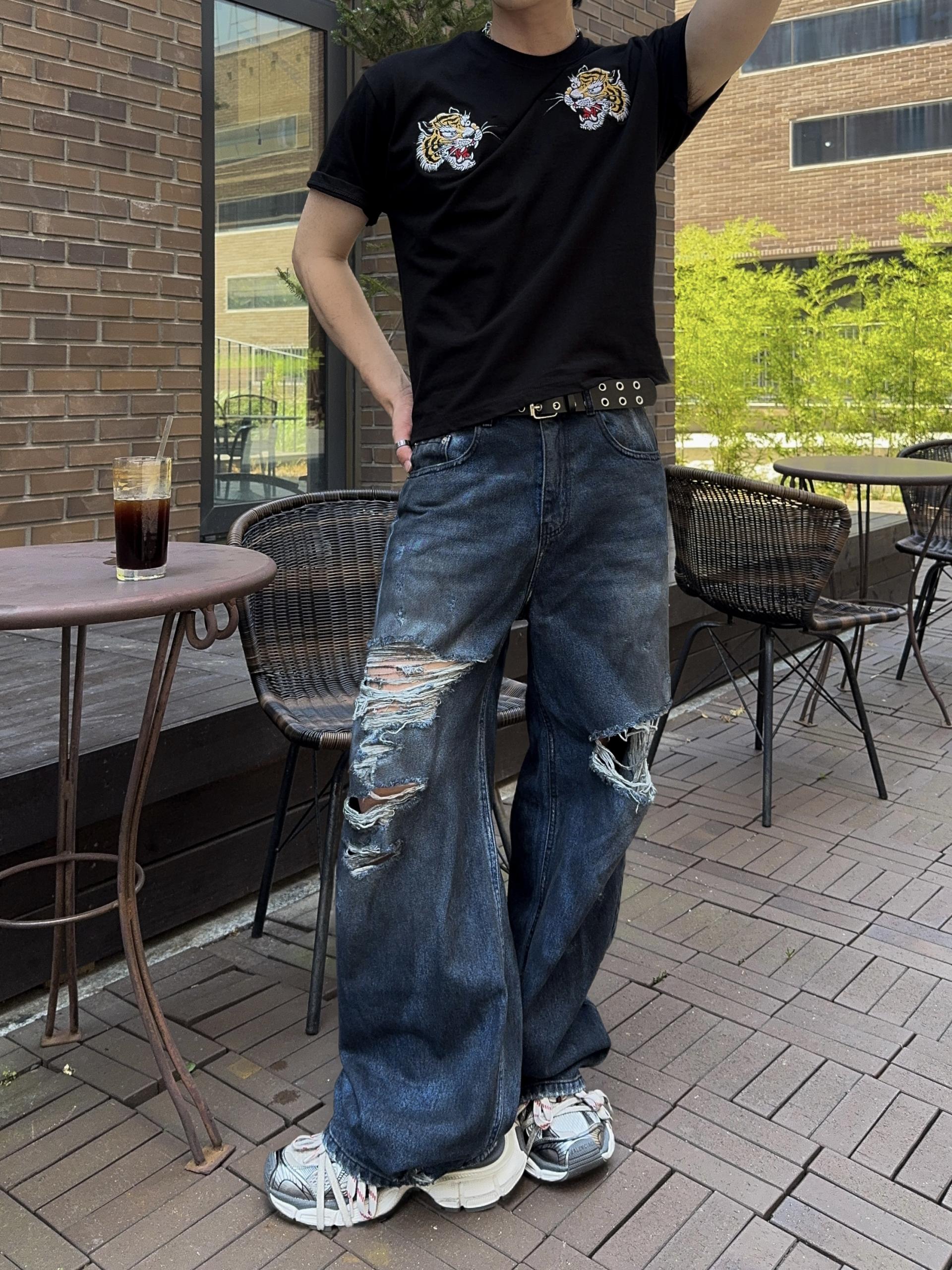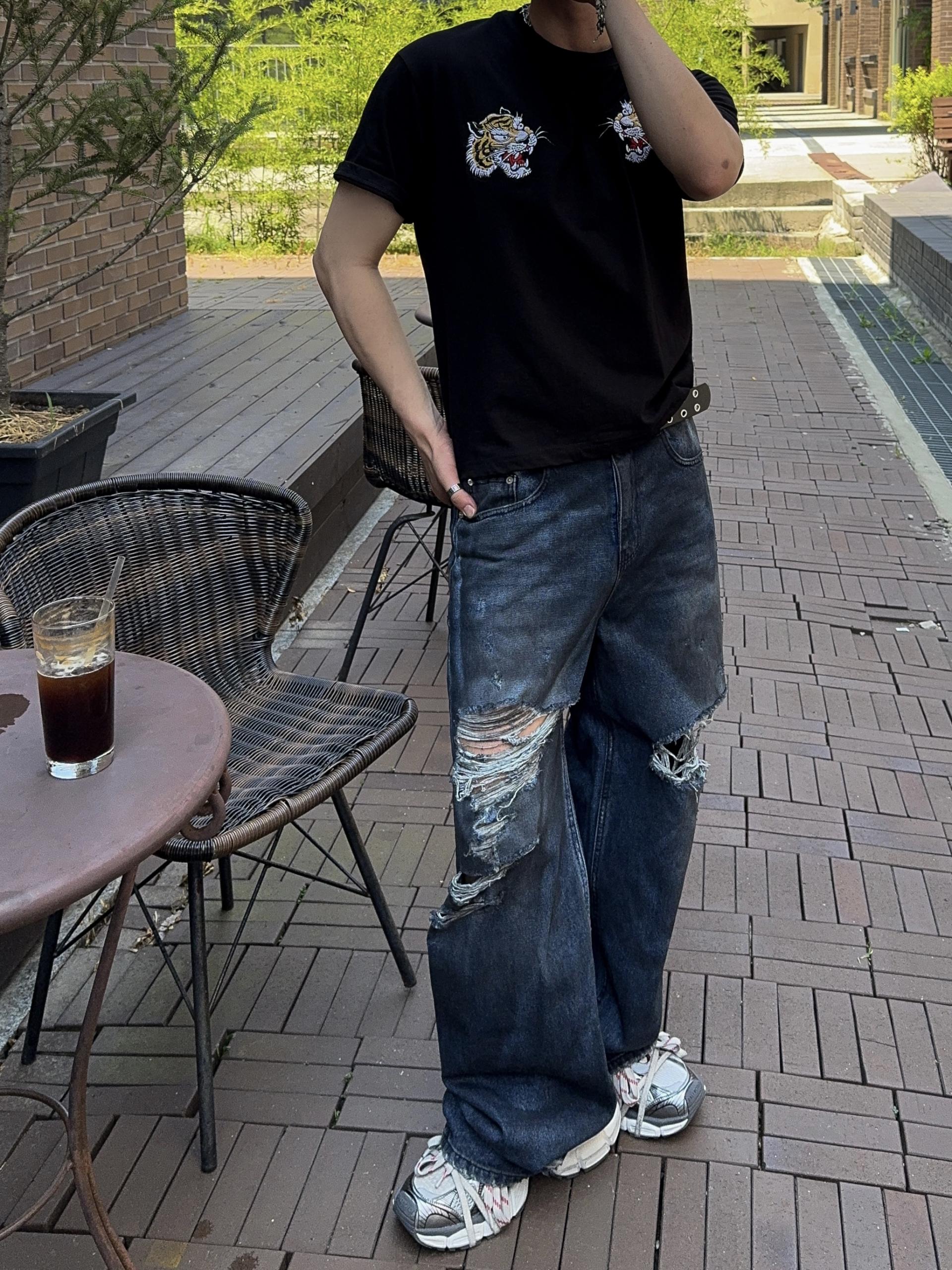 -더티 오일 워싱의 데님 팬츠
