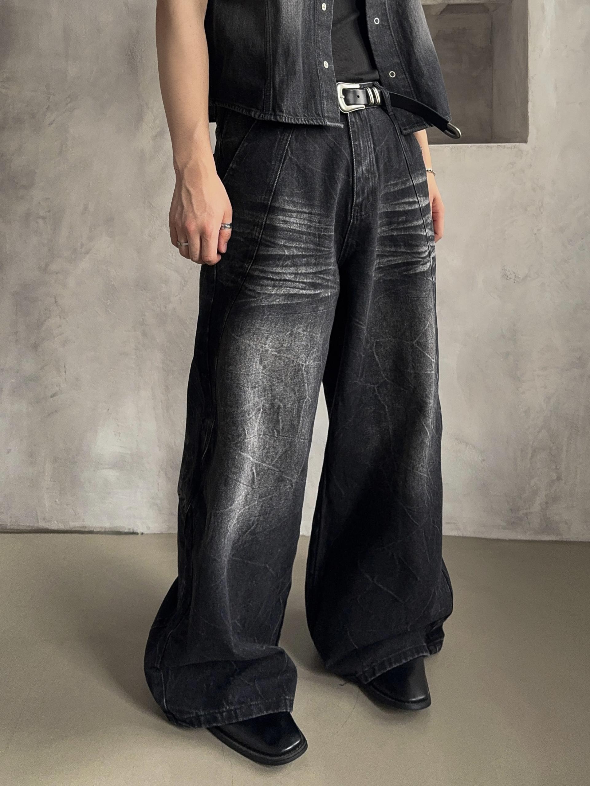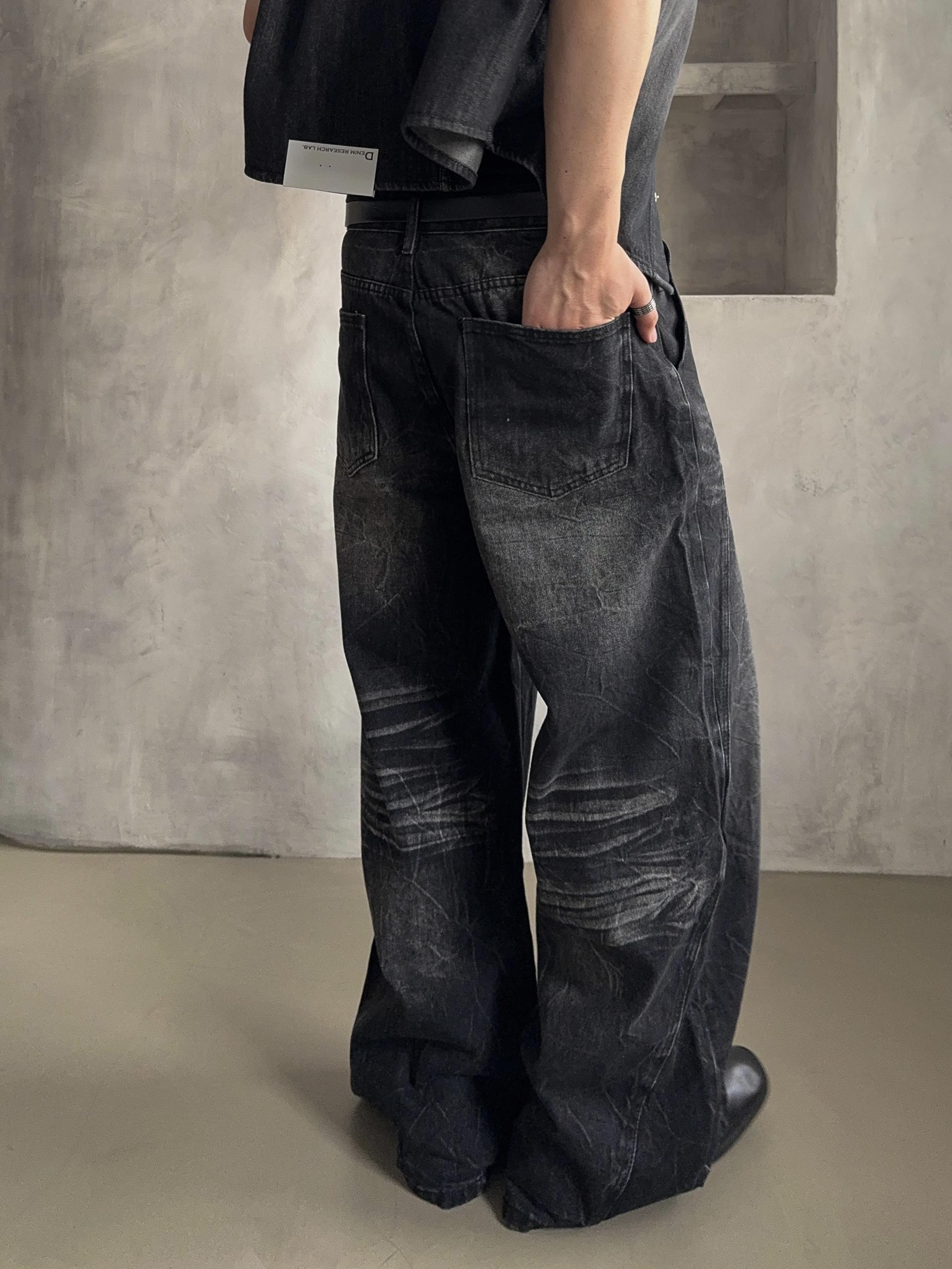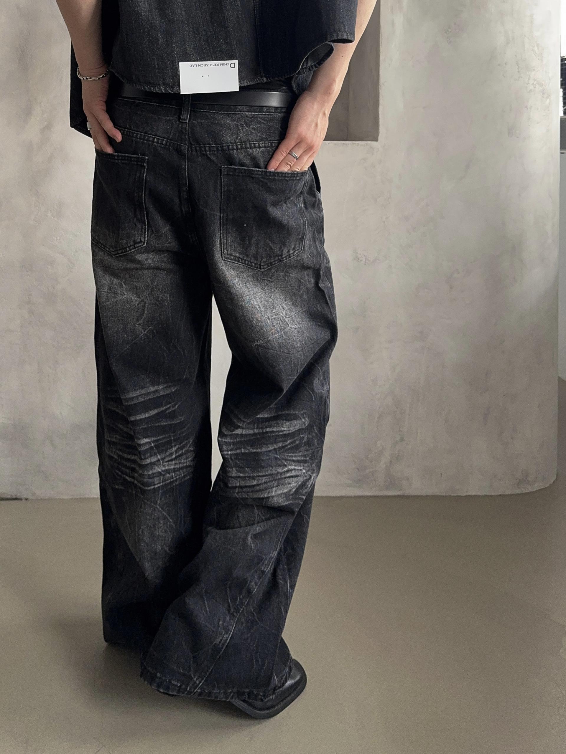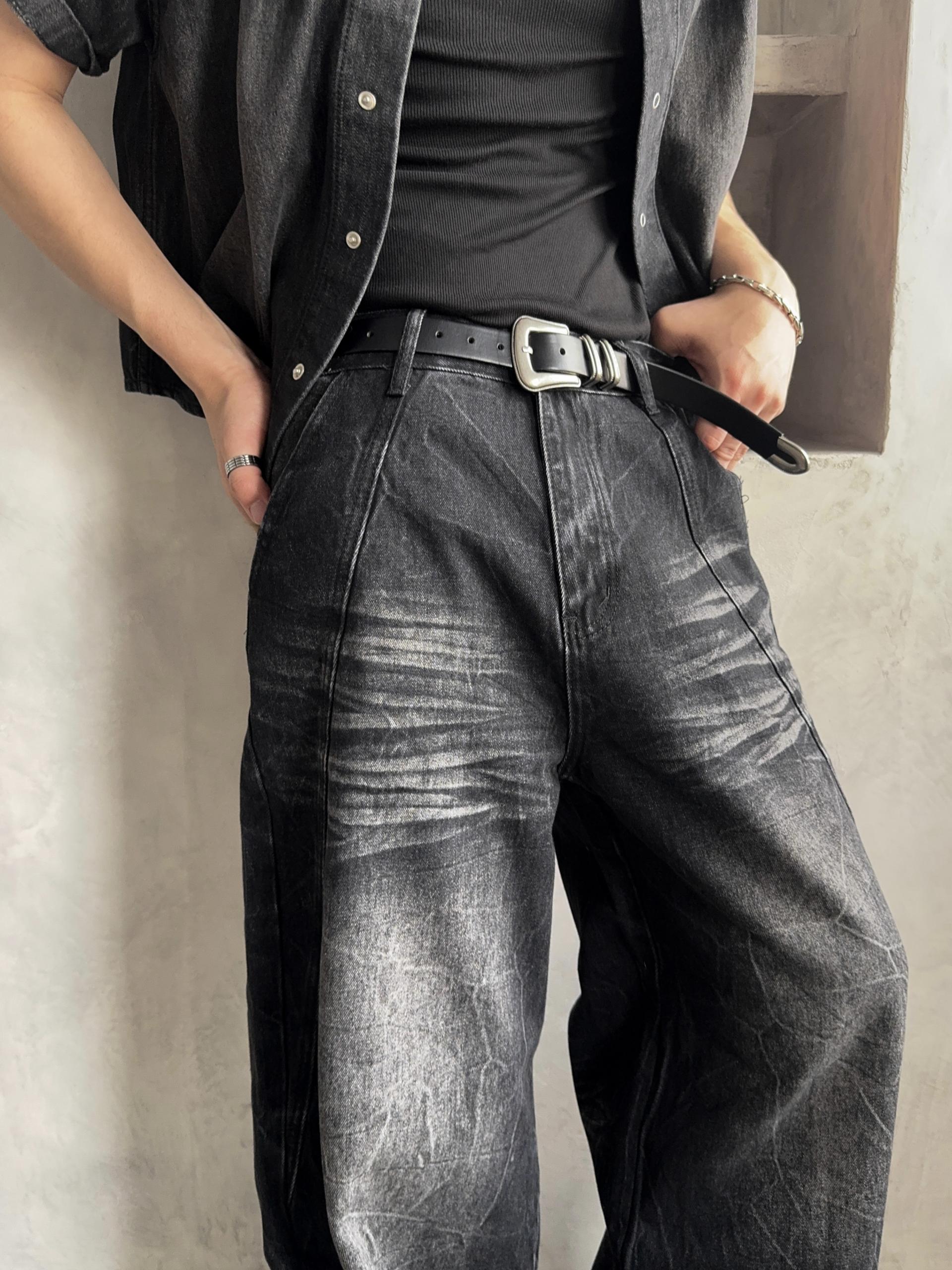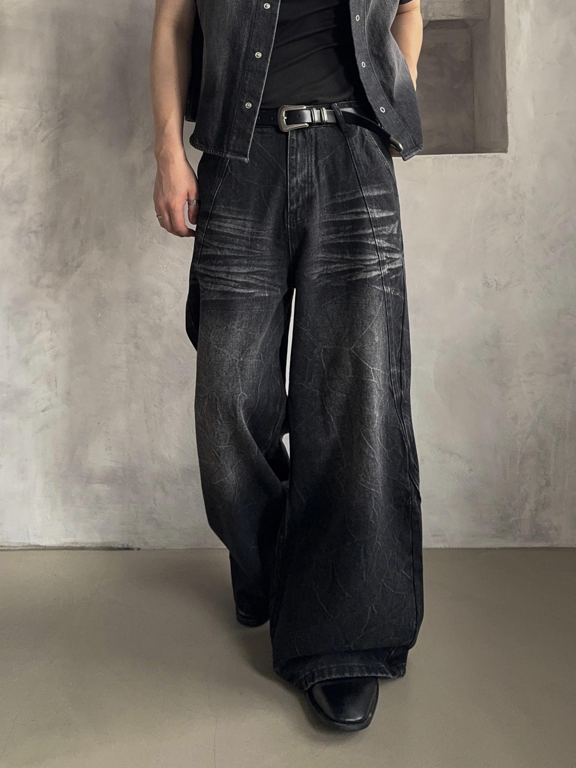 -탄탄한 데님 원단으로 제작된 와이드 팬츠